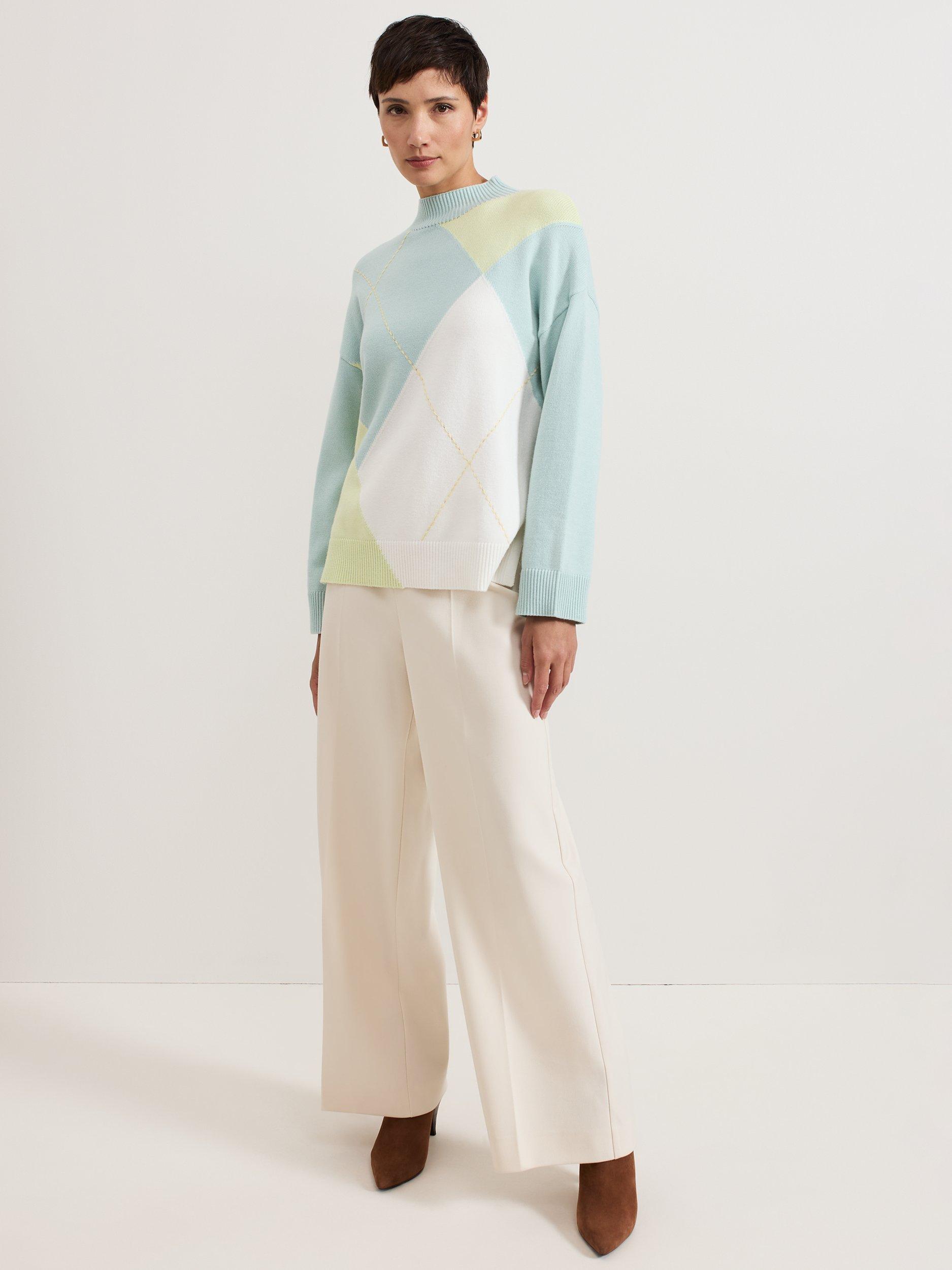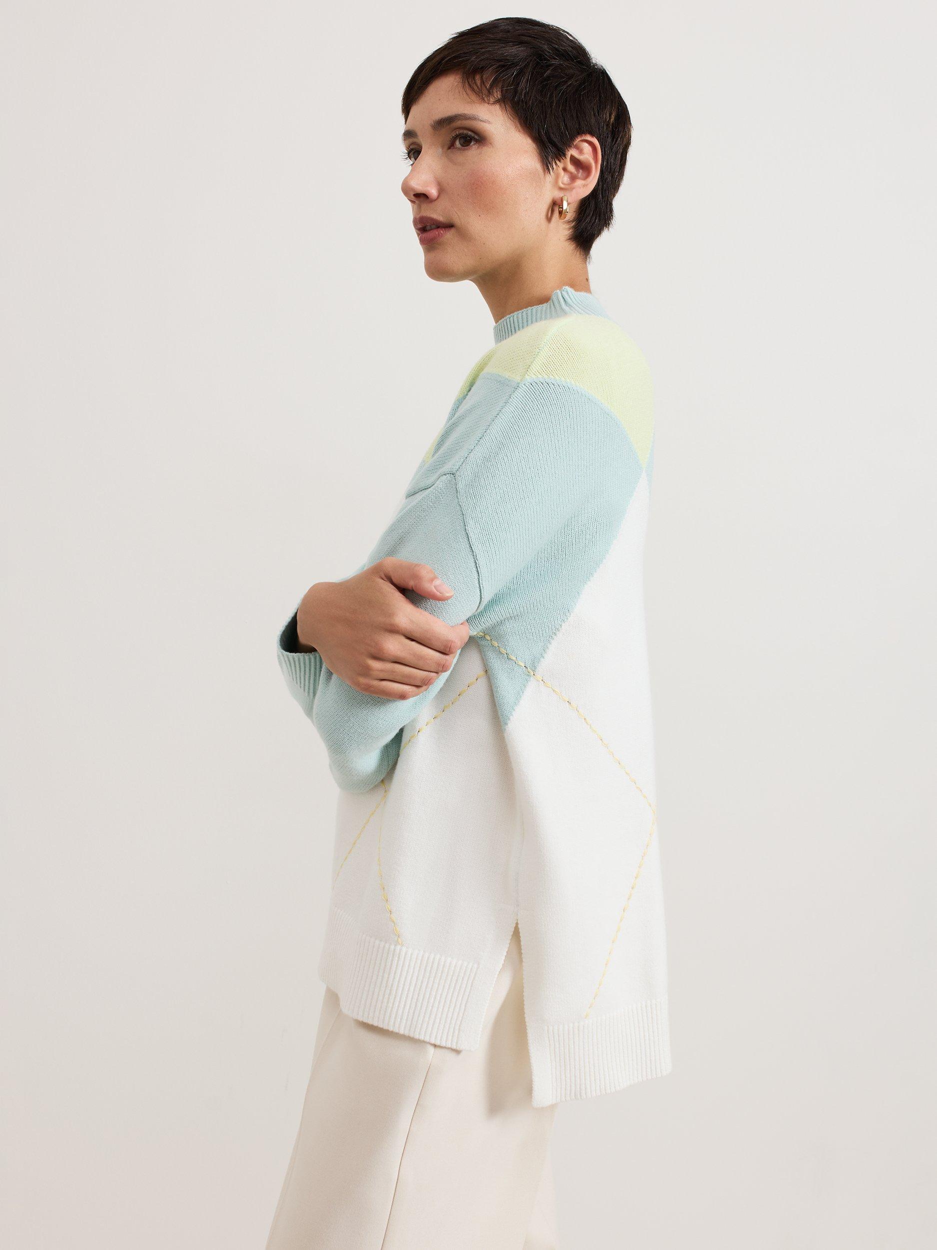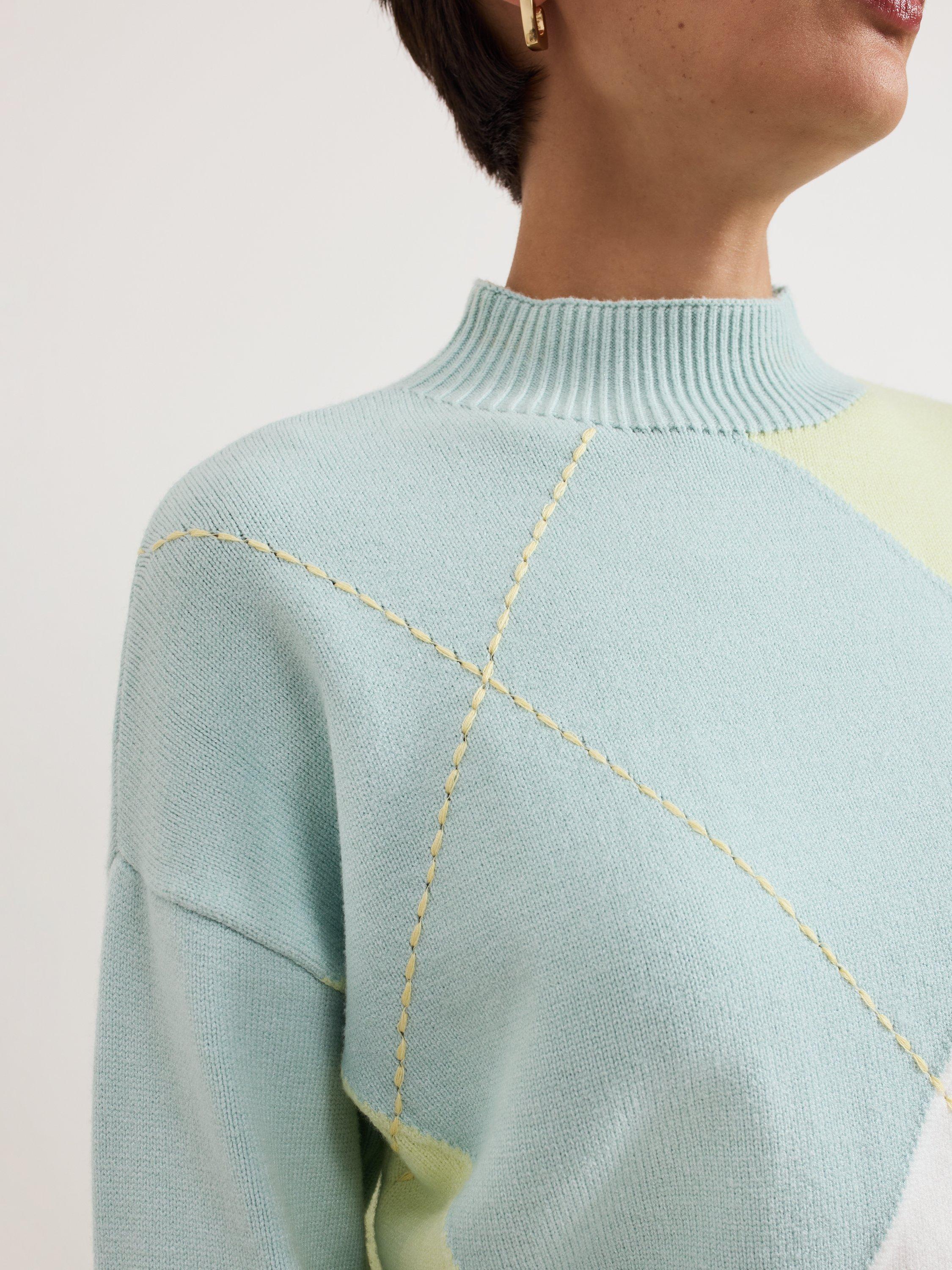 The Darla knitted jumper will stand the test of time in your wardrobe. In a distinctive diamond design, this jumper features a cosy high neckline, perfect for colder days. Intricate detailing is added by the stepped hem and exposed stitching to create a contemporary style to pair with all your favourite trousers.