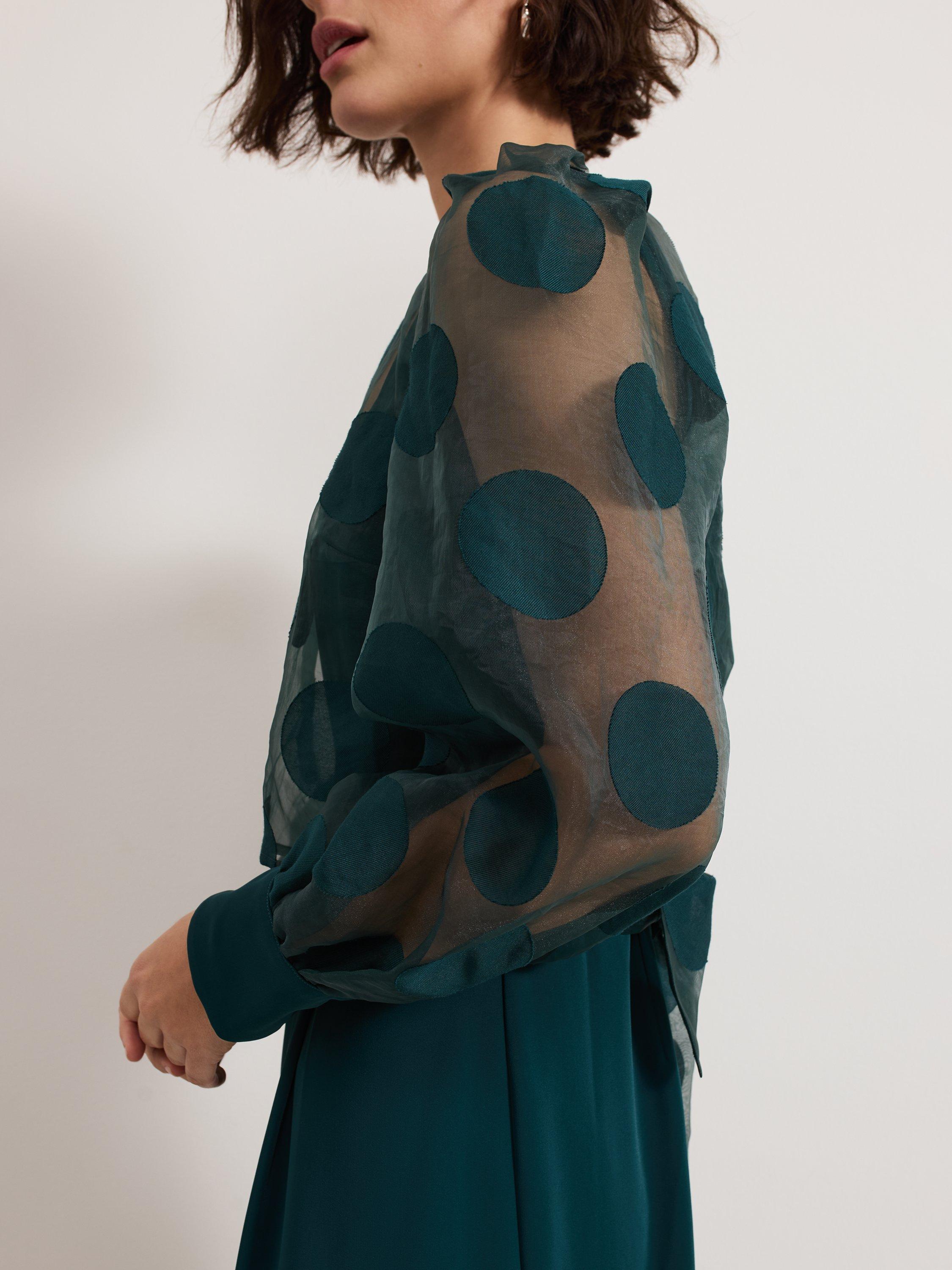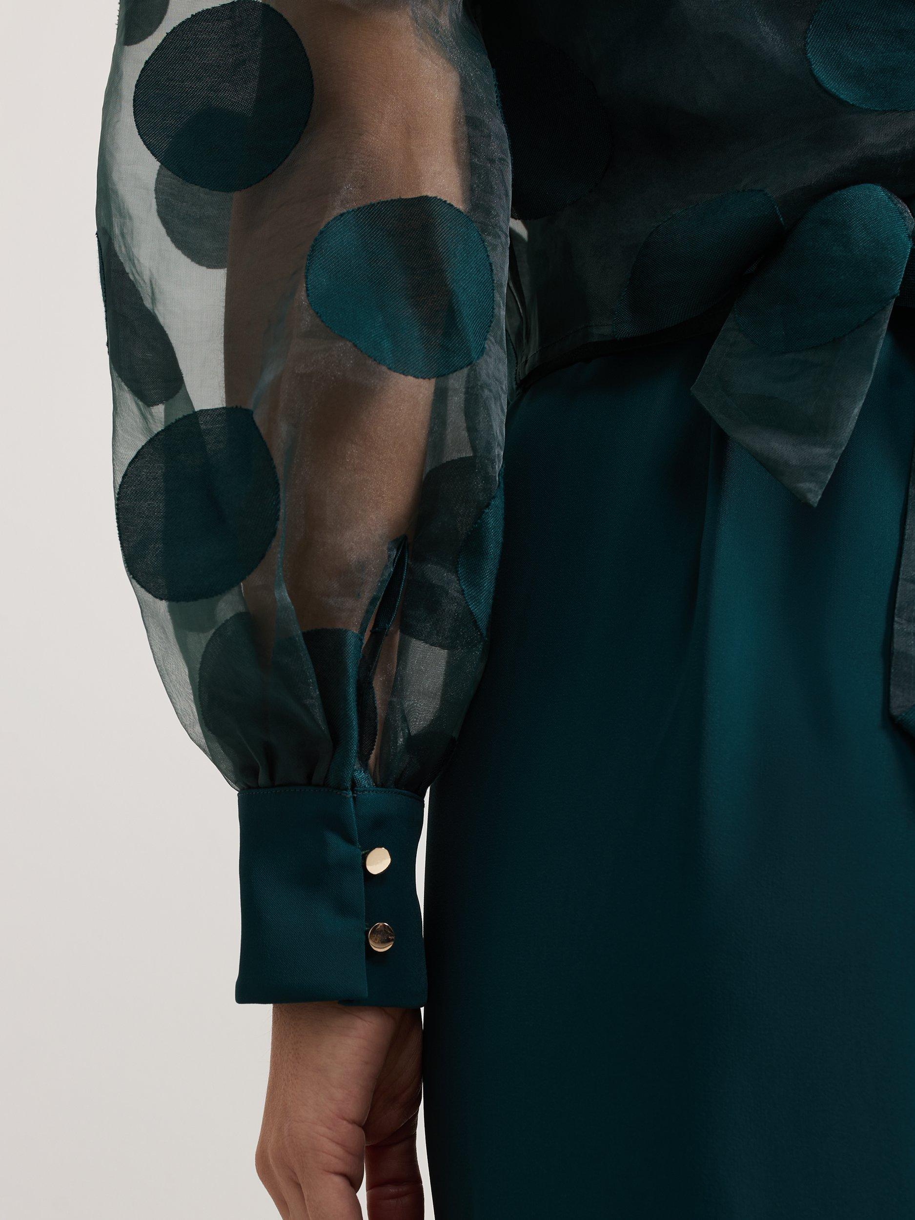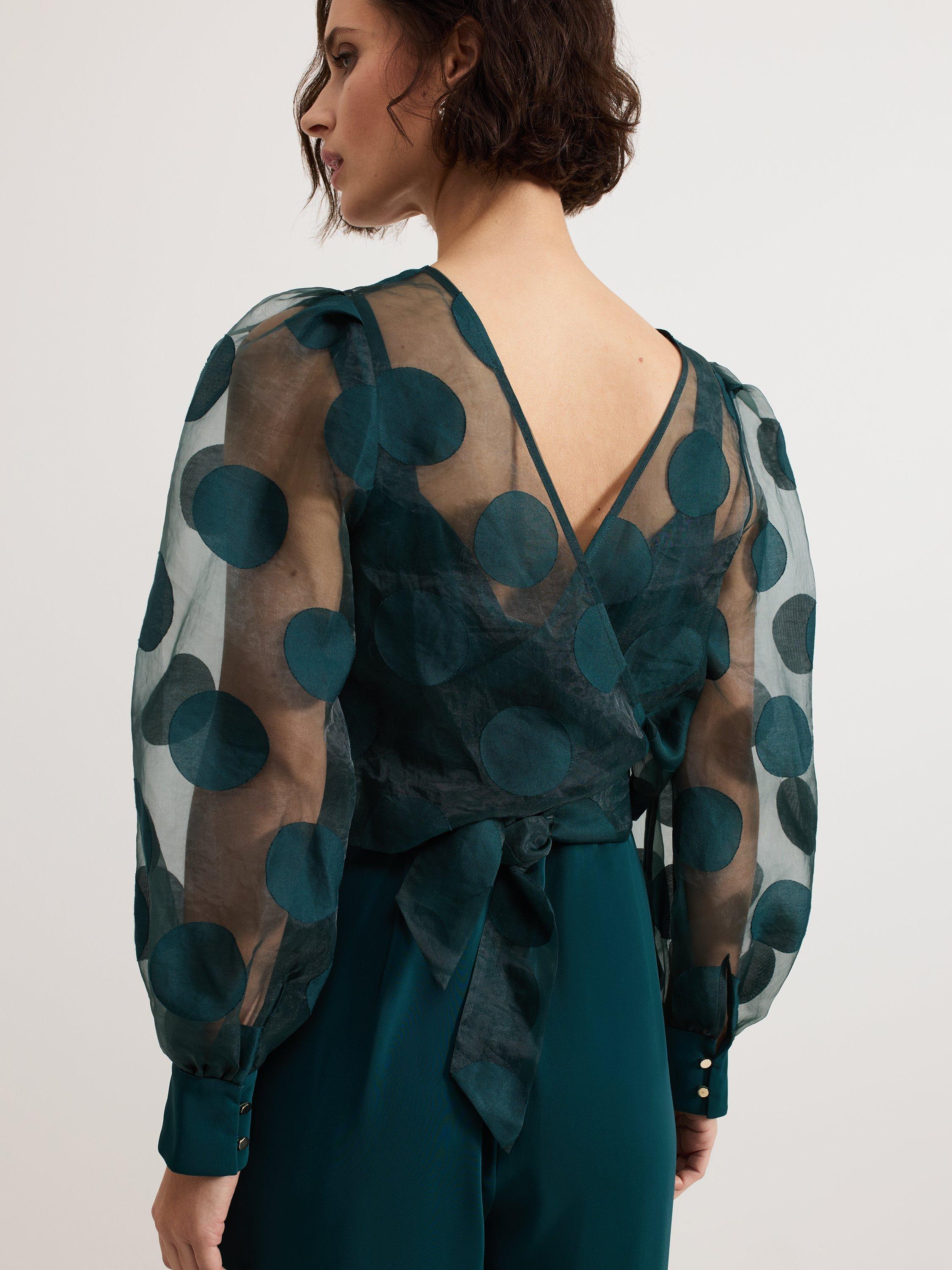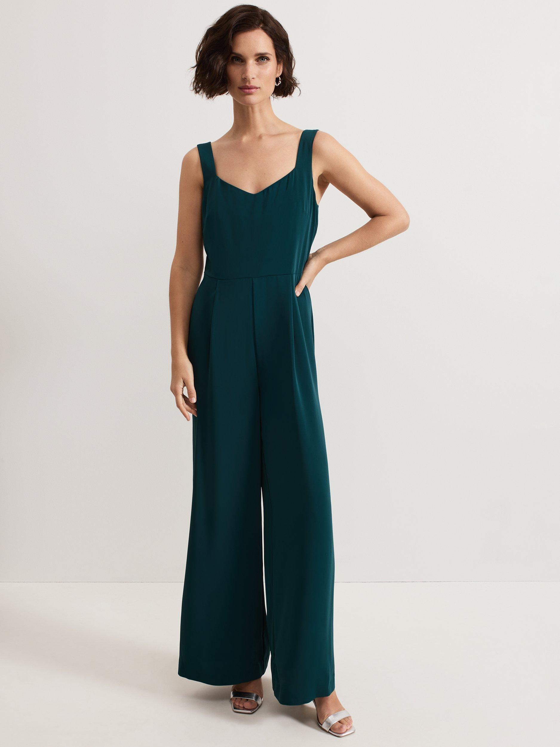 The ultimate in occasionwear. Made in a smooth fabric, this jumpsuit from Phase Eight gives you the versatility of two looks in one. Featuring a v-neck with wide straps, the jumpsuit falls to a stunning wide leg silhouette. Choose to wear as is or layer with the sheer wrap blouse on top in a print that we're just a little bit dotty about.