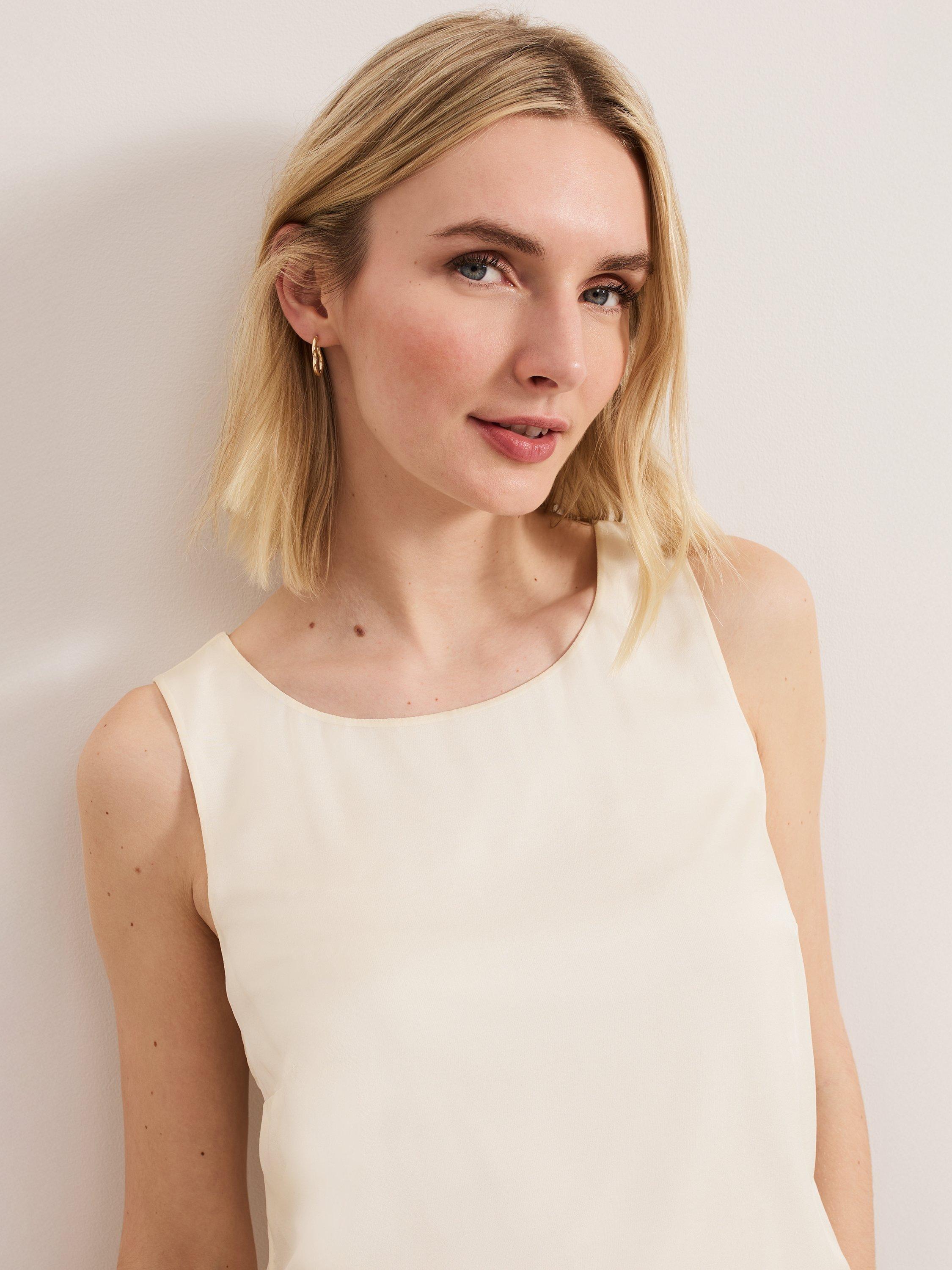 This 100% silk top is a luxurious staple to add to your capsule wardrobe. The timeless shade has a subtle sheen for a premium finish, whilst the elegant round neck will add a touch of sophistication to all your favourite outfits.