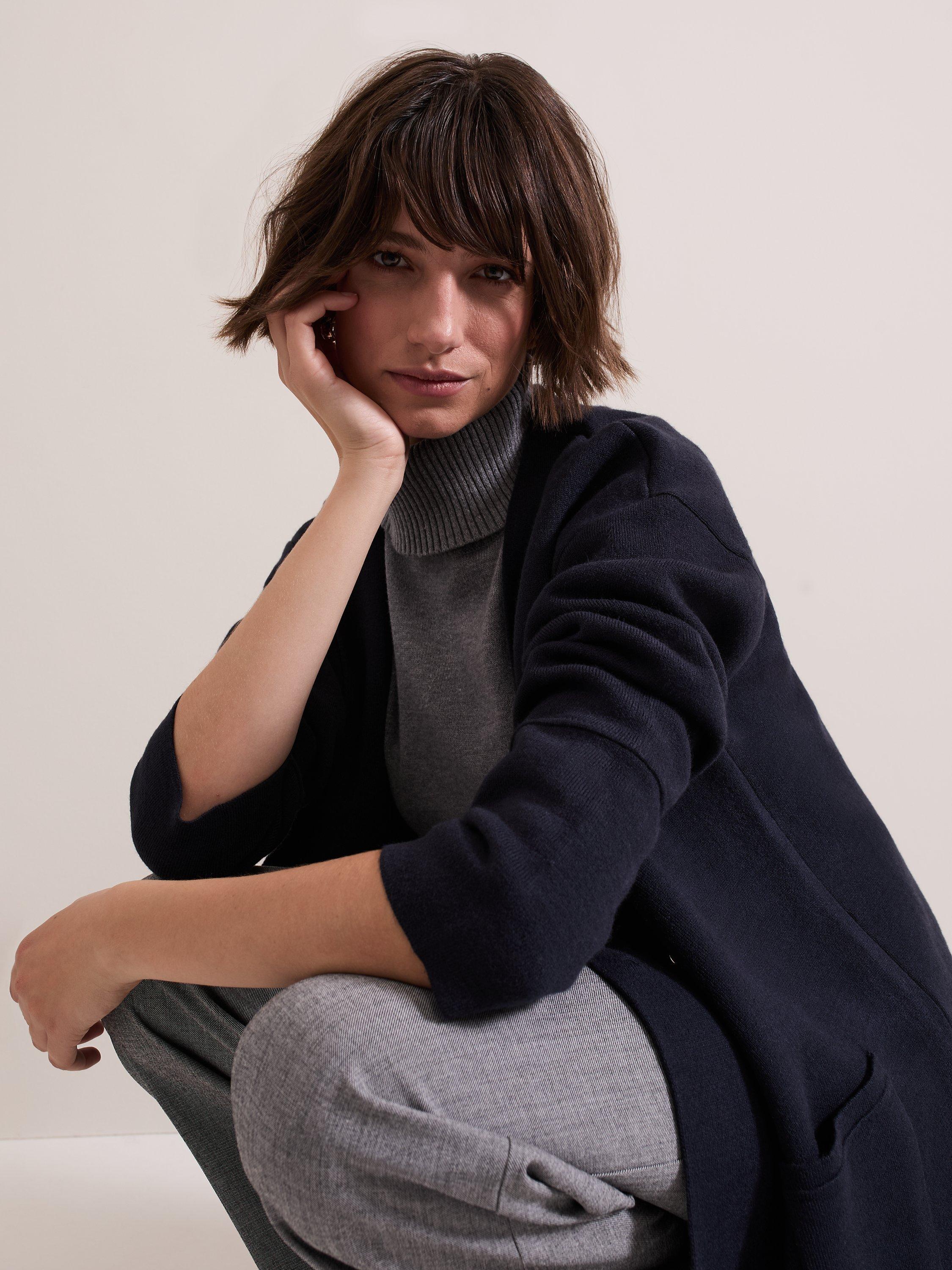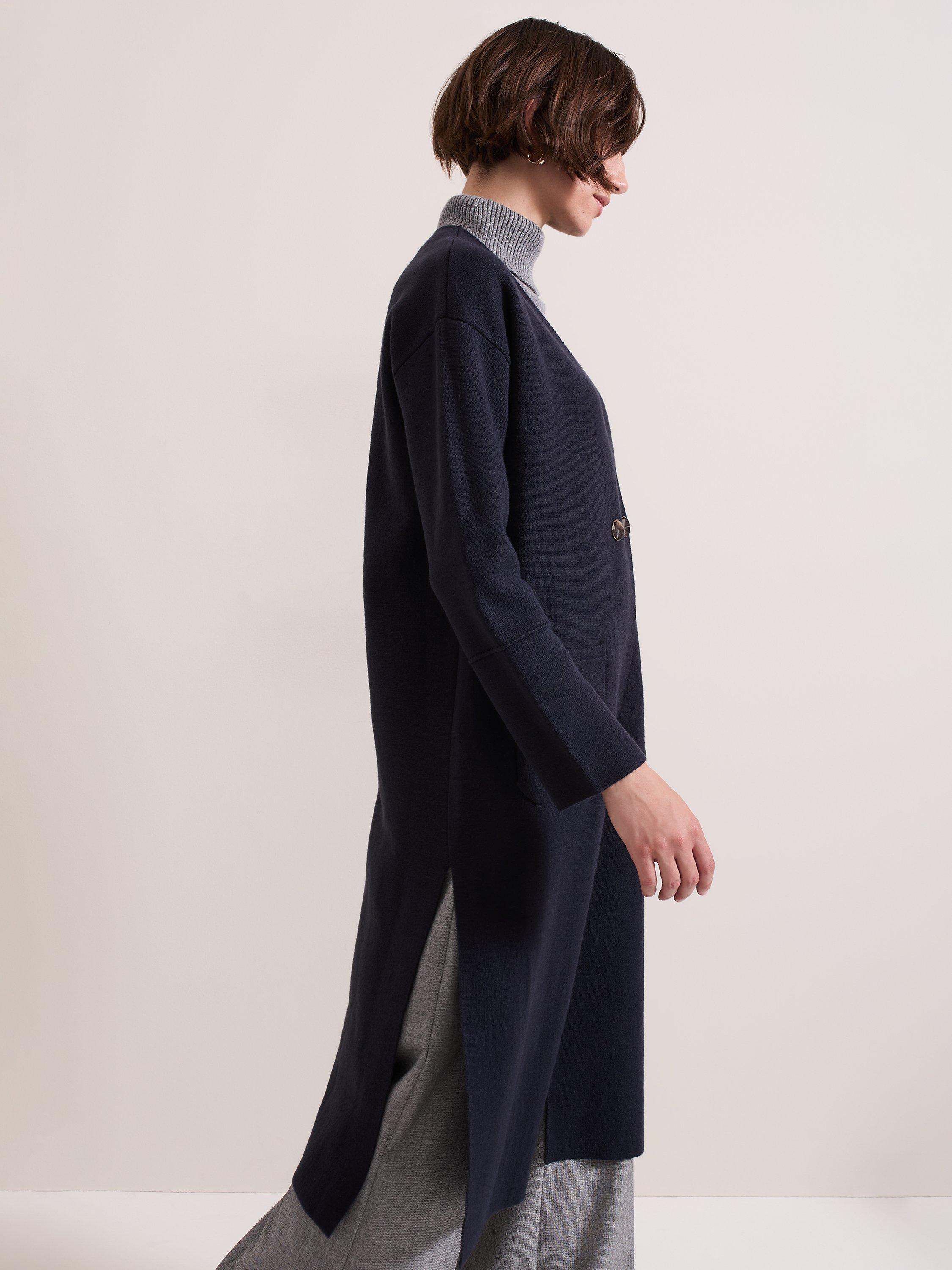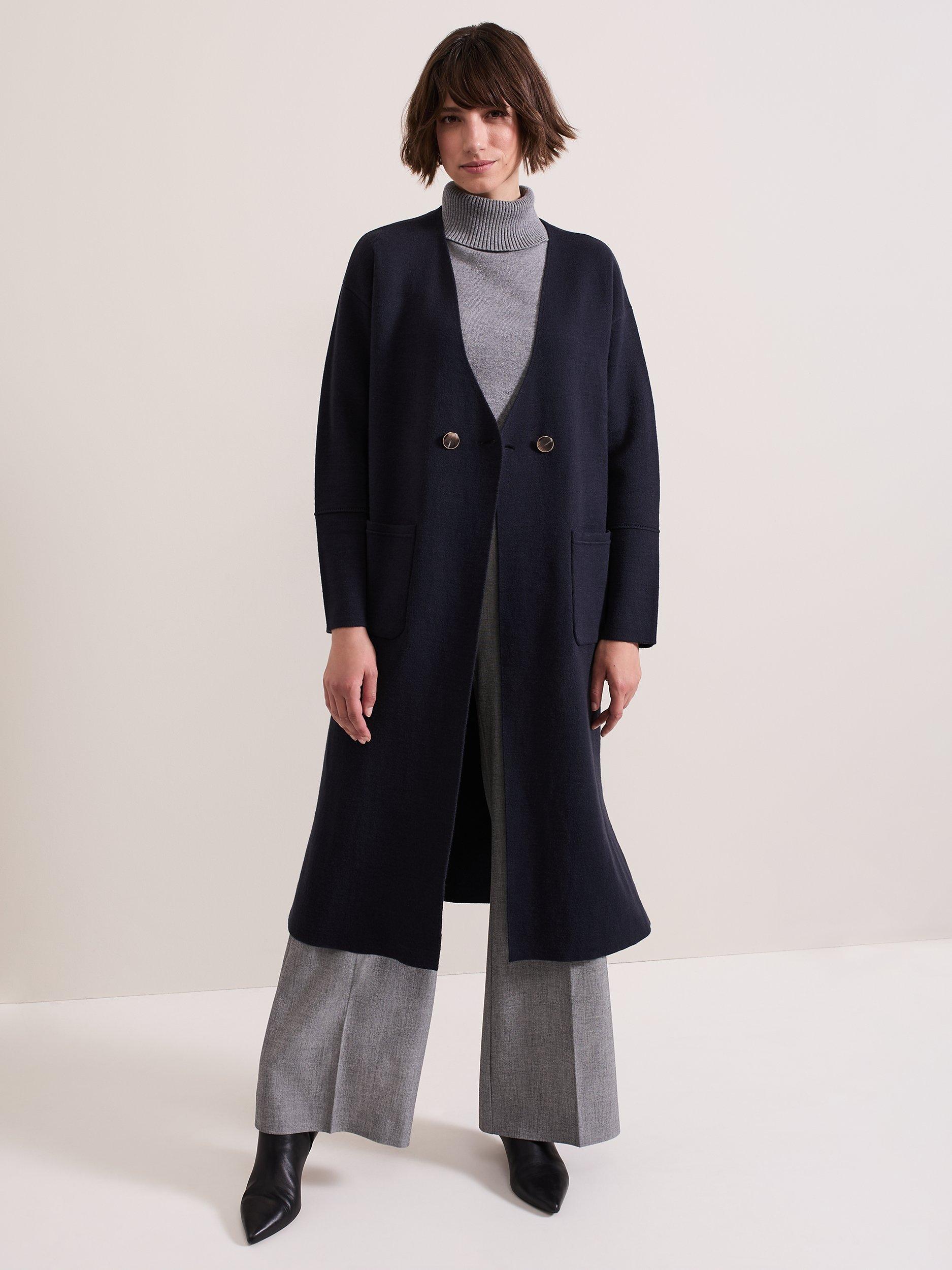 Designed in a classic shade our double breasted Destiny coatigan is cut to a longline silhouette and features large statement pockets. Tortoiseshell and gold button detailing, structured seams and the extended split hem creates the perfect finish.