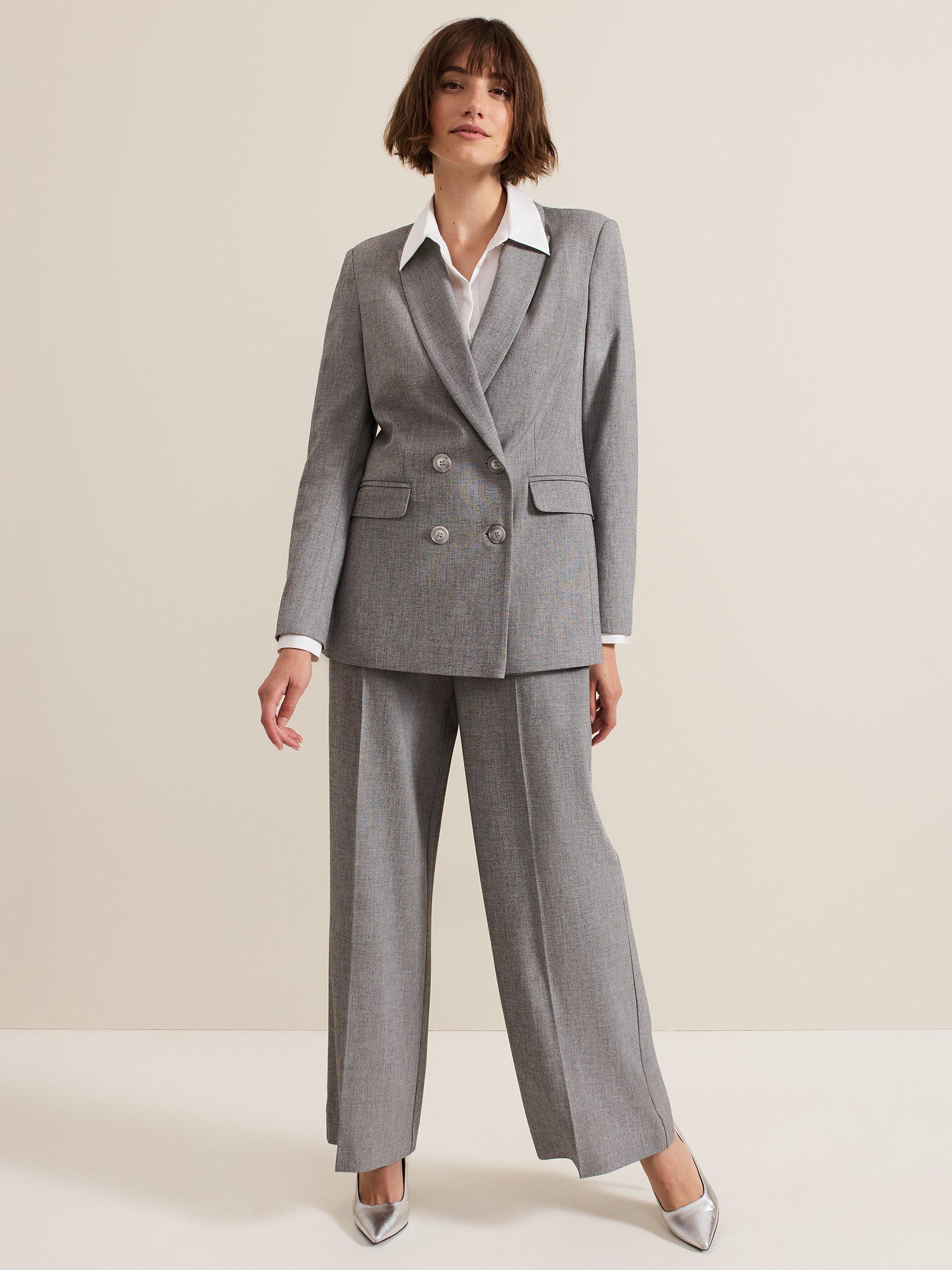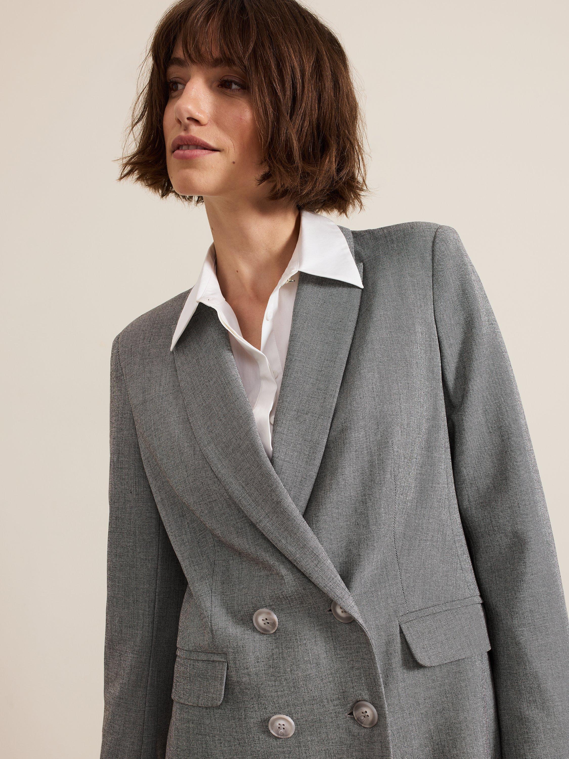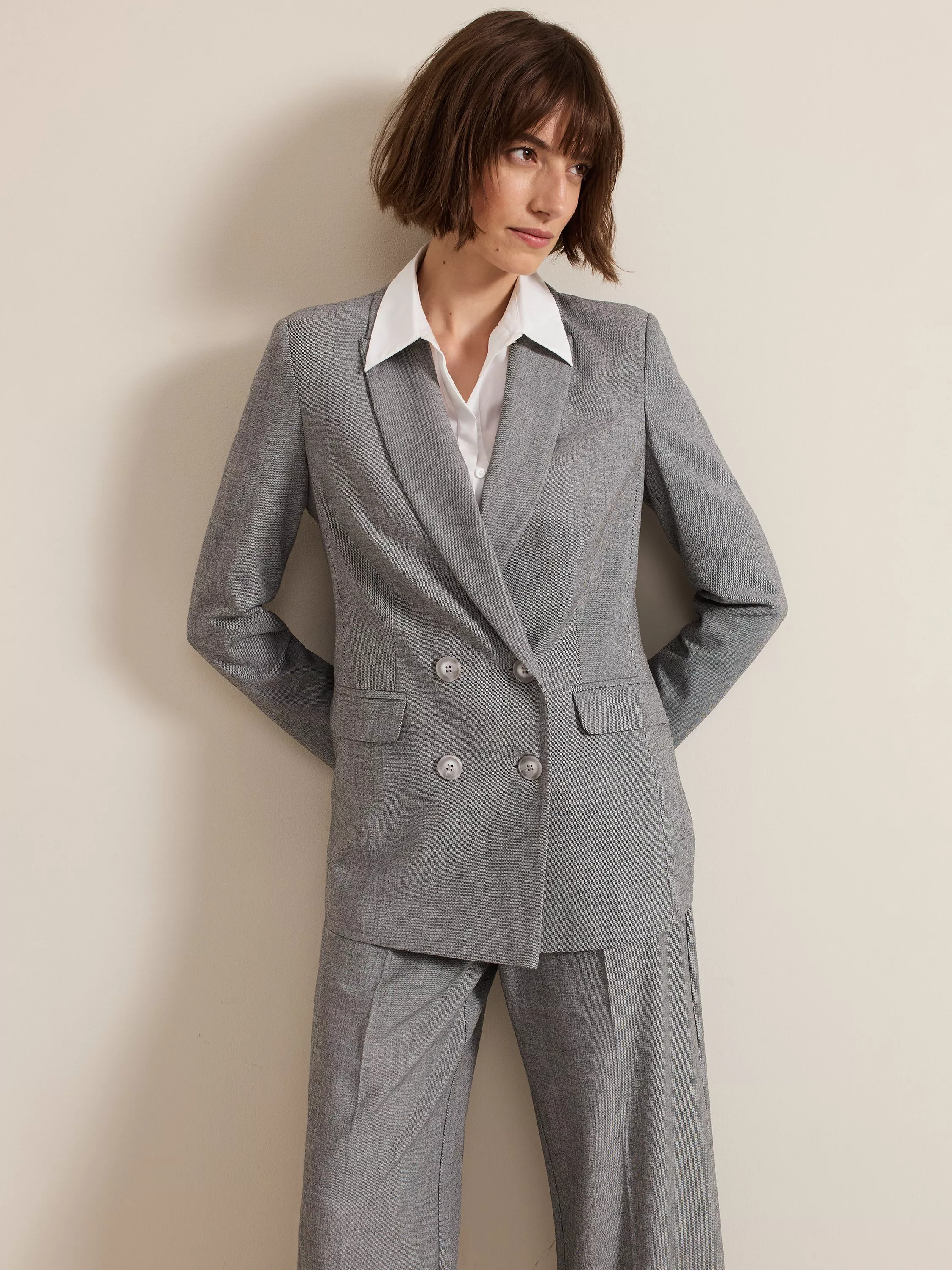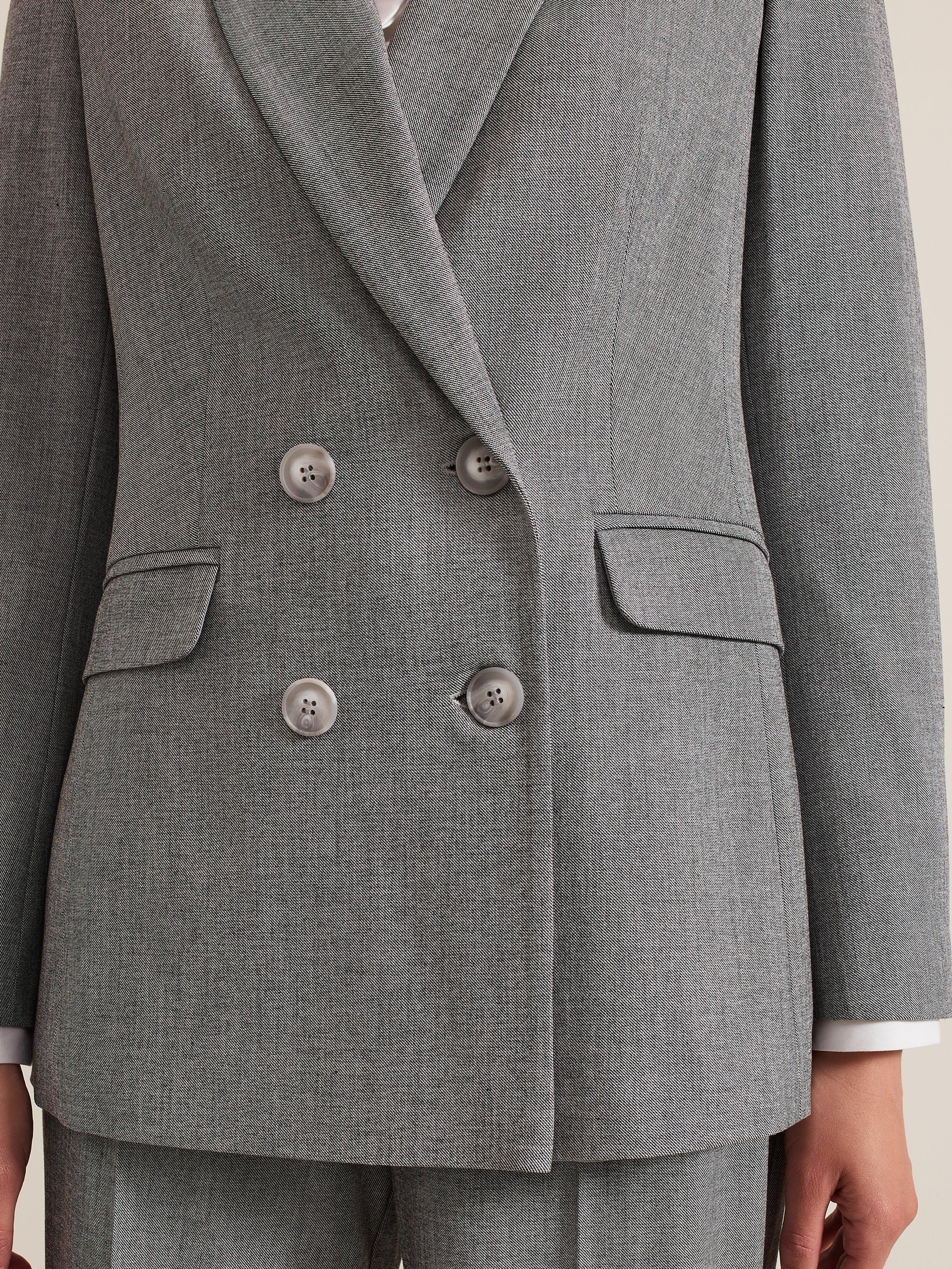 The Dilly double-breasted blazer features handy pockets and button detailing.