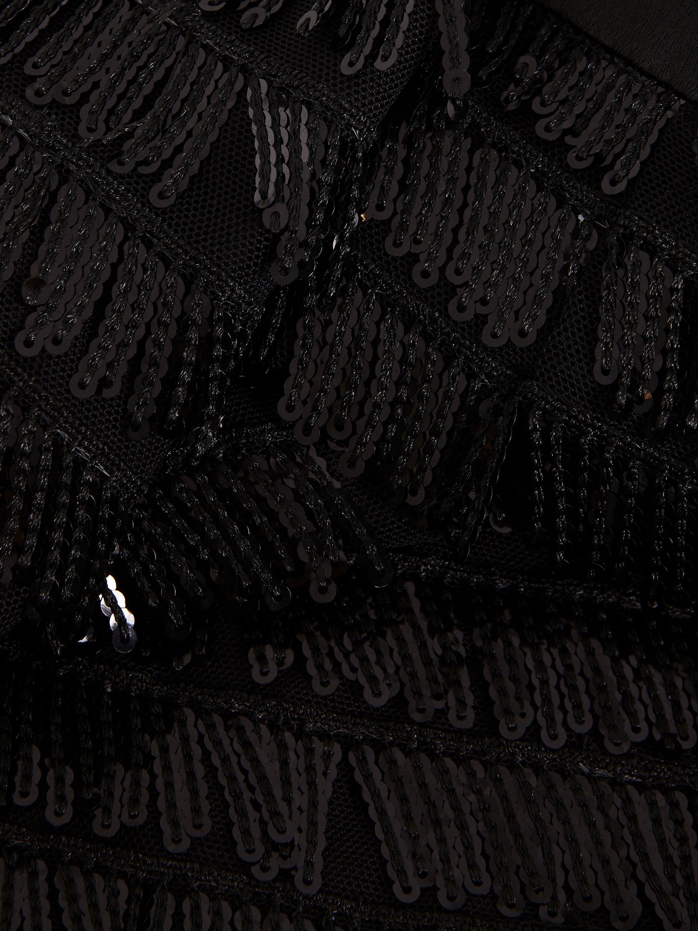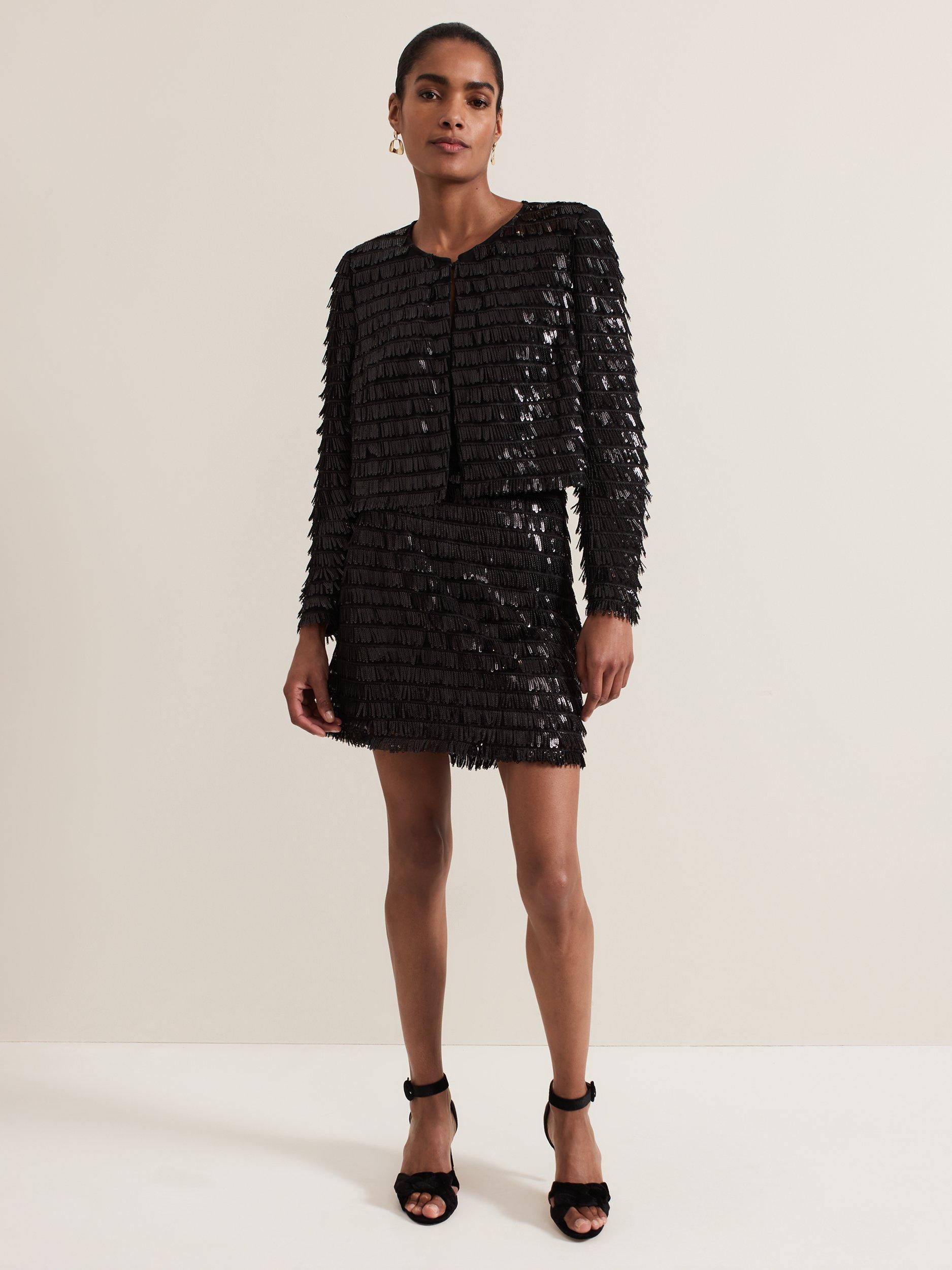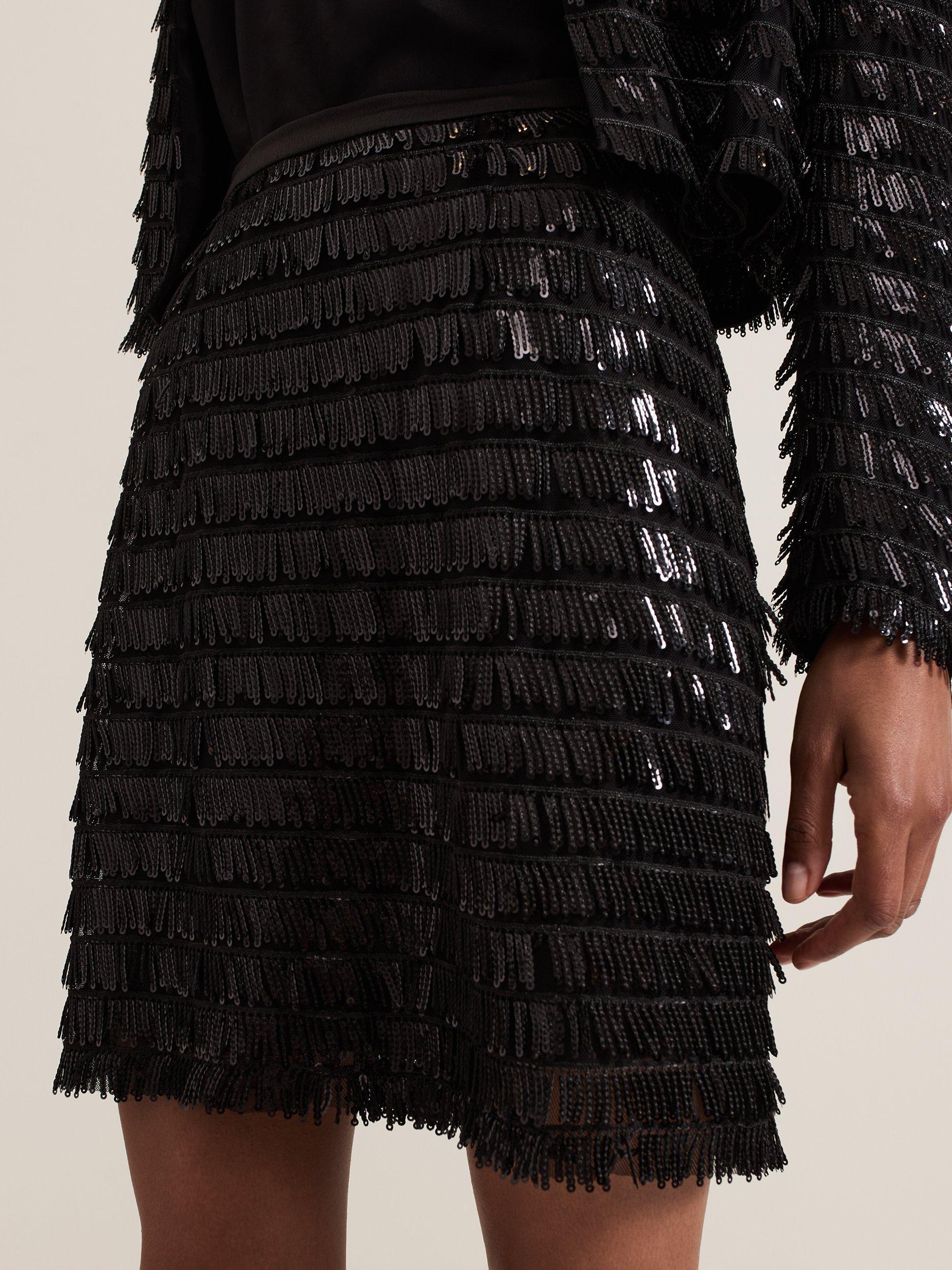 Designed in classic black, this Dolly skirt features sequin tassels throughout, falling to a midi length above the knee. Pair with the matching Dolly jacket for a coordinated look.