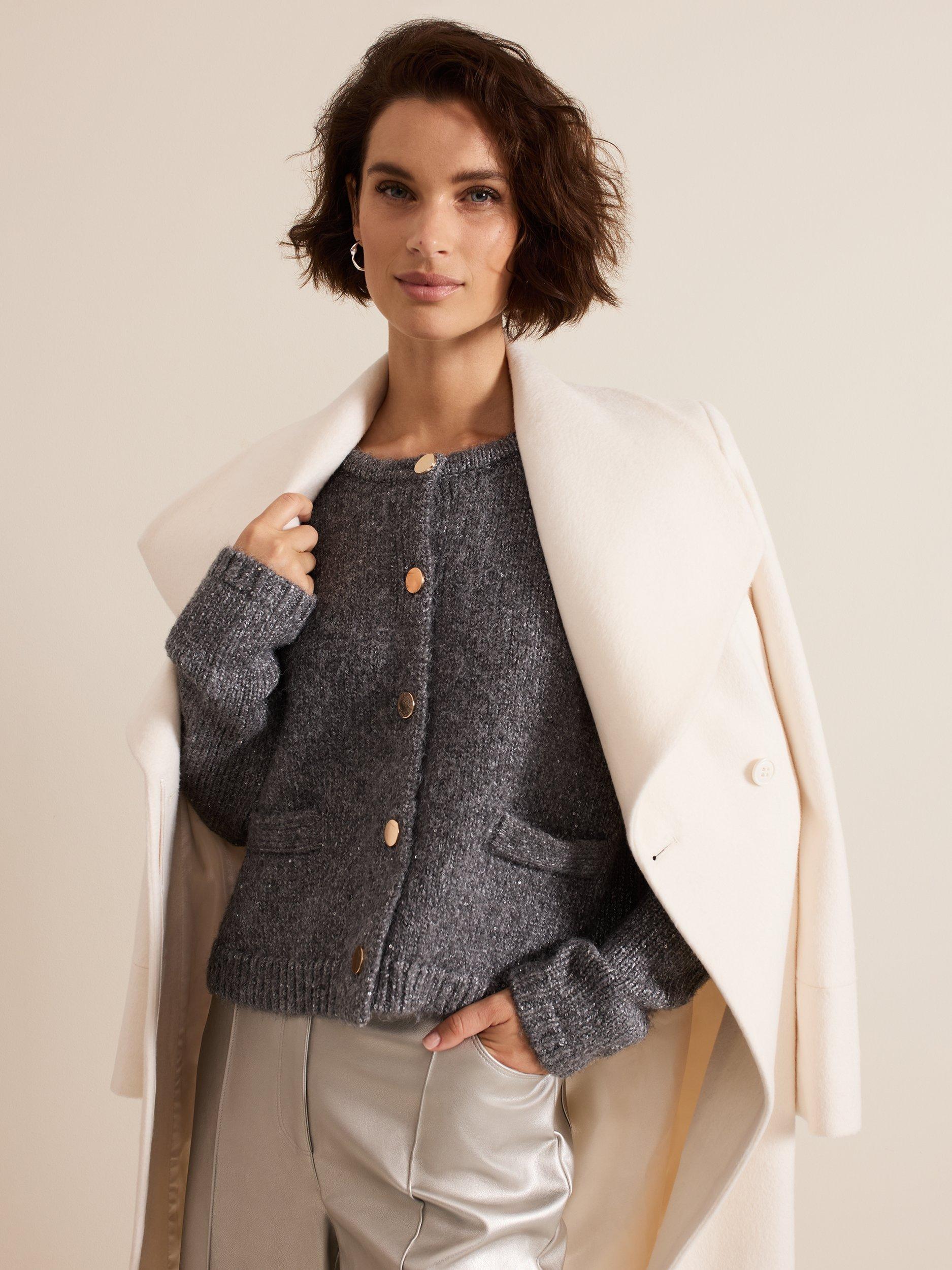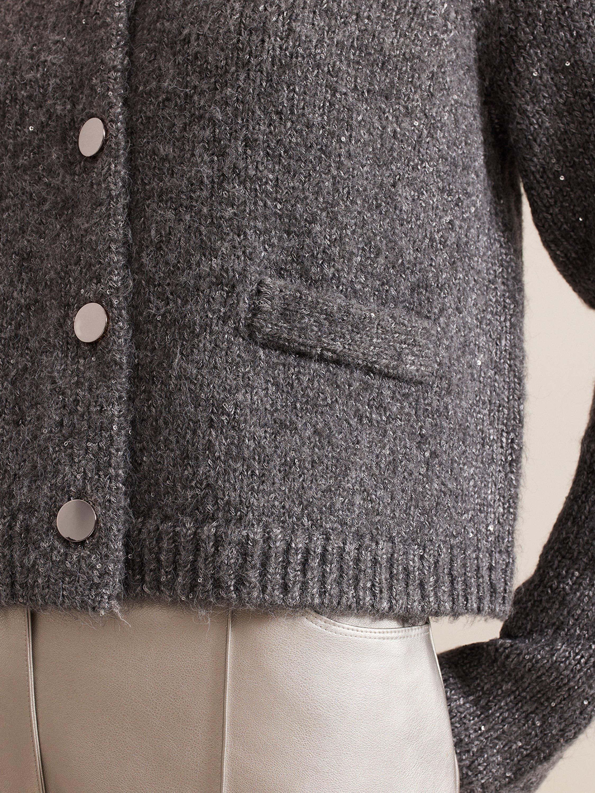 Meet your new favourite jacket. In a timeless shade, this jacket features faux front pockets, subtle sequin detailing throughout and is finished with statement buttons. Layer effortlessly over all of your favourite outfits to add an extra bit of sparkle.