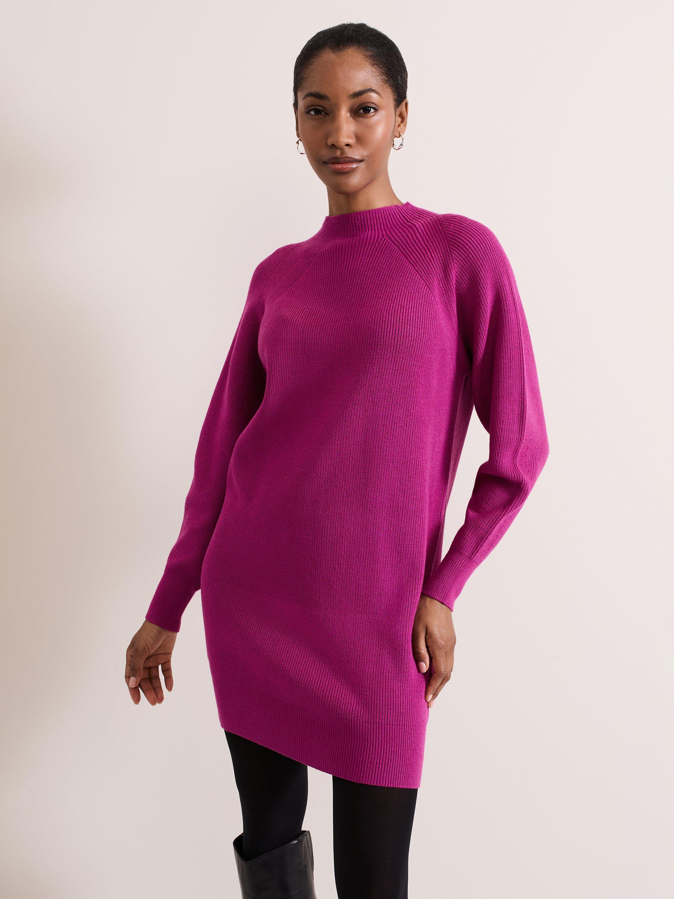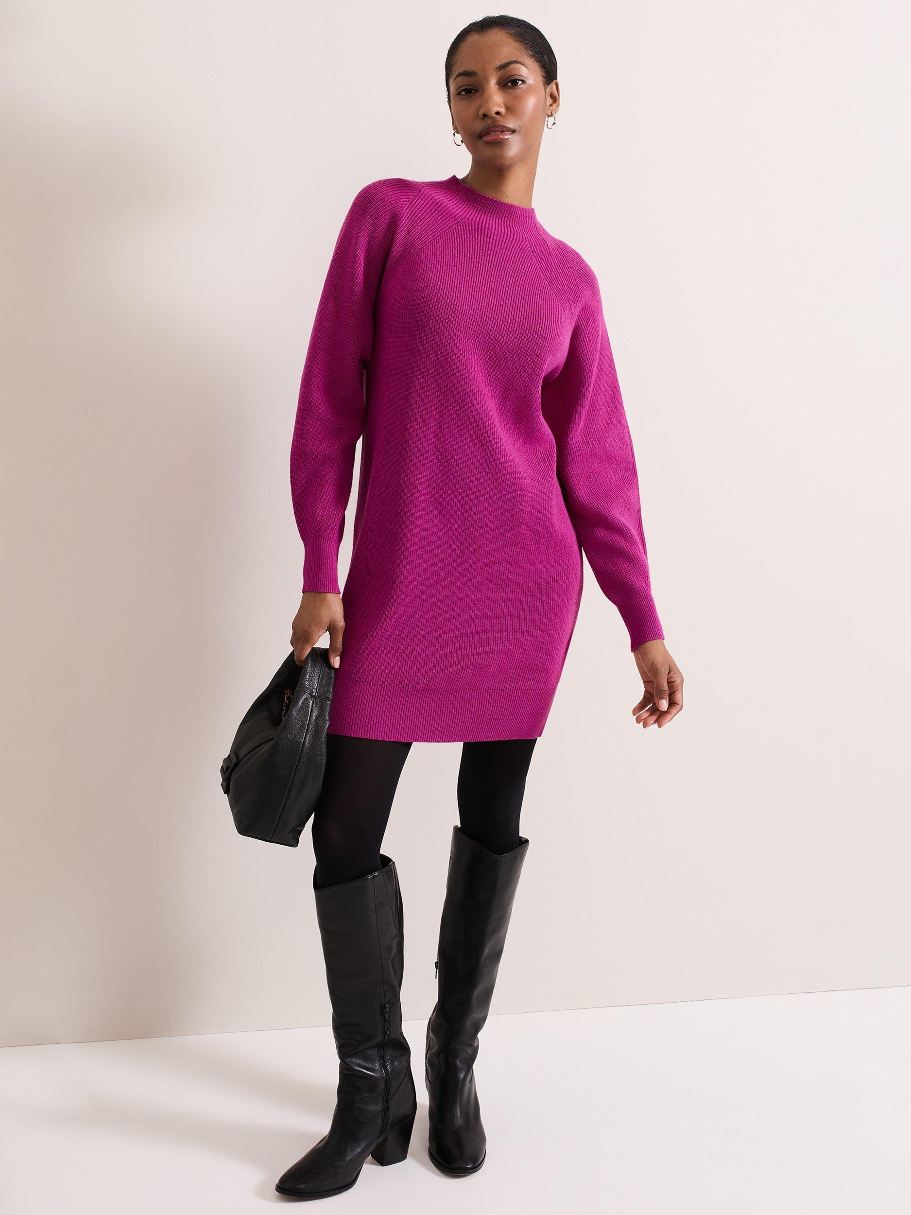 Designed in a gorgeous shade the Eliana dress features a high neckline, contrast ribbed detailing and long sleeves. For a refined feminine style we pair ours with tights and knee high boots.