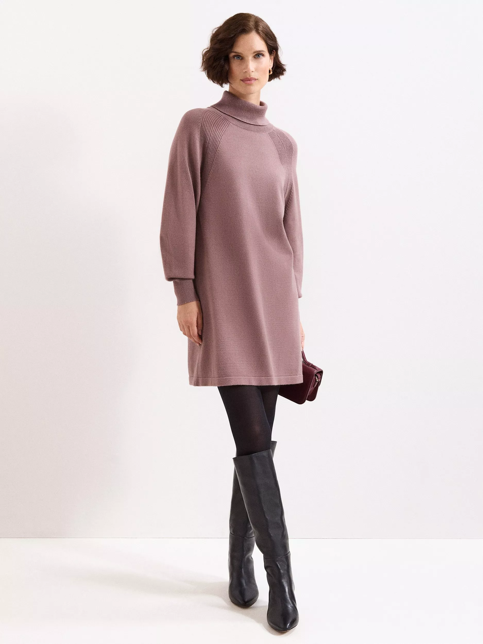 A cosy choice that delivers on comfort and style, this chunky thigh-grazing dress from Phase Eight is defined by a funnel neck and full-length sleeves.