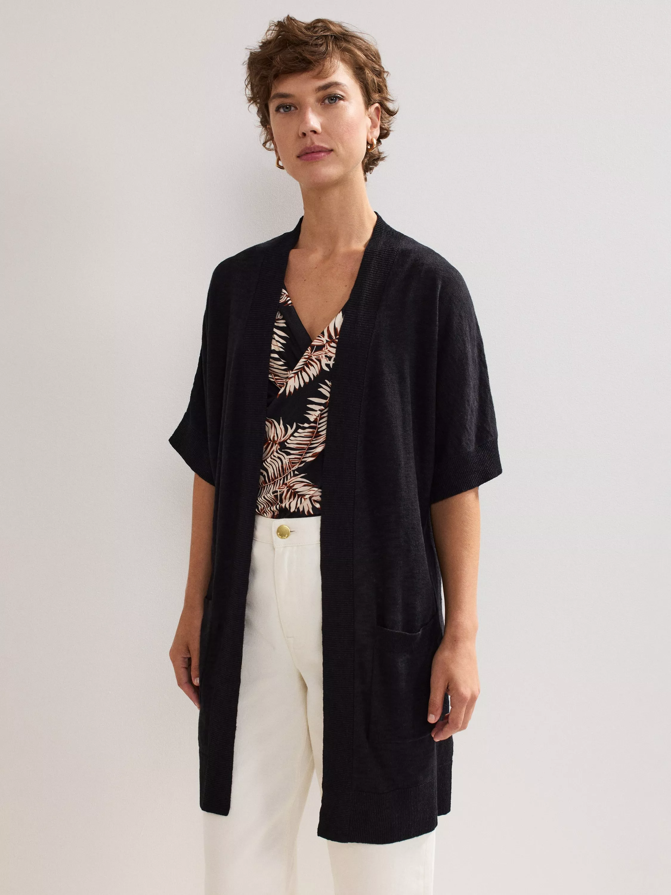 A layering staple since styling began, the humble cardigan gets a welcome update from Phase Eight. The brand opts for a soft fabric consisting largely of linen and incorporates short sleeves to give this piece an airy profile.