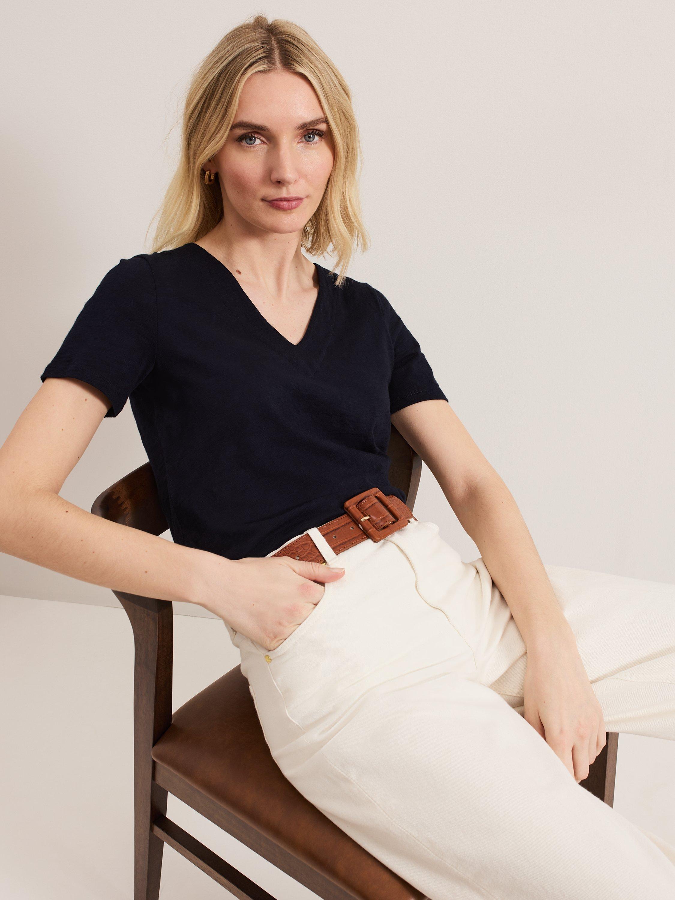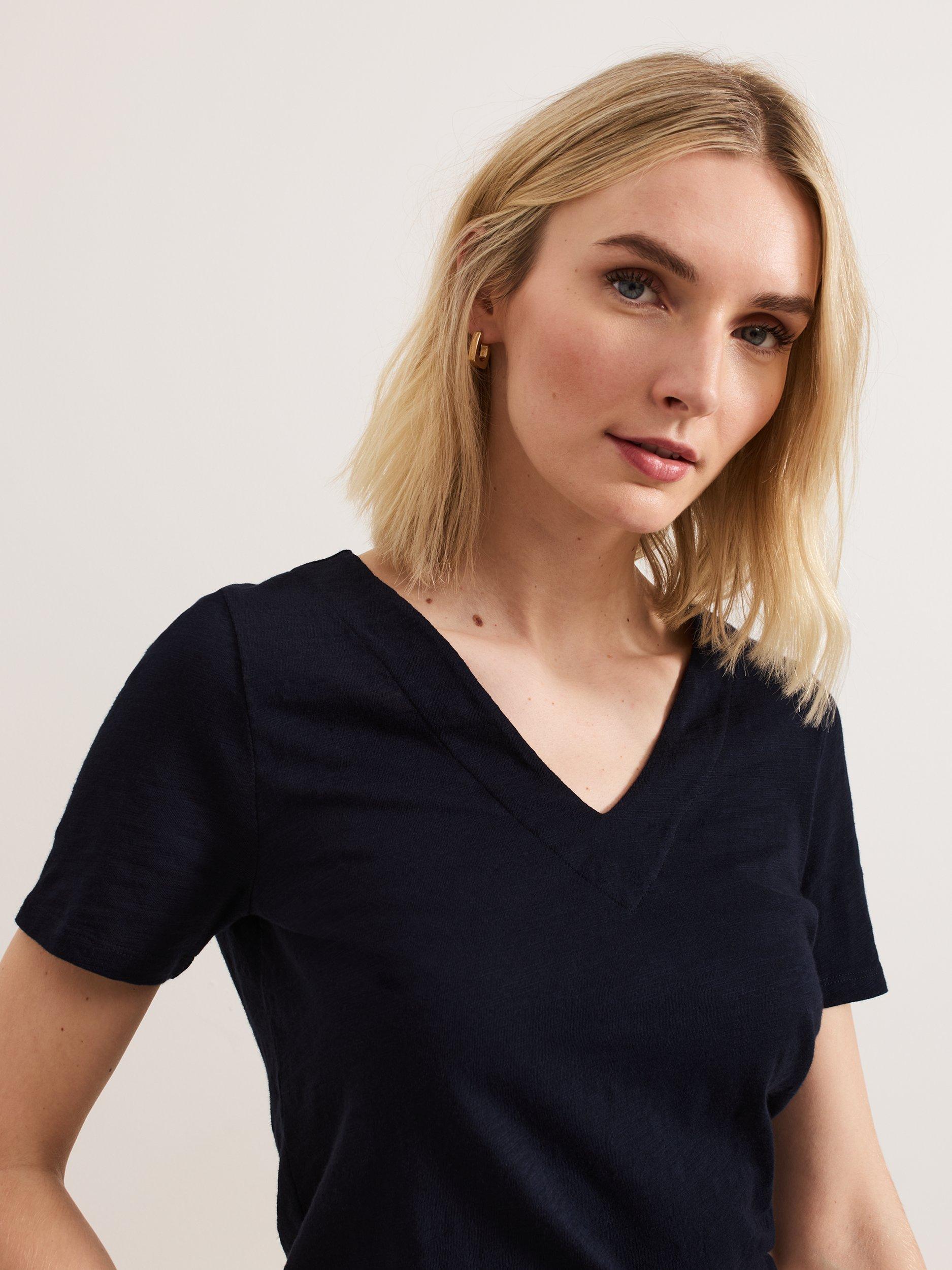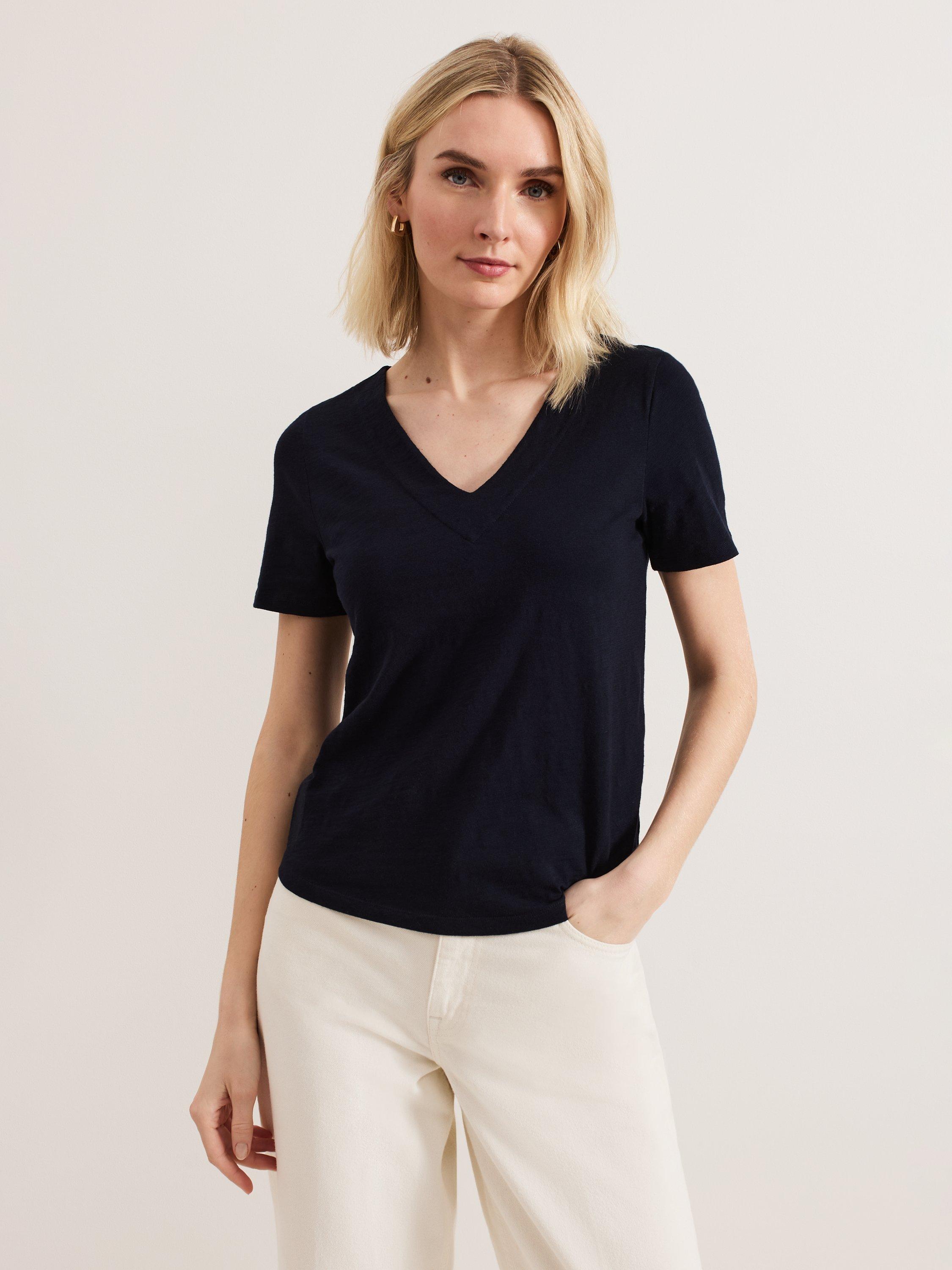 Every wardrobe needs a staple t-shirt. Our relaxed V-neck top is made from a soft, wearable cotton and pairs effortlessly with everything from skirts to jeans, and sandals to trainers.
