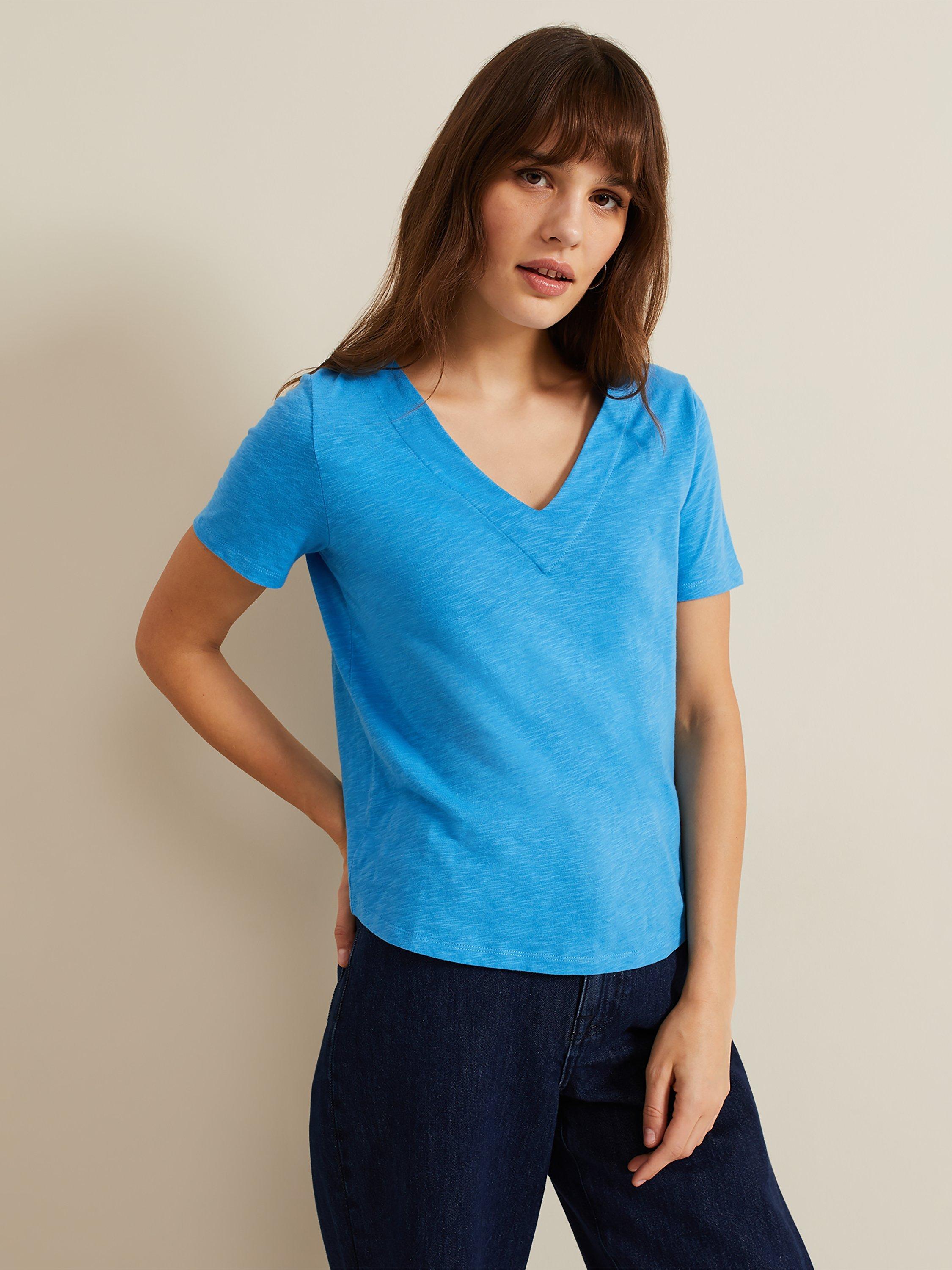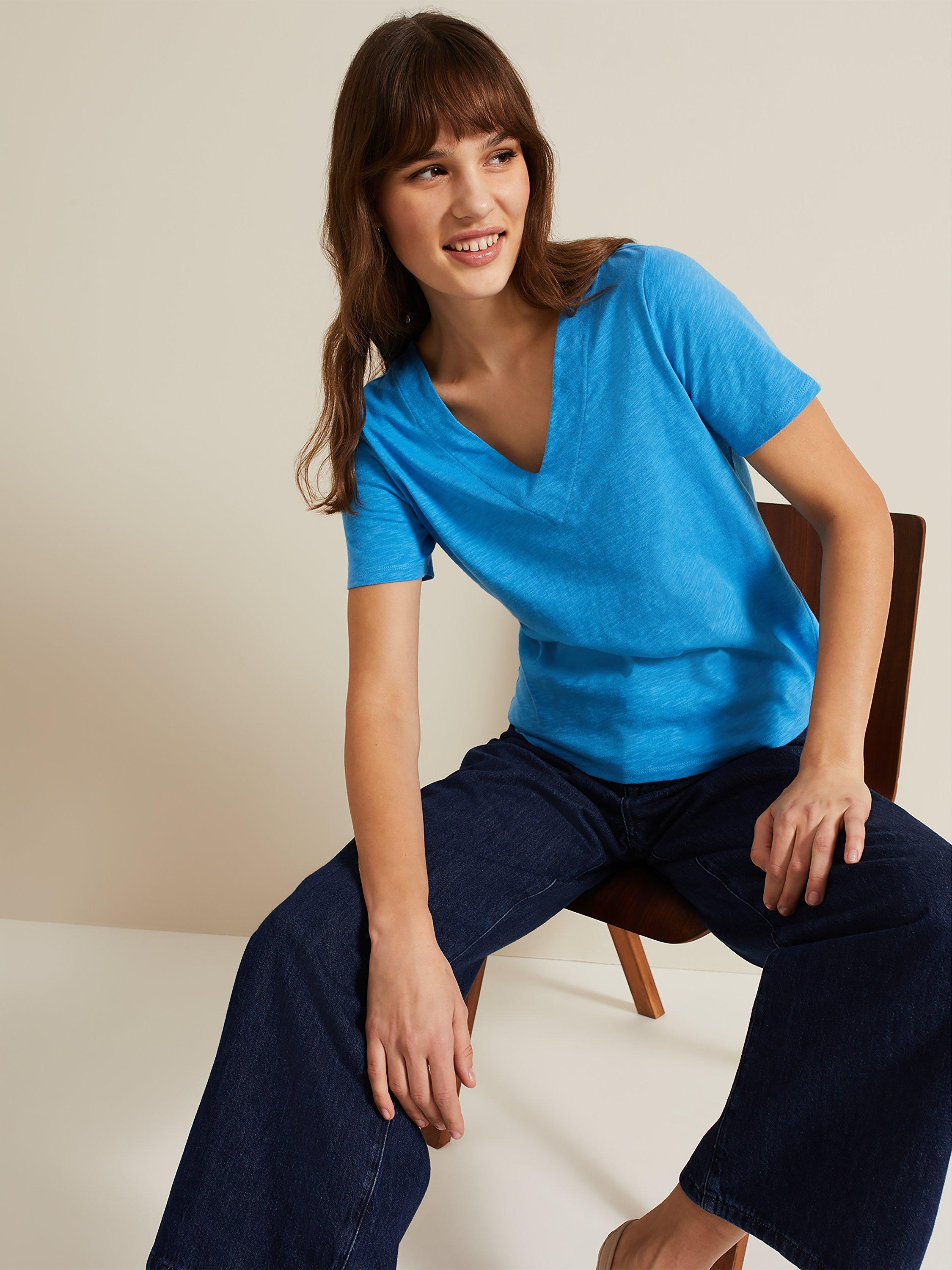 Classic in cut with a v-neckline and short sleeves, it's made from cotton for comfortable wear and slips on well with tonal denim ready for the summer.