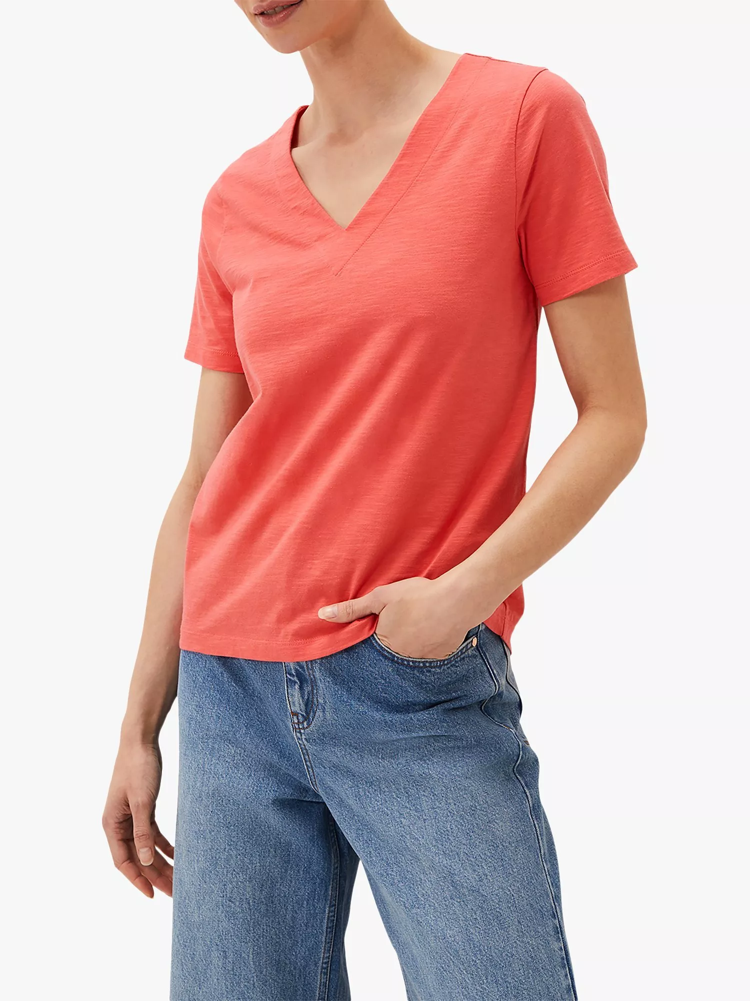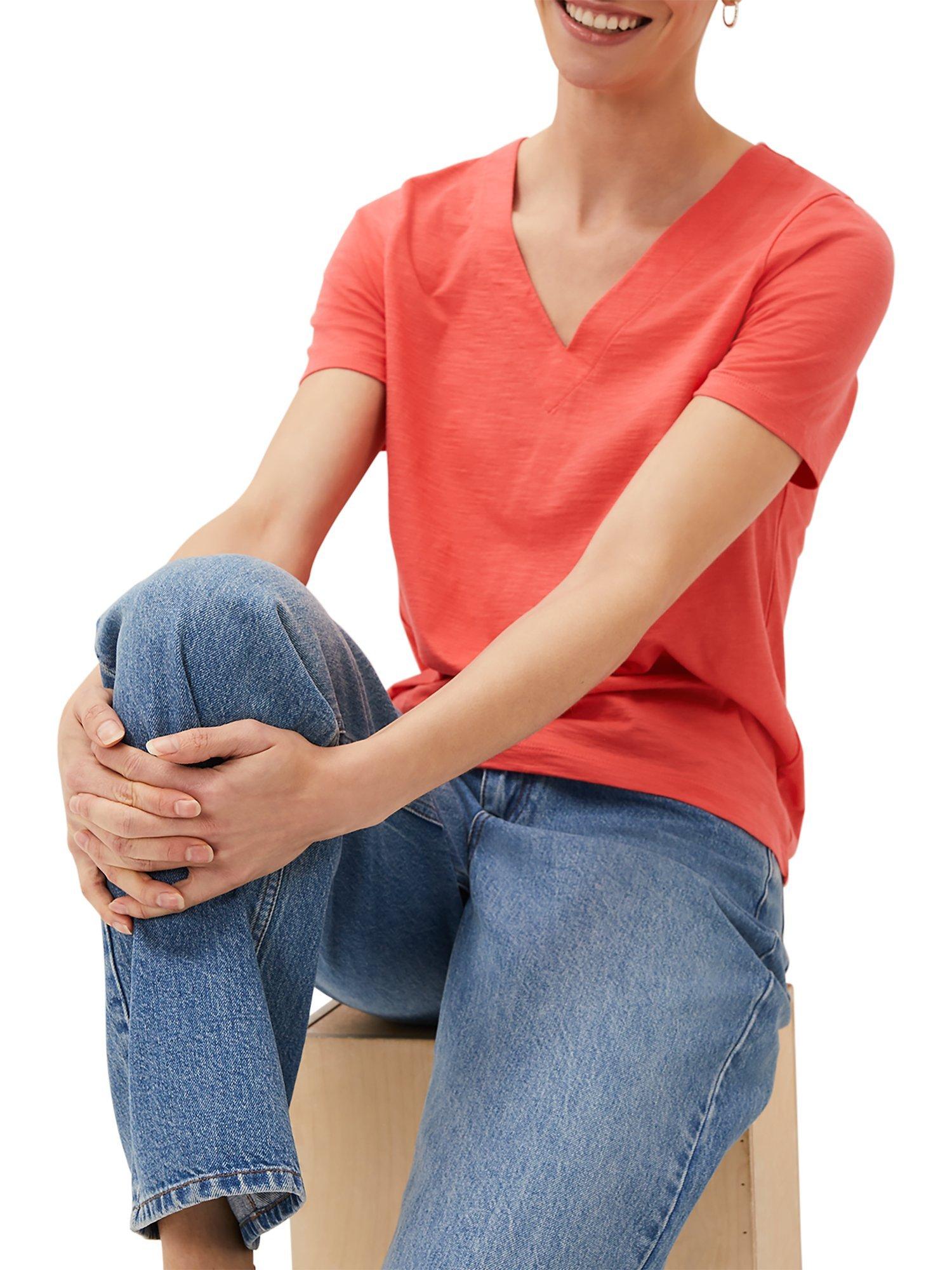Classic in cut with a v-neckline and short sleeves, it's made from cotton for comfortable wear and slips on well with tonal denim ready for the summer.