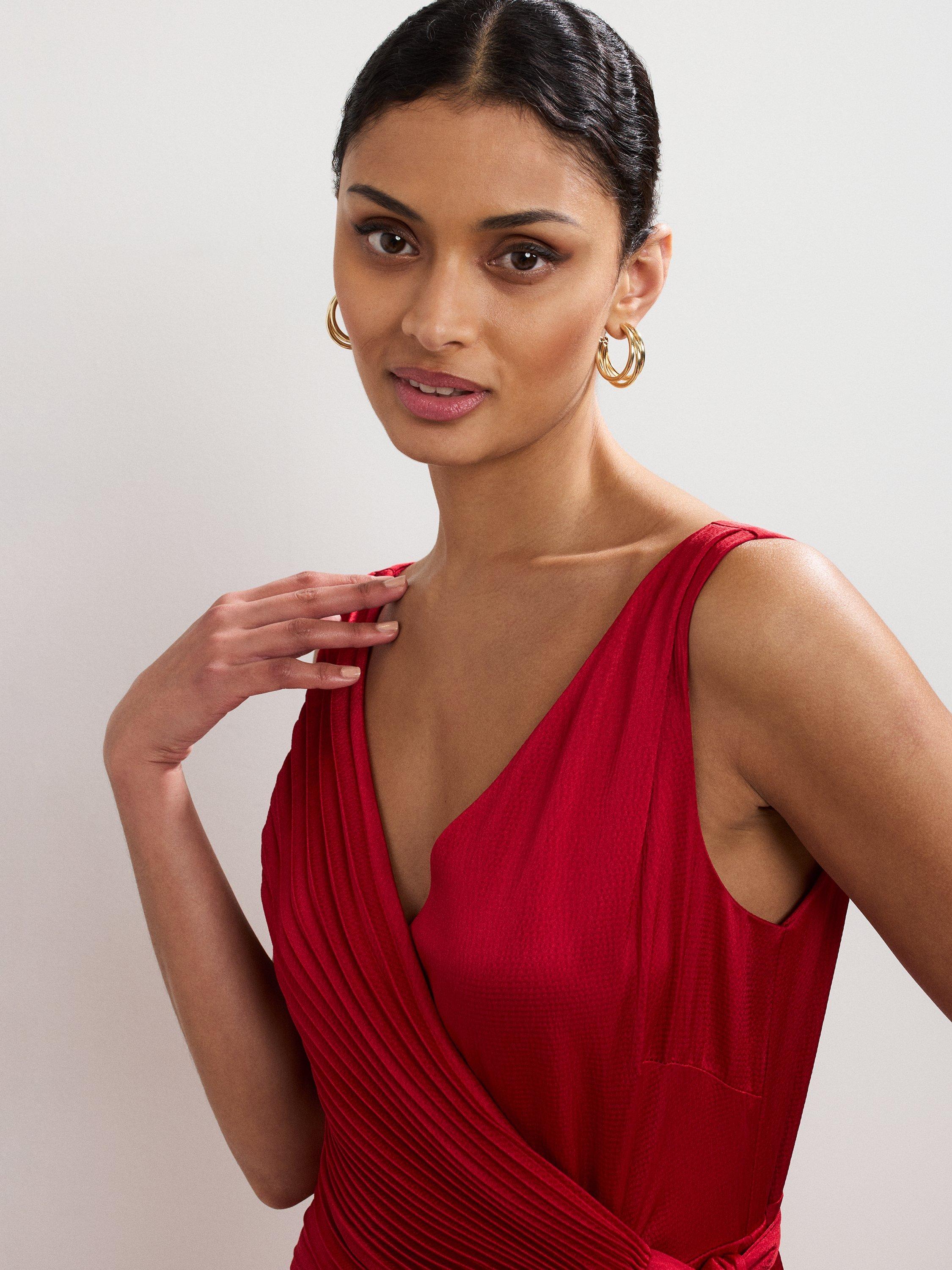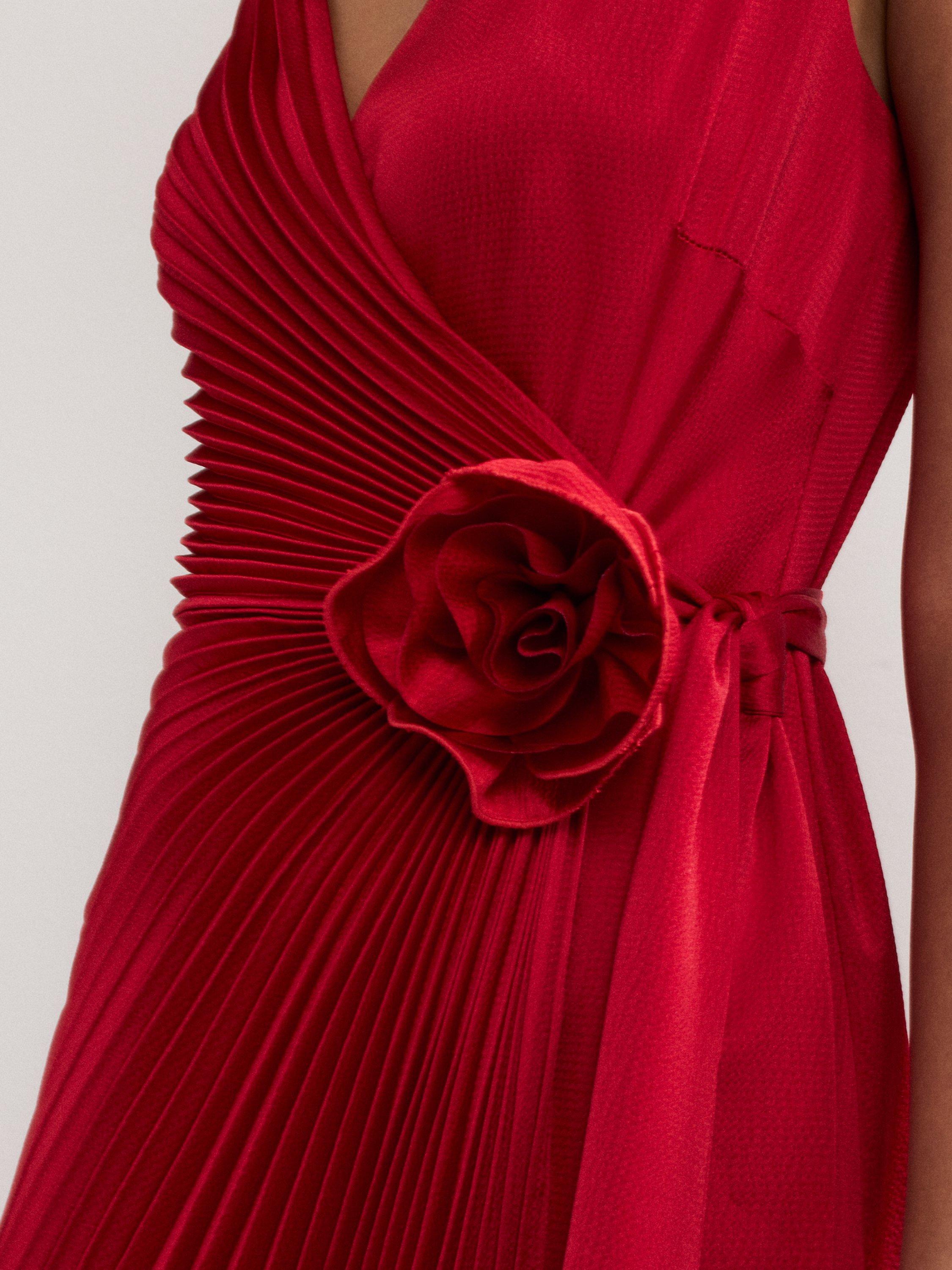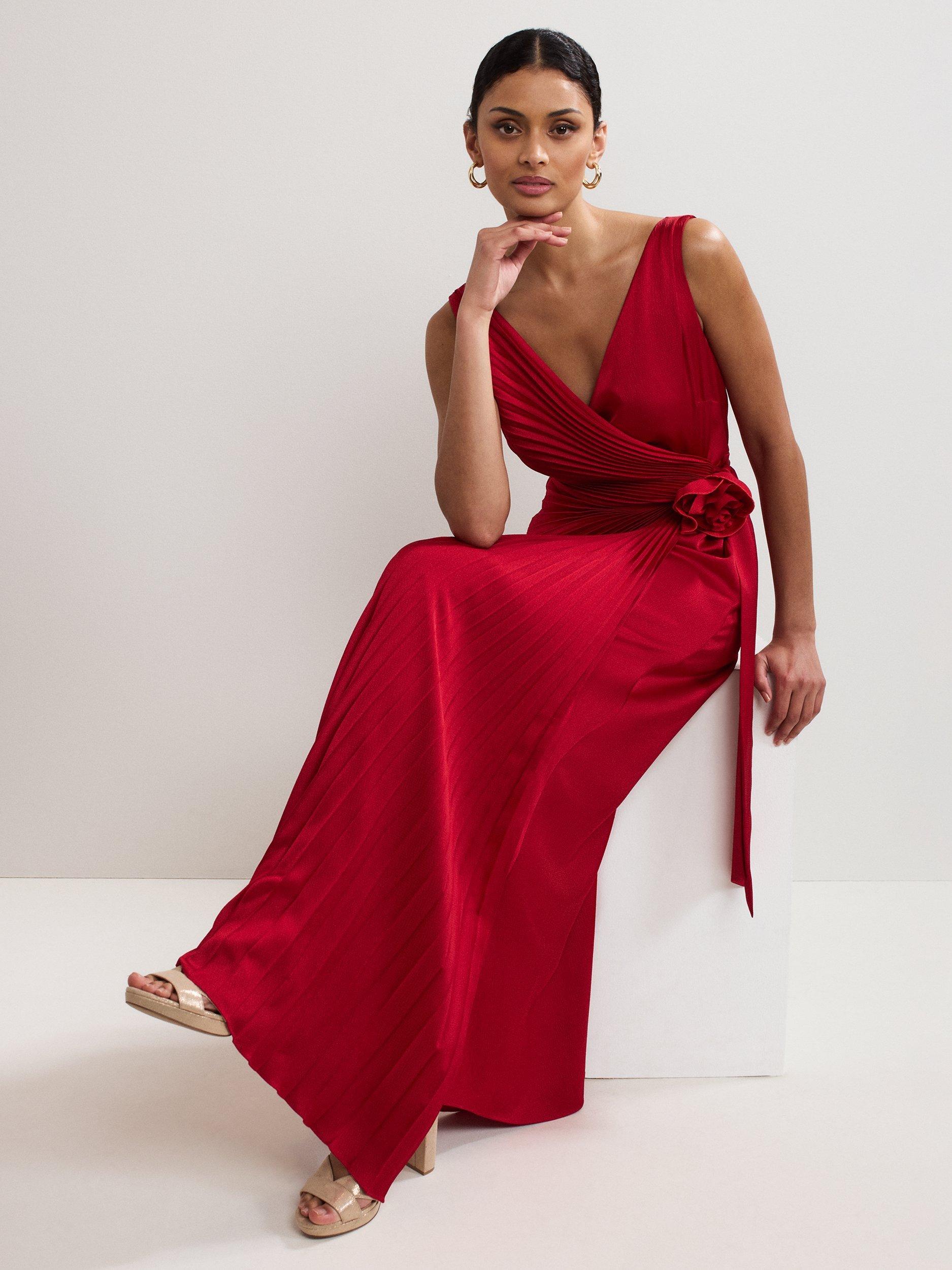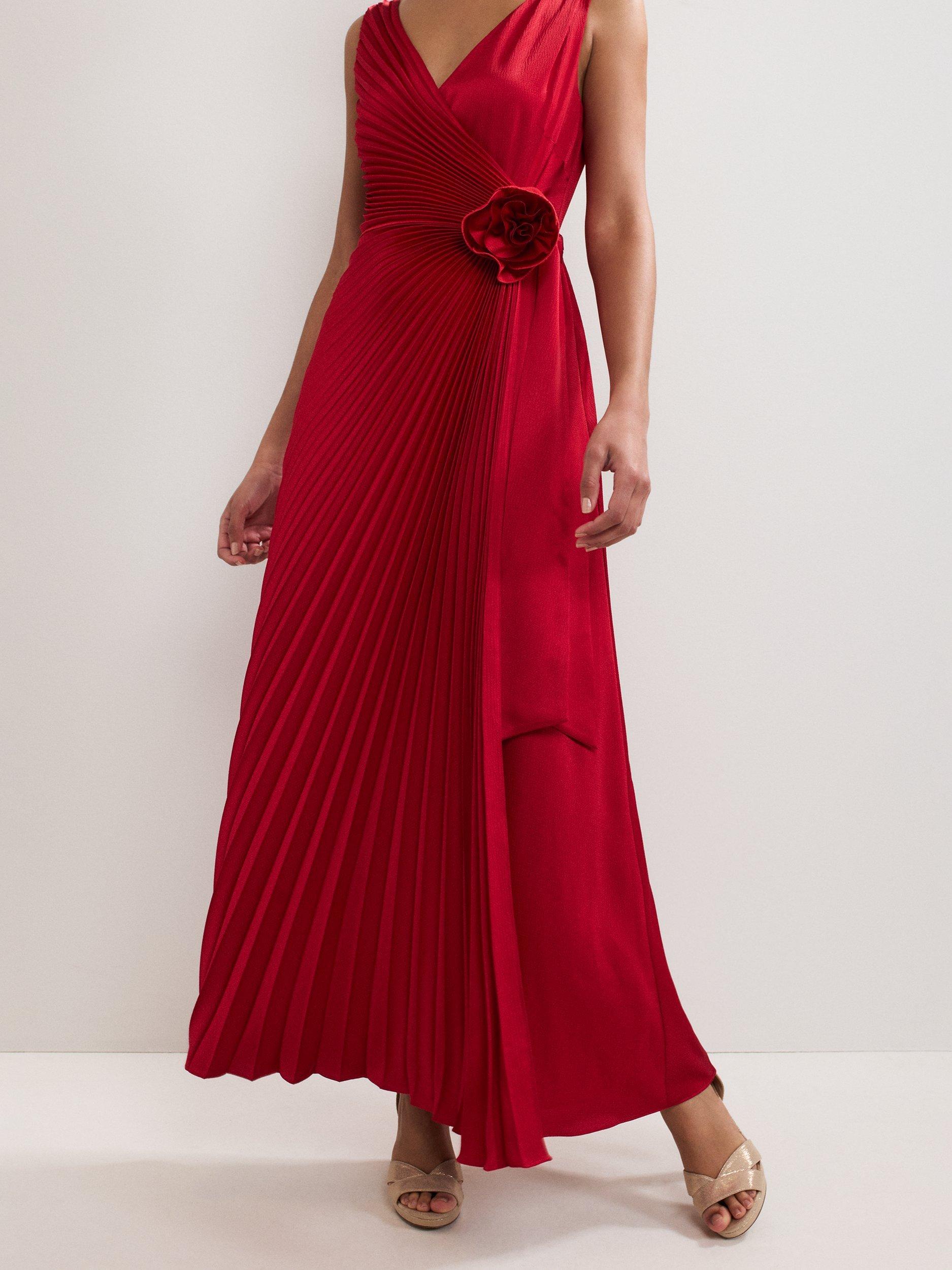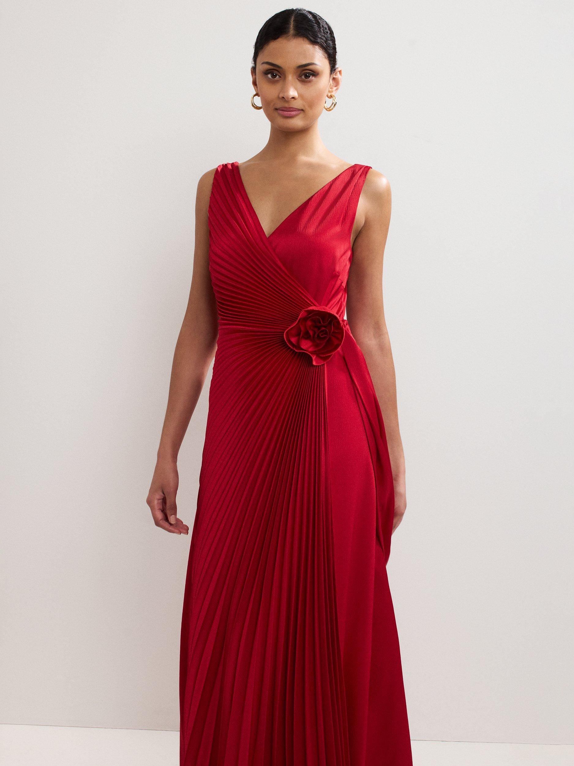 Falling into decidedly delicate pleats, this maxi dress from Phase Eight features a v-neck and back and a flower corsage at the waist.
