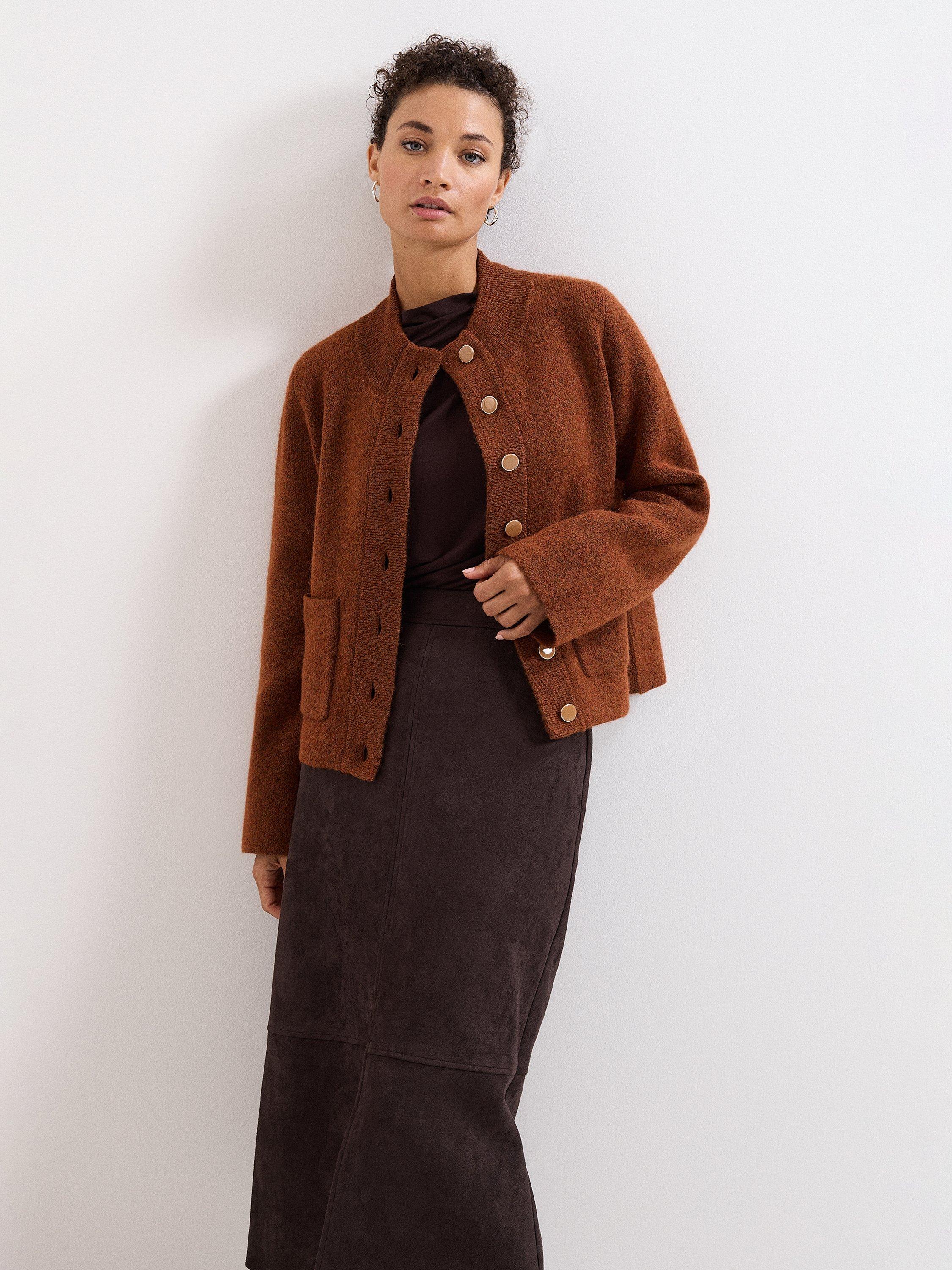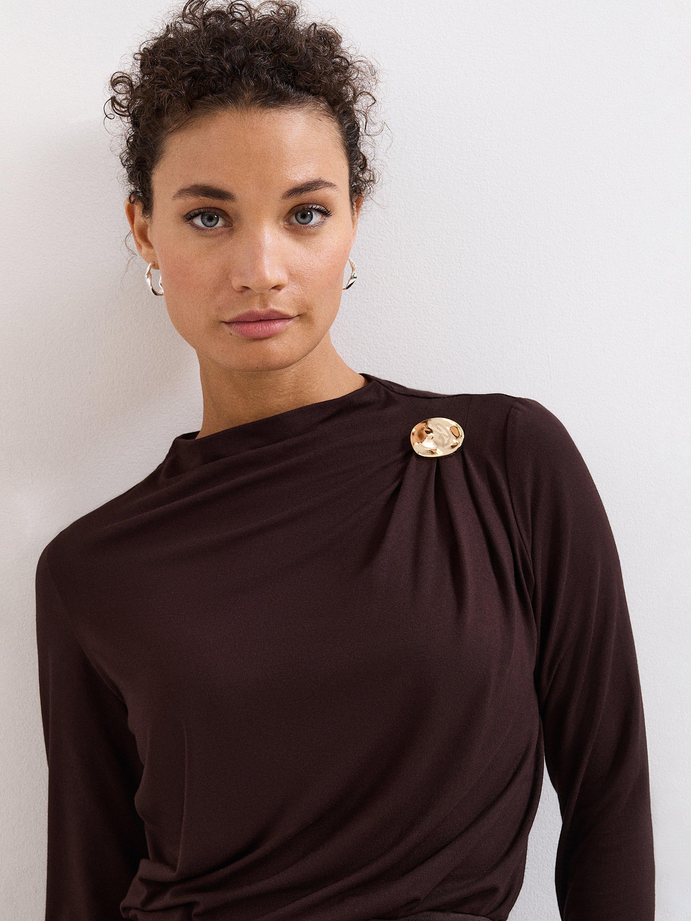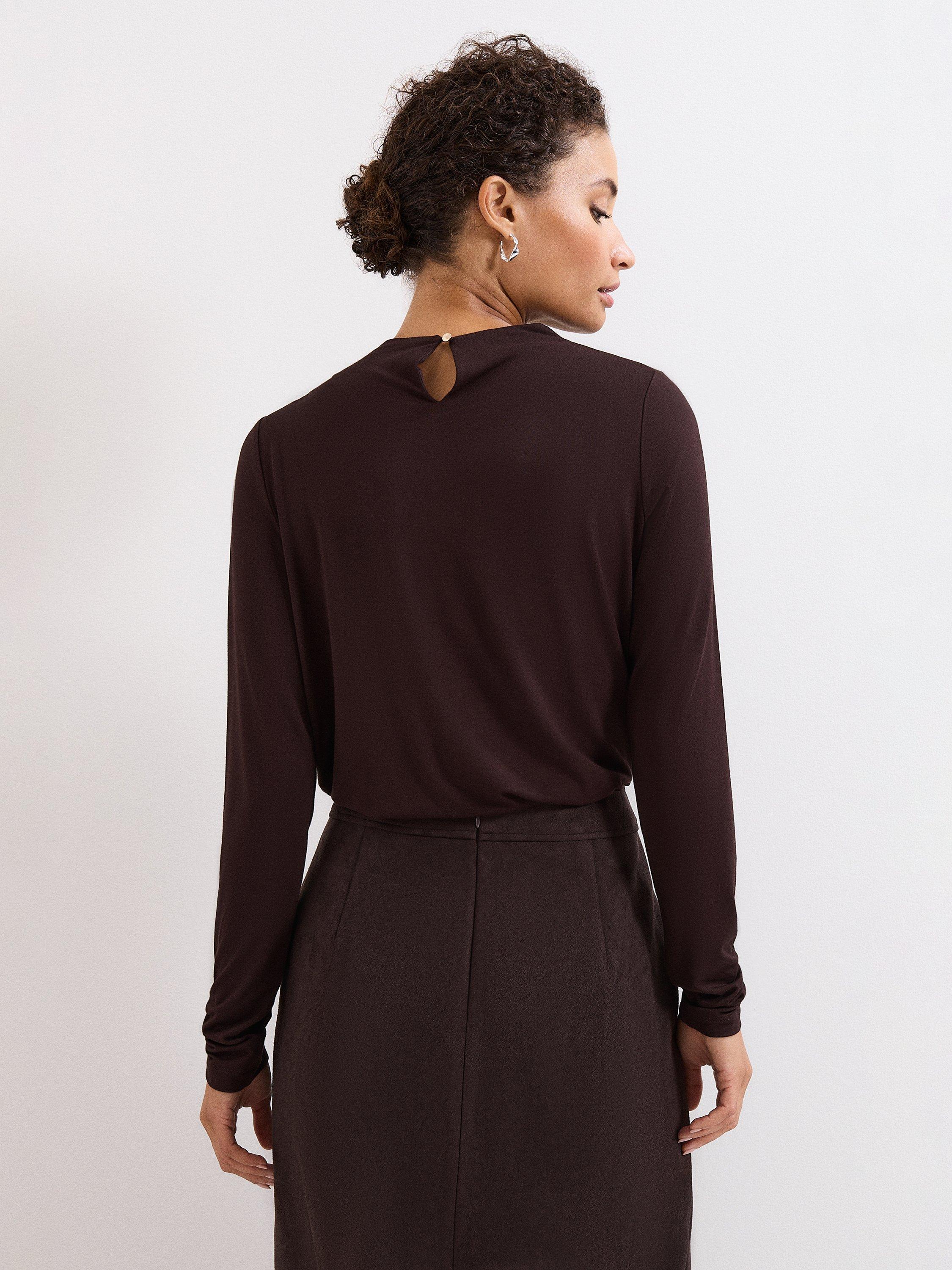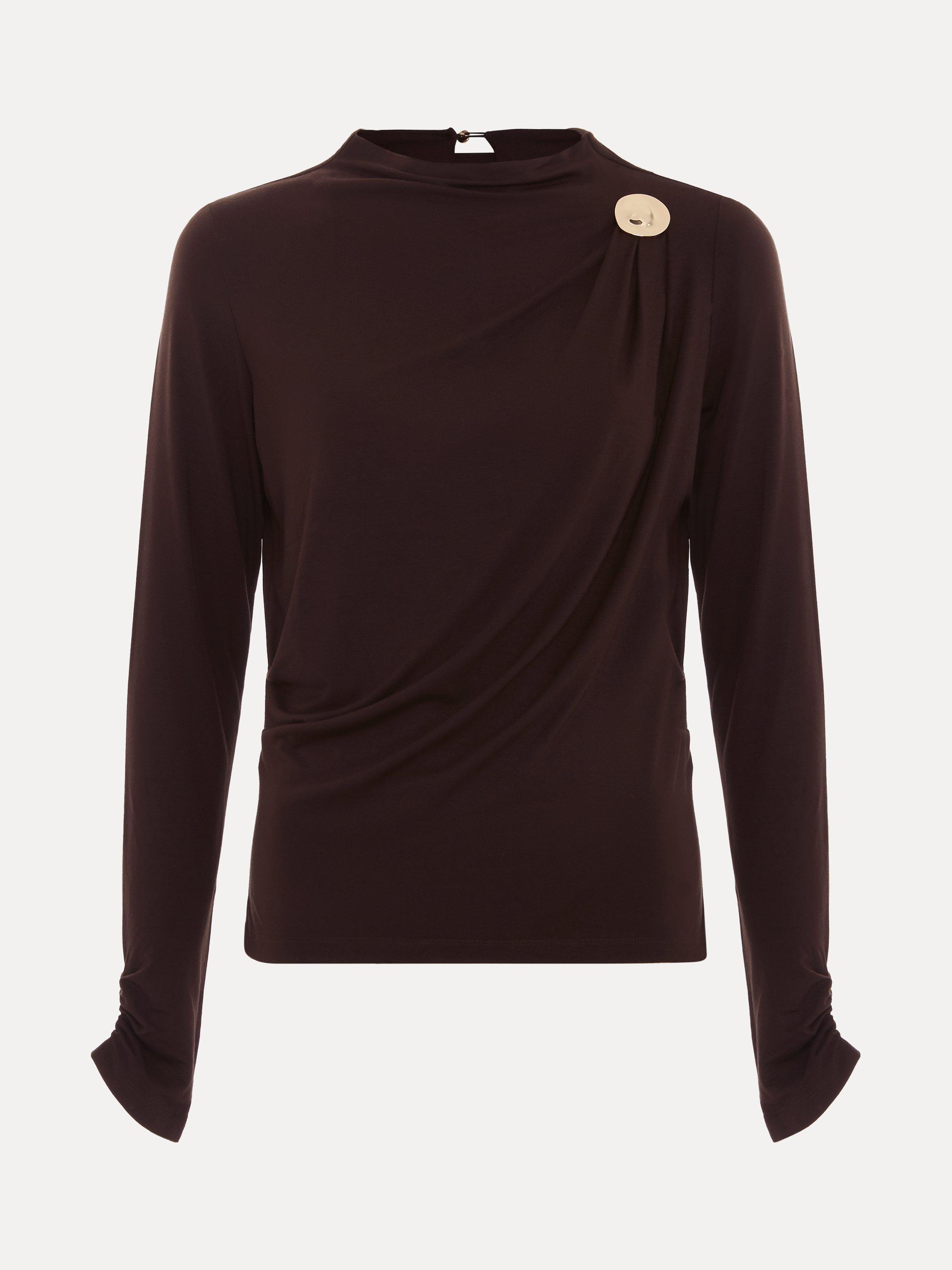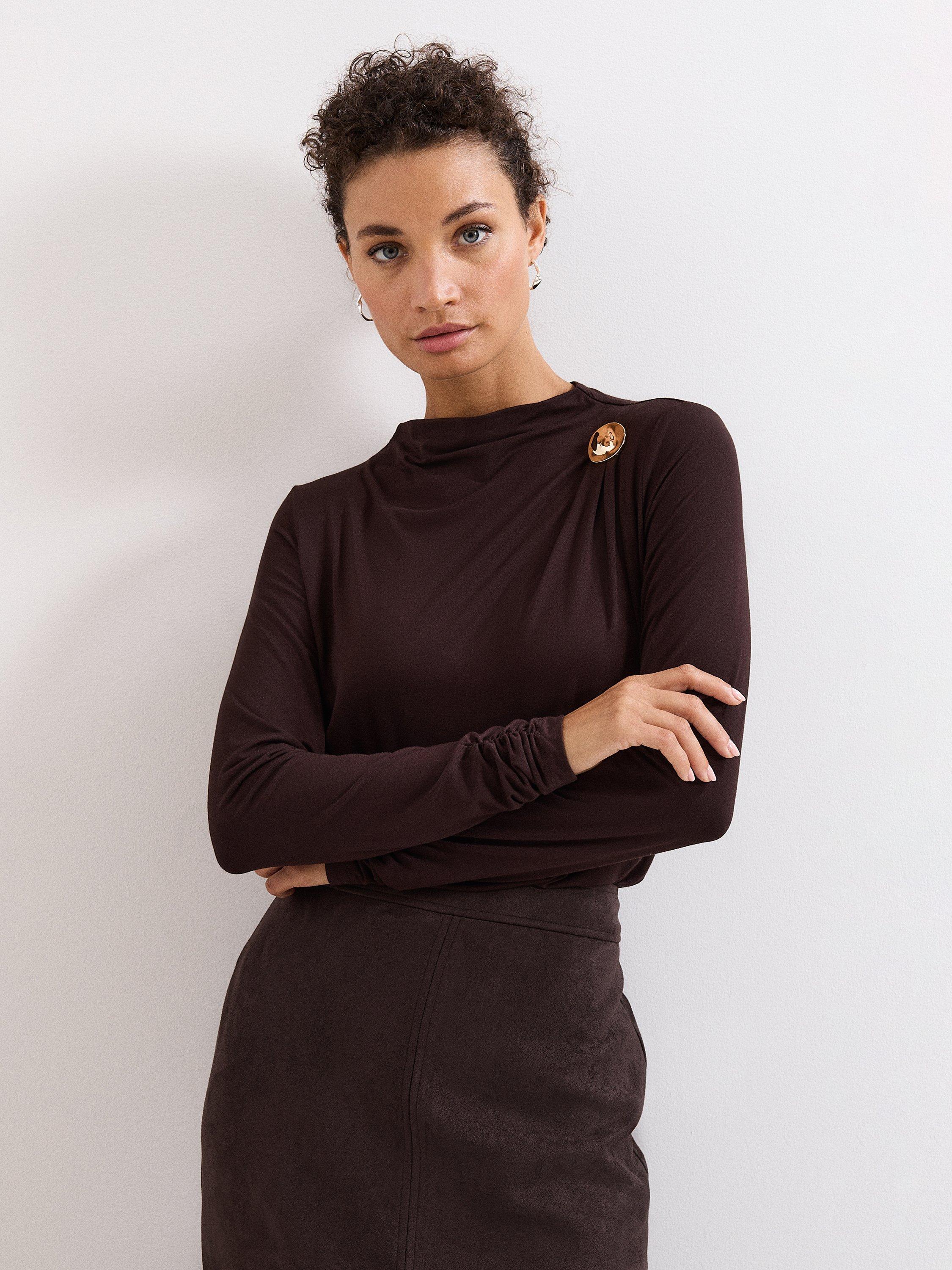 A button detail jersey top from Phase Eight. With a high neck and long sleeves, its plain colour design goes with everything. Everyday ease with a stylish twist.