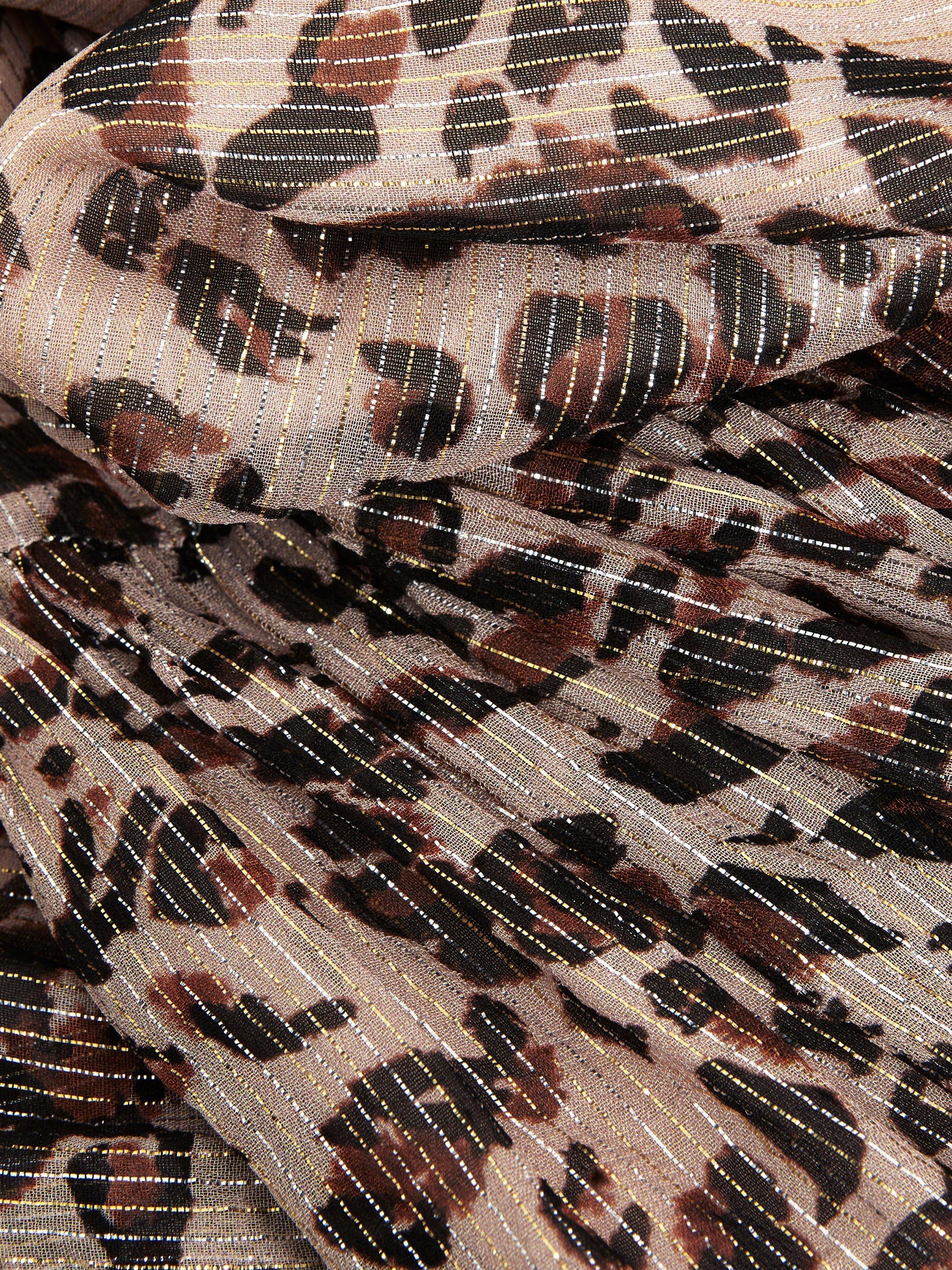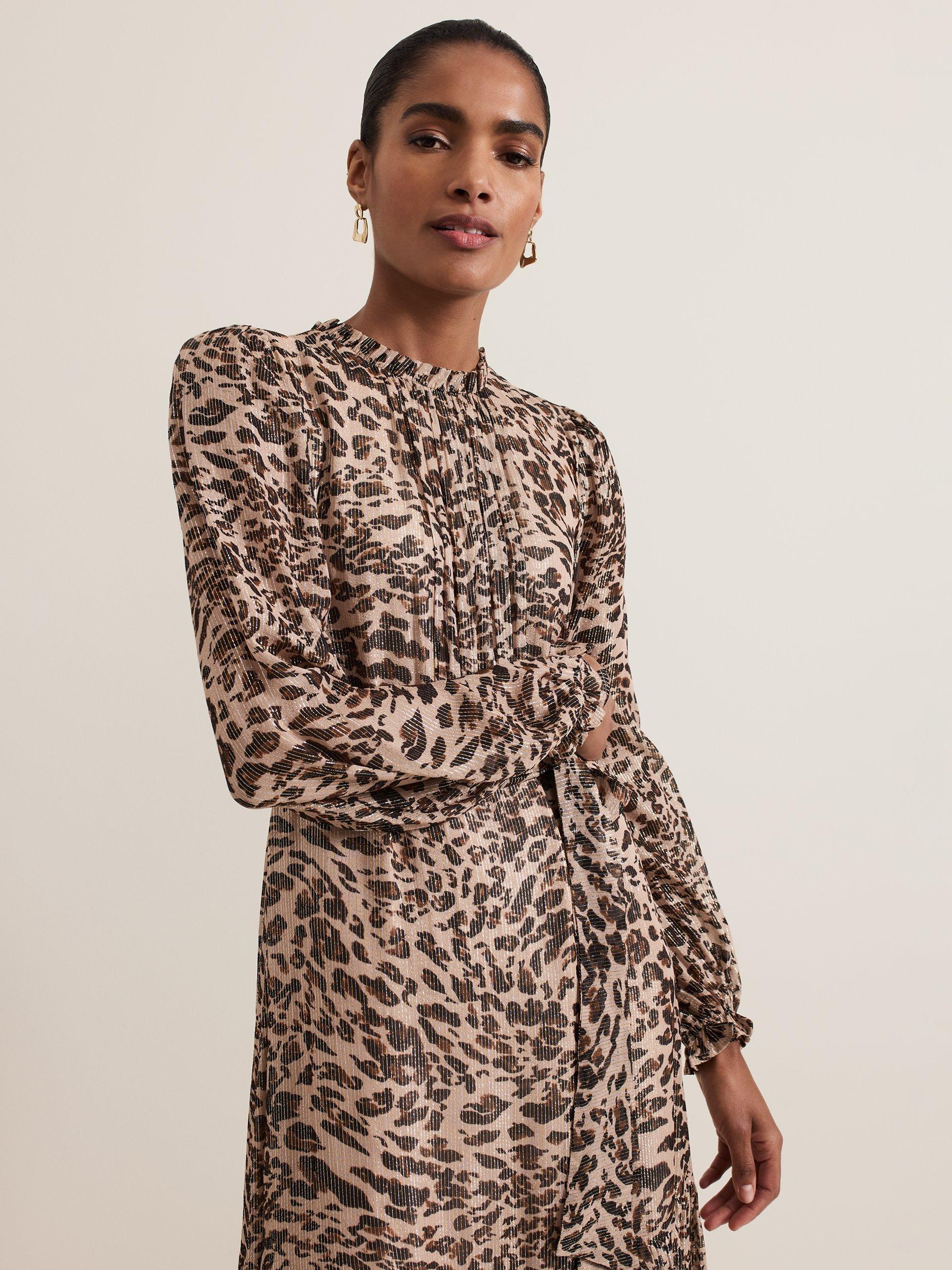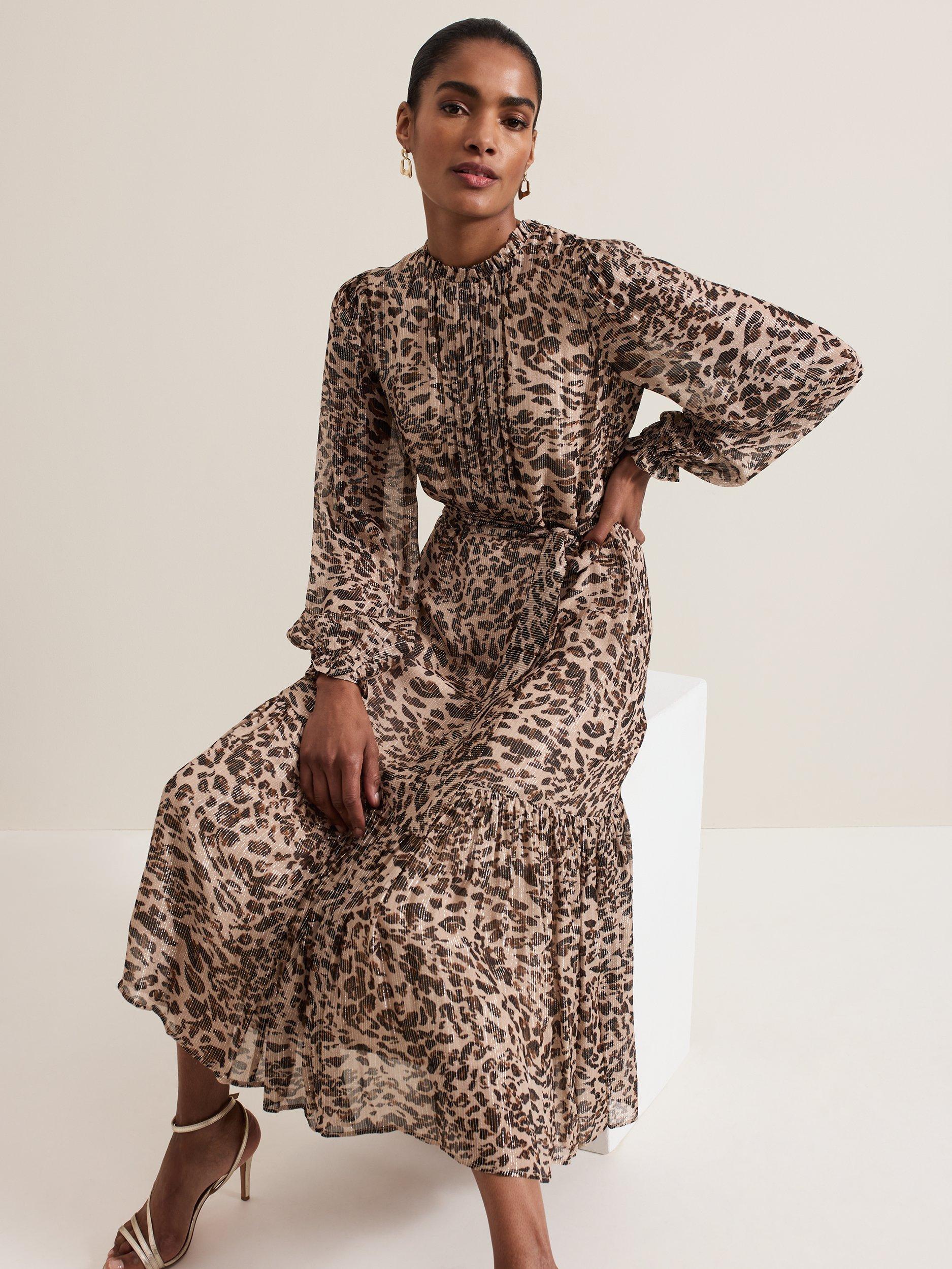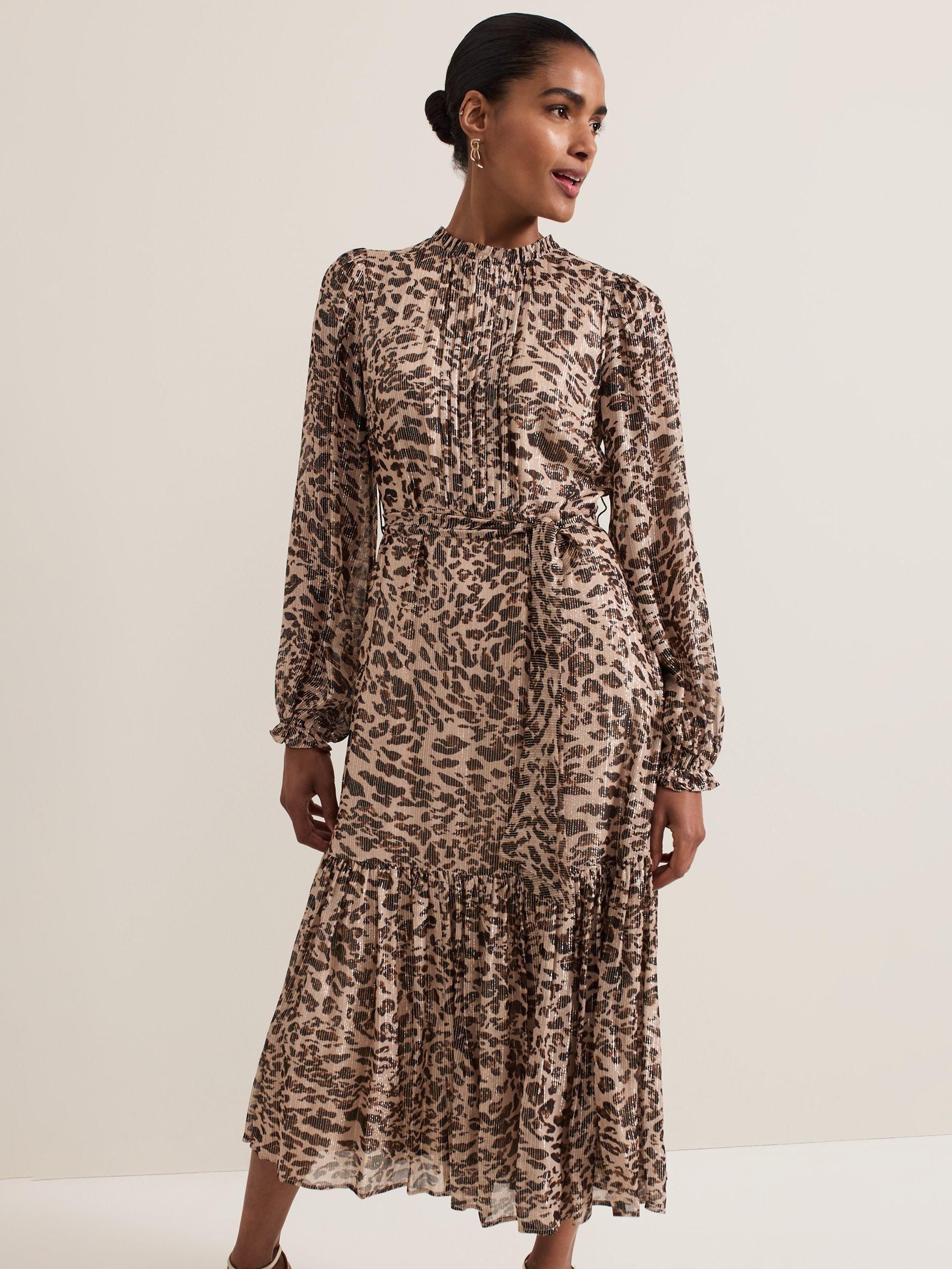 Designed in always on trend leopard print, the Eve dress features delicate pleating, long blouson sleeves and a tiered midi skirt with metallic thread detailing throughout. Style with your favourite black or gold accessories for a style you'll reach for again and again.