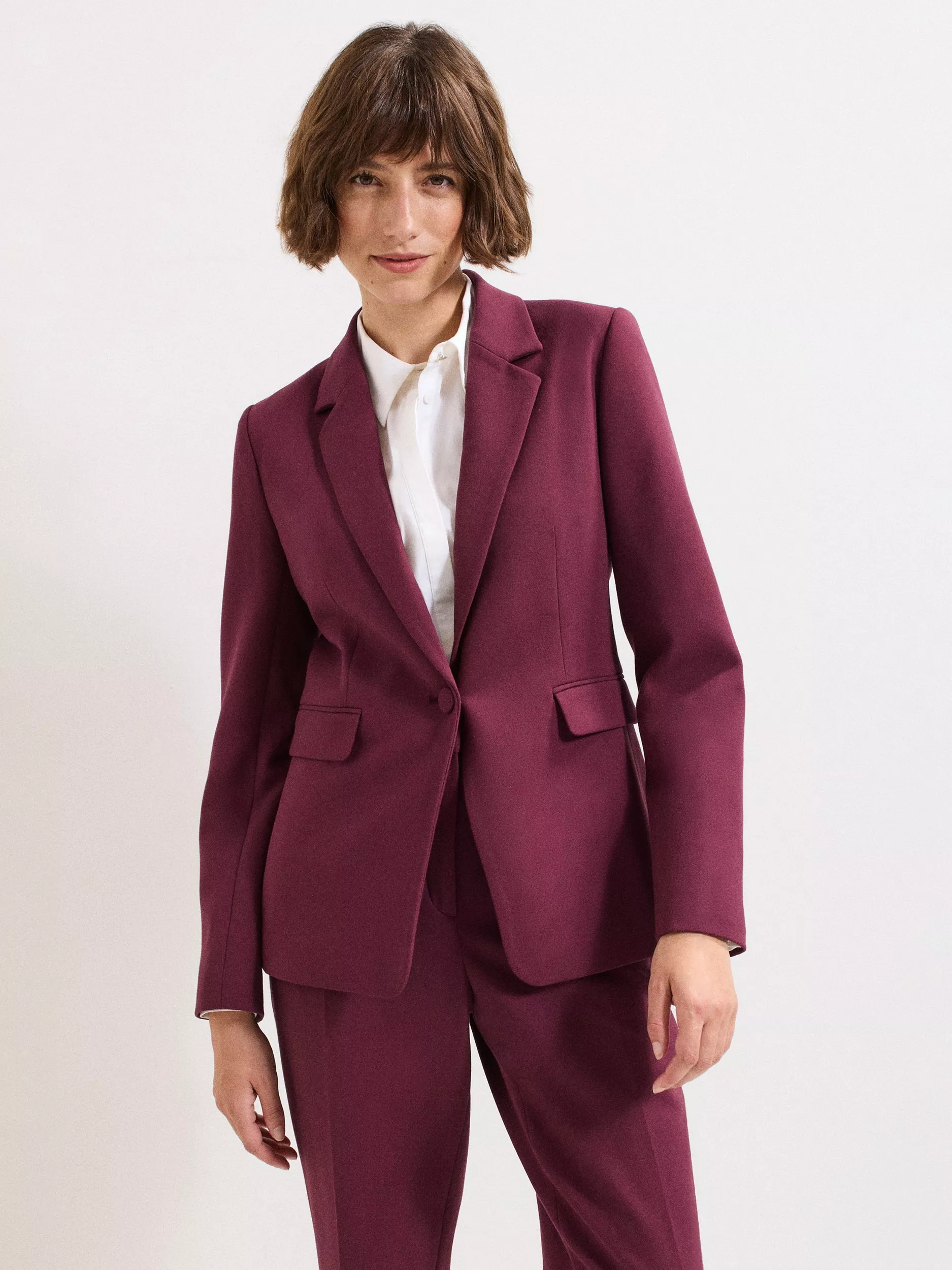 The trending colour of the season meets contemporary tailoring. This single-breasted suit jacket is tailored for a streamlined fit and finished with classic notch lapels. Style with the matching Fara trousers for a coordinated, modern look.