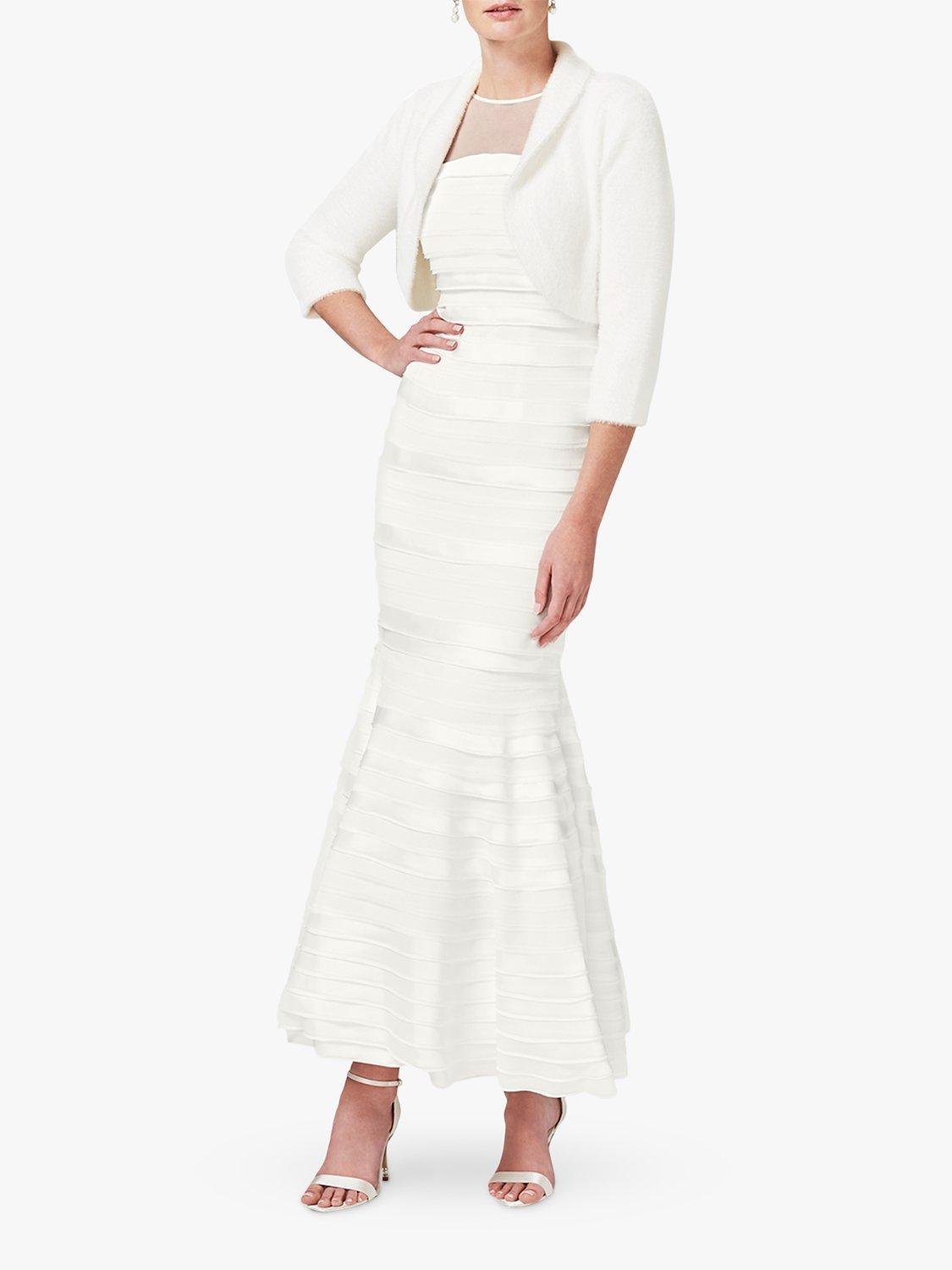 For a luxe take on winter whites, the Fay fluffy bolero from Phase Eight is a sophisticated take on bridal wear. Designed in a fitted collarless silhouette with an open front, allowing you to showcase what's underneath, this style is perfect for winter or autumnal weddings.
