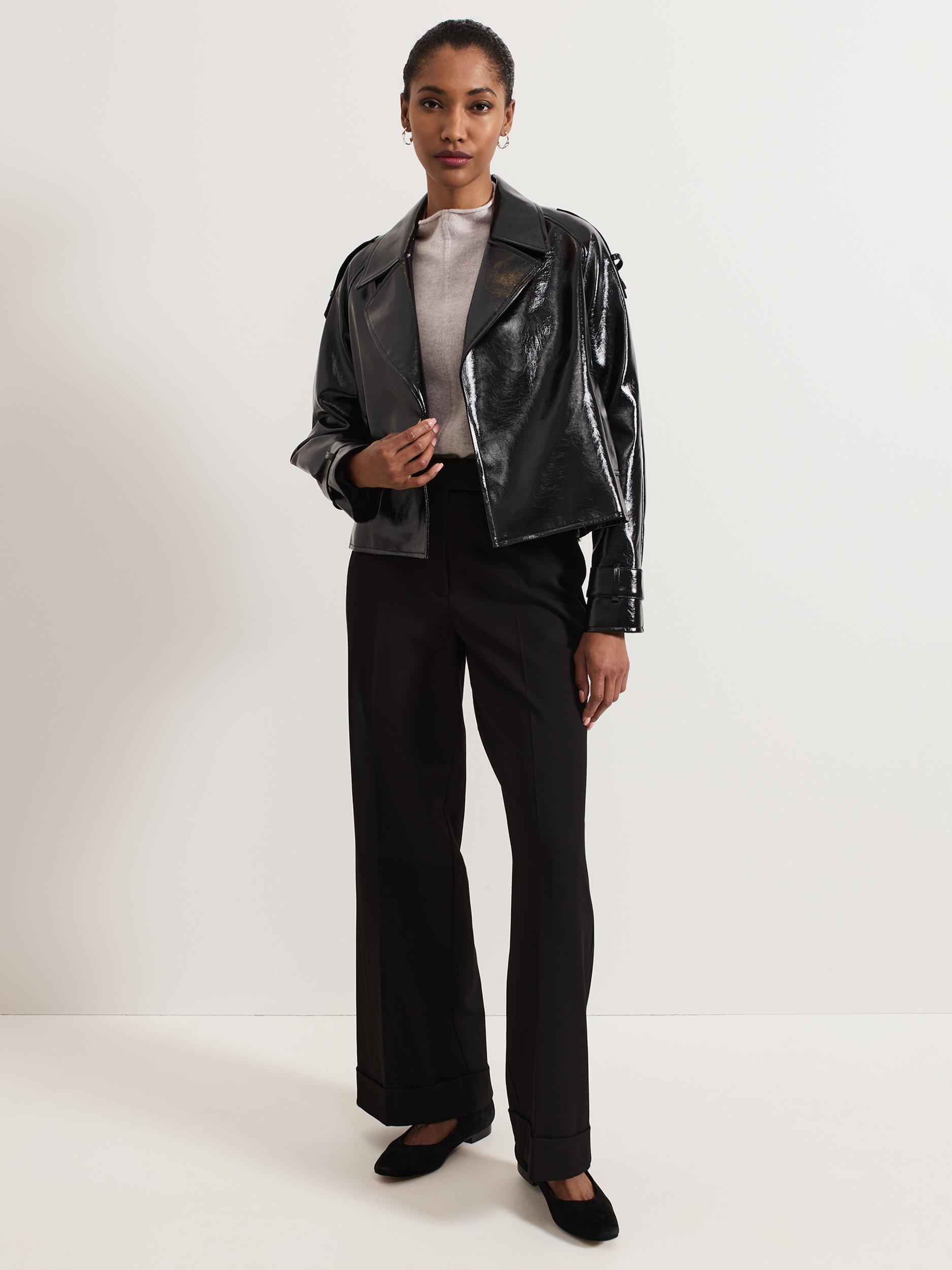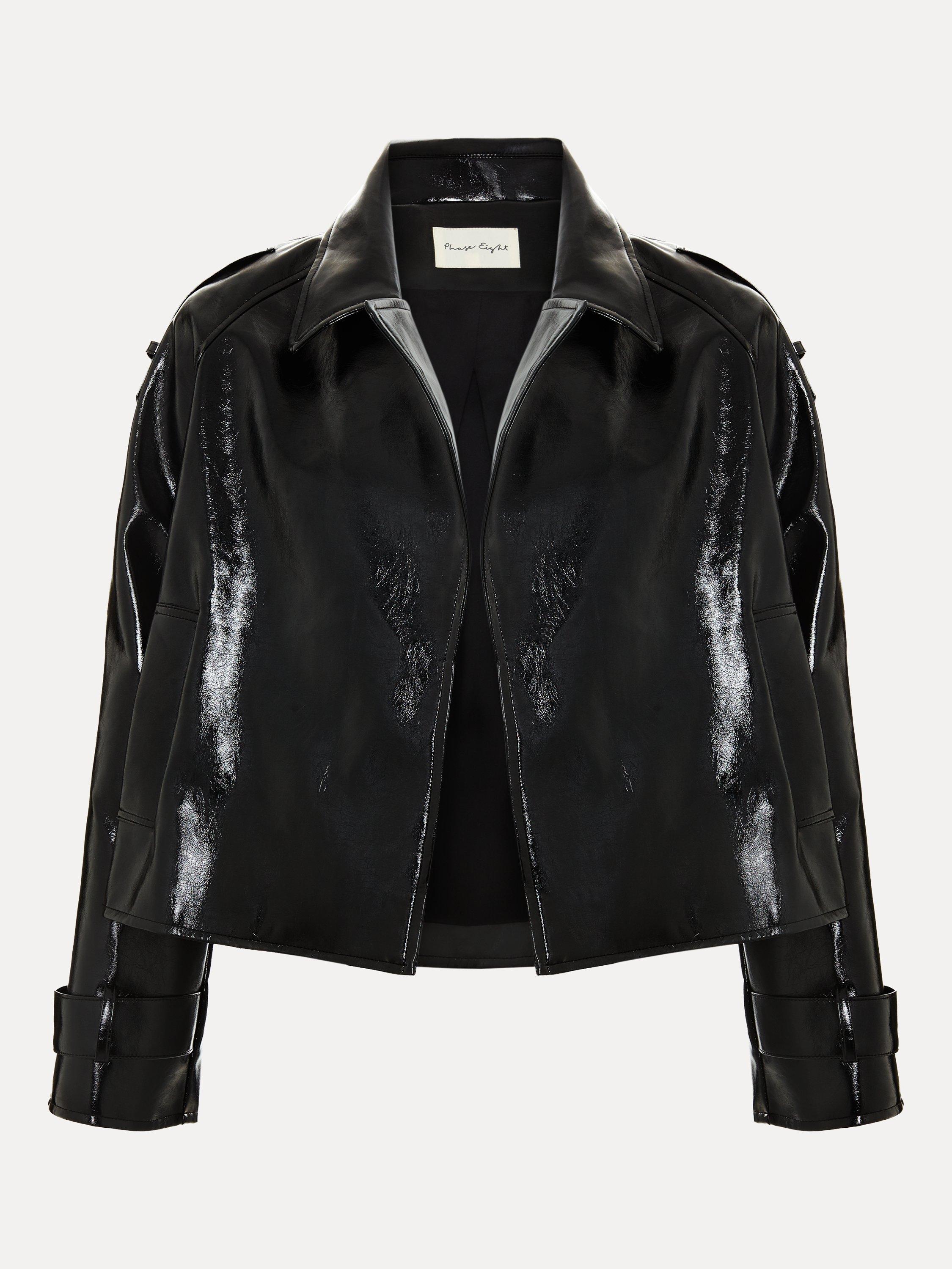 Meet our update on a classic jacket. Cut to a slightly cropped silhouette, this vinyl jacket features adjustable cuff tabs to cinch the sleeves so you can wear it two ways.