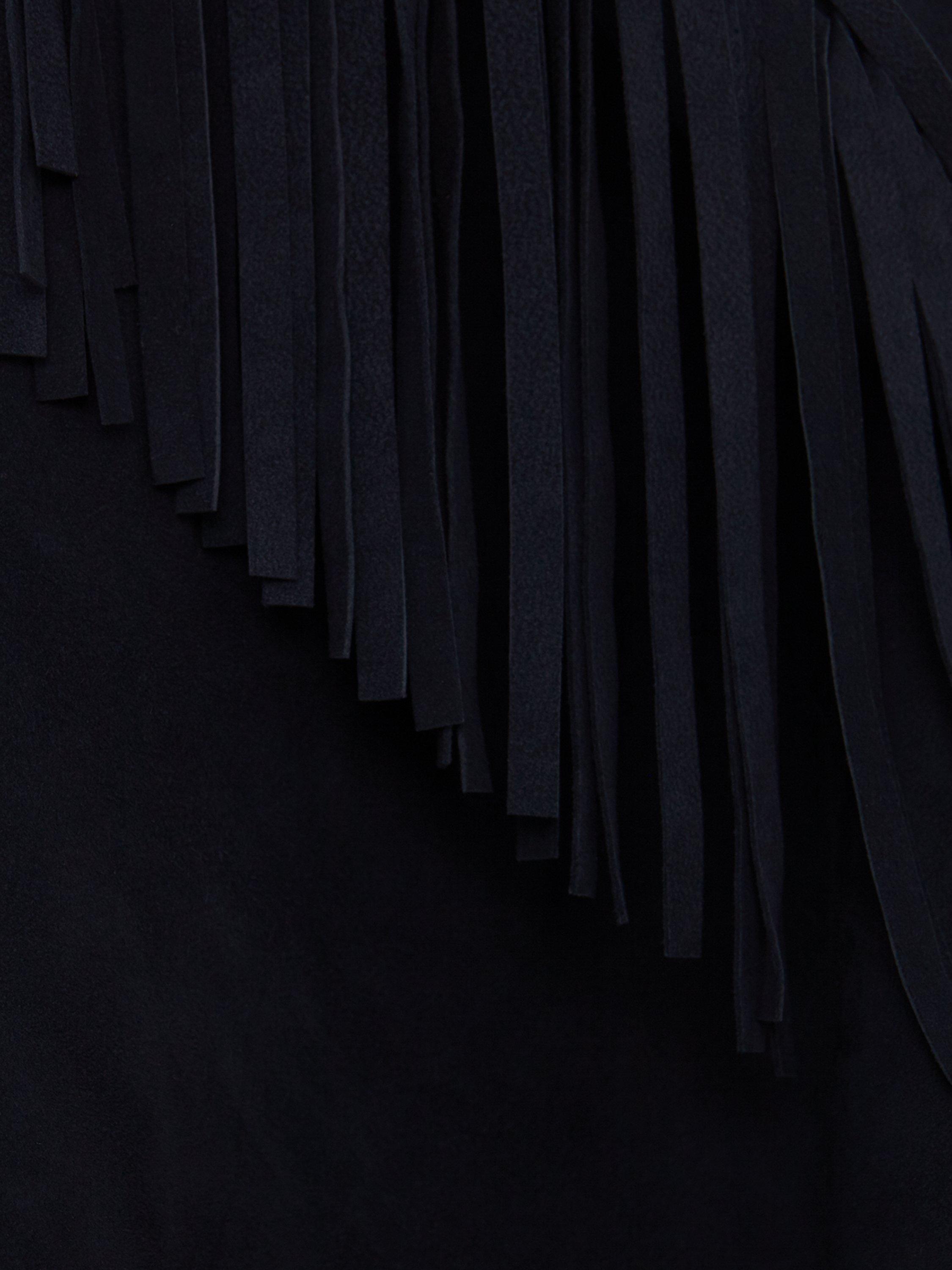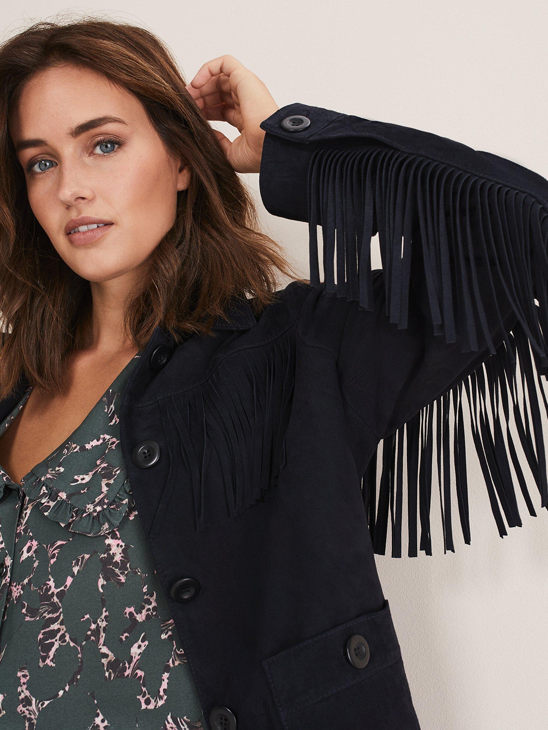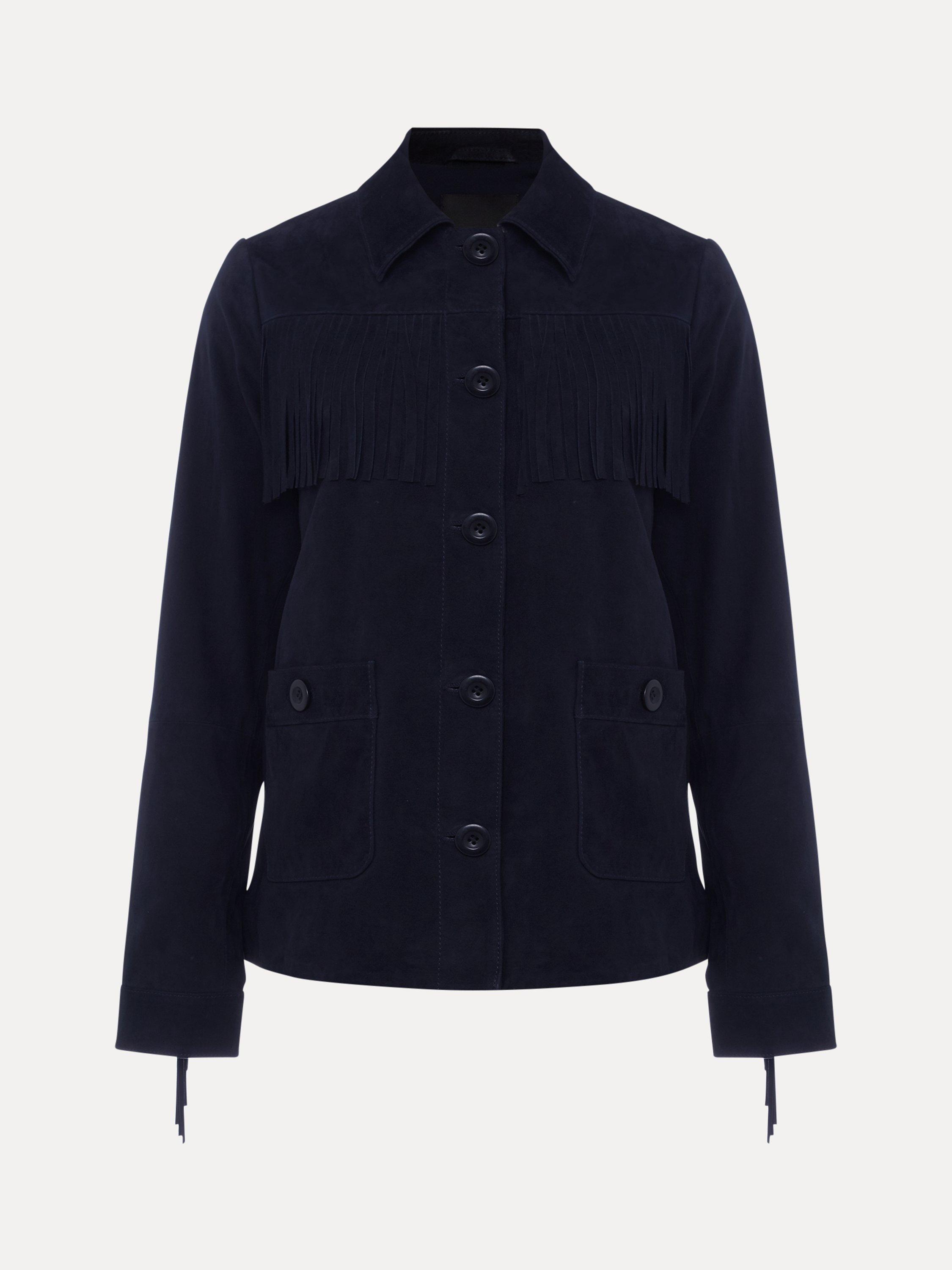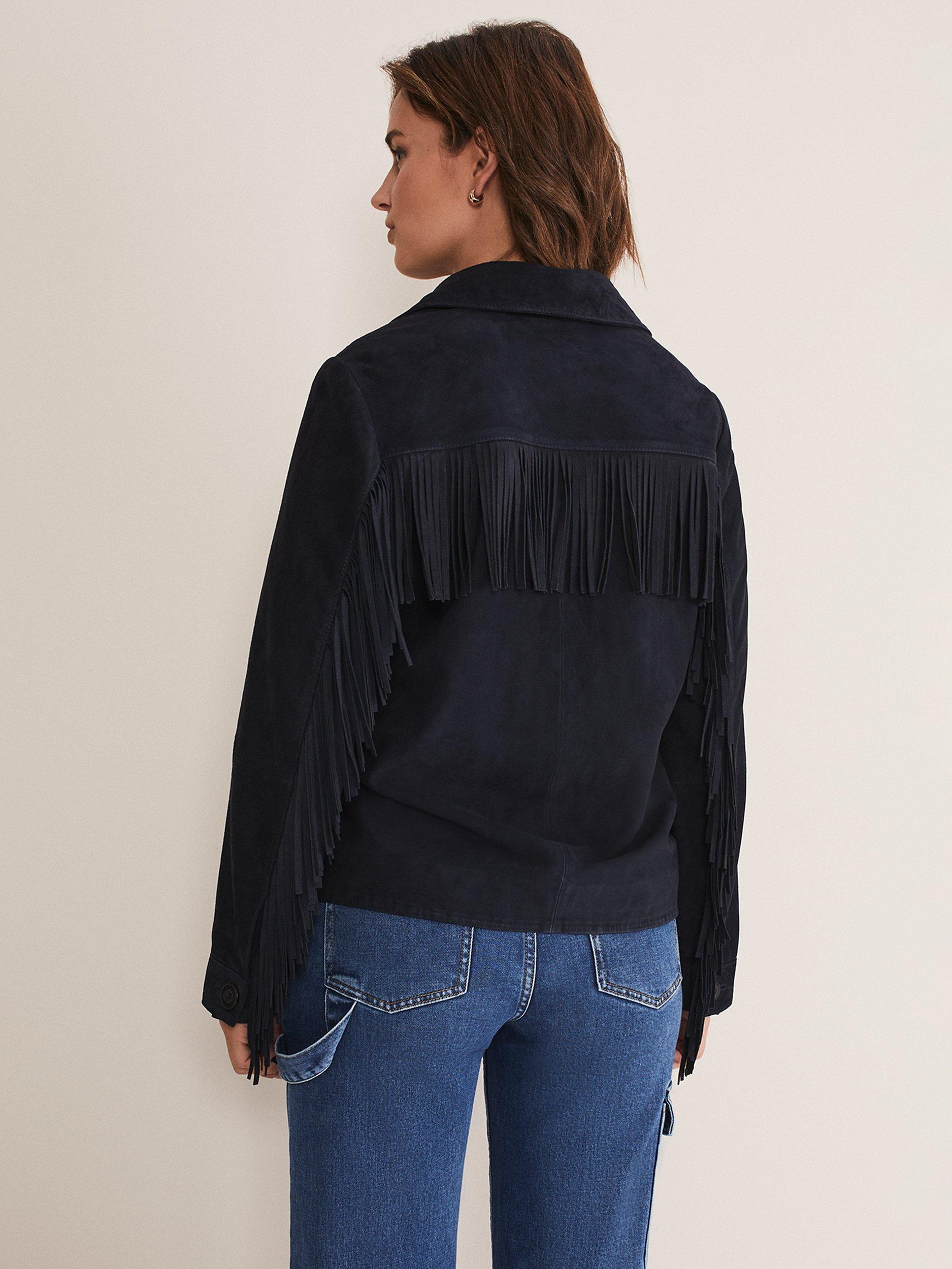 Featuring a neat collared neckline and fringe details, it is made from pure leather for a premium feel.