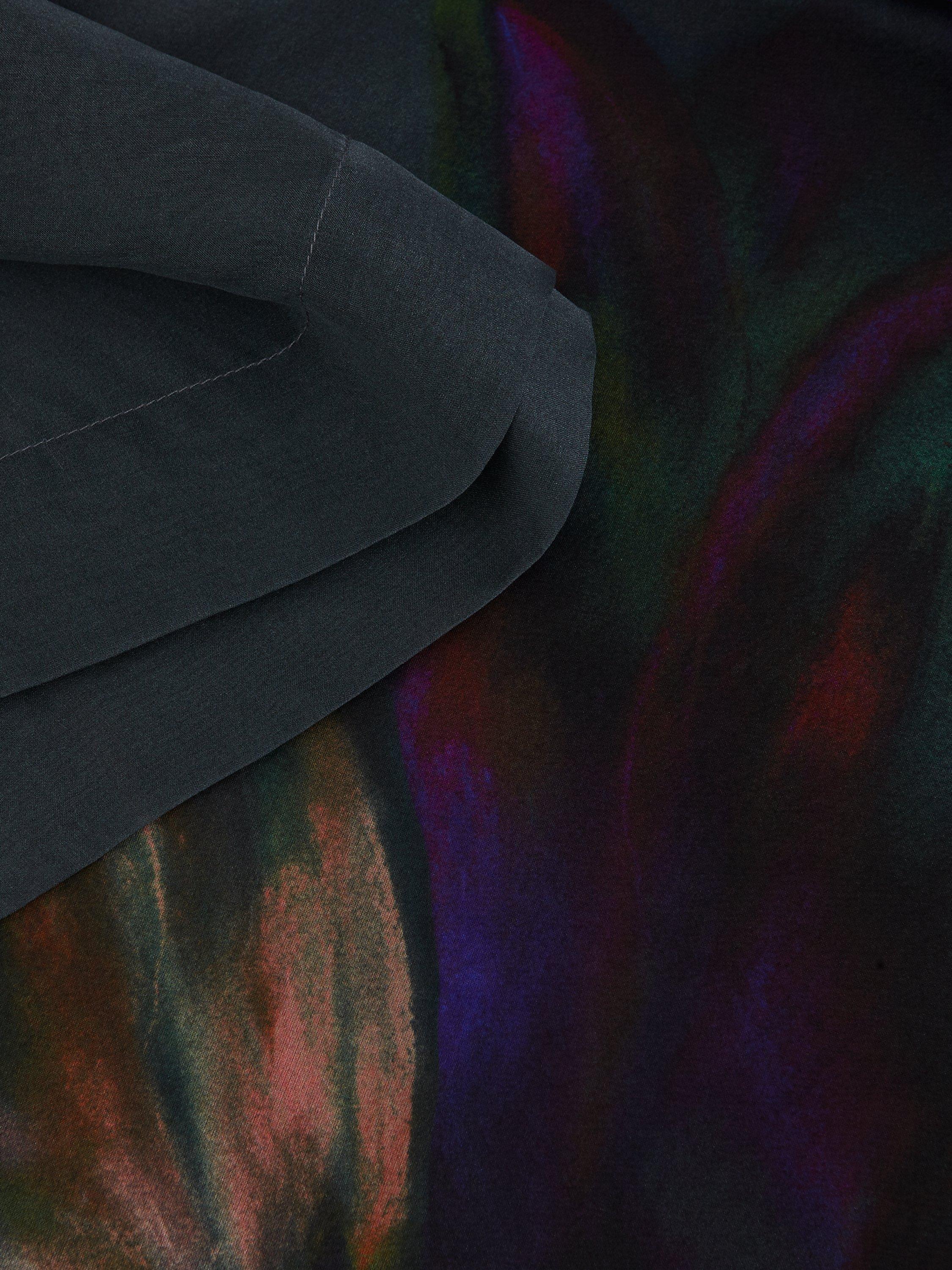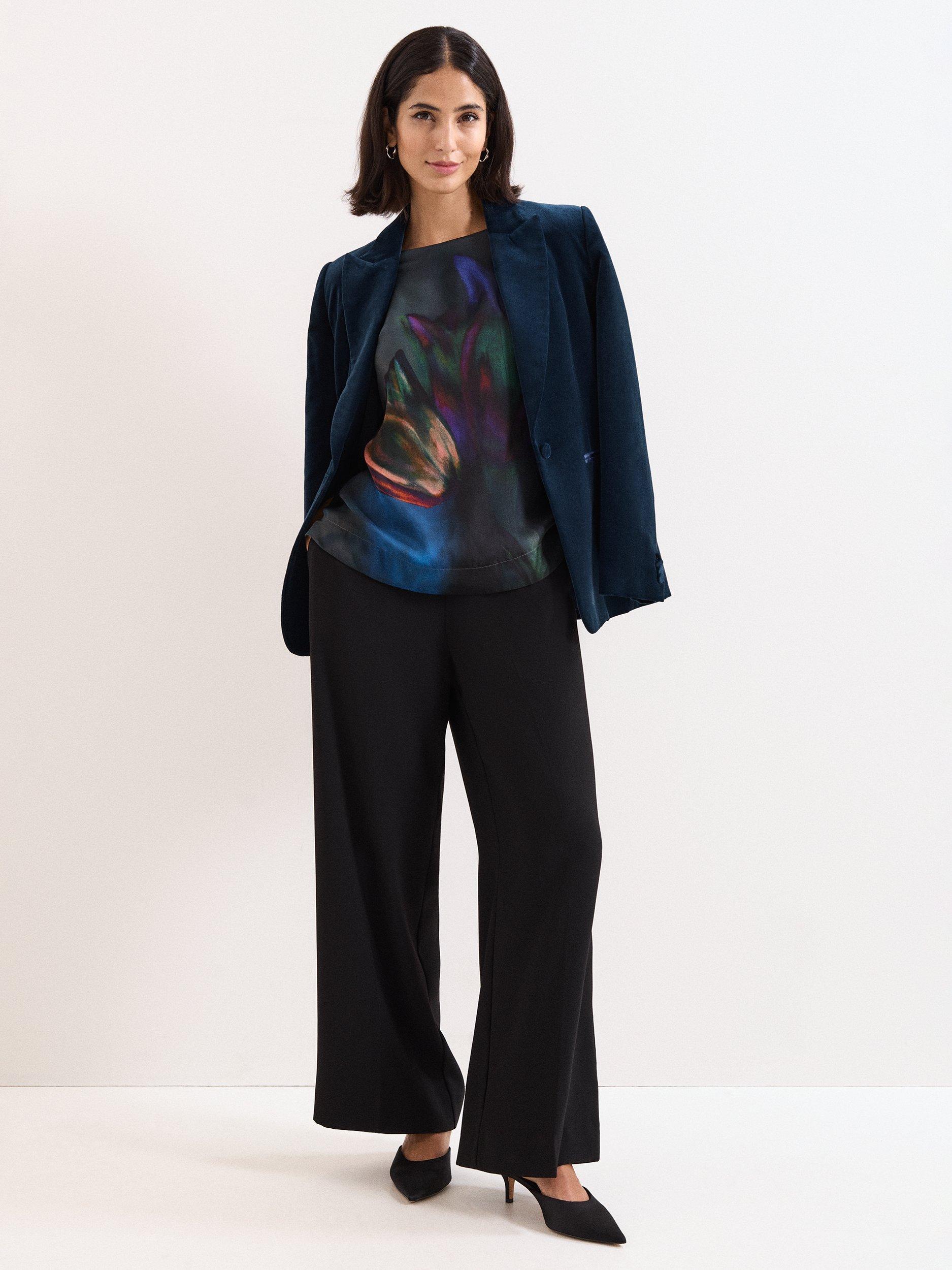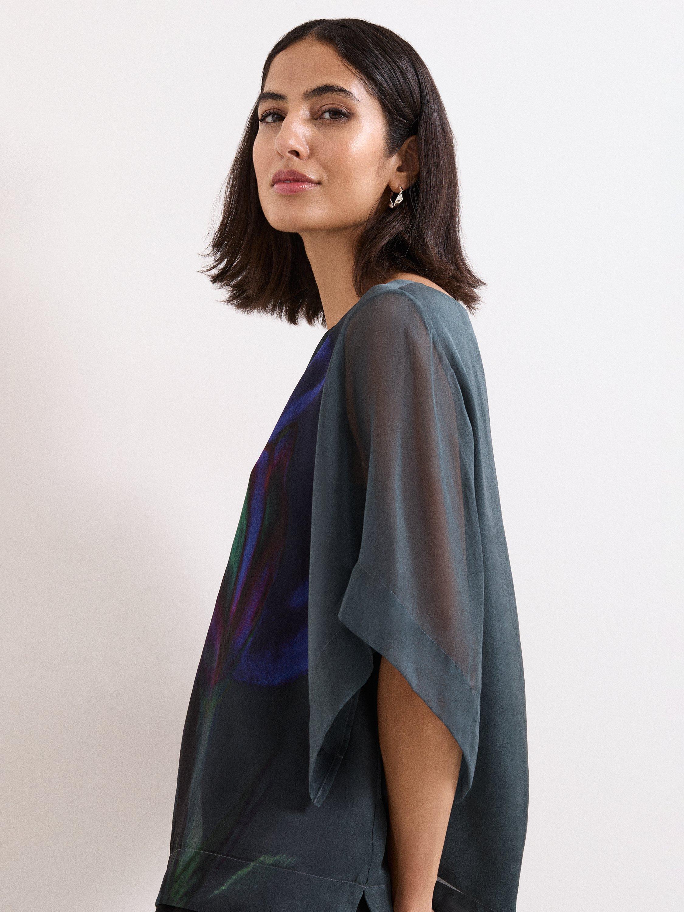 Every wardrobe needs a luxurious, statement blouse. Made from 100% silk, this modern blouse features an expressive abstract floral design in rich shades.