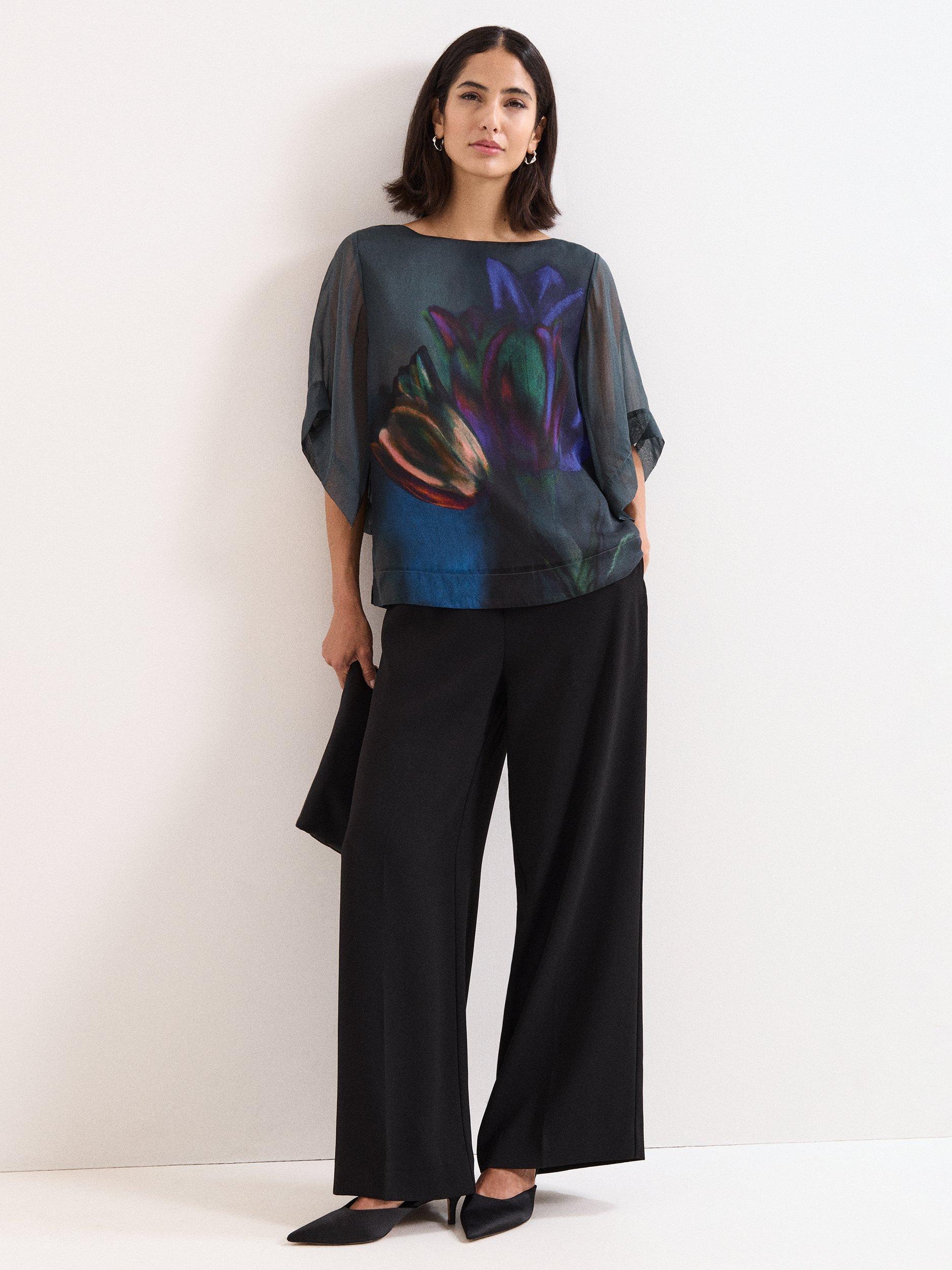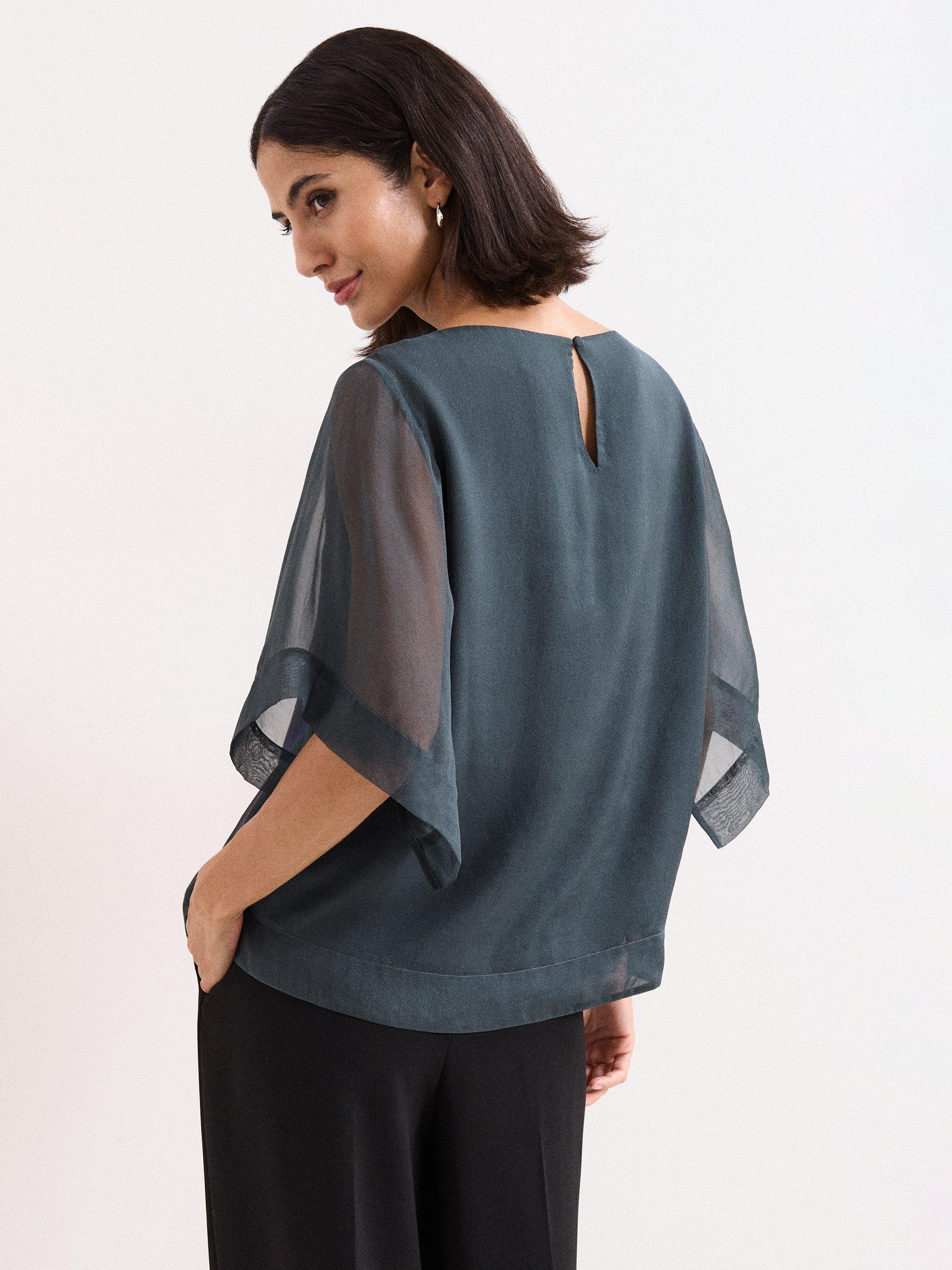 Designed in a contemporary relaxed silhouette and featuring unique ¾ length sheer sleeves, this blouse is versatile yet striking. We love styling with a suit trouser and blazer for a considered, chic look.