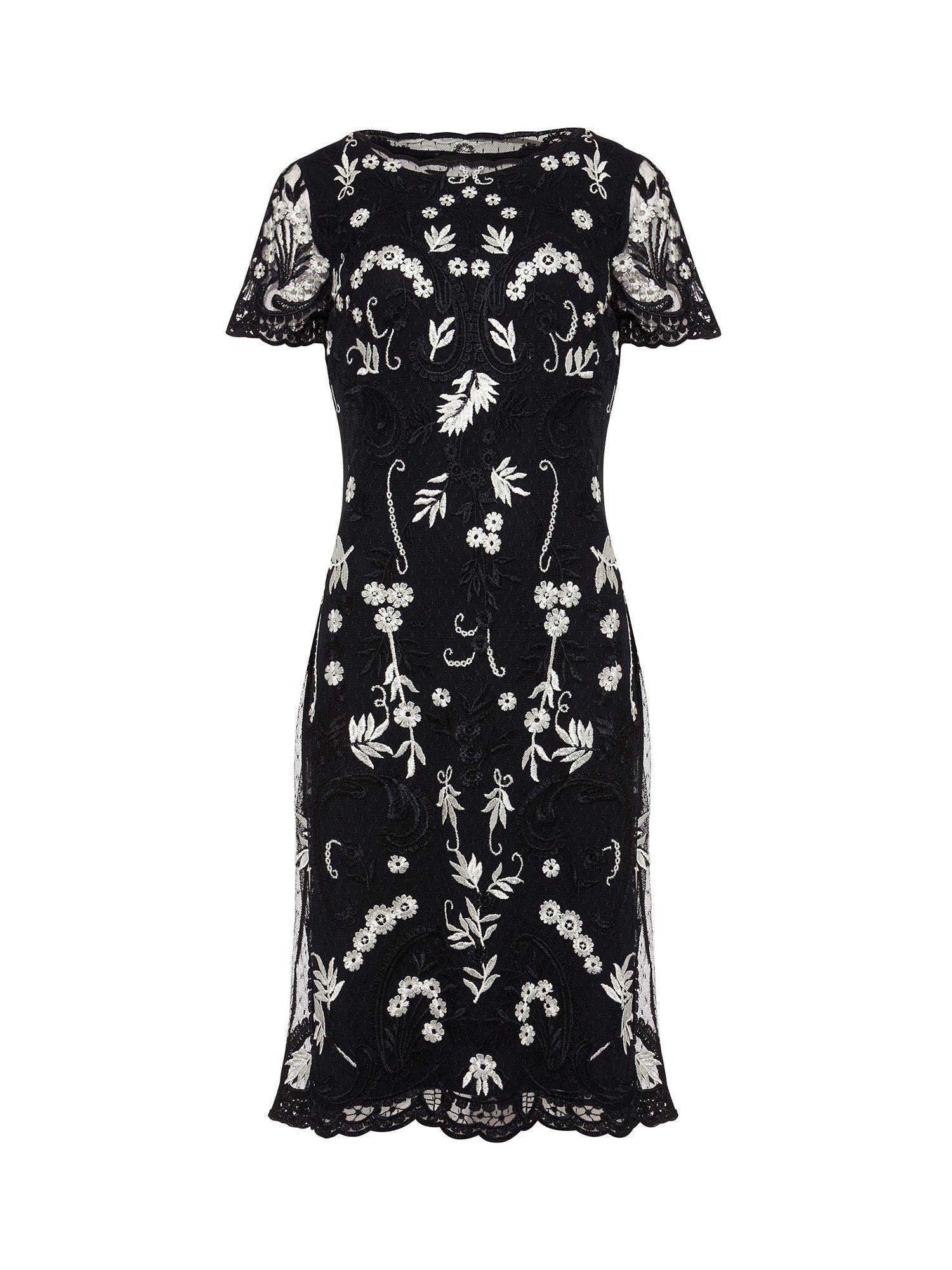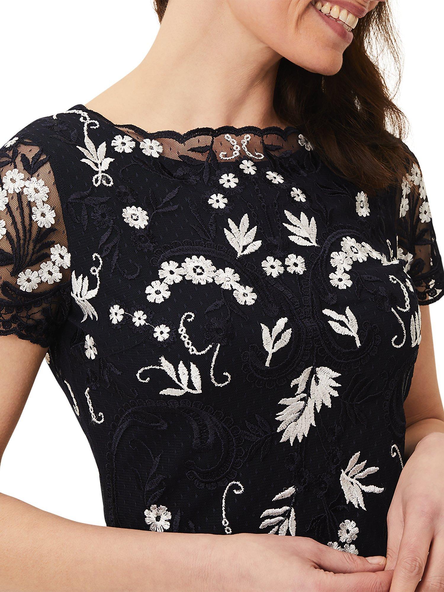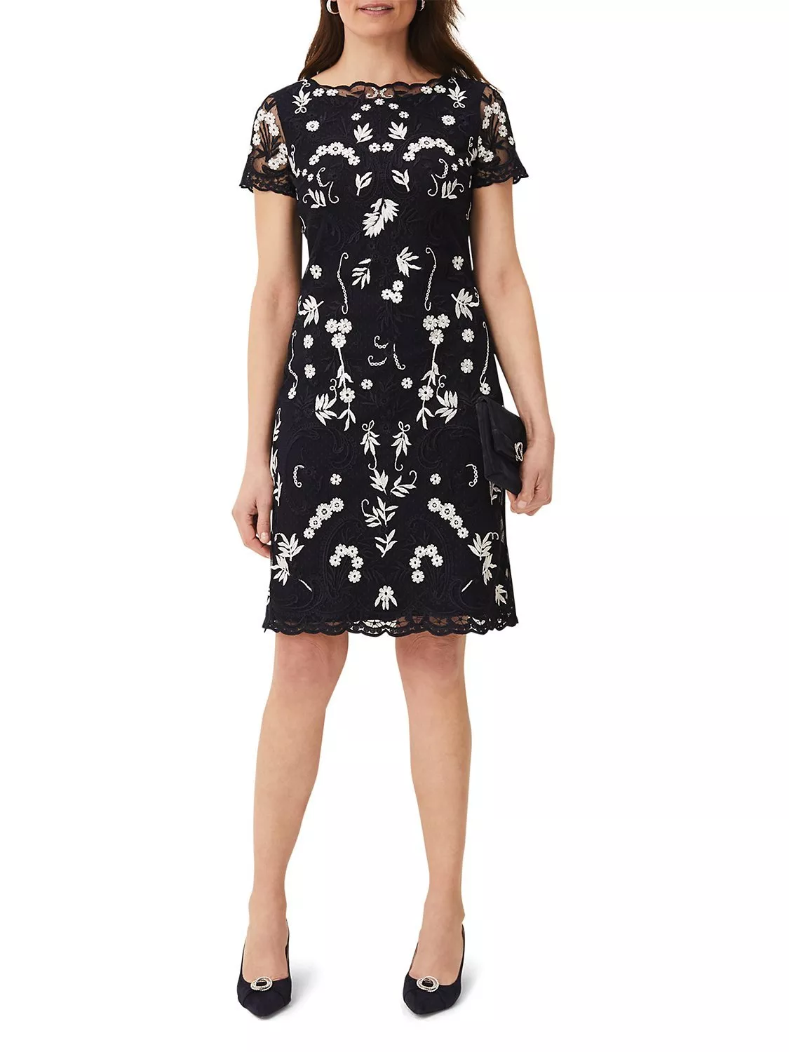 Phase EightFloris Embroidered Dress, Navy/Ivory