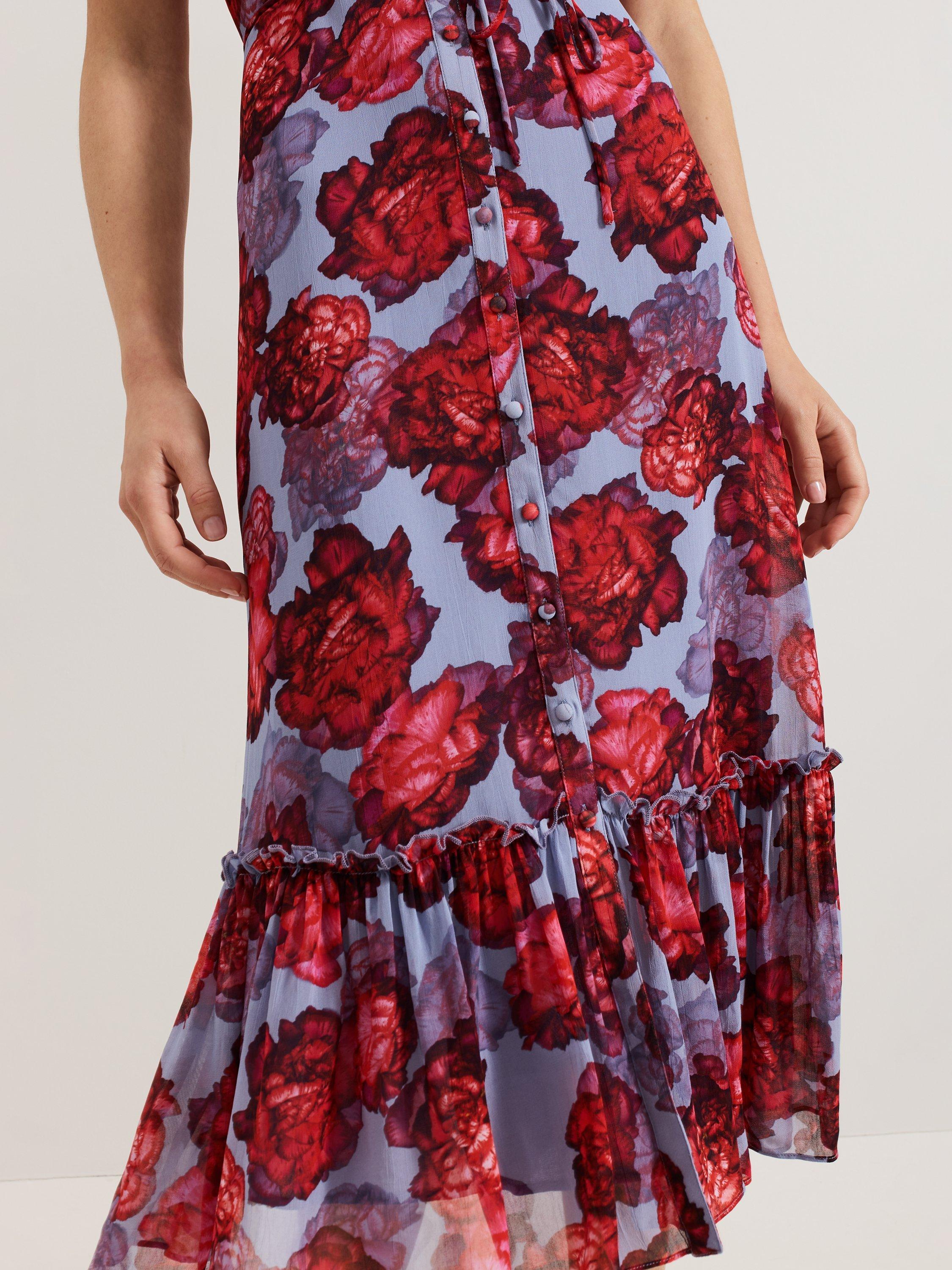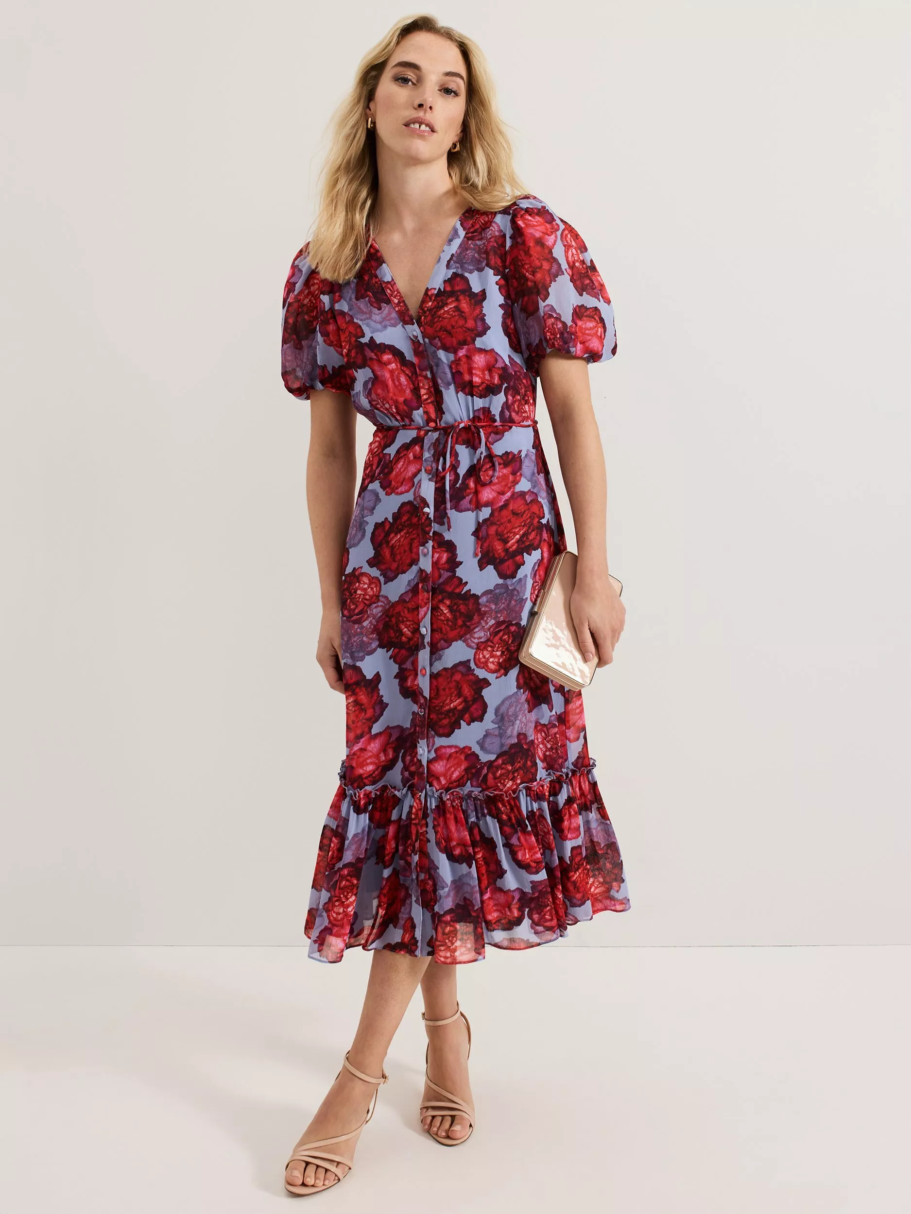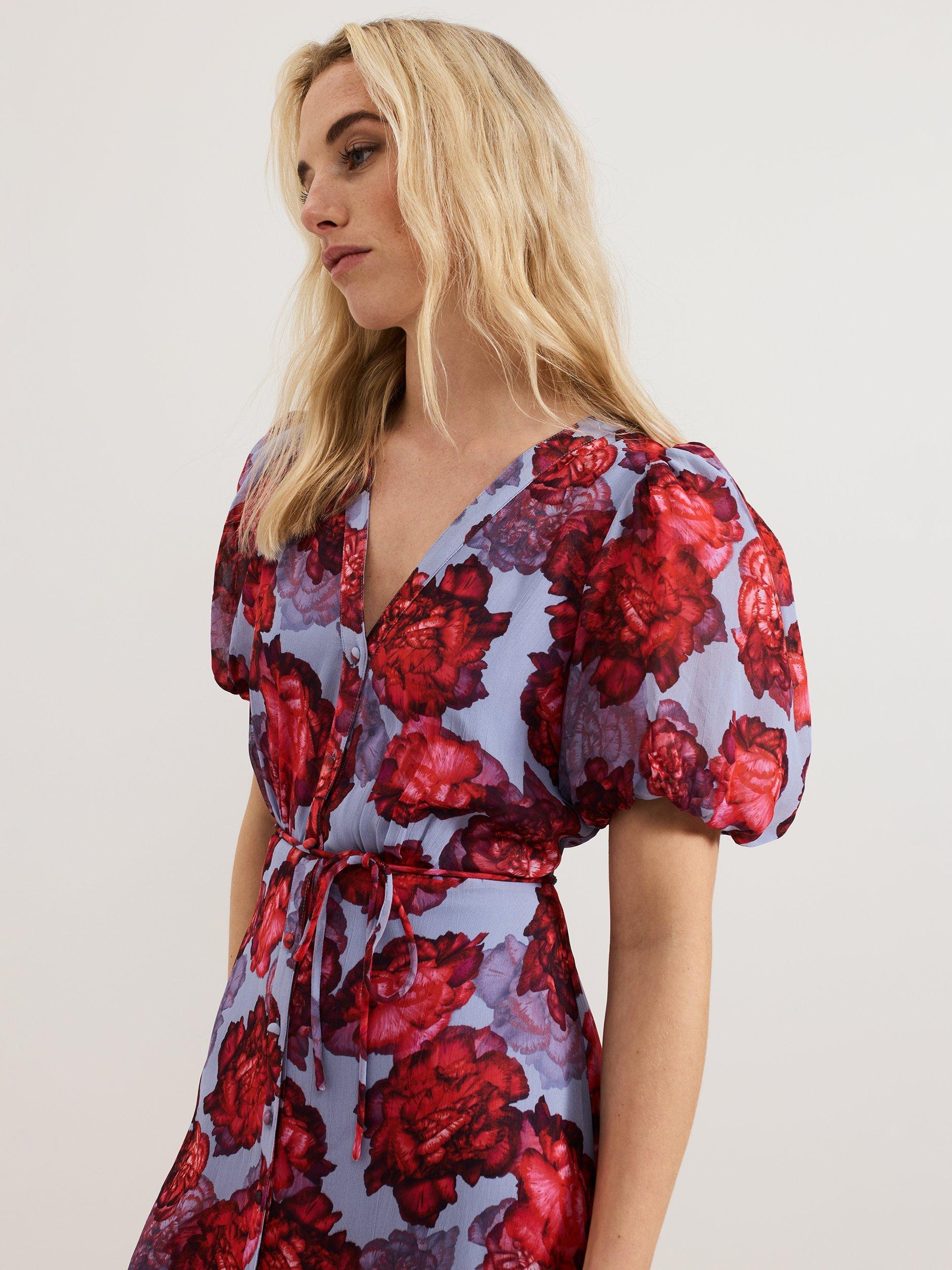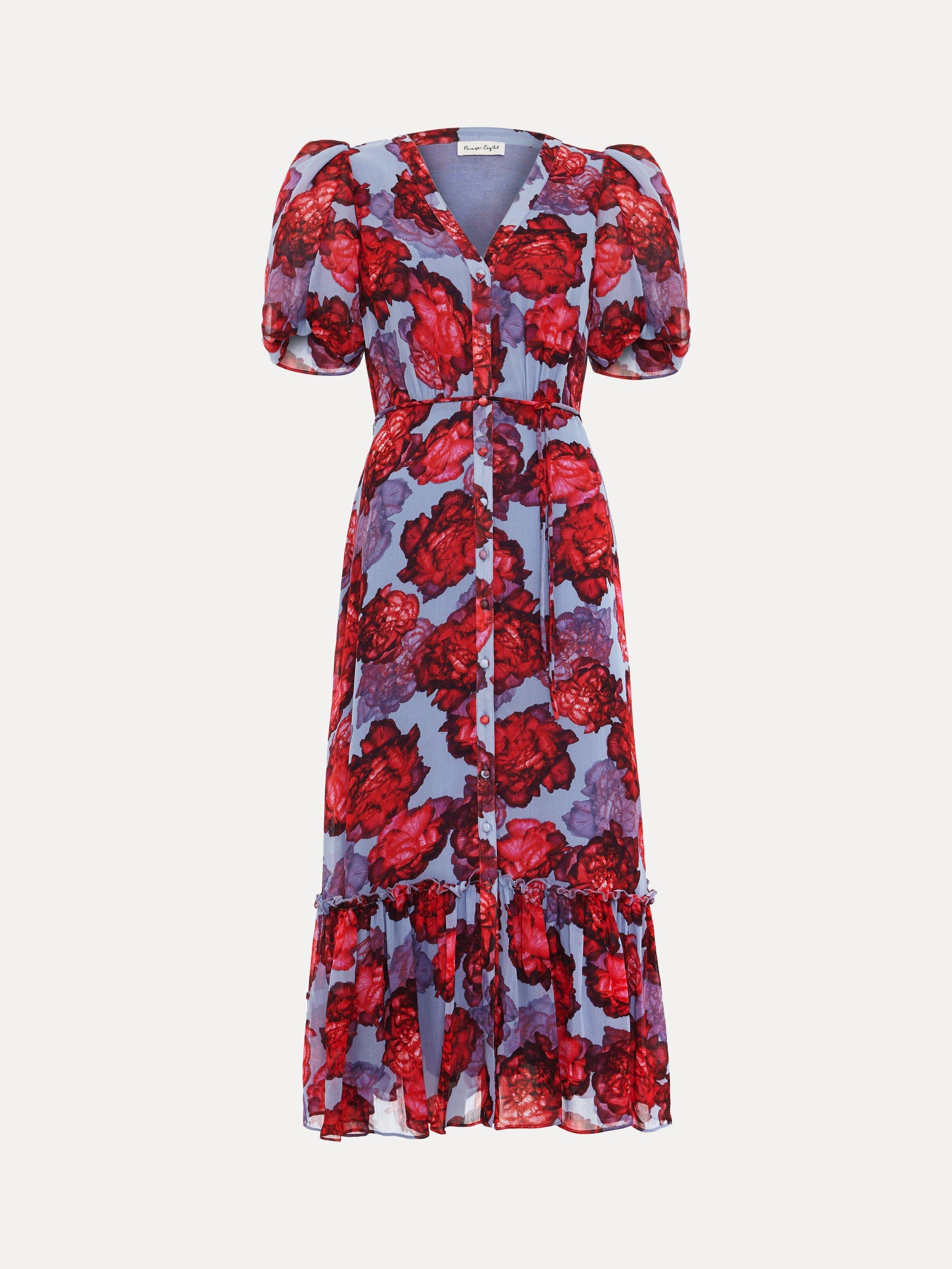 Embrace statement florals for all your upcoming events. The Francesca dress features feminine puff sleeves that add subtle dimension to the silhouette, flowing through to a midi length tiered skirt. Finished with a tie detail at the waist to highlight your figure it s guaranteed to make you stand out at every occasion.