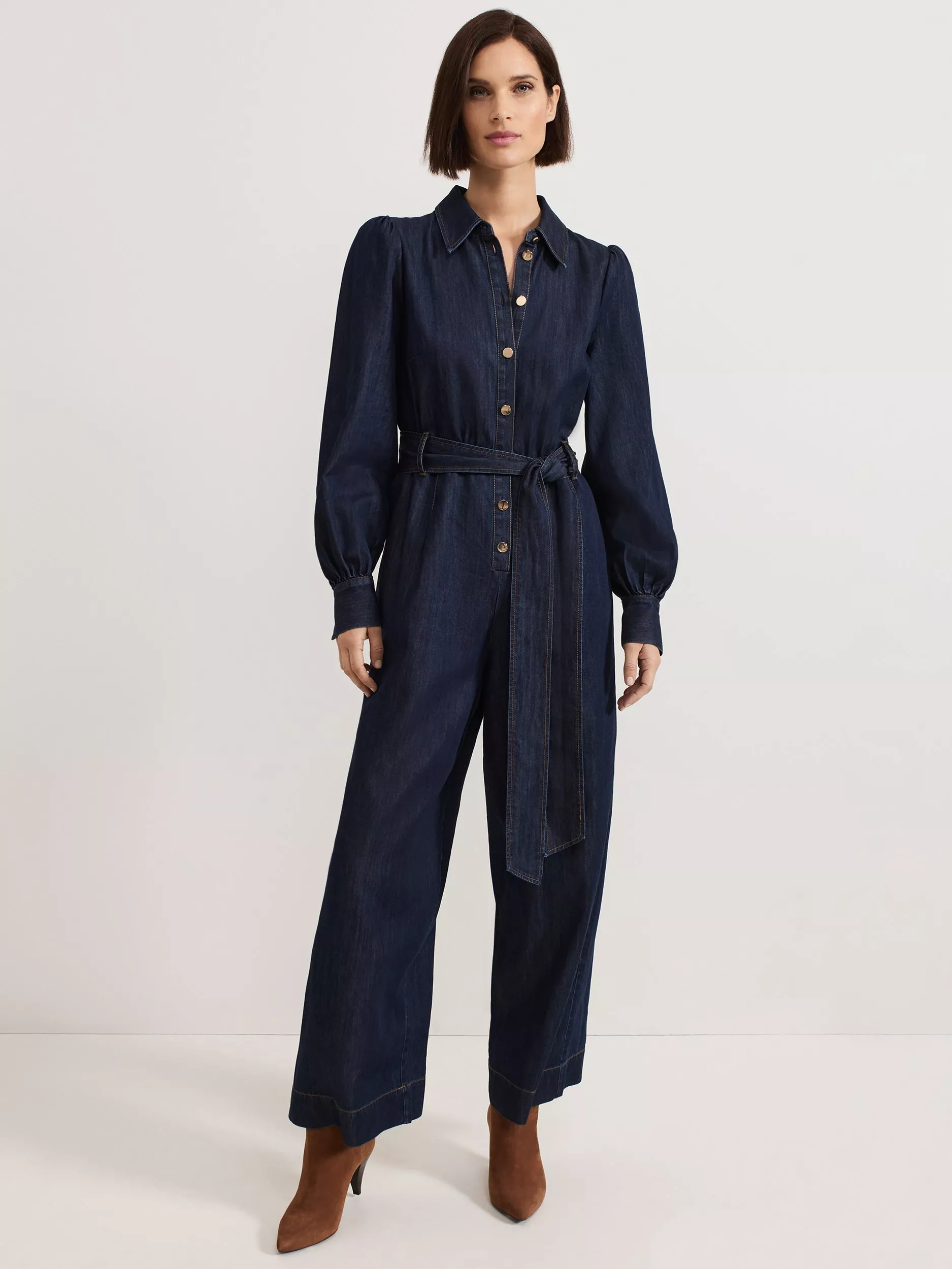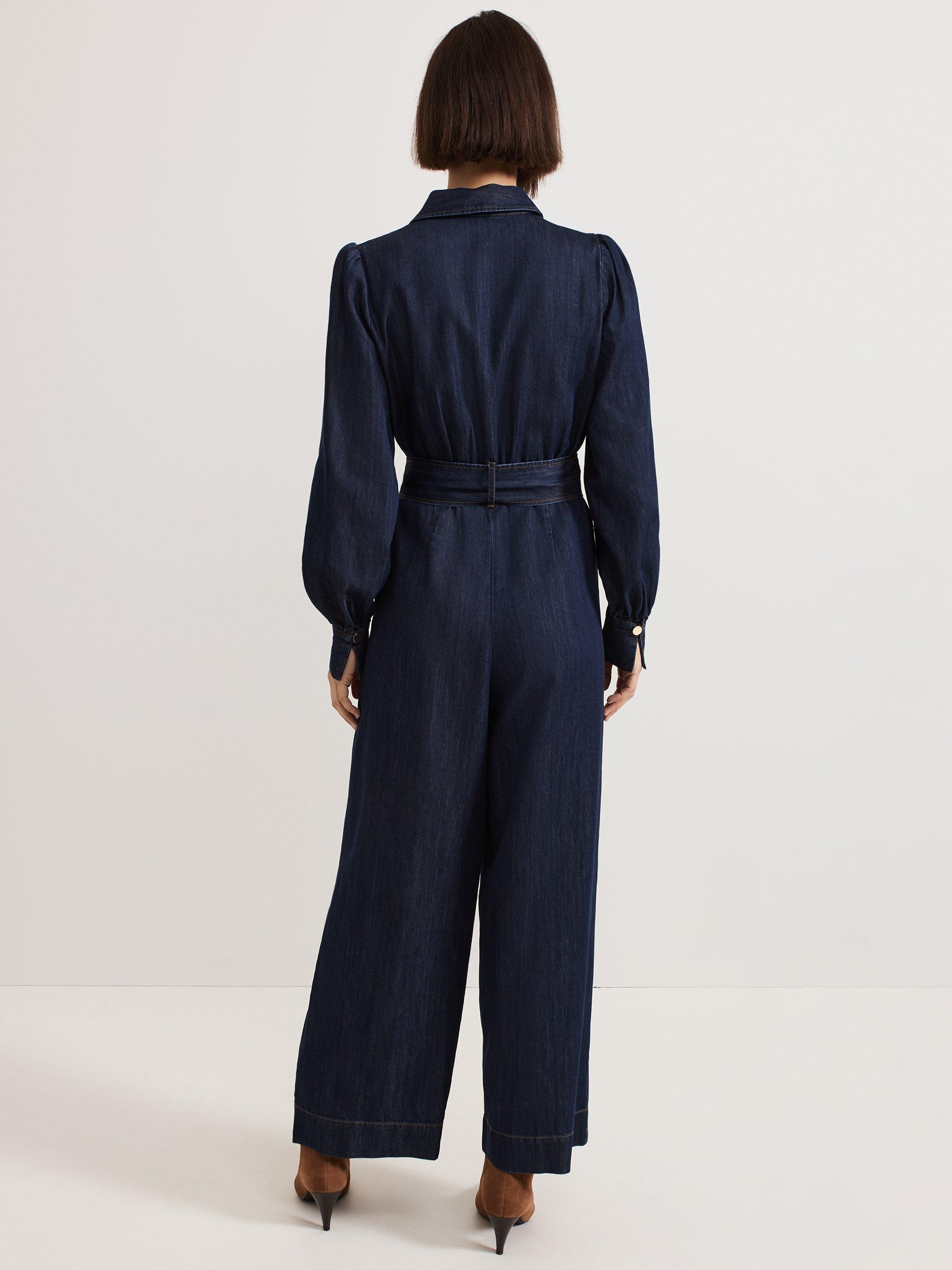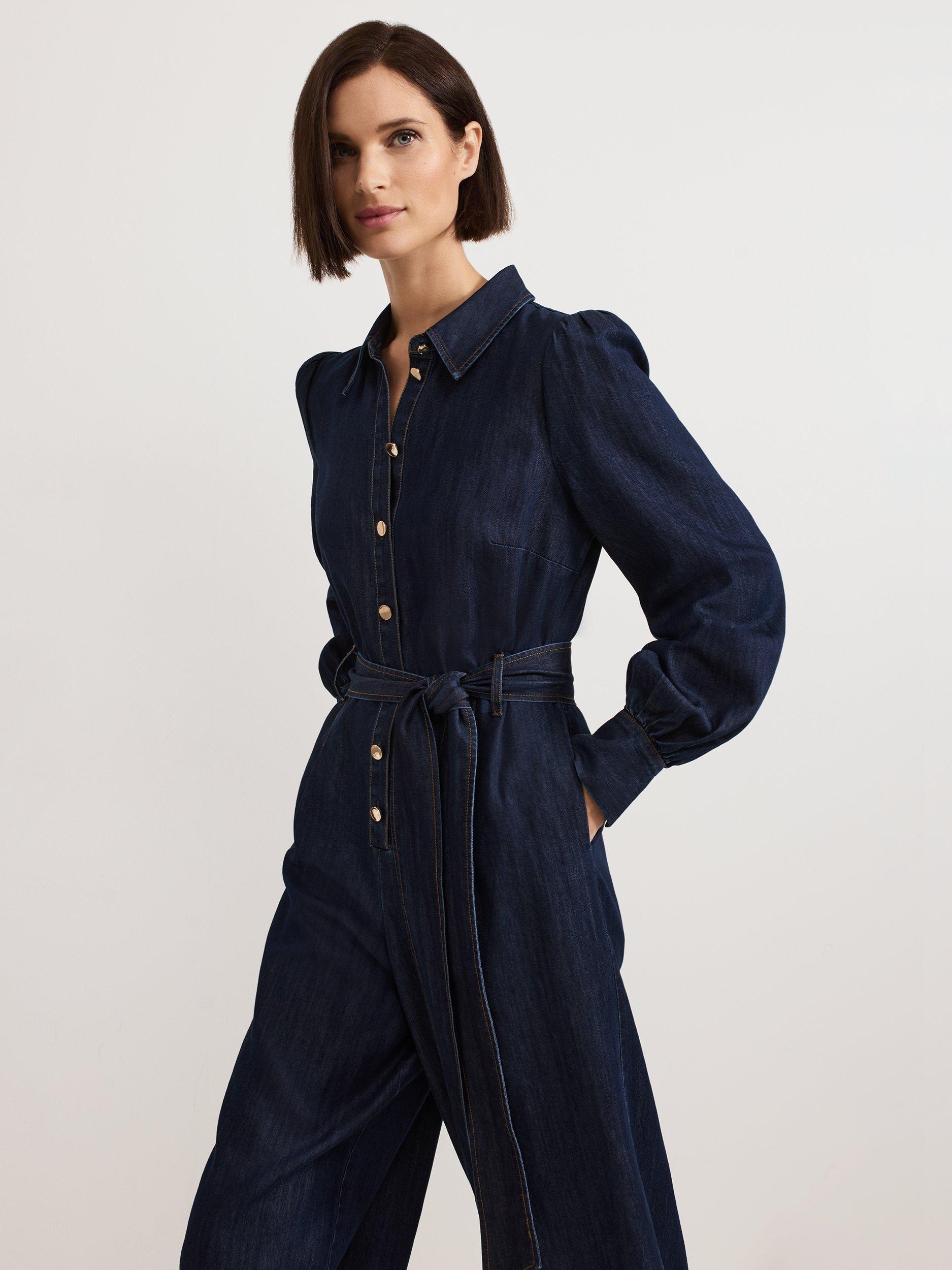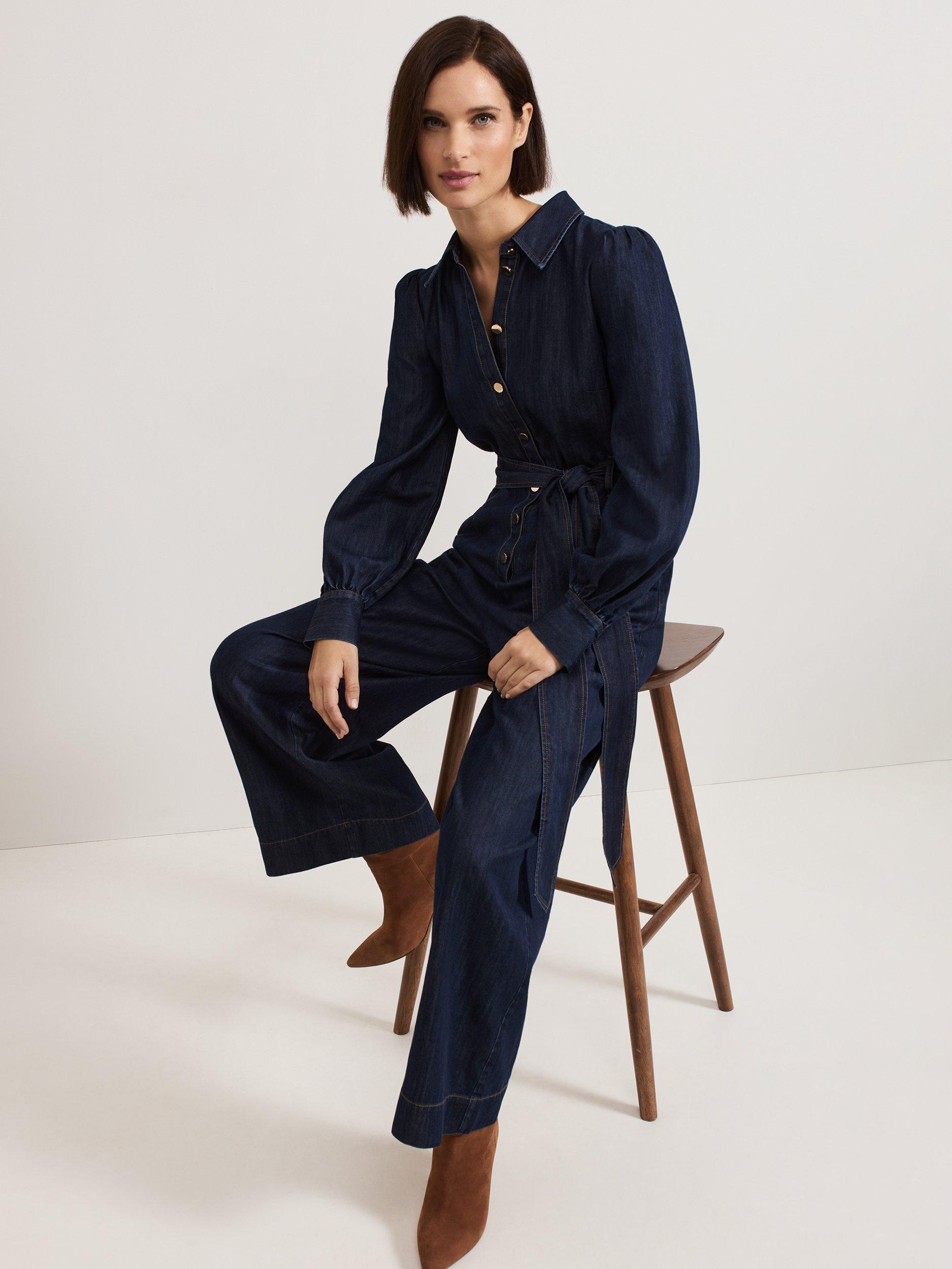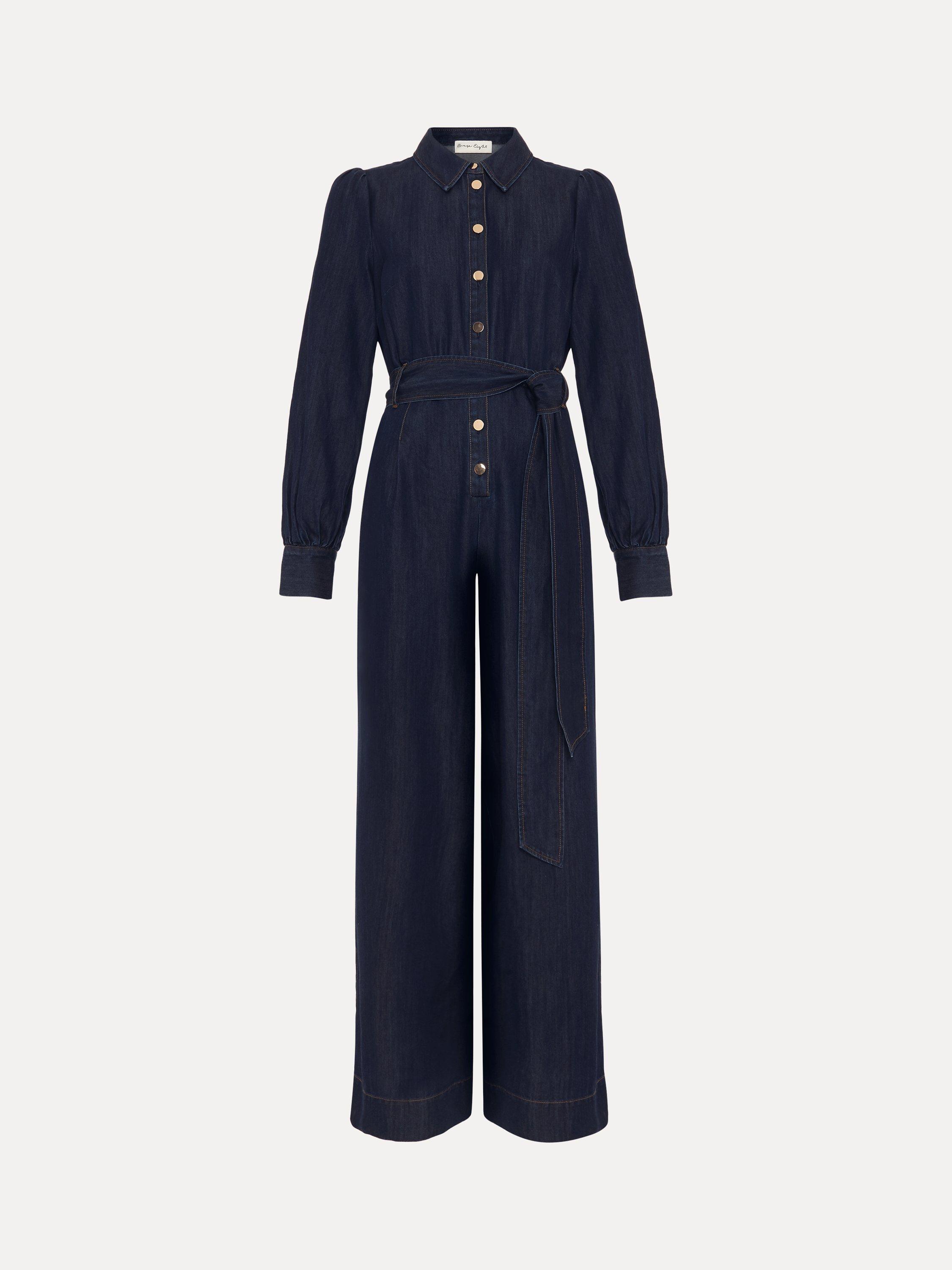 Simplify your style routine with this denim jumpsuit. The Gemma jumpsuit features gold button-through detailing and a tie belt to highlight the waist for a refined finish. The wide-leg silhouette provides wear-all-day comfortability whilst adding dimension. We style ours with our favourite pair of boots.
