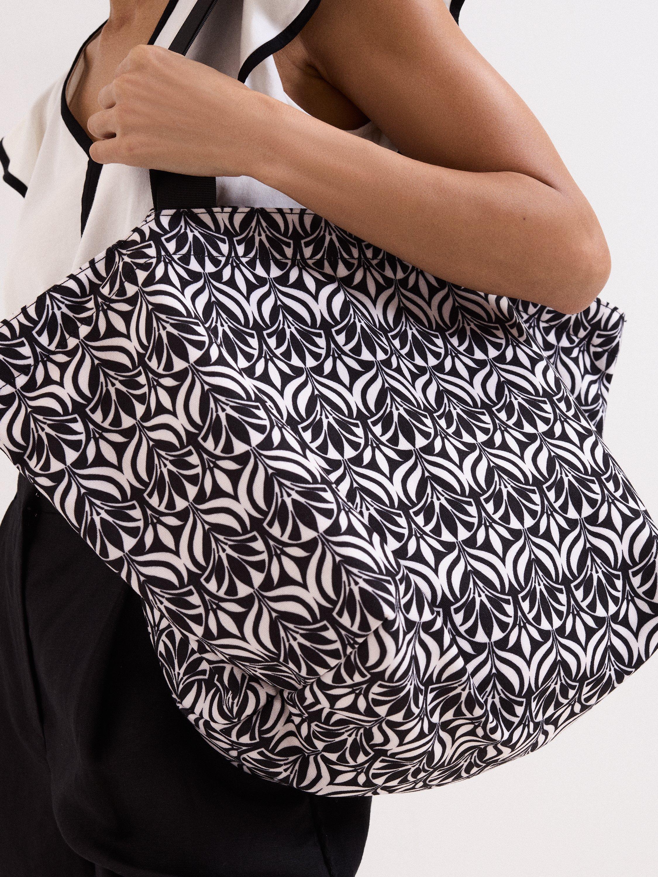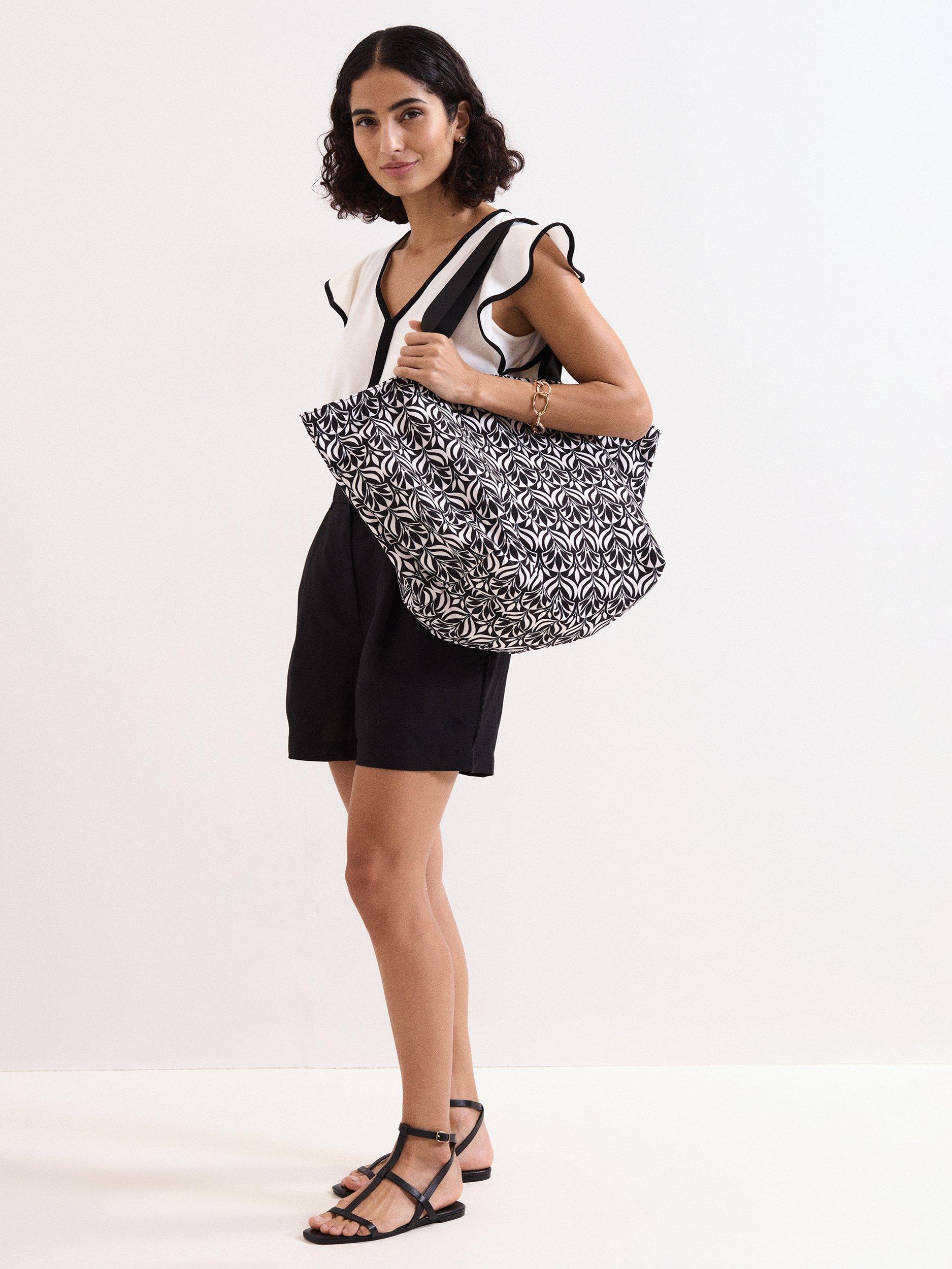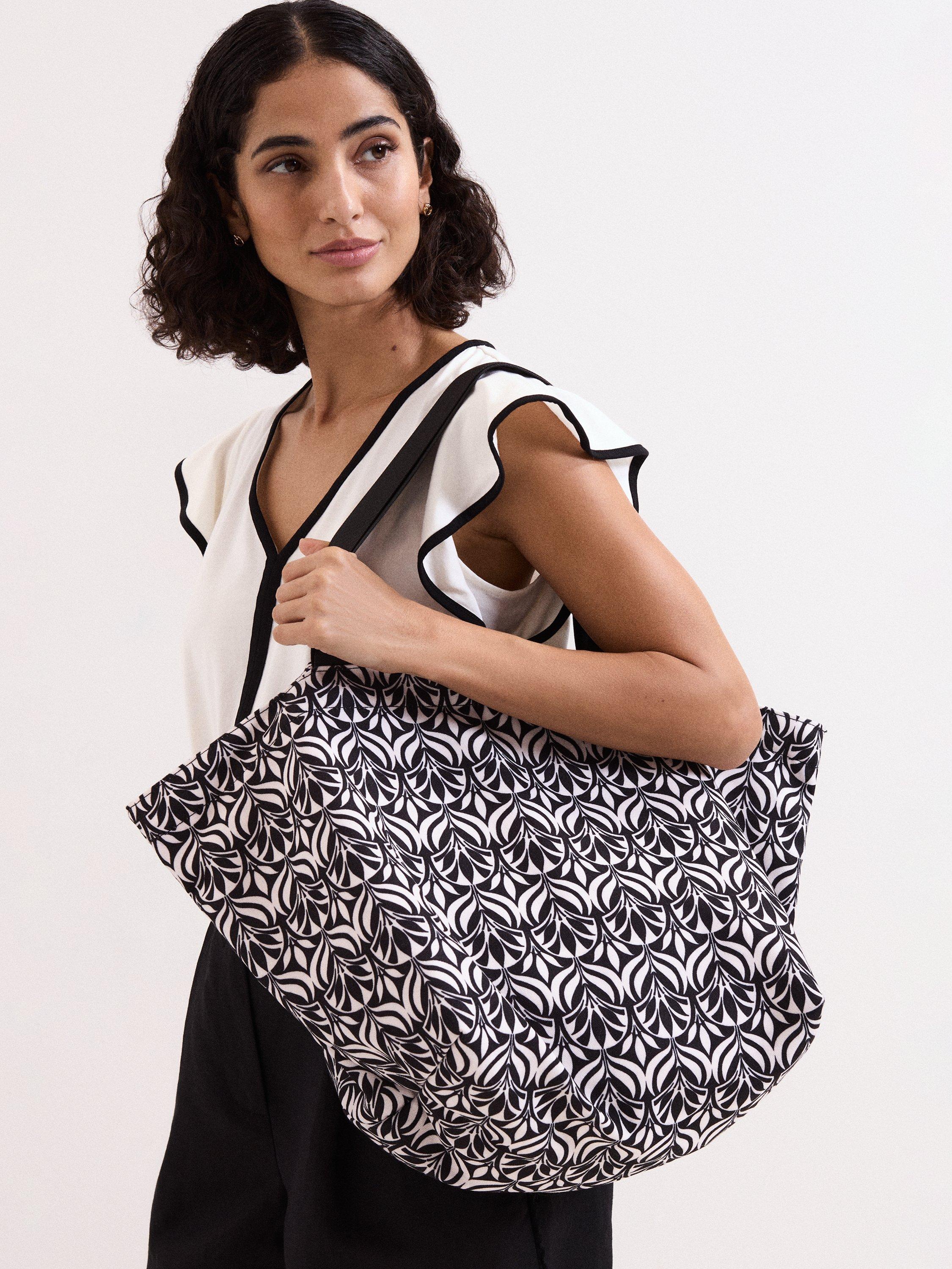 A beach bag by Phase Eight with a geometric pattern adds a playful twist. Designed for practicality, it keeps your essentials organised wherever your day takes you.
