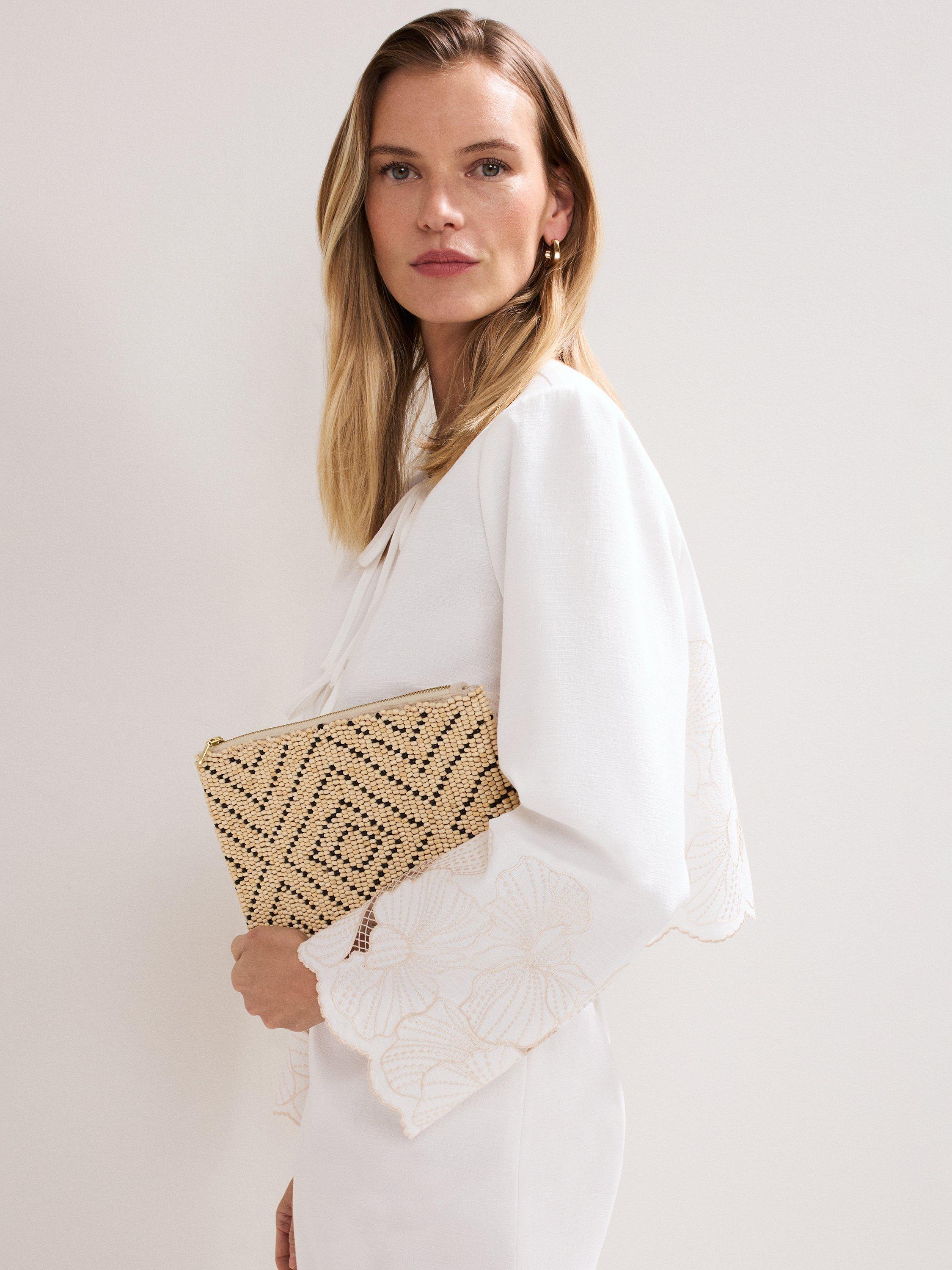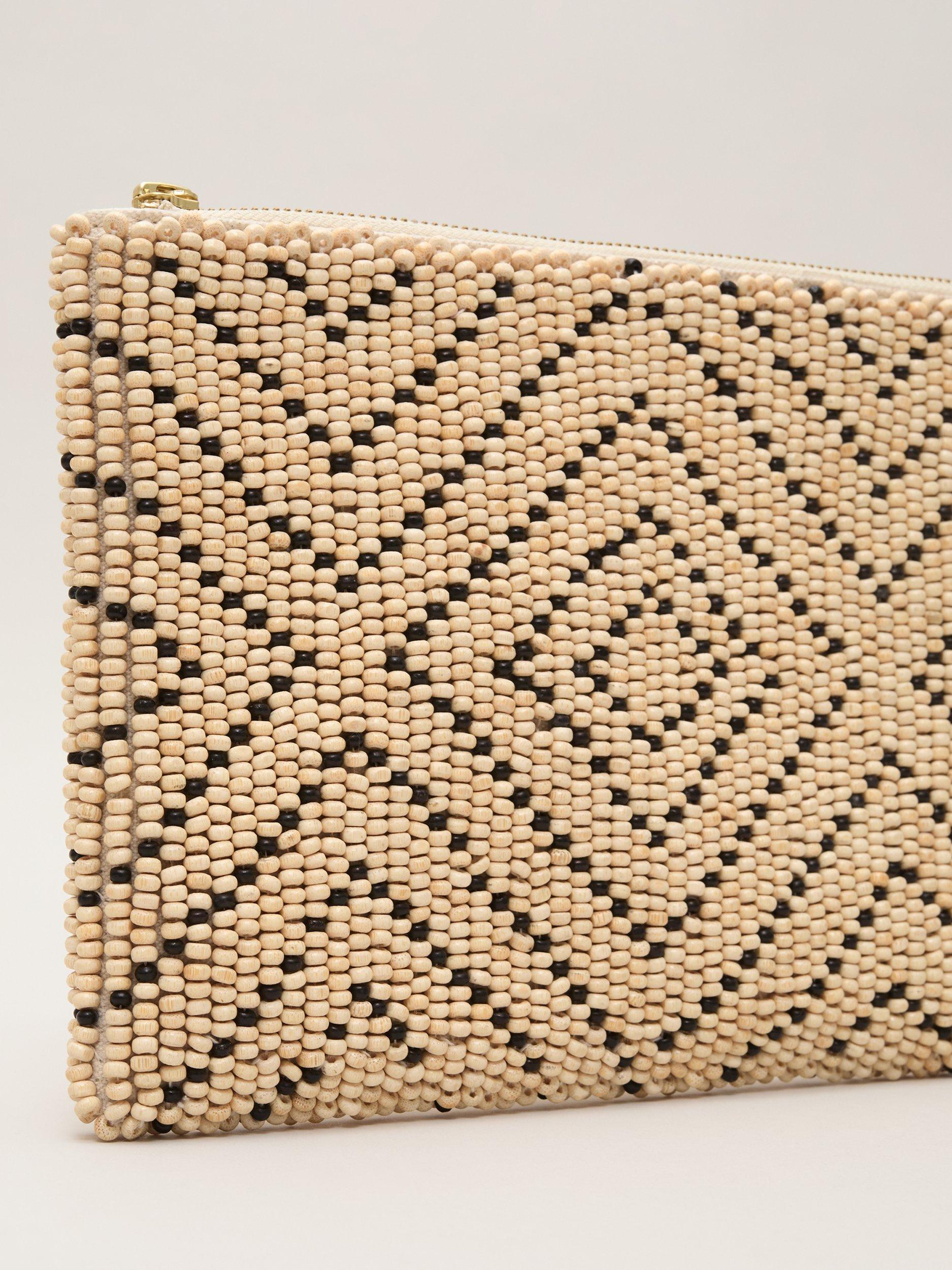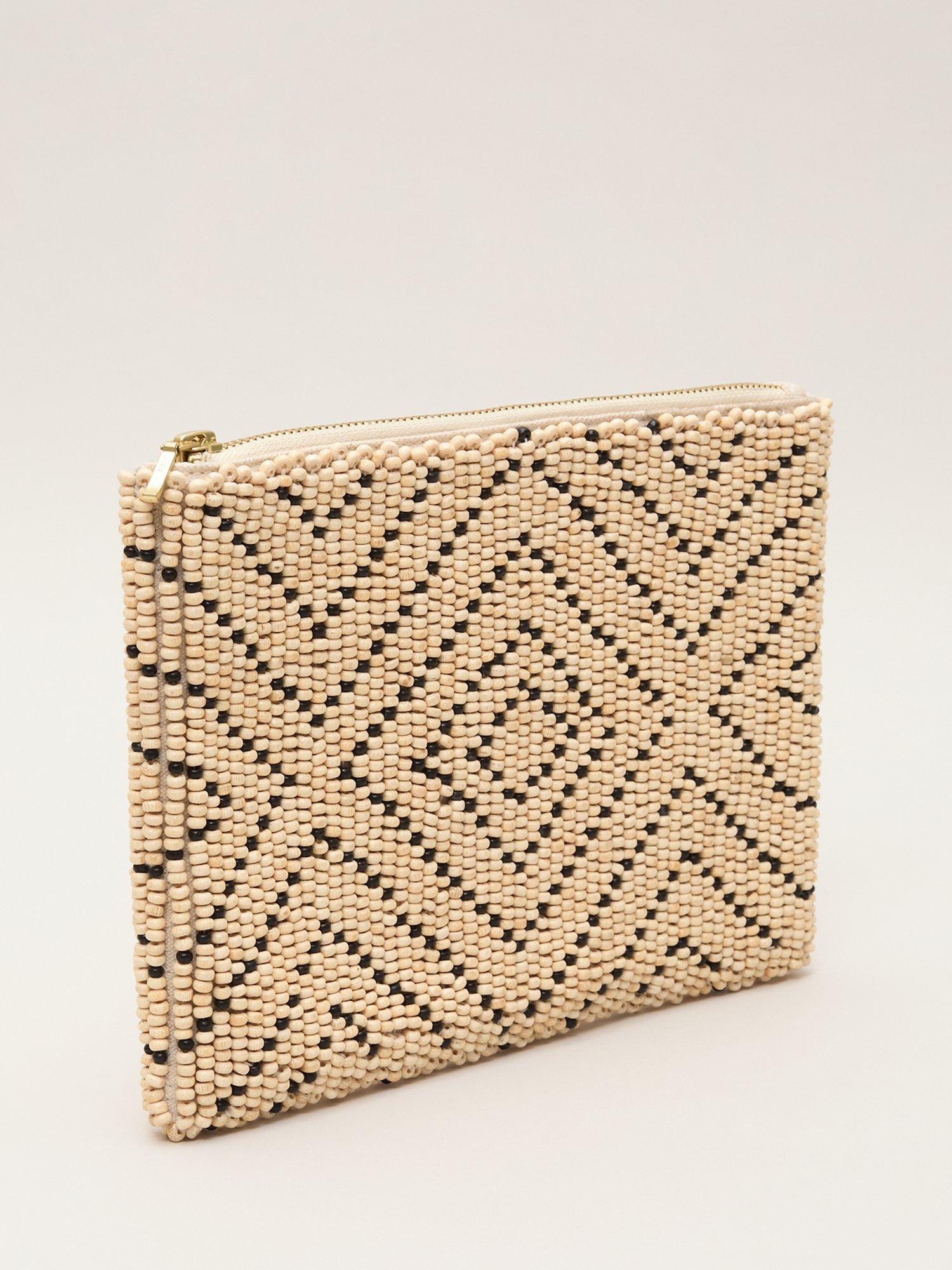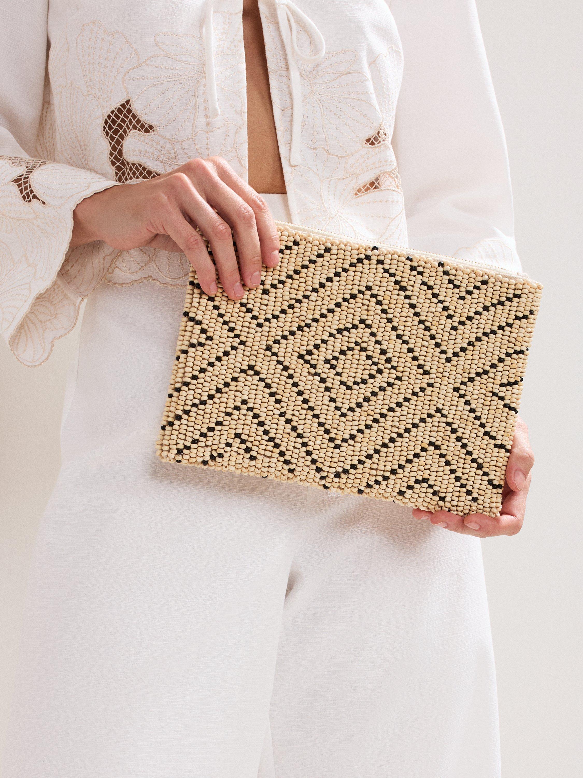 Simple yet elegant, this beaded clutch bag is the perfect day-to-night accessory. The geometric design provides a contemporary update that we love to finish our favourite holiday looks.