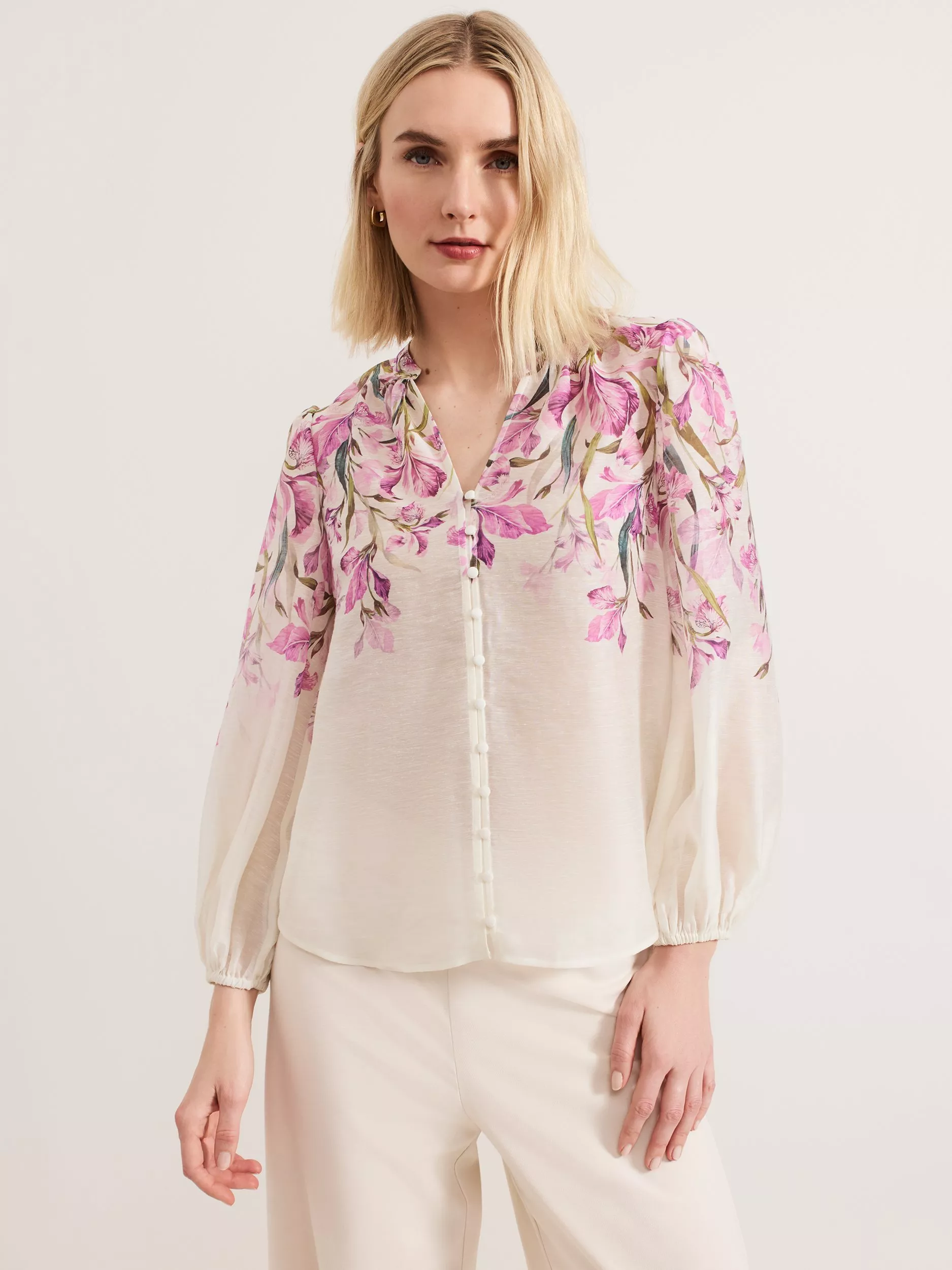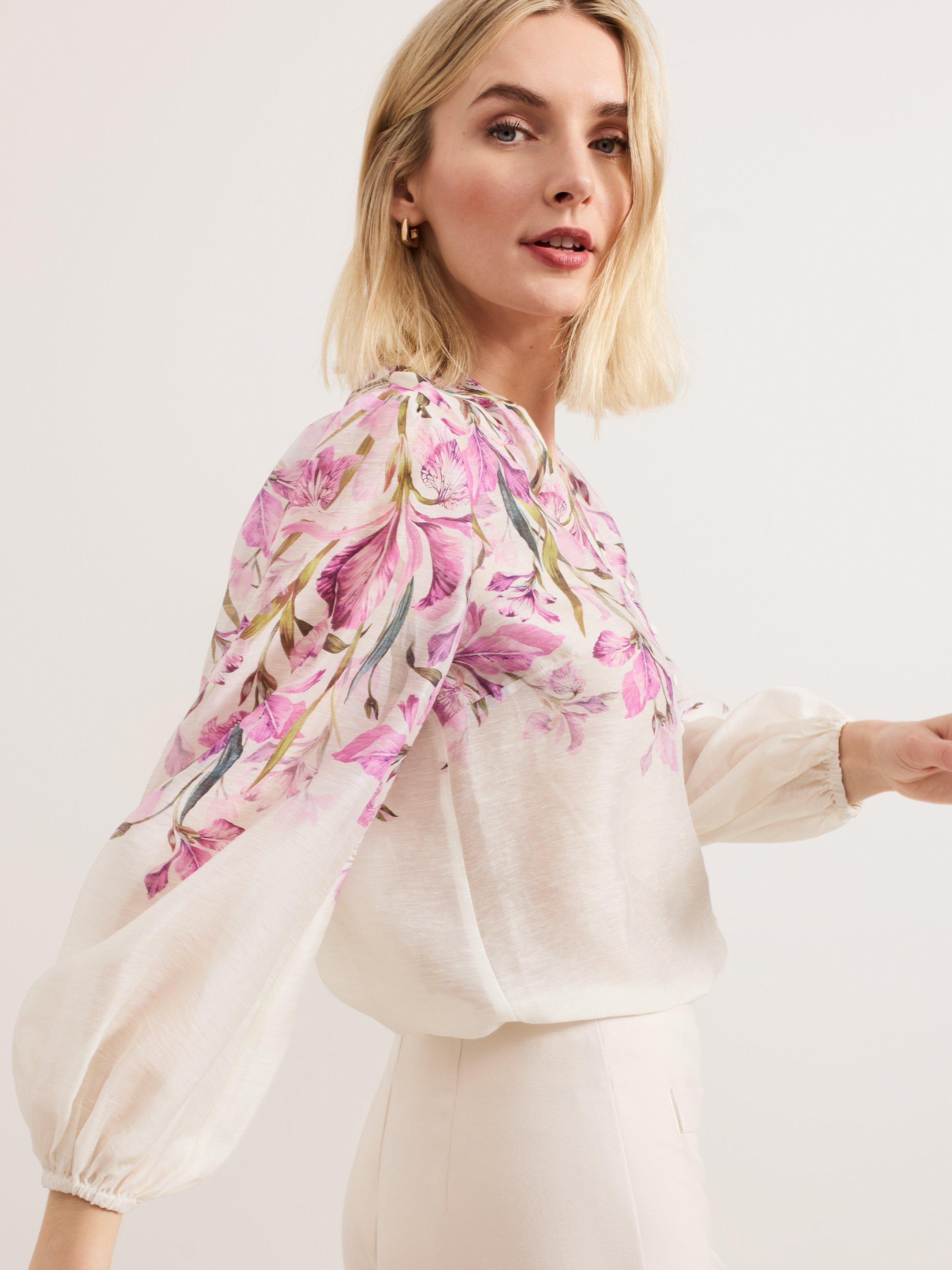 Slotting into your AM-PM wardrobe, this blouse is made from a new lightweight linen blend that's elevated with a spring-ready floral design for evening appeal. Elevated talking points include blouson sleeves that add subtle volume to the silhouette and button down detailing to finish.