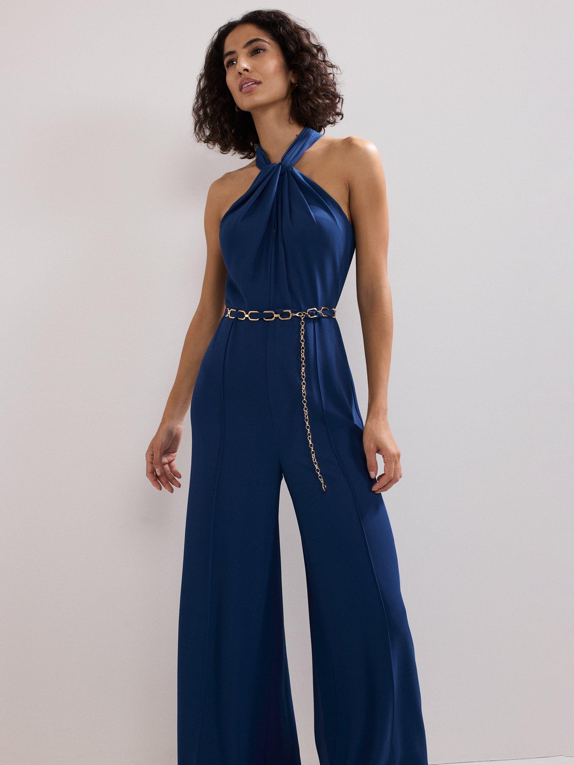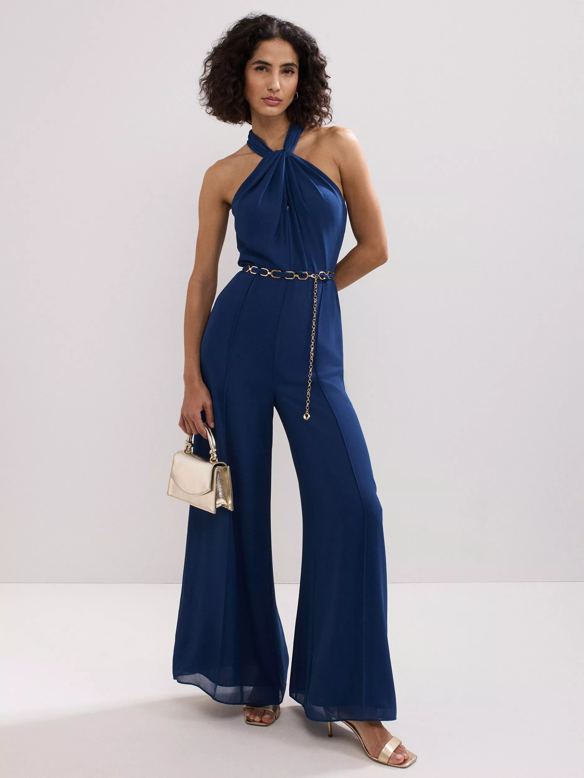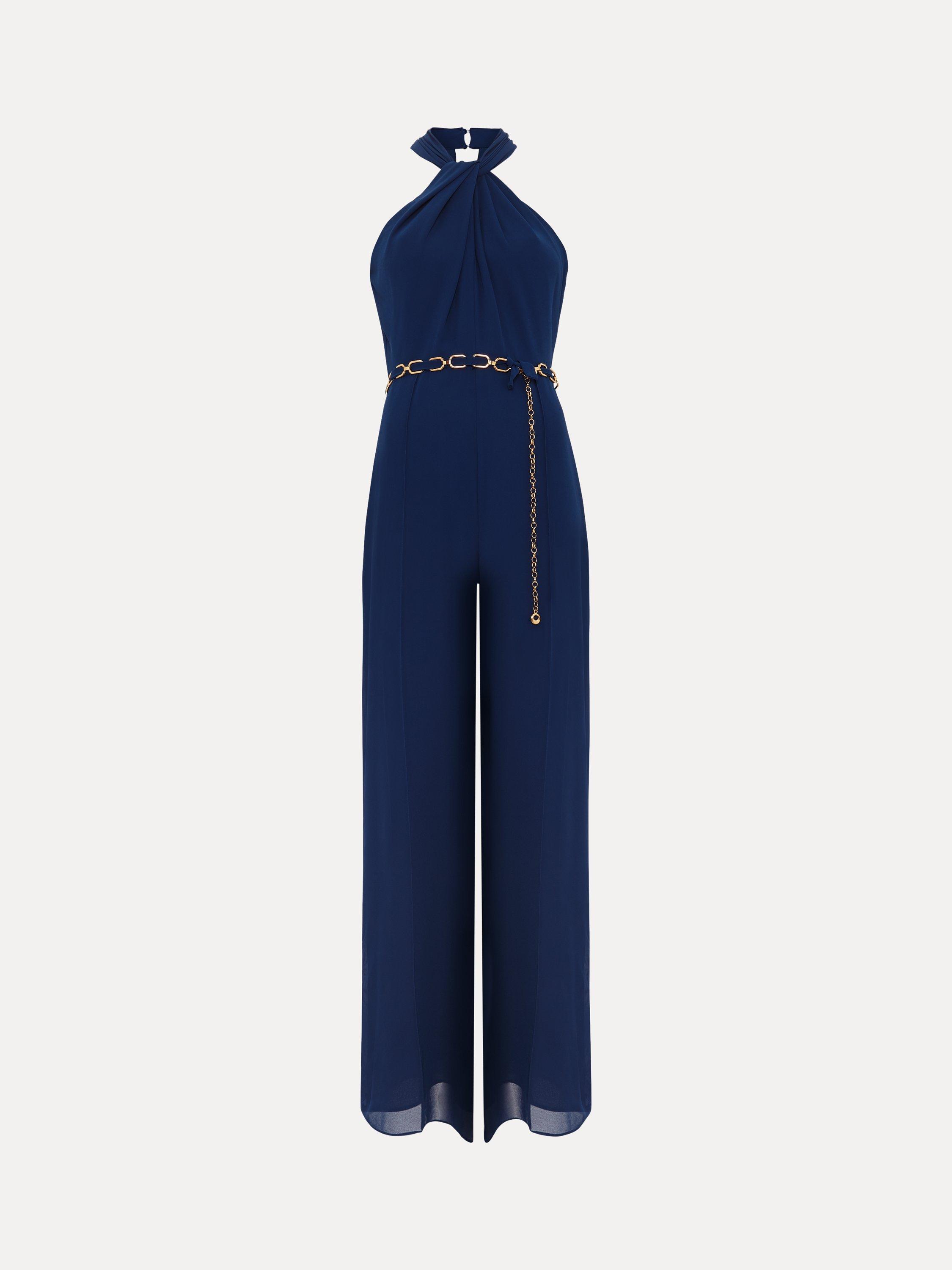 Inspired by nostalgic 70s style, this jumpsuit draws from the past while feeling fresh and modern. The halterneck wraps beautifully around the neck and drapes across the bodice. Embellished with a detachable belt, the perfect finishing touch.