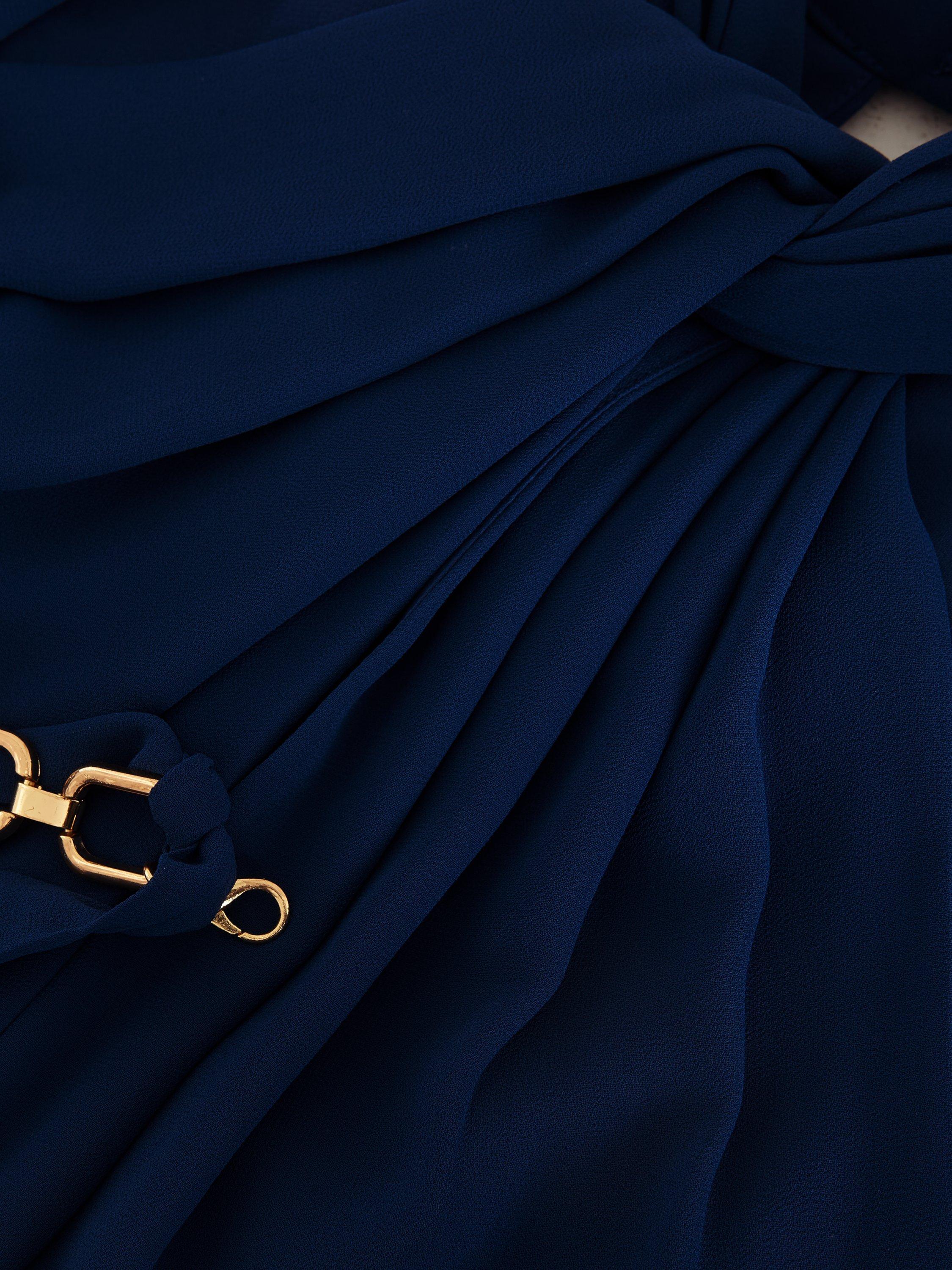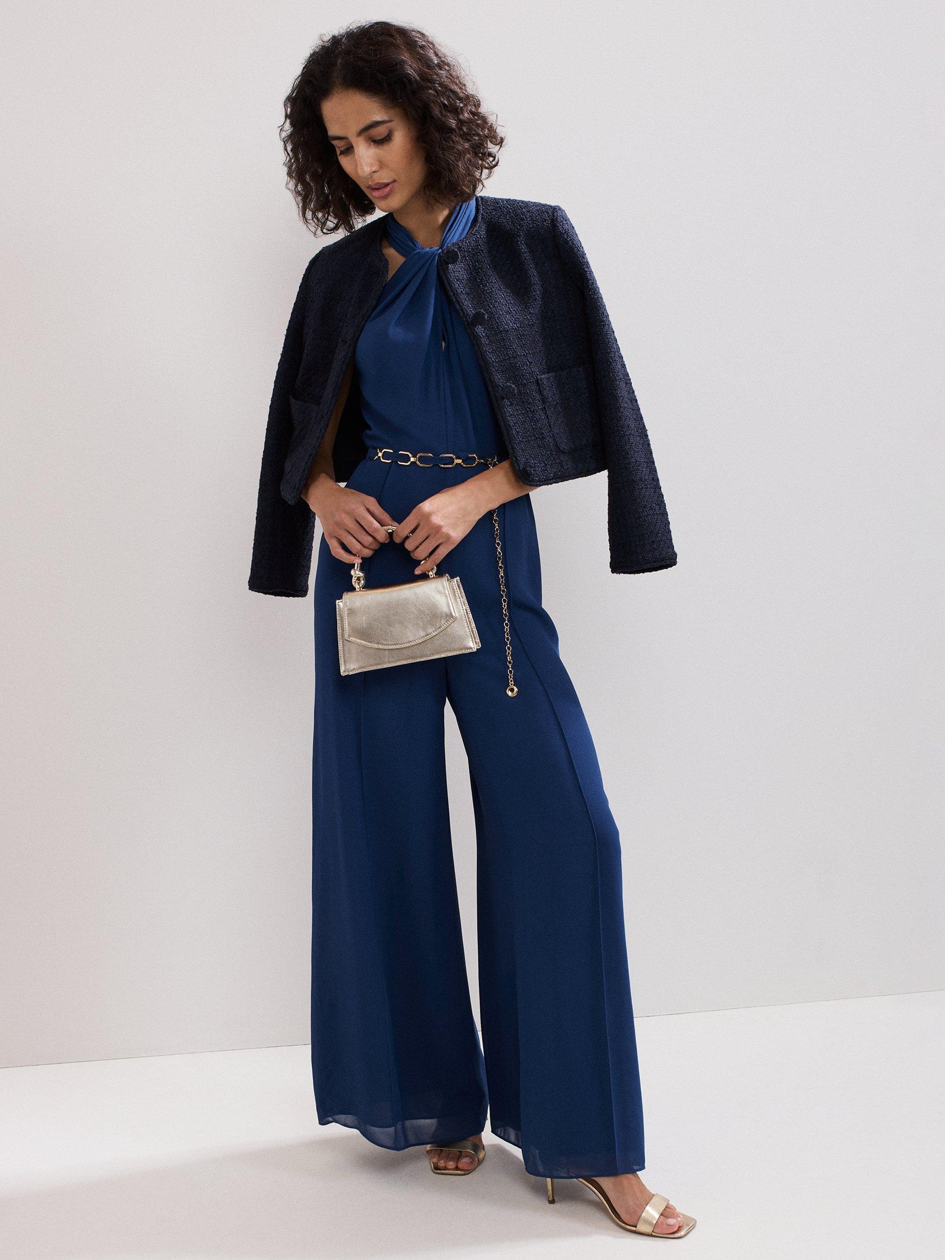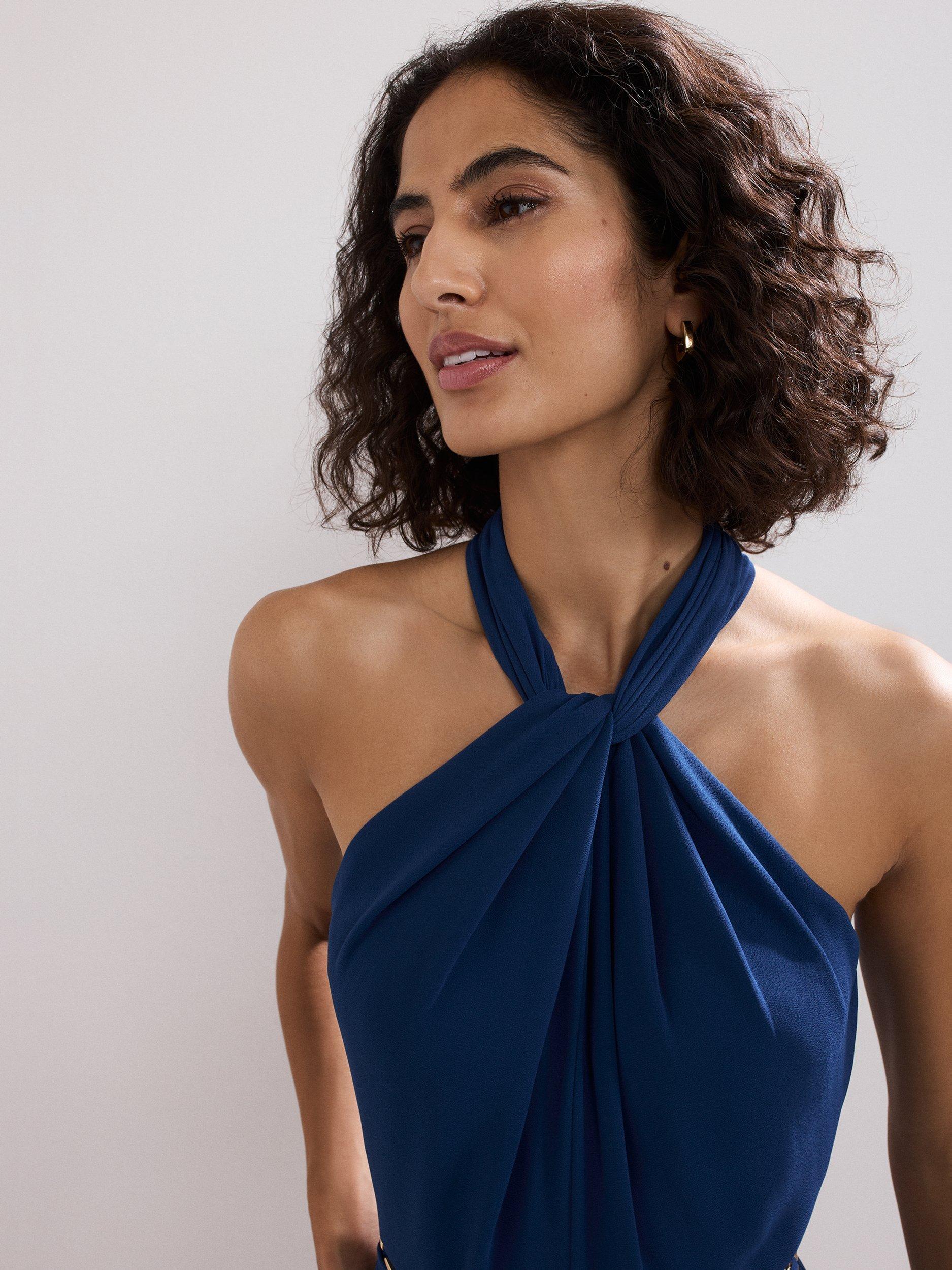 Inspired by nostalgic 70s style, this jumpsuit draws from the past while feeling fresh and modern. The halterneck wraps beautifully around the neck and drapes across the bodice. Embellished with a detachable belt, the perfect finishing touch.