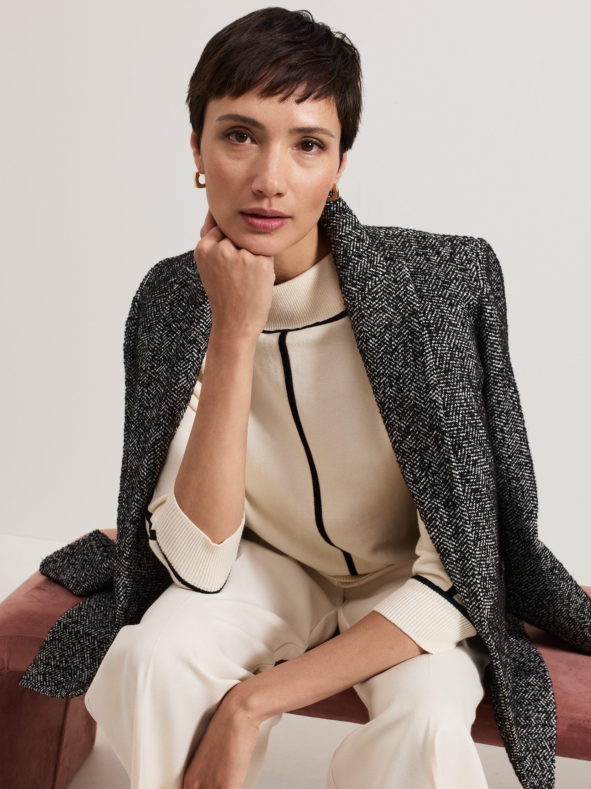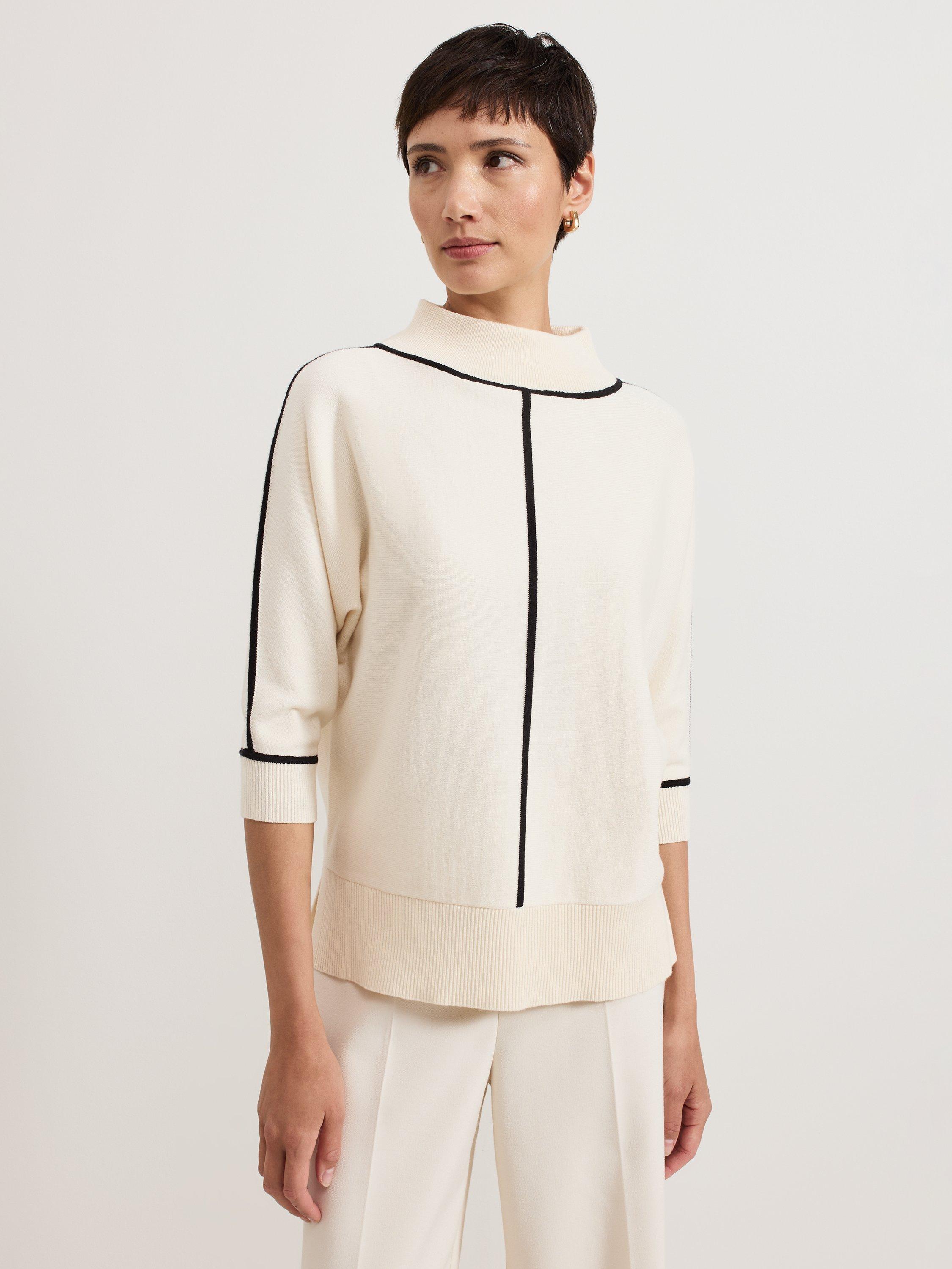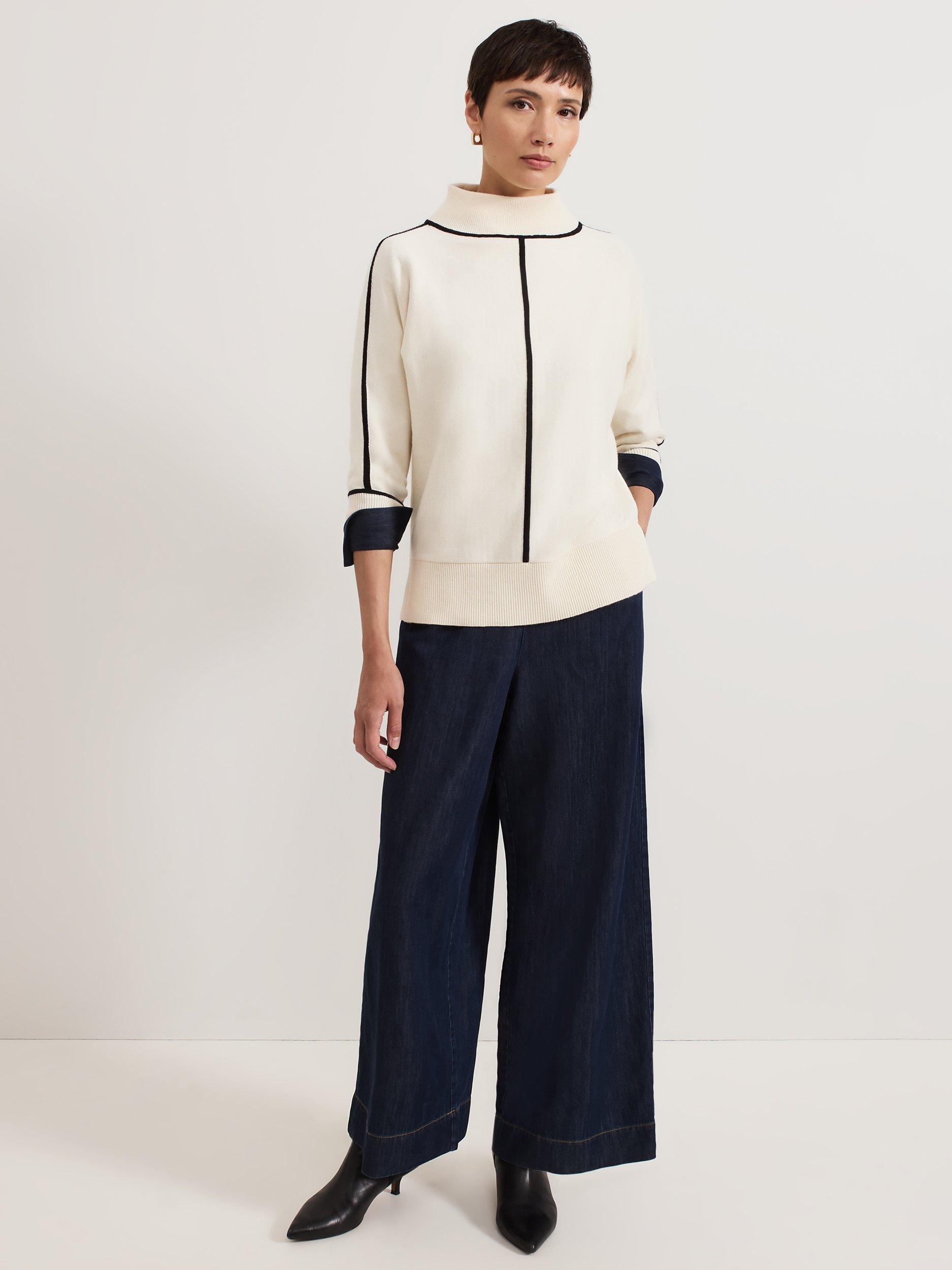 Effortlessly pair the Hallie jumper with anything in your wardrobe. In a timeless shade, this cosy jumper is elevated with a contemporary funnel neck and tipped detailing that creates subtle shape and contrast. We style ours with our favourite pair of jeans and boots for a daytime look.