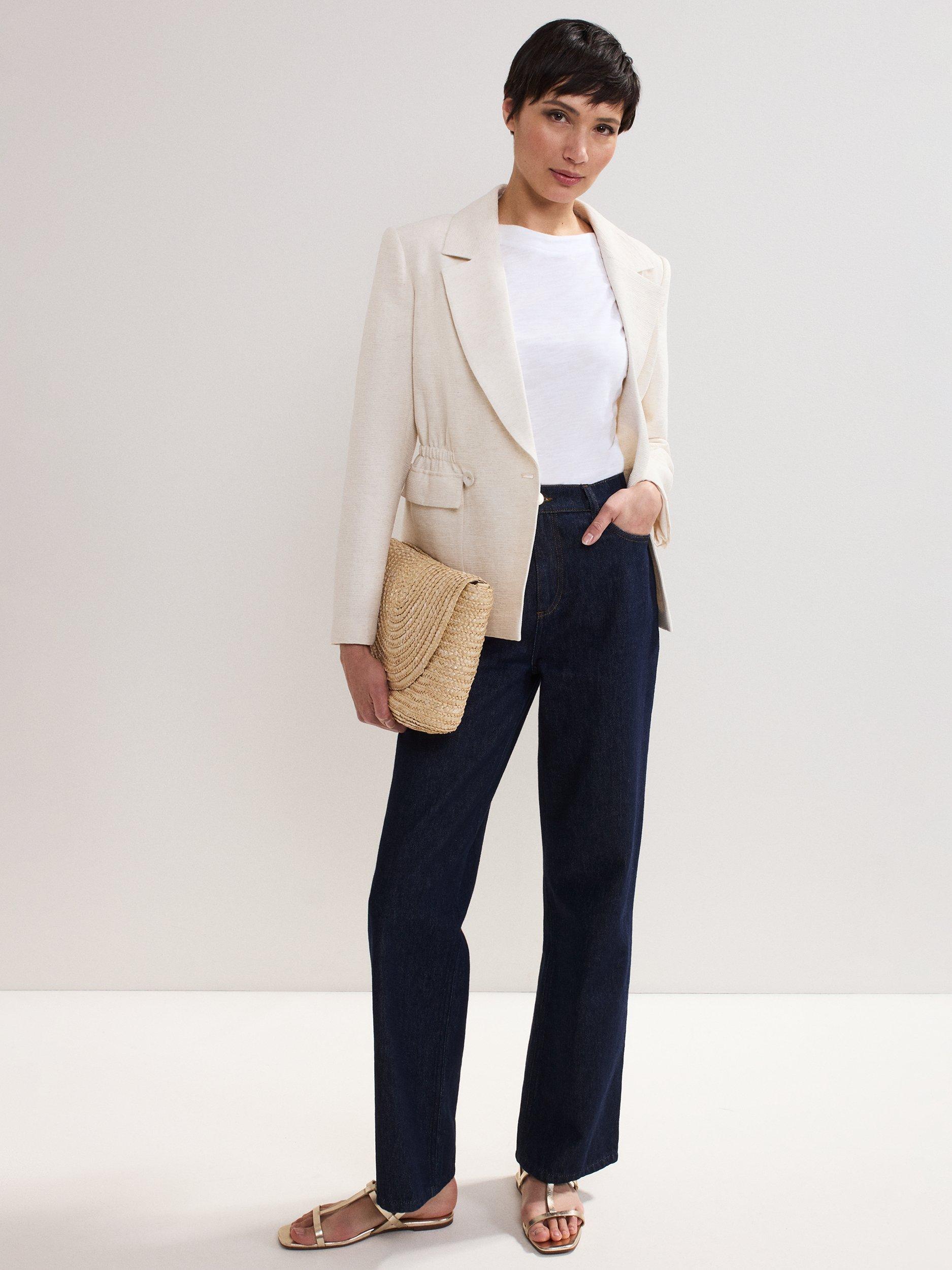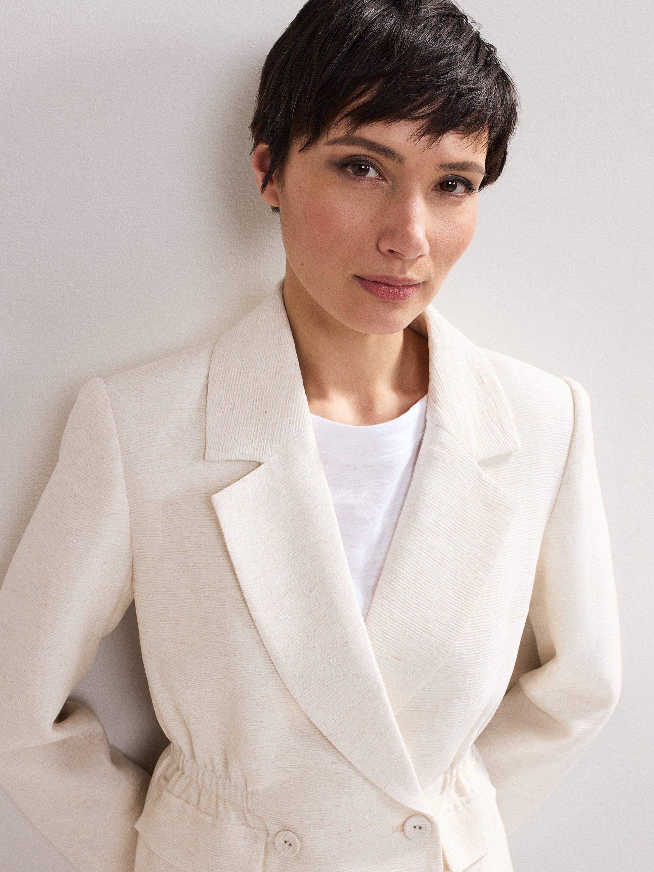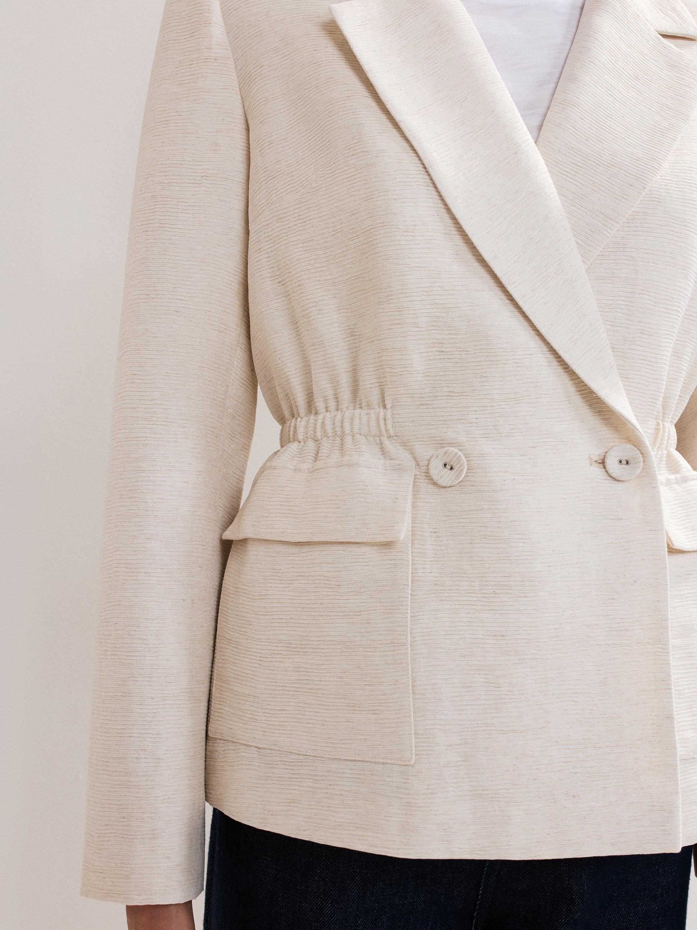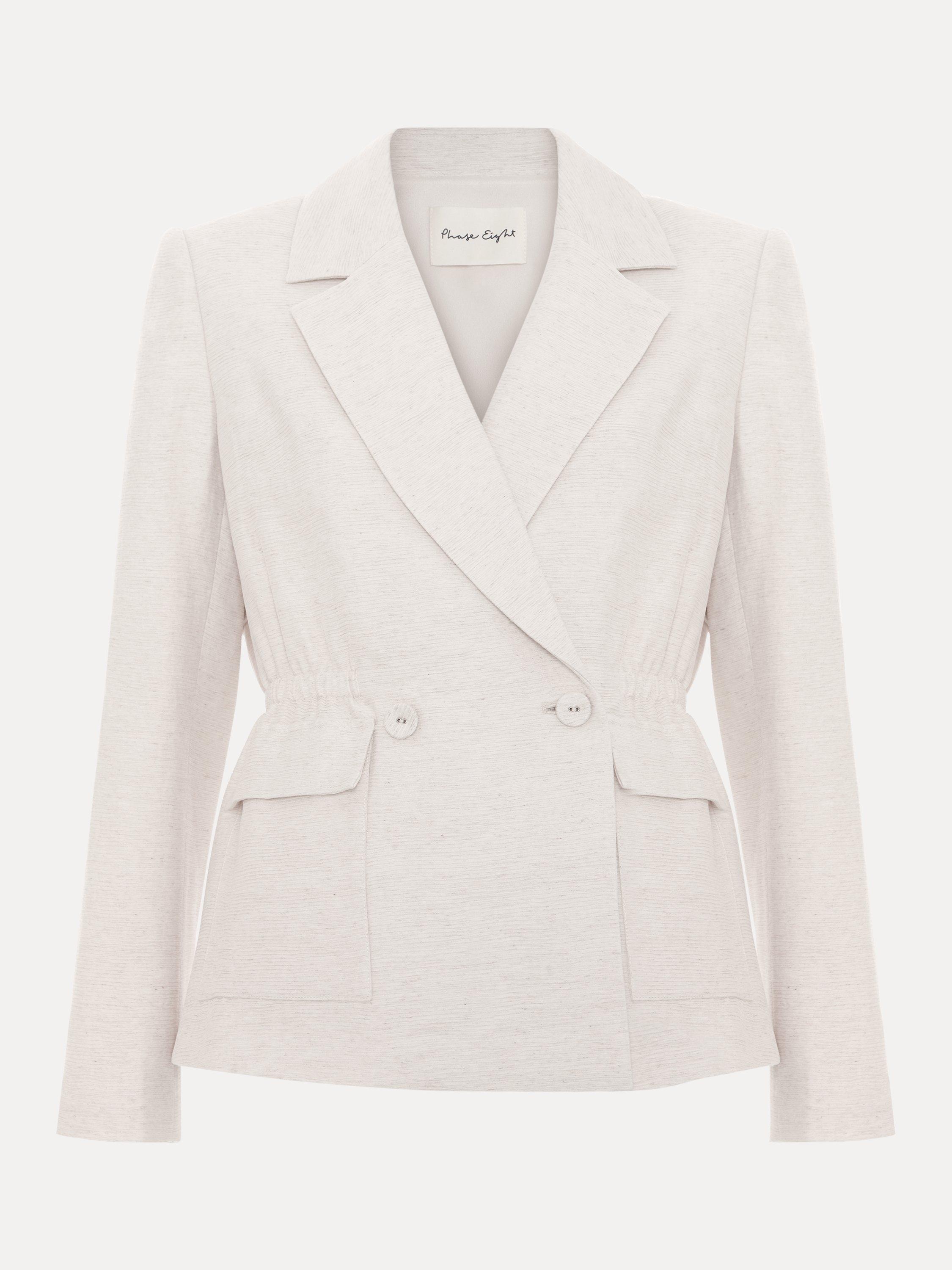 Add this staple jacket to your collection. Tailored with a cinched waist for a flattering fit, this double-breasted jacket is crafted with a linen blend, making it a perfect lightweight option for warmer days. Style over any of your favourite outfits it guarantees a sophisticated look.