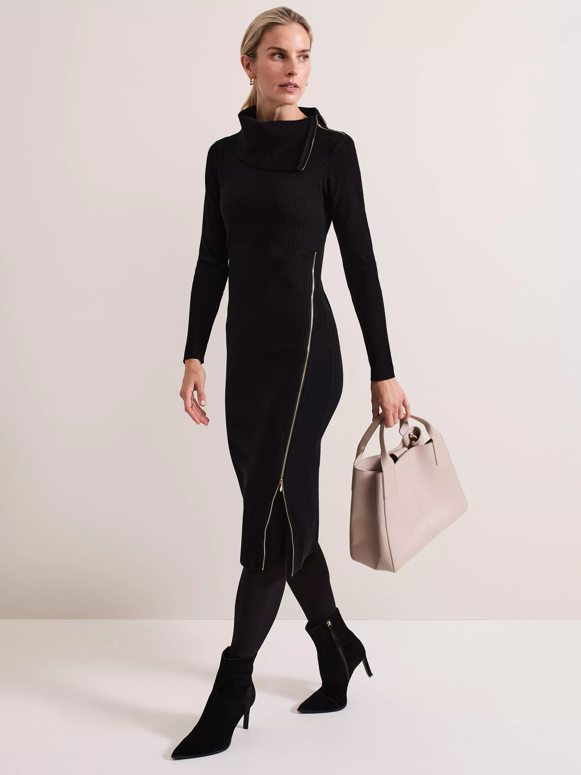 The classic dress your capsule wardrobe needs. Designed in a column shape that skims the body and featuring a foldover neck, the ribbed Hartley dress is finished with asymmetric zip detailing for a modern feminine style.