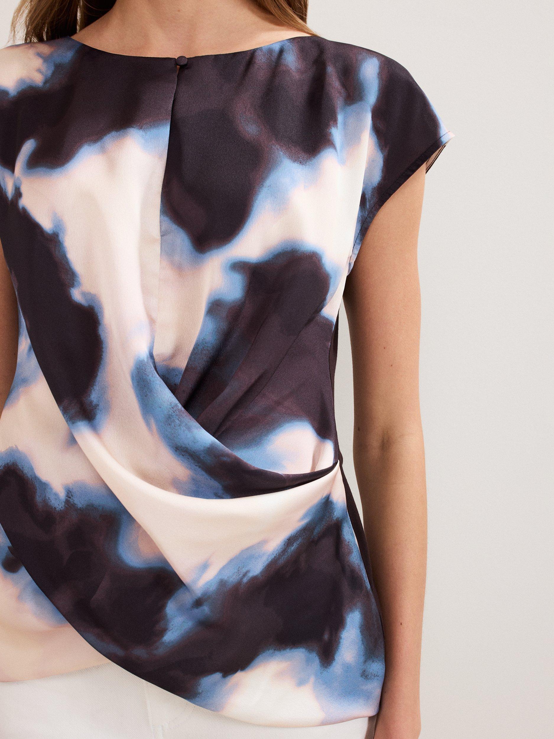 Contemporary and chic, this top is designed with directional design at the forefront. With a satin woven front and jersey back, it features a soft drape, which adds fluidity to the silhouette. Perfect for taking you from day to night, style with white jeans and matching sandals.