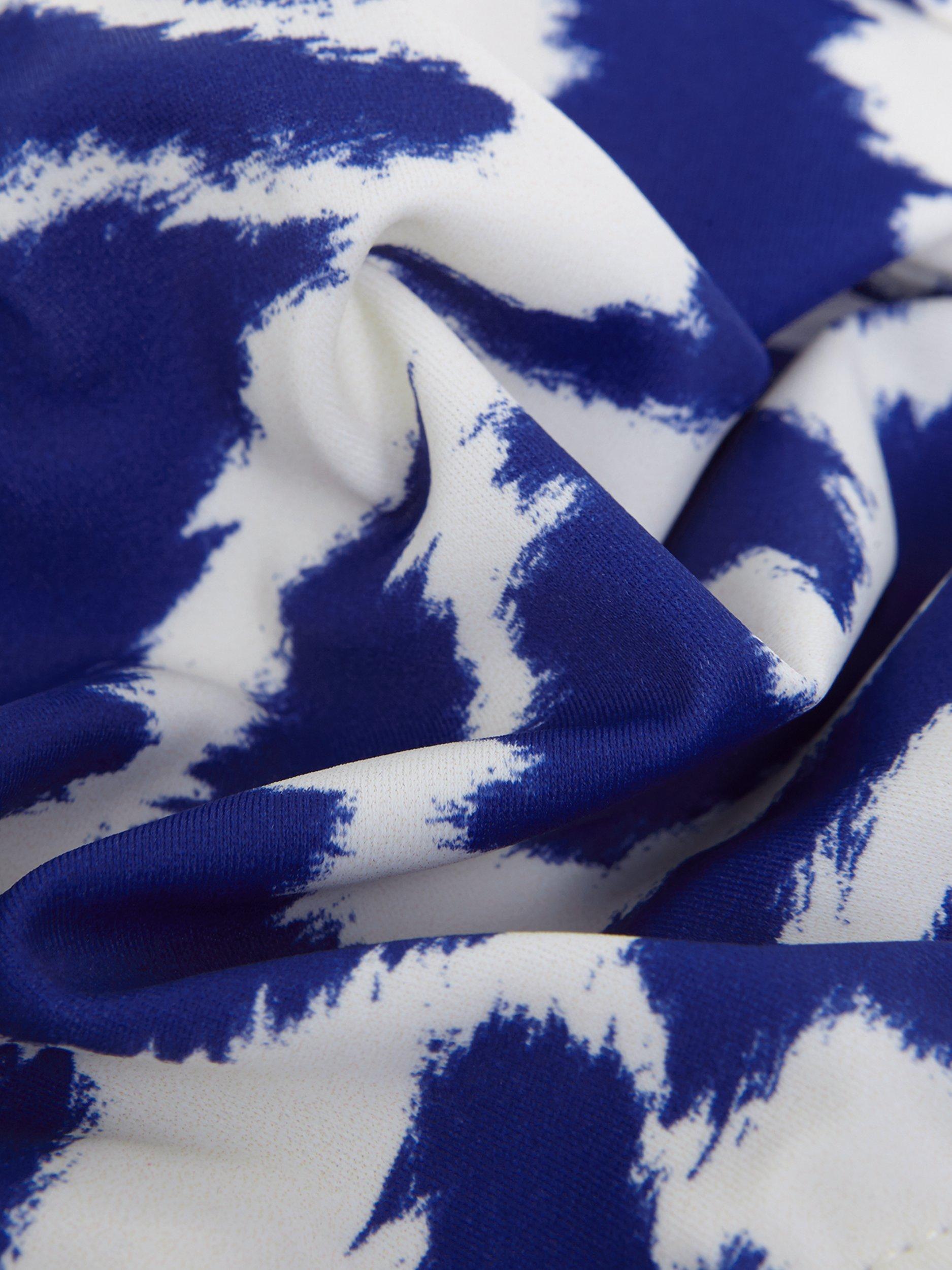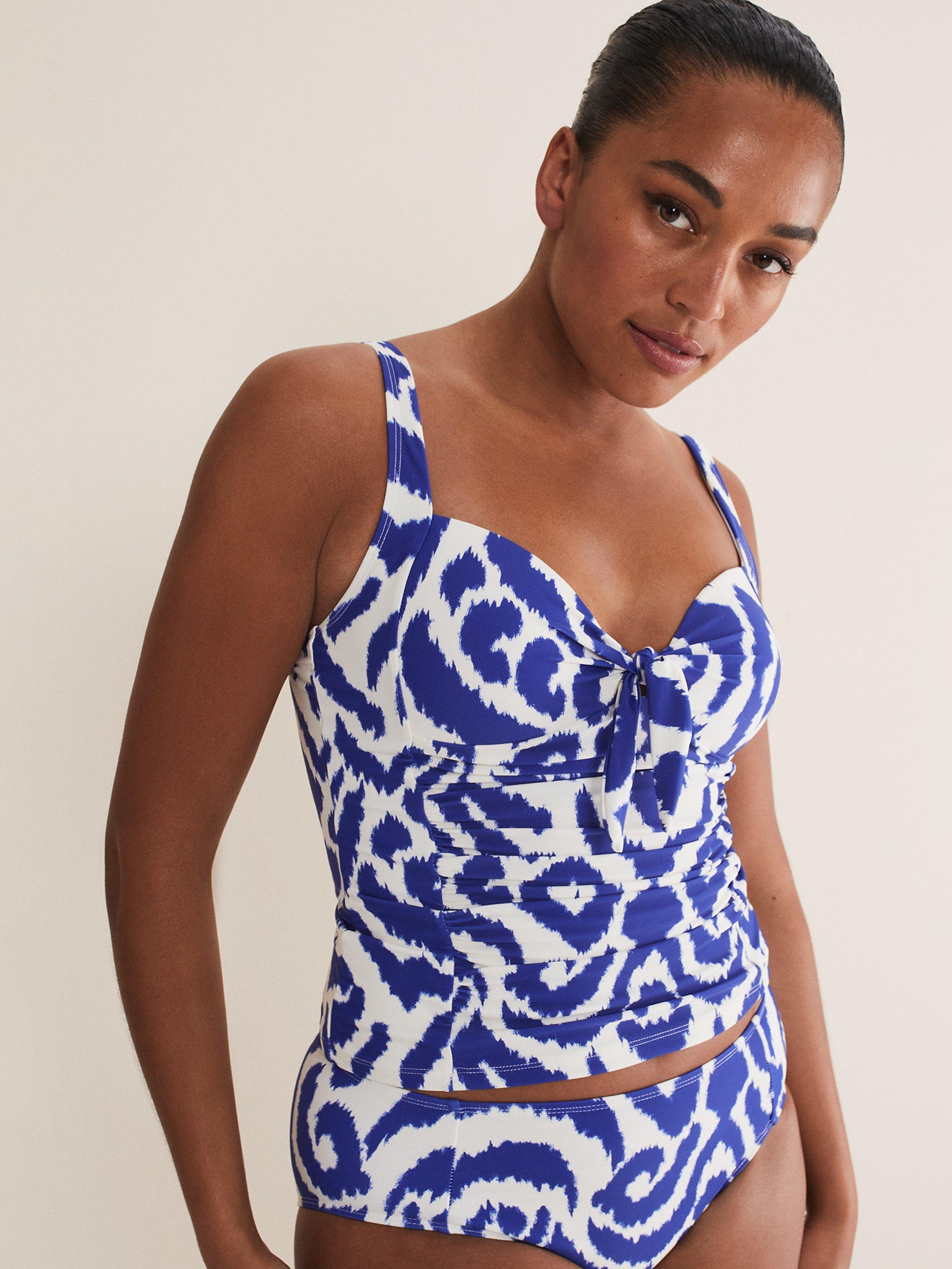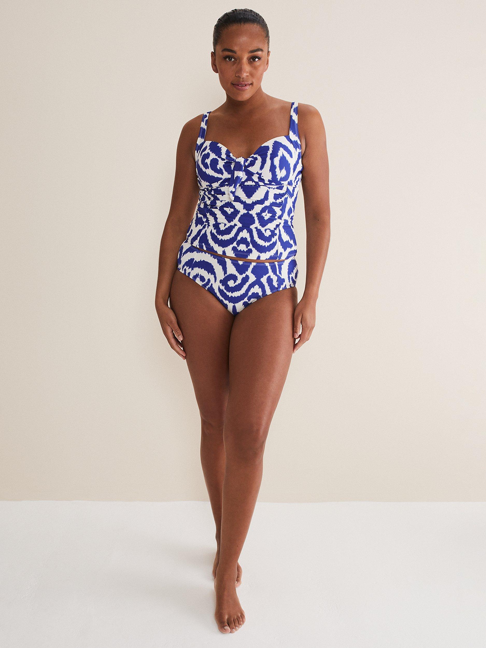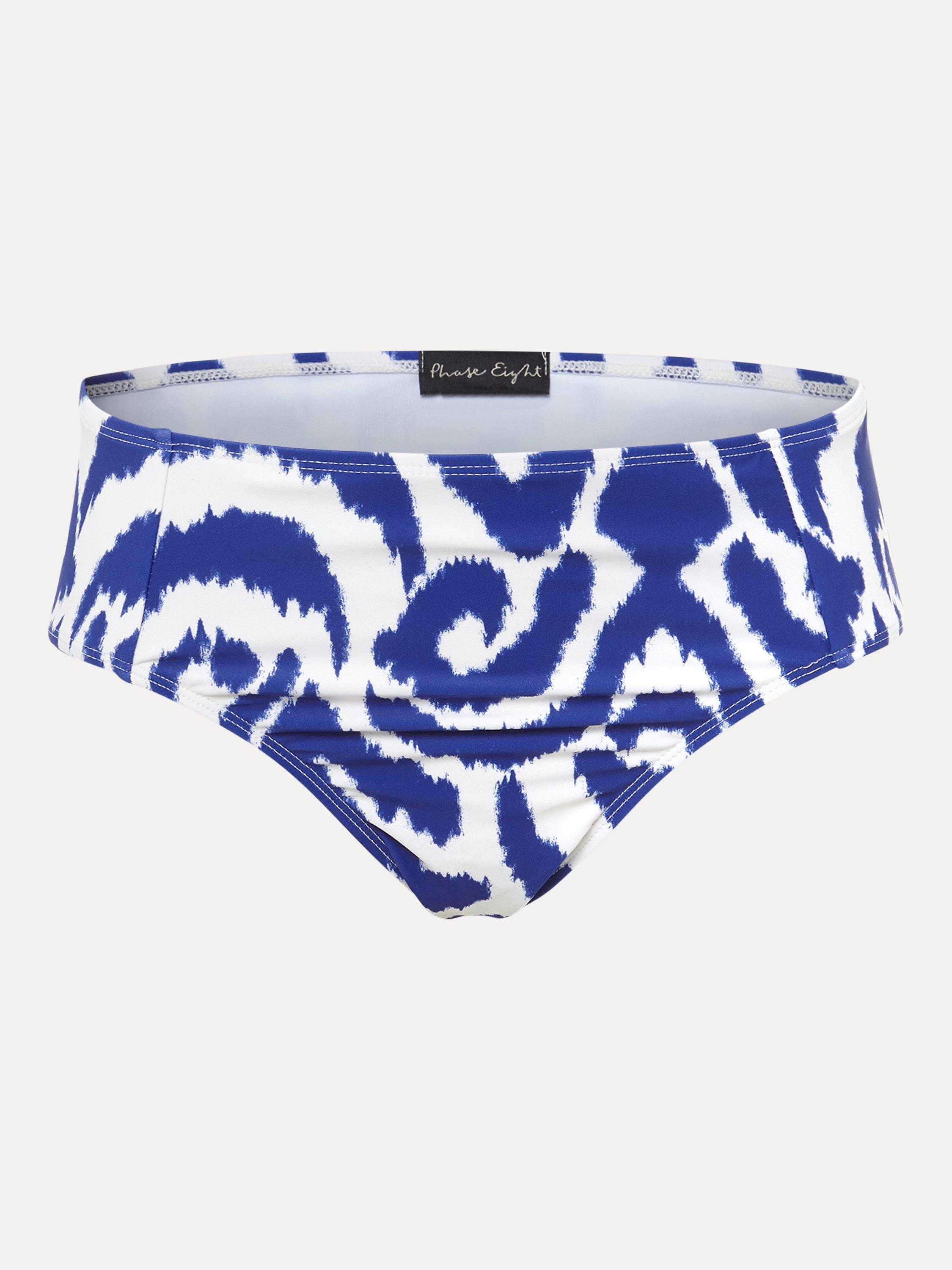 These tankini bottoms are designed with a vibrant blue and white abstract print and a comfortable flattering fit. Wear with the matching tankini top for perfect poolside style.