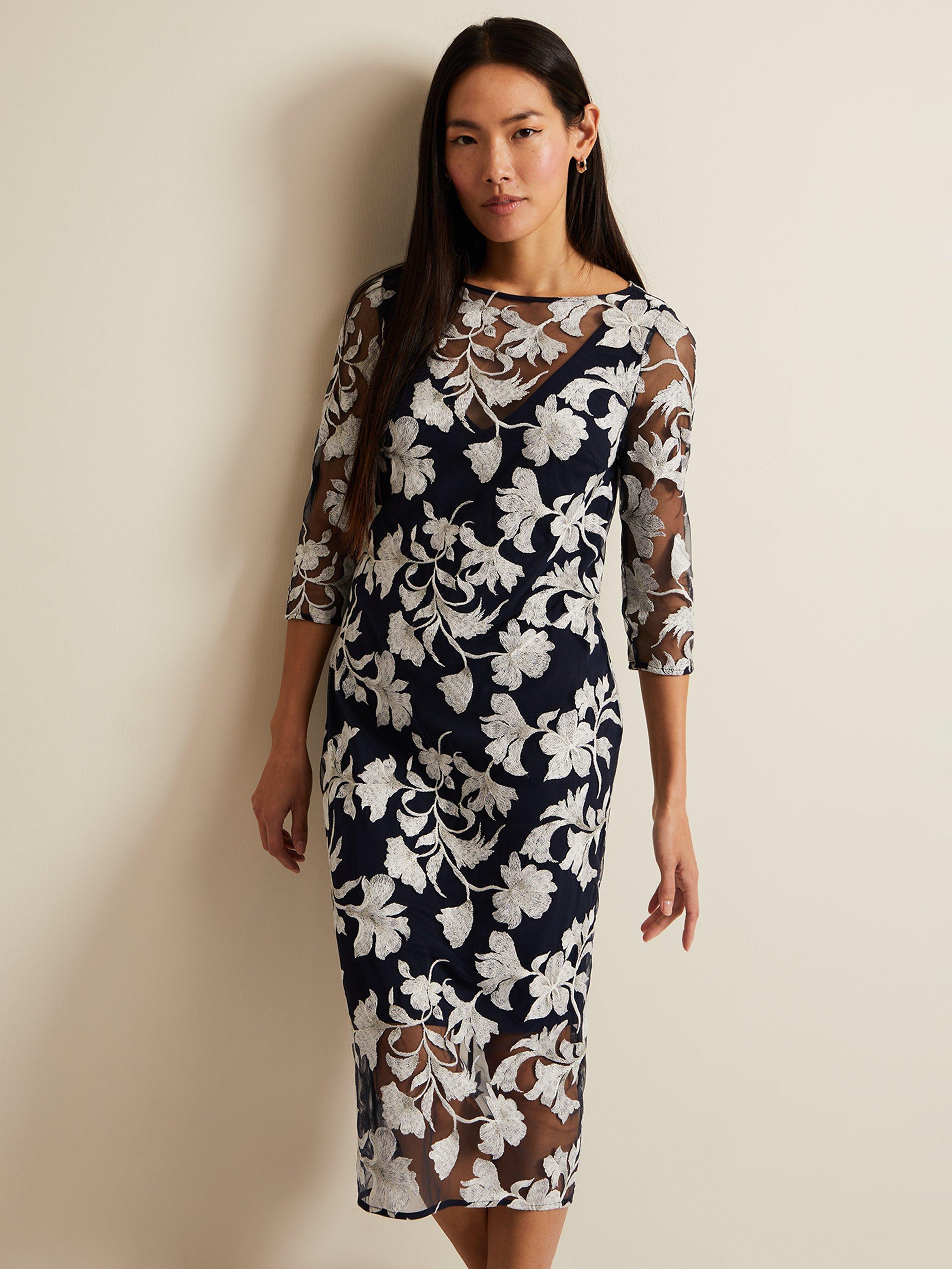 A contemporary style you'll wear time and time again. With a dark base the slim fit dress features a floral design with mesh detailing. Style with heels and a matching clutch for any of your upcoming events.