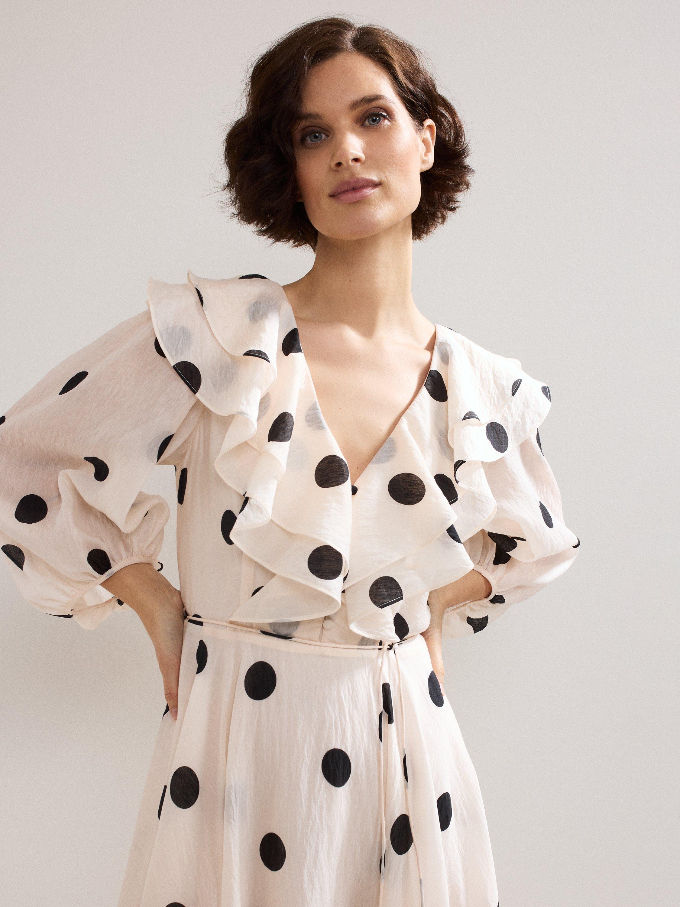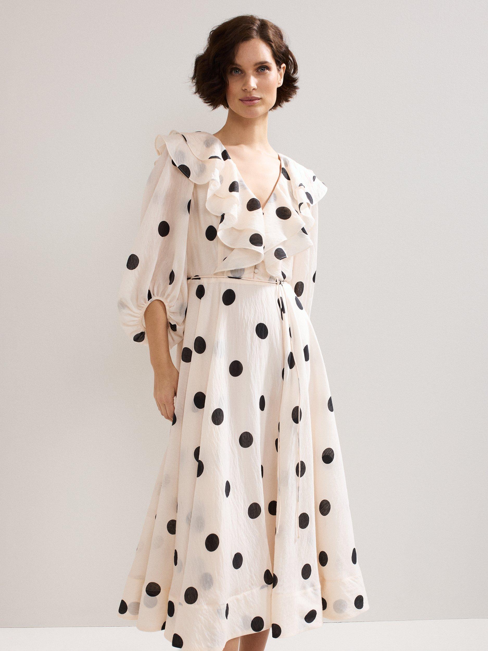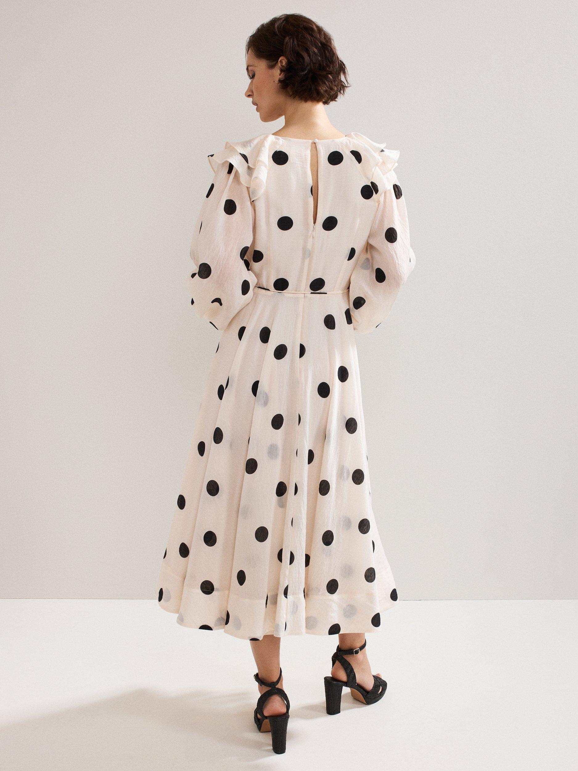 Exaggerating your silhouette in a fit and flare shape, this midi dress from Phase Eight is made from a liquid-like viscose blend. With a fuss-free but smart v-neckline and three quarter length sleeves, this style is drenched with season-less spots.