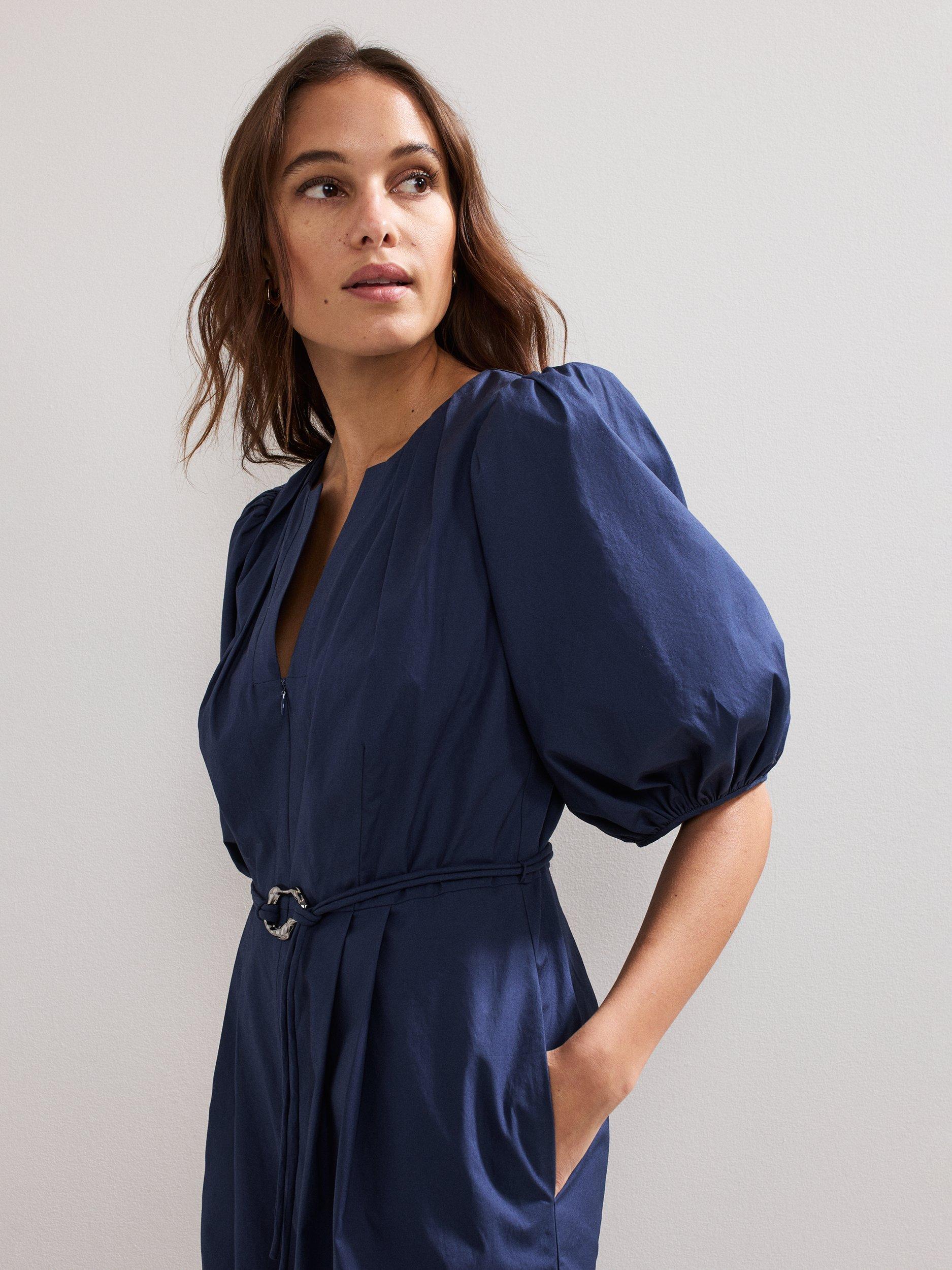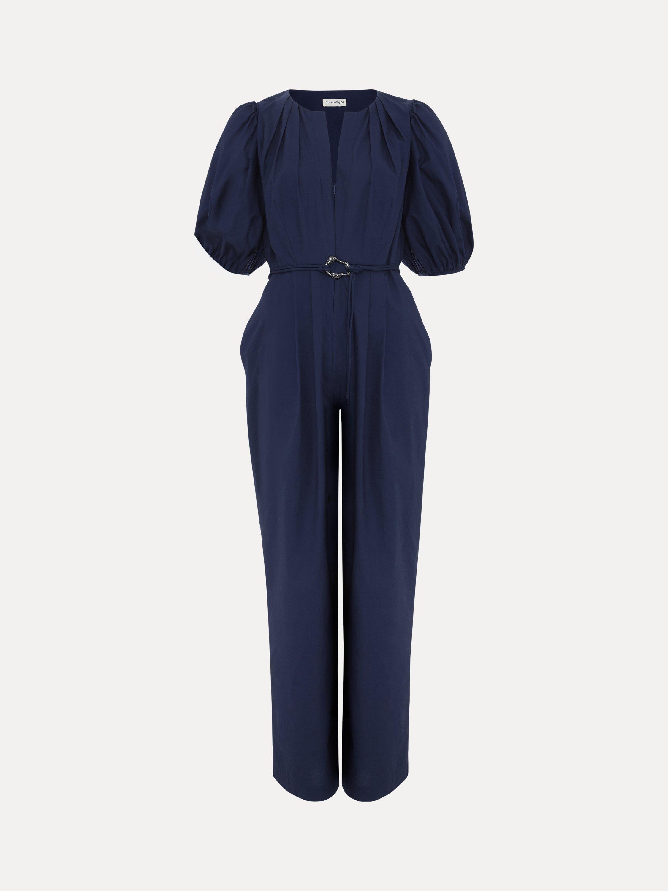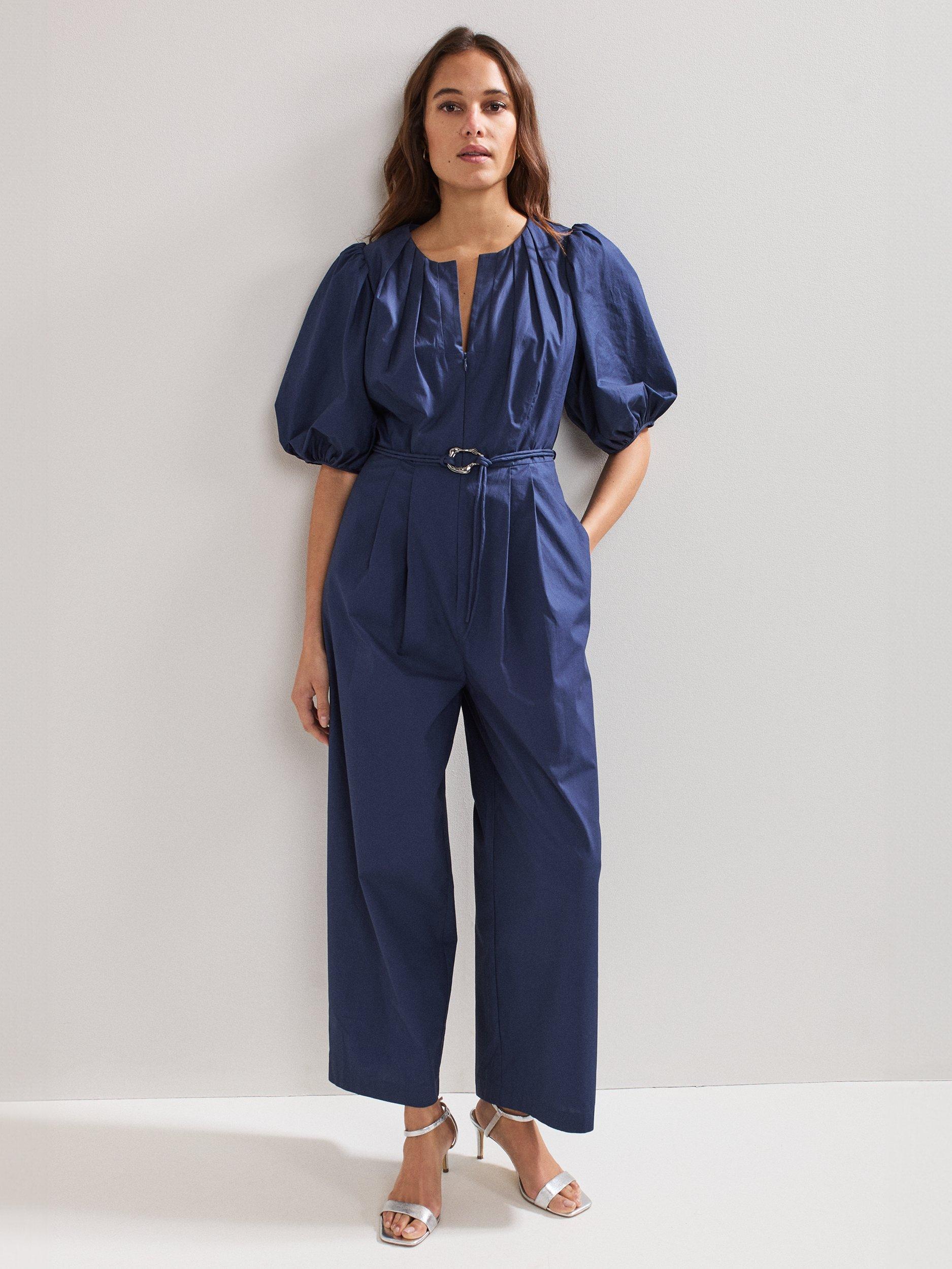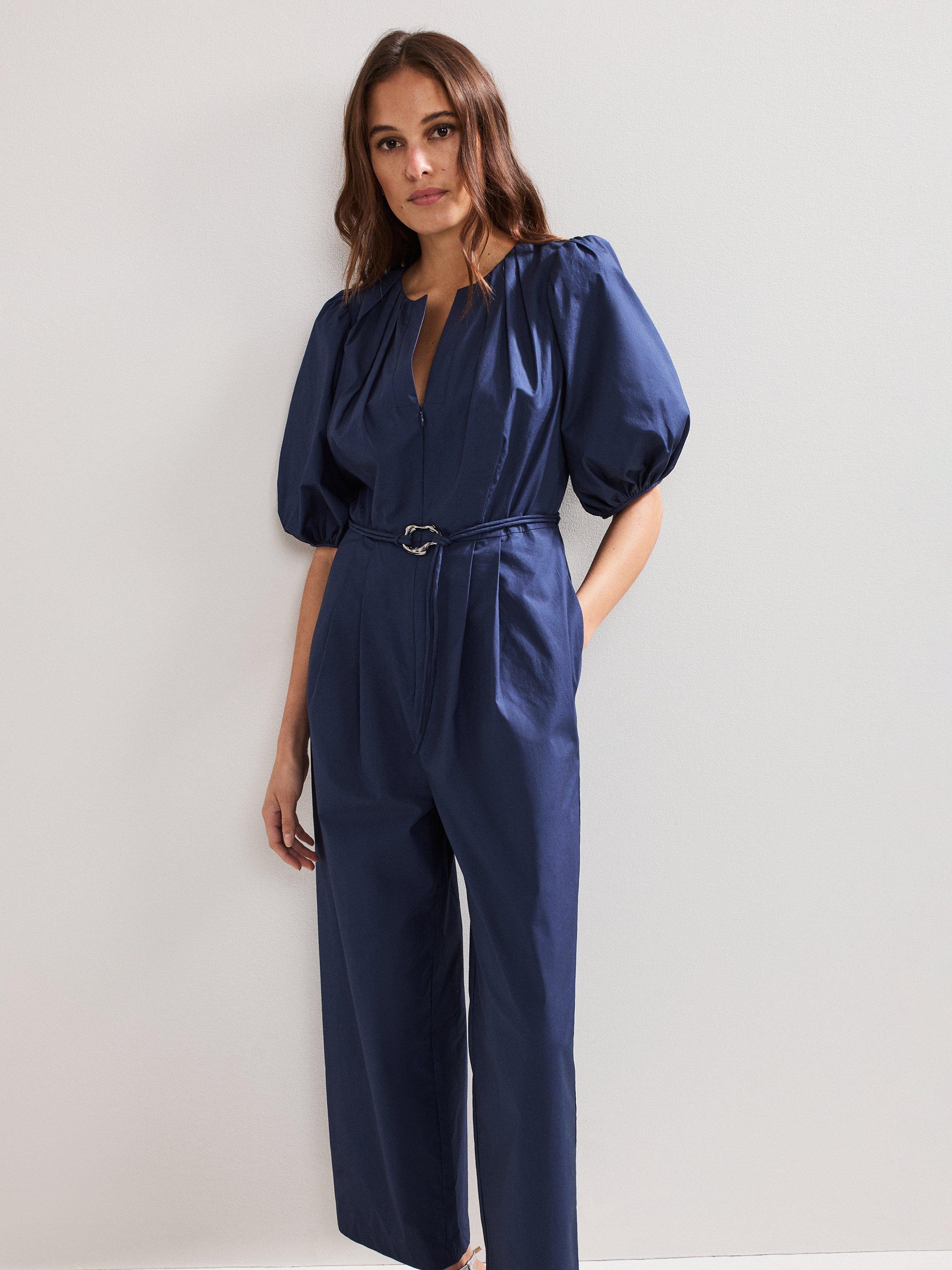 In a shade that will work all year round, this jumpsuit is updated with contemporary design details such as exaggerated puff sleeves for volume and a tie belt finished with a metal accent. Flowing through to an easy-to-wear straight leg, this style will effortlessly take you from day to night.
