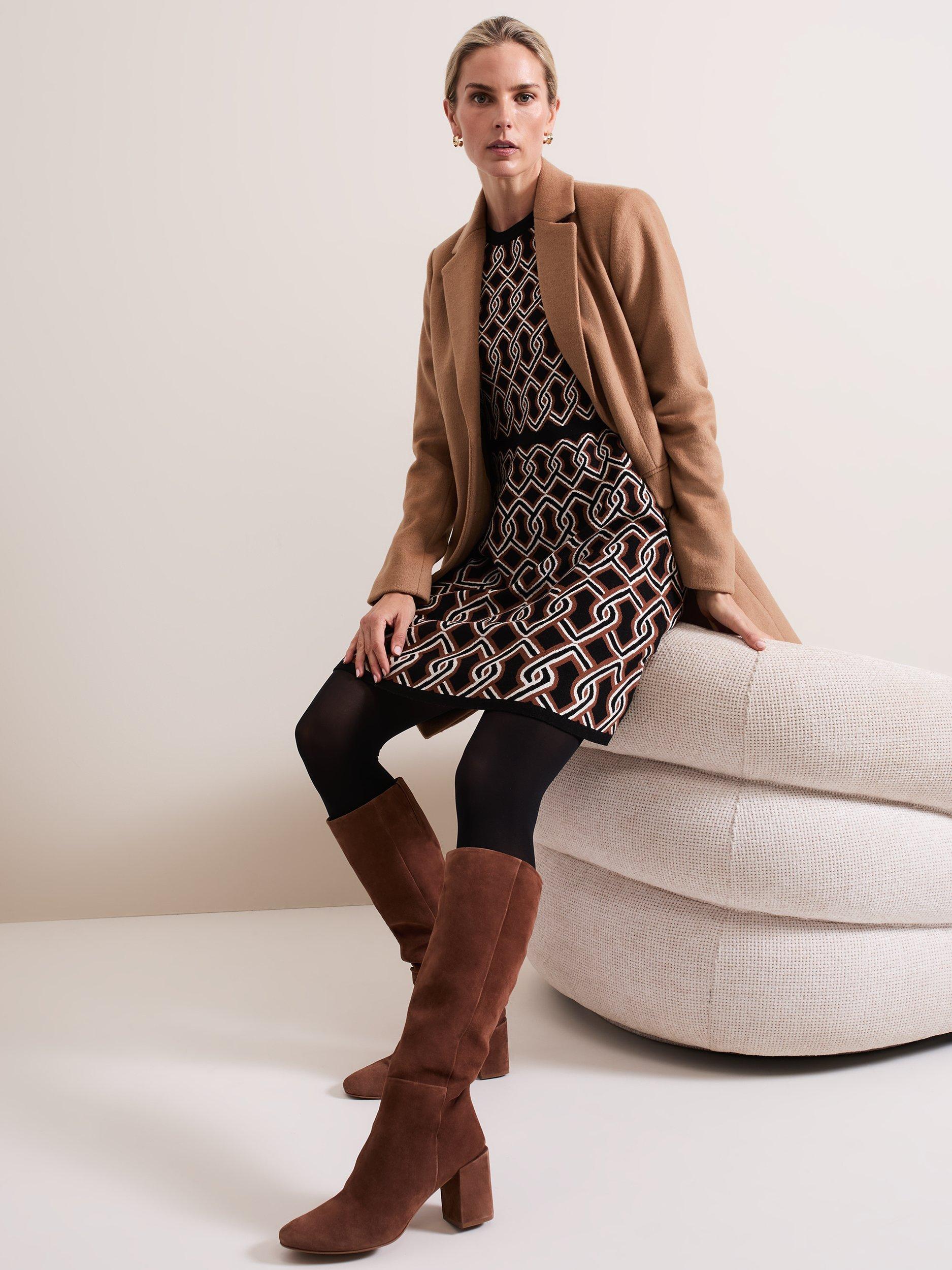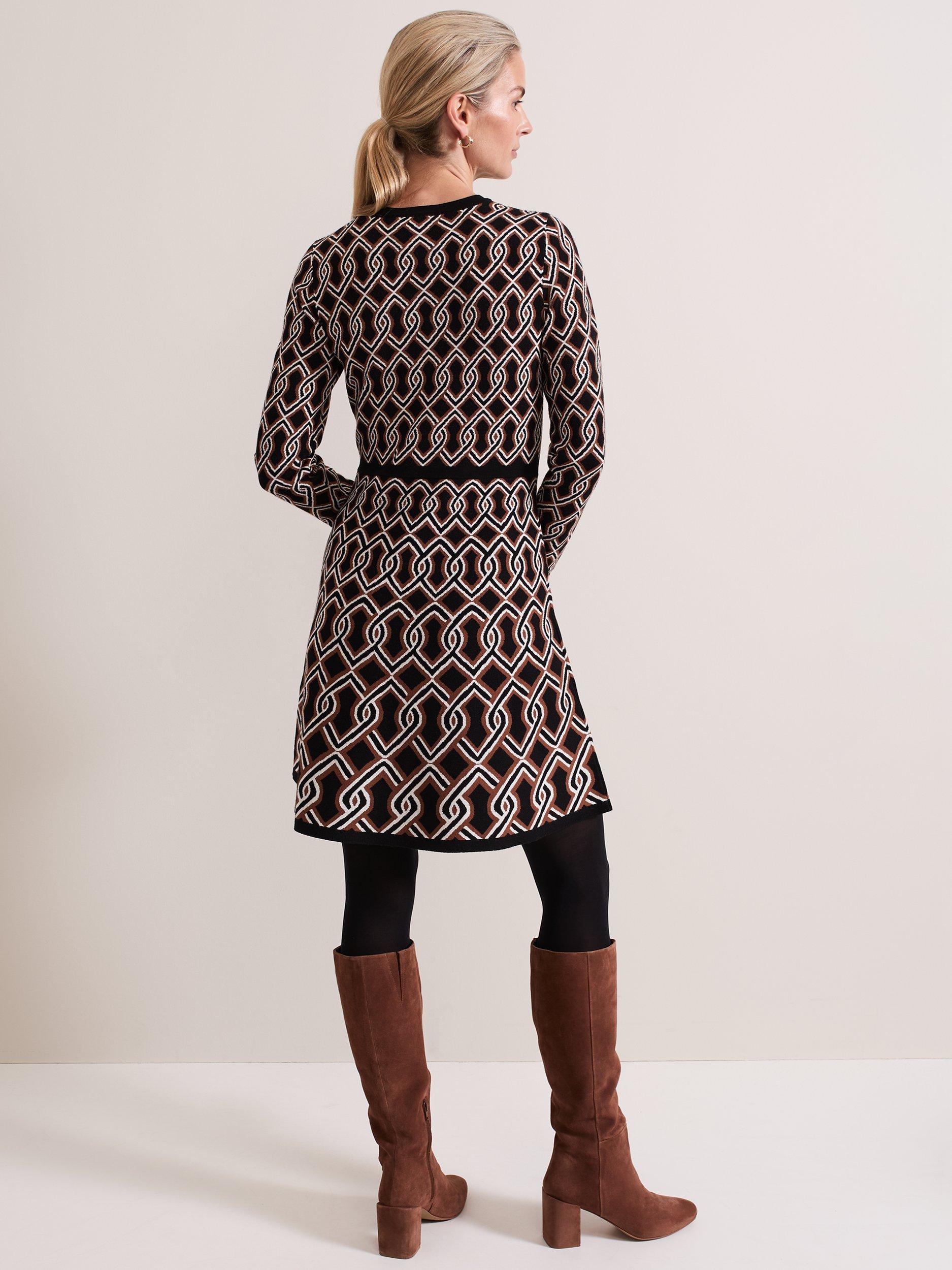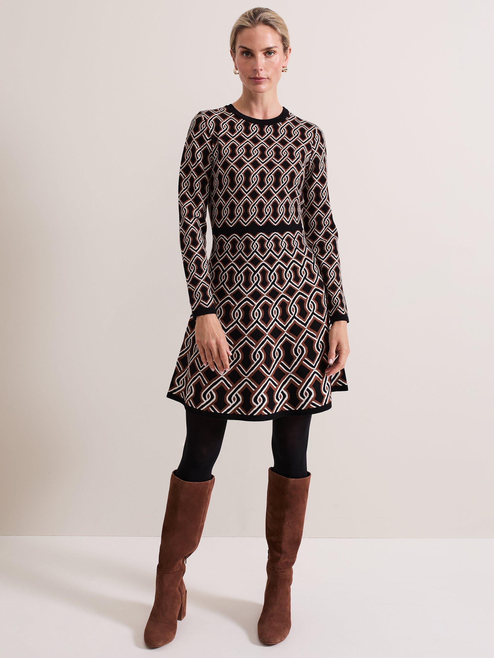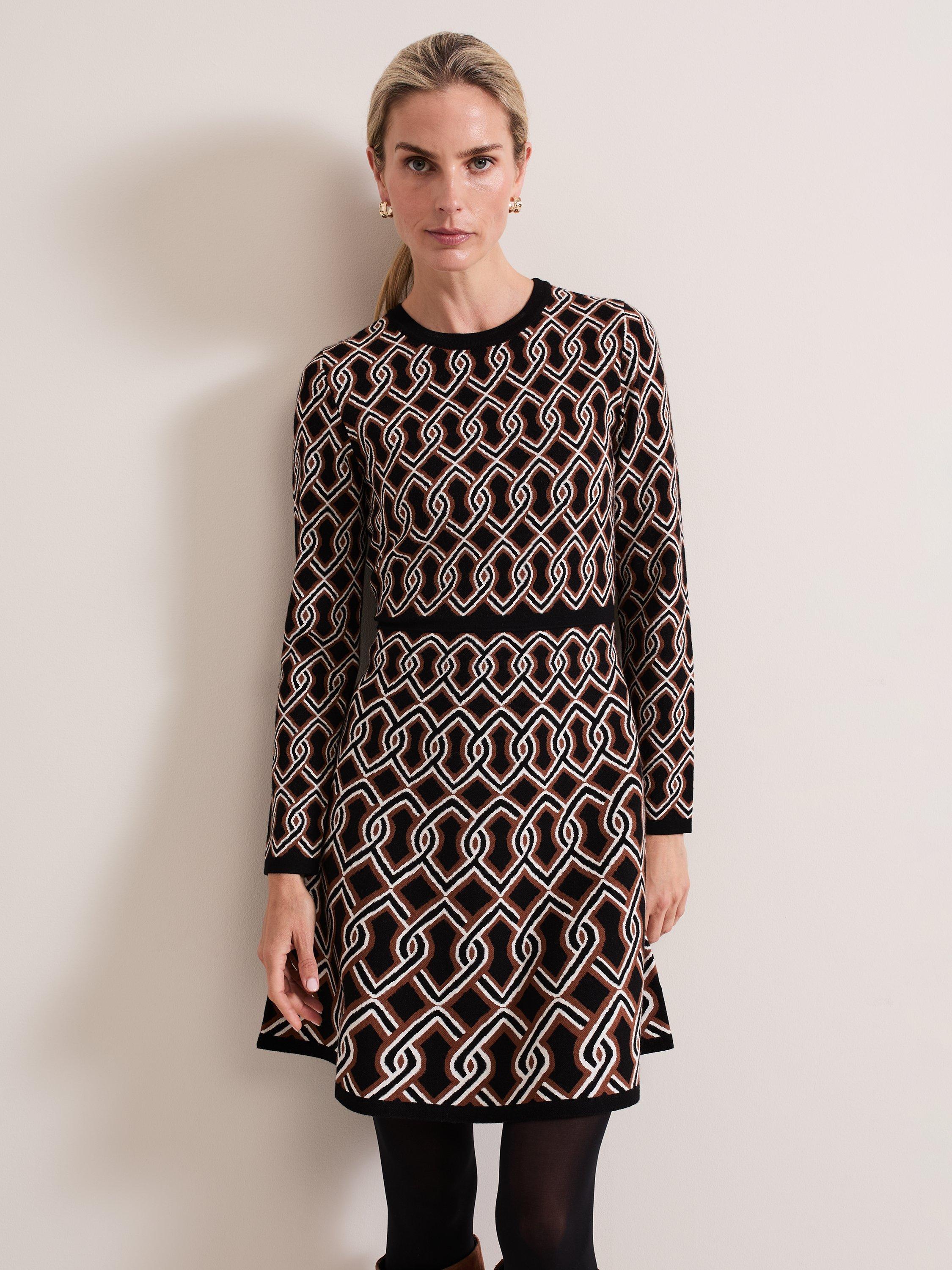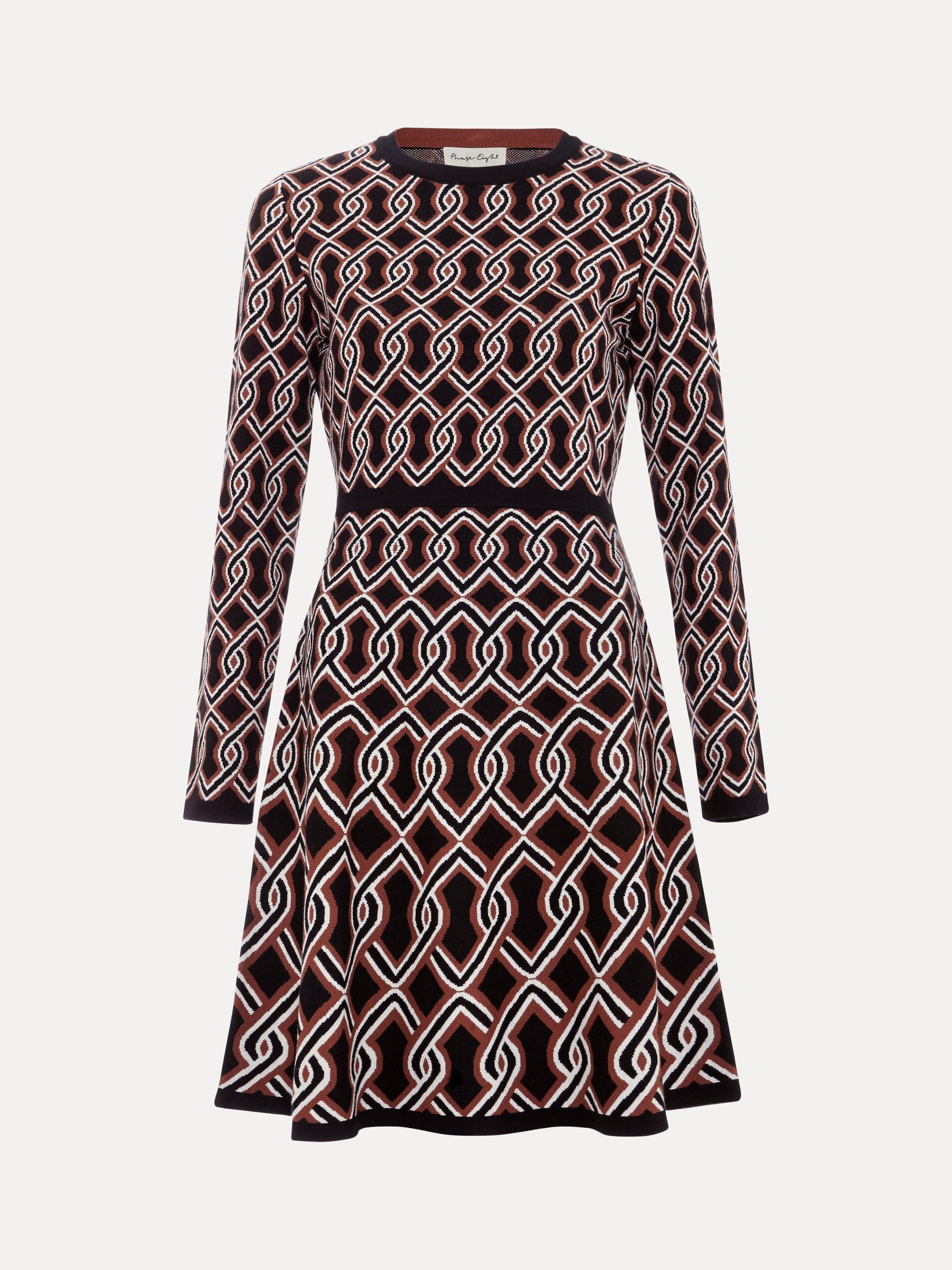 Cut to a fit and flare silhouette the knitted Josie dress features a chain design to create the perfect statement mini for your wardrobe. Block hem detailing highlights the waist to create a contemporary feminine style.