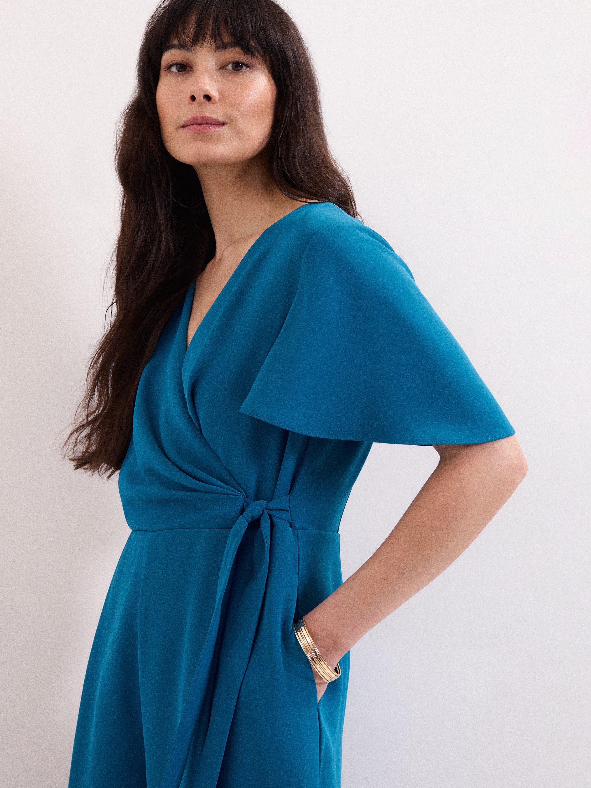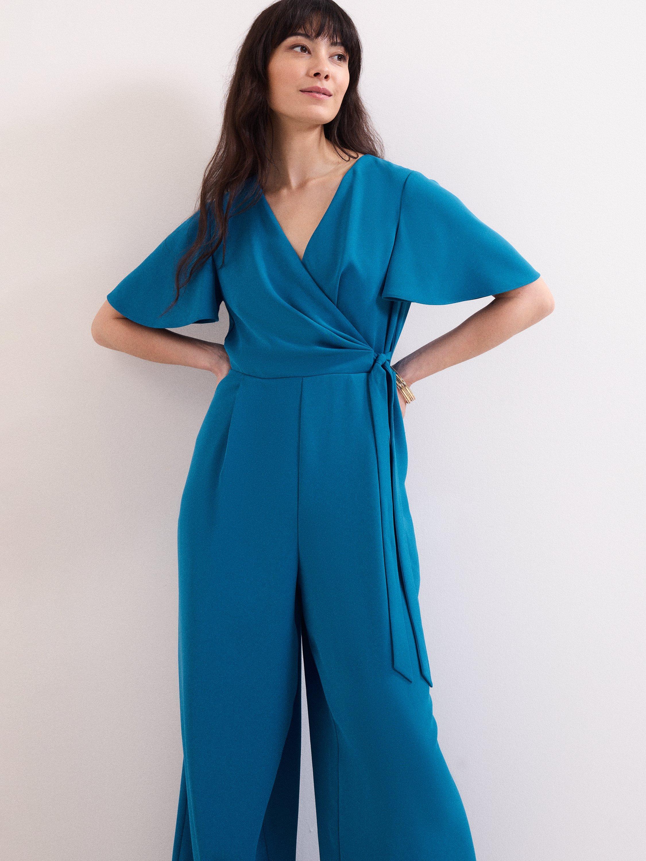 This jumpsuit is designed in a timeless wrap style with a matching tie belt for highlighting your shape. Flowing through to a comfortable but stylish wide leg silhouette, style with your favourite heels and clutch to finish the look.