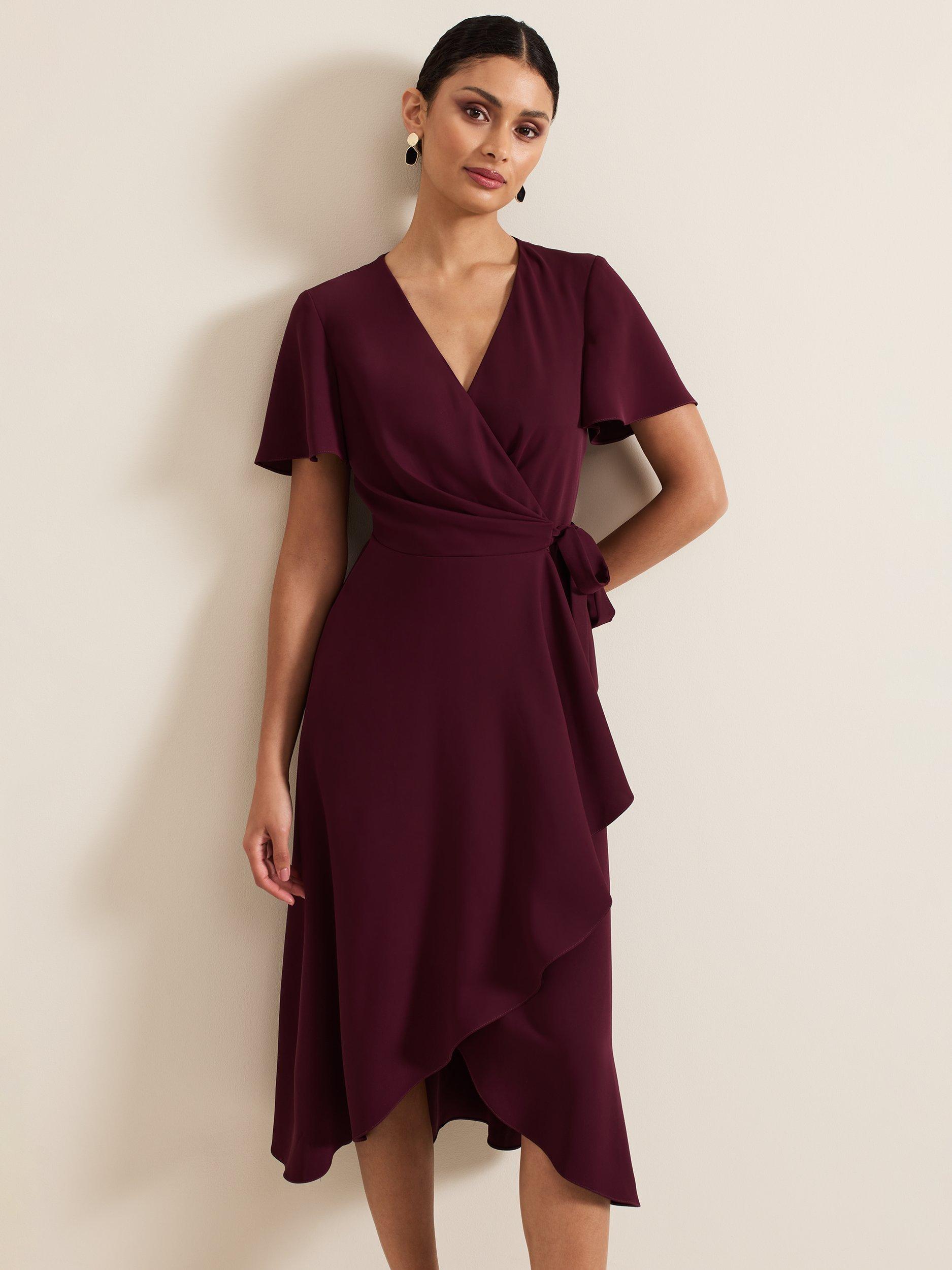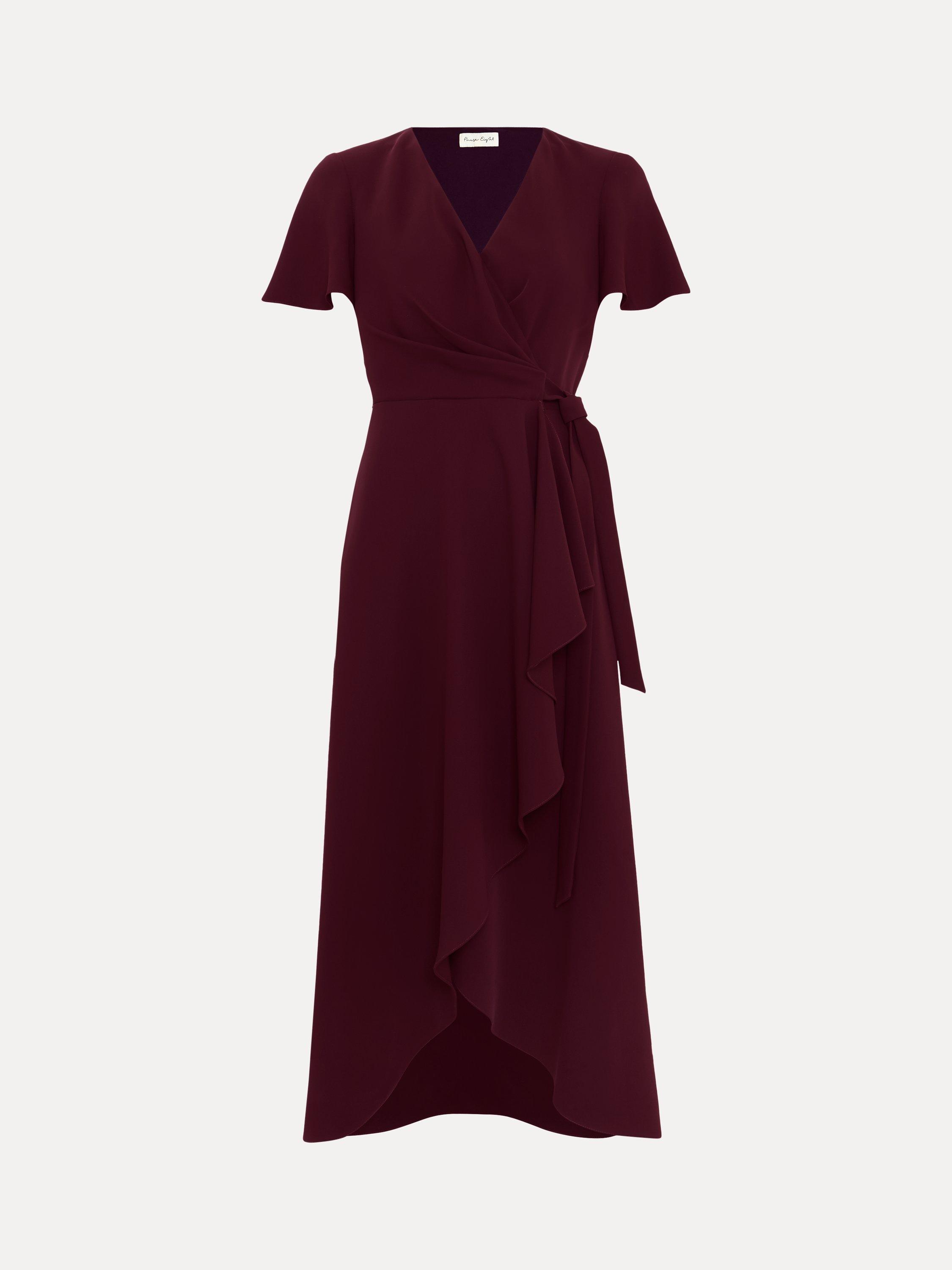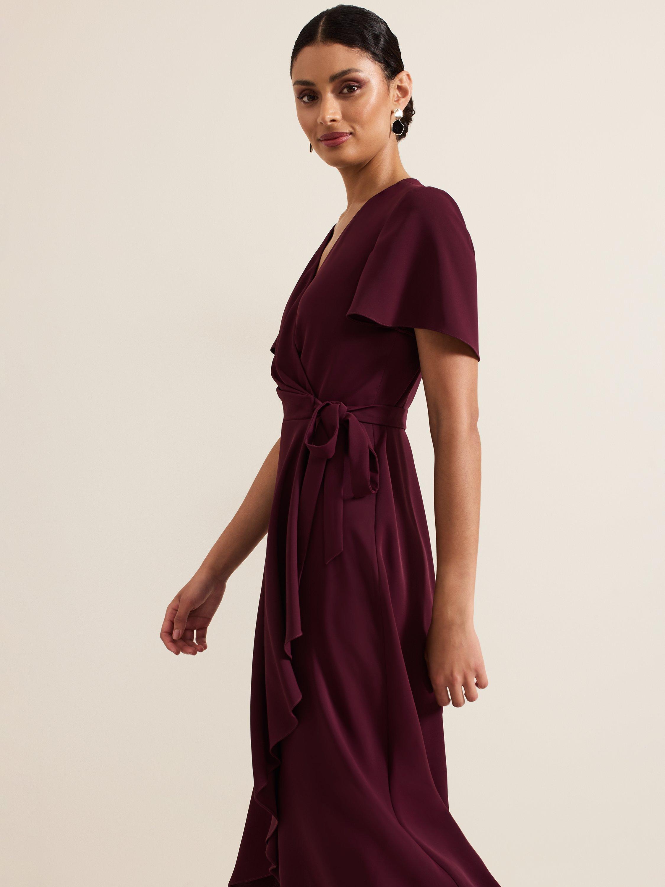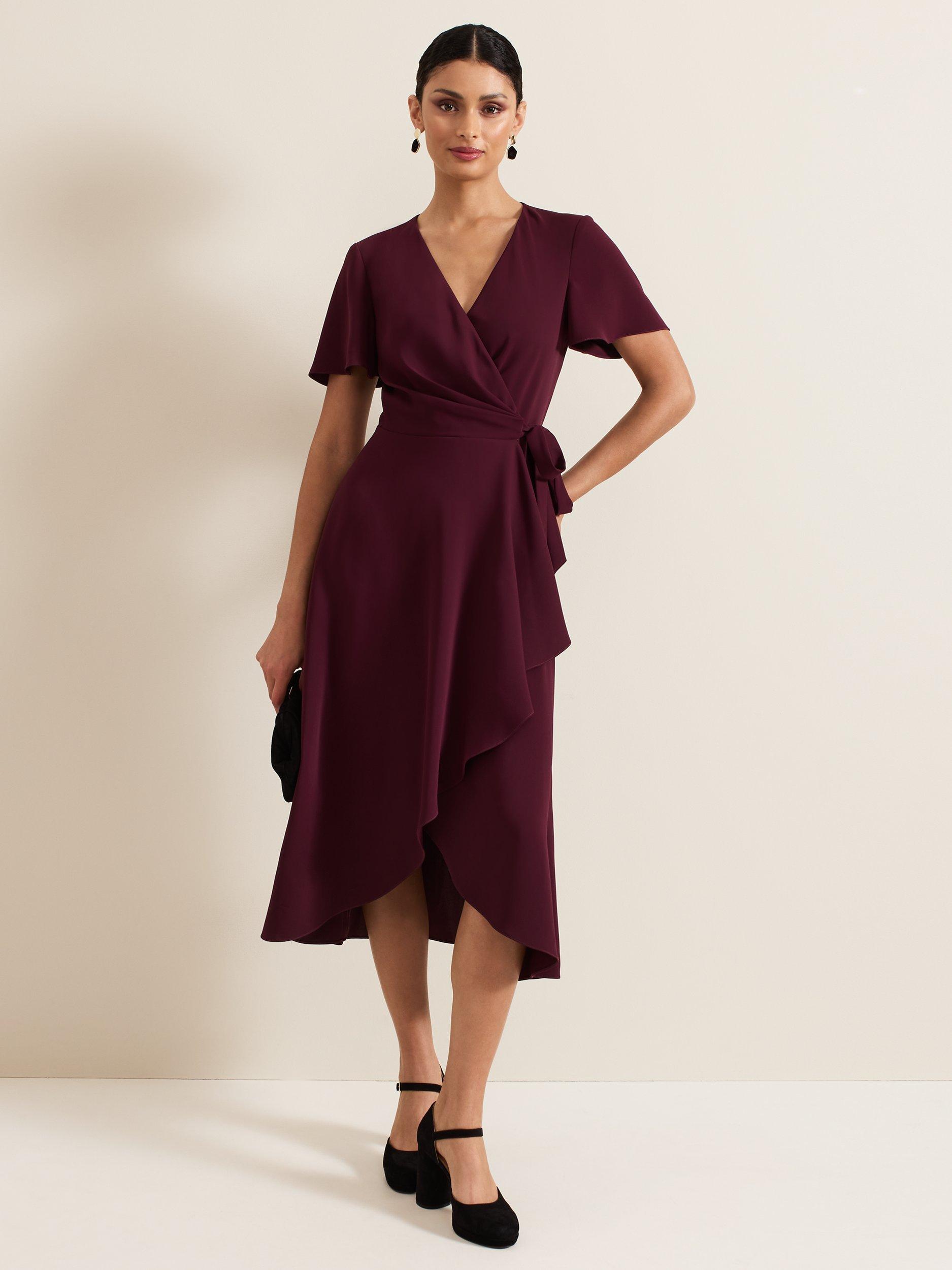 This wrap dress is designed with a layered frill hem, framed by softly fluted sleeves and finished with a matching waist tie to highlight your silhouette. Style with matching accessories for a look that's ready for any event.