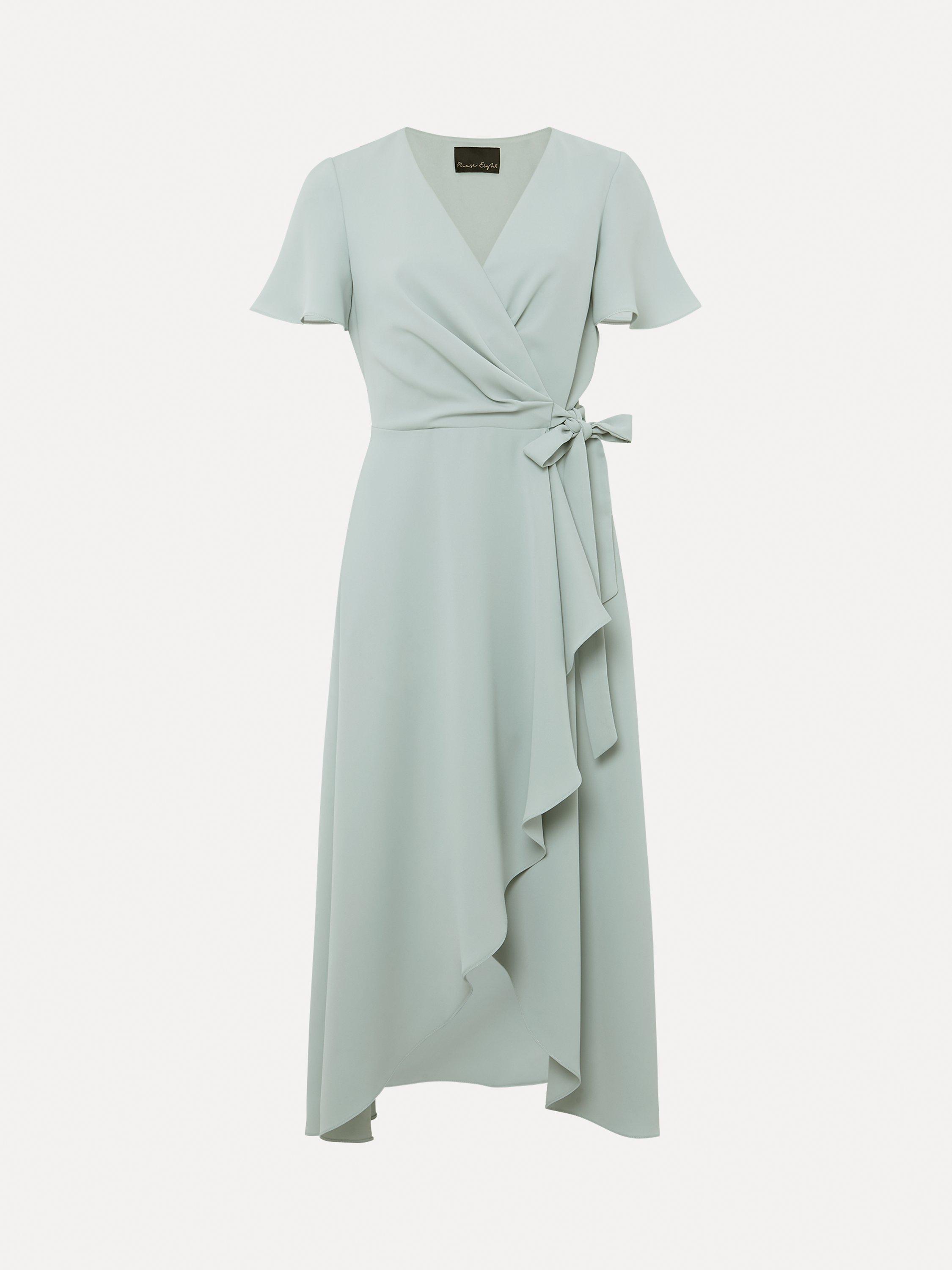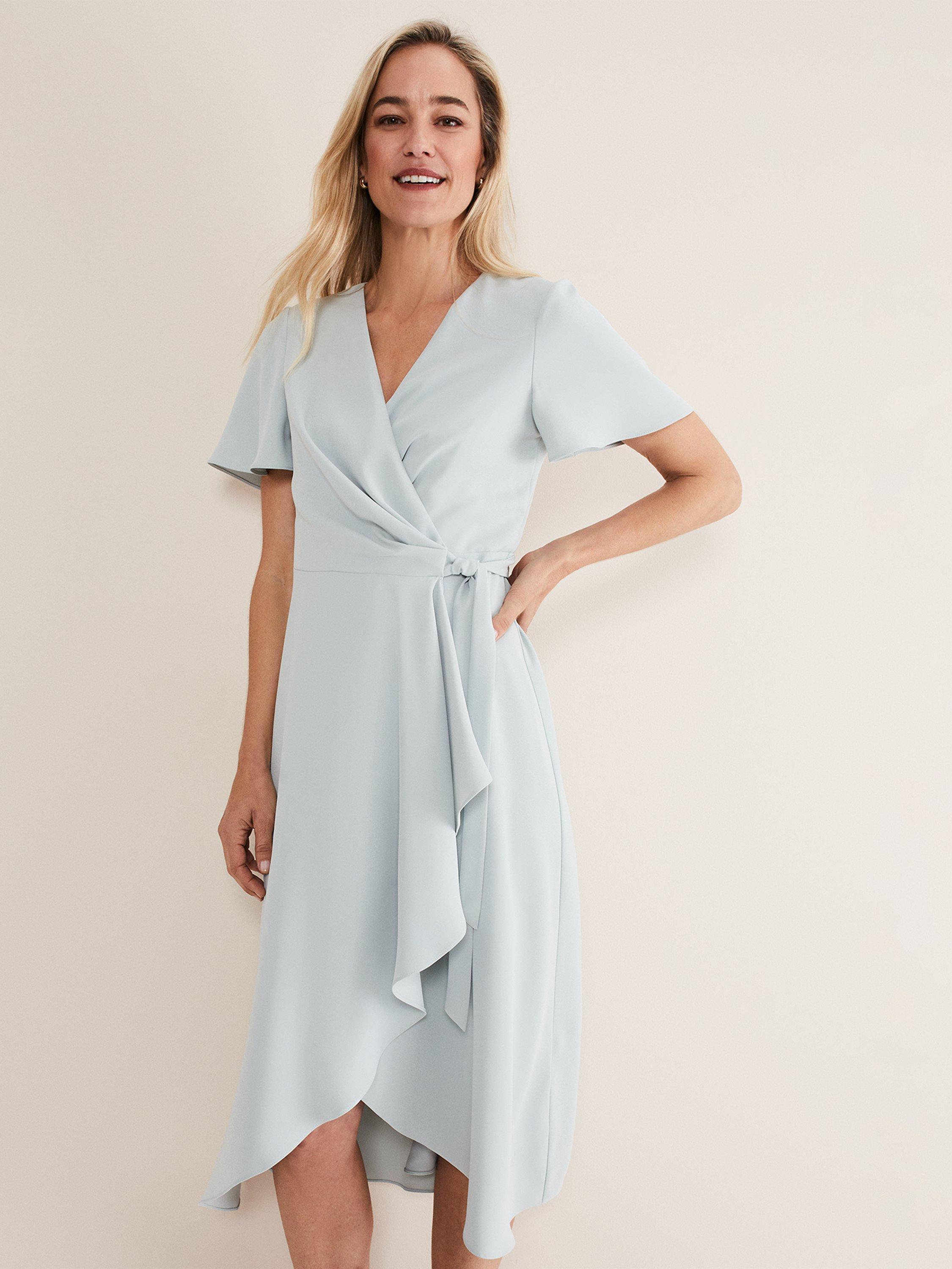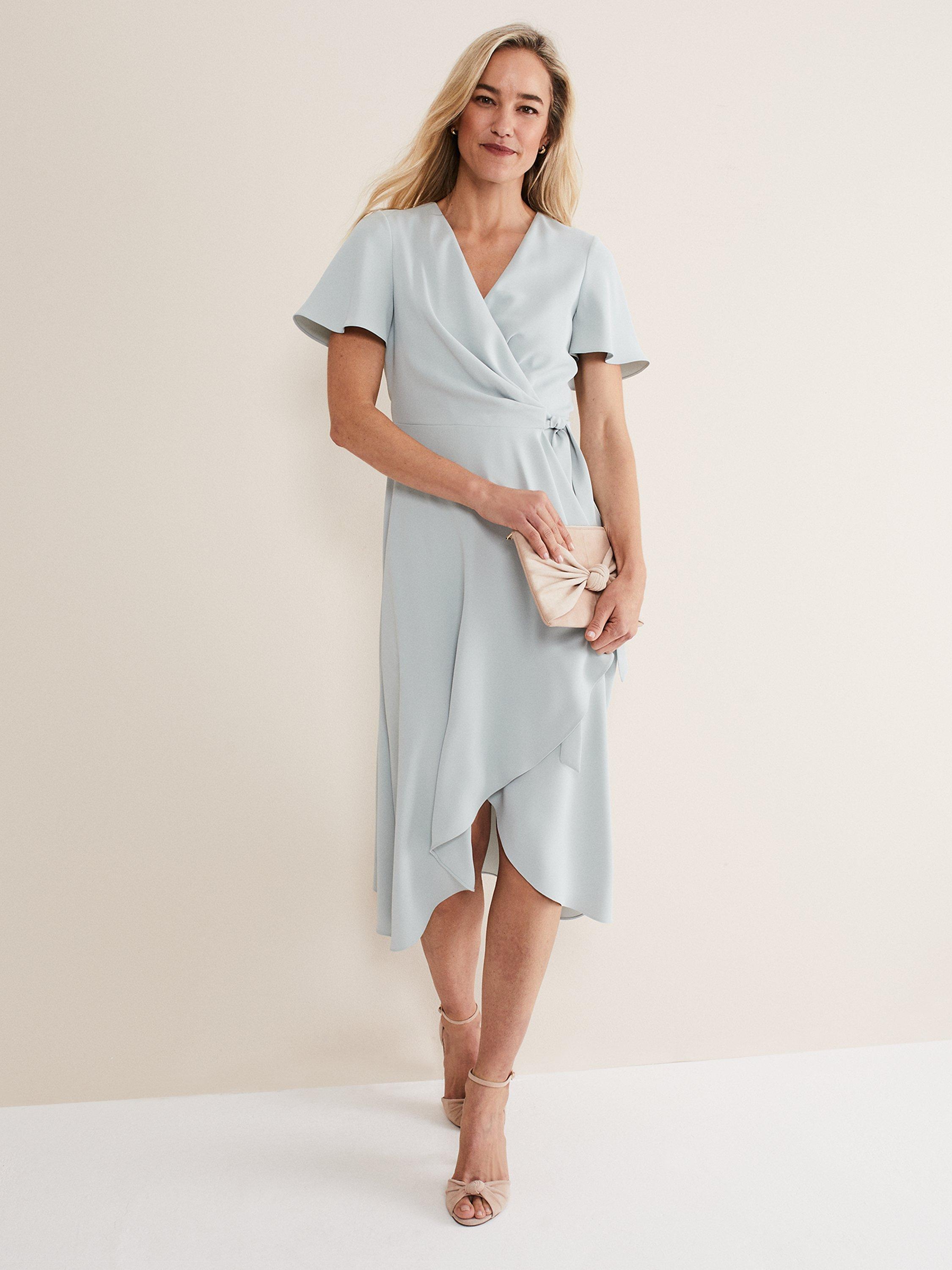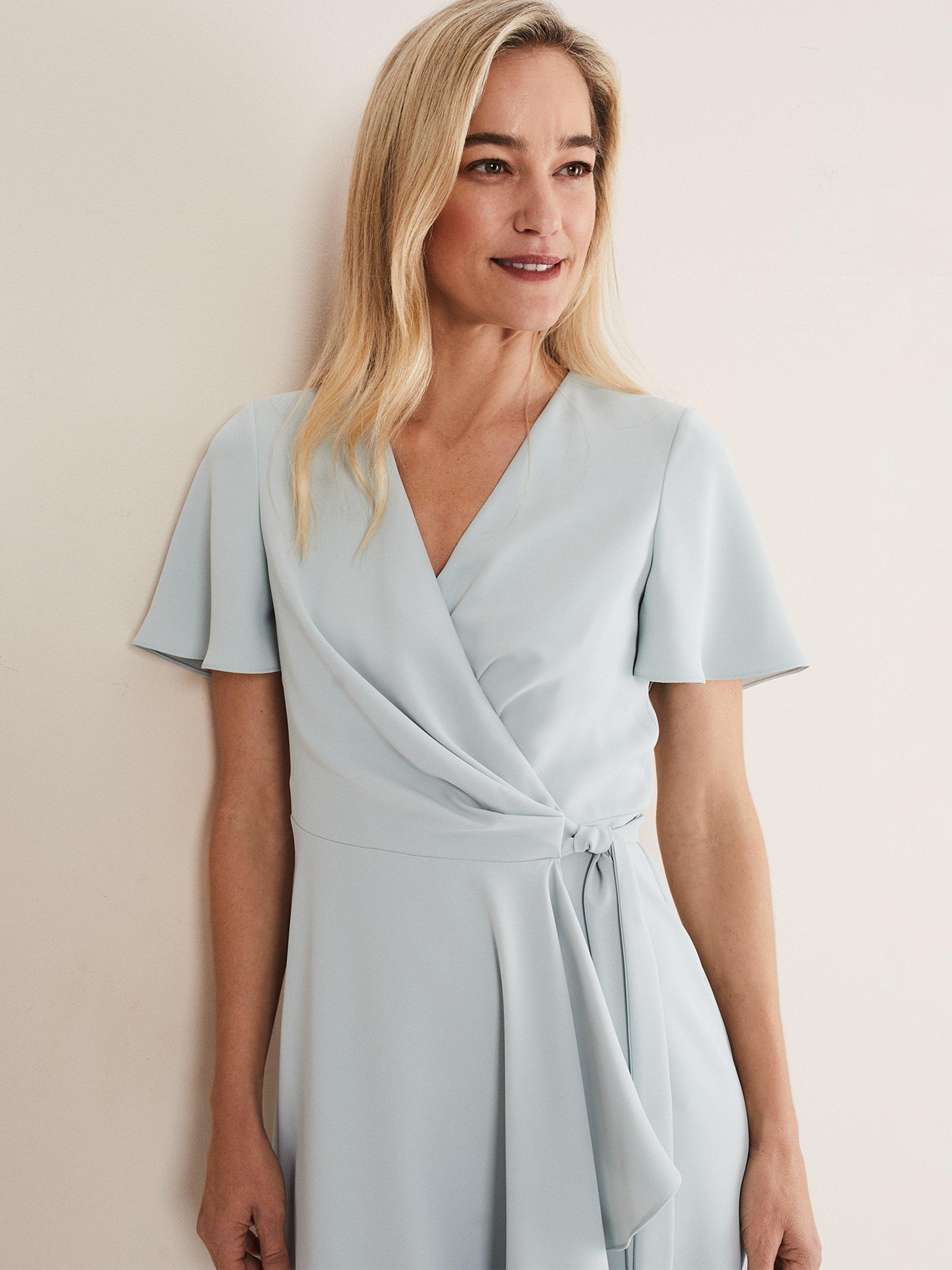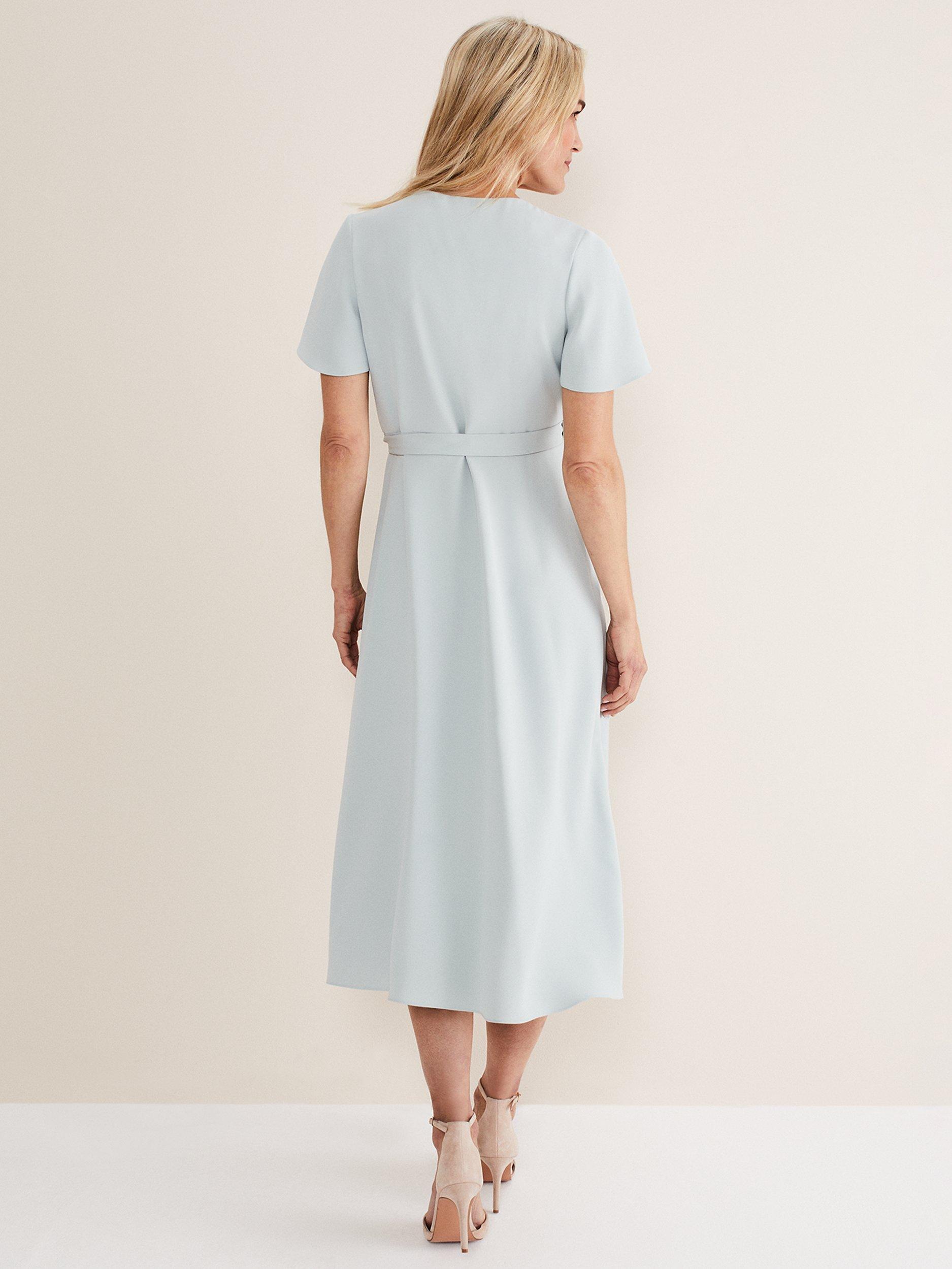 With a refined wrap front, this midi dress by Phase Eight complements patterned accessories with its plain design.