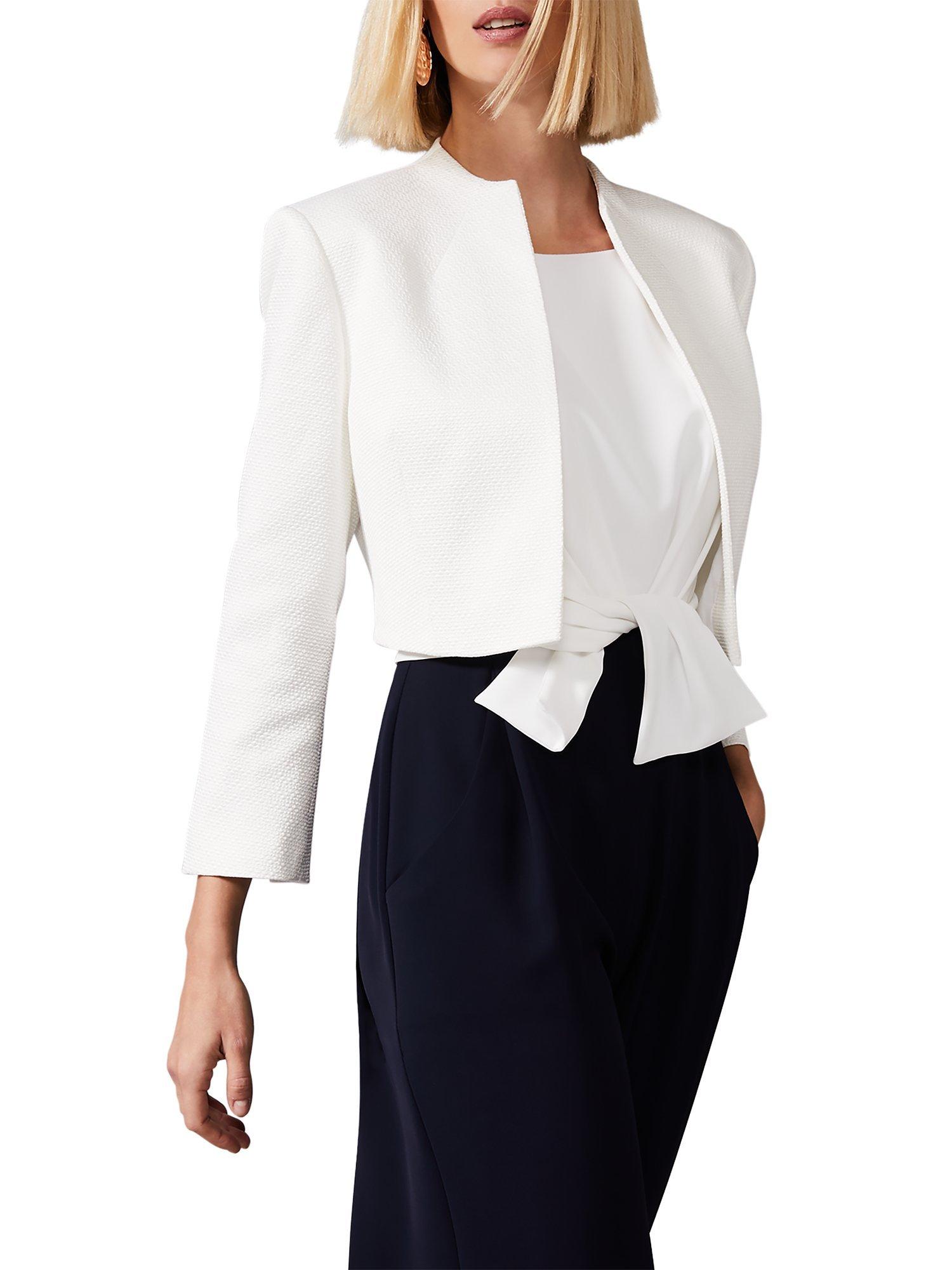 Finish off your occasionwear looks with the Karlee jacket from Phase Eight. Expertly tailored from lightweight fabrication, this jacket features an open front allowing you to show off the rest of your outfit. With flattering seam detailing and a curved open front for an elegant silhouette, pair with printed dressed and formal separates.