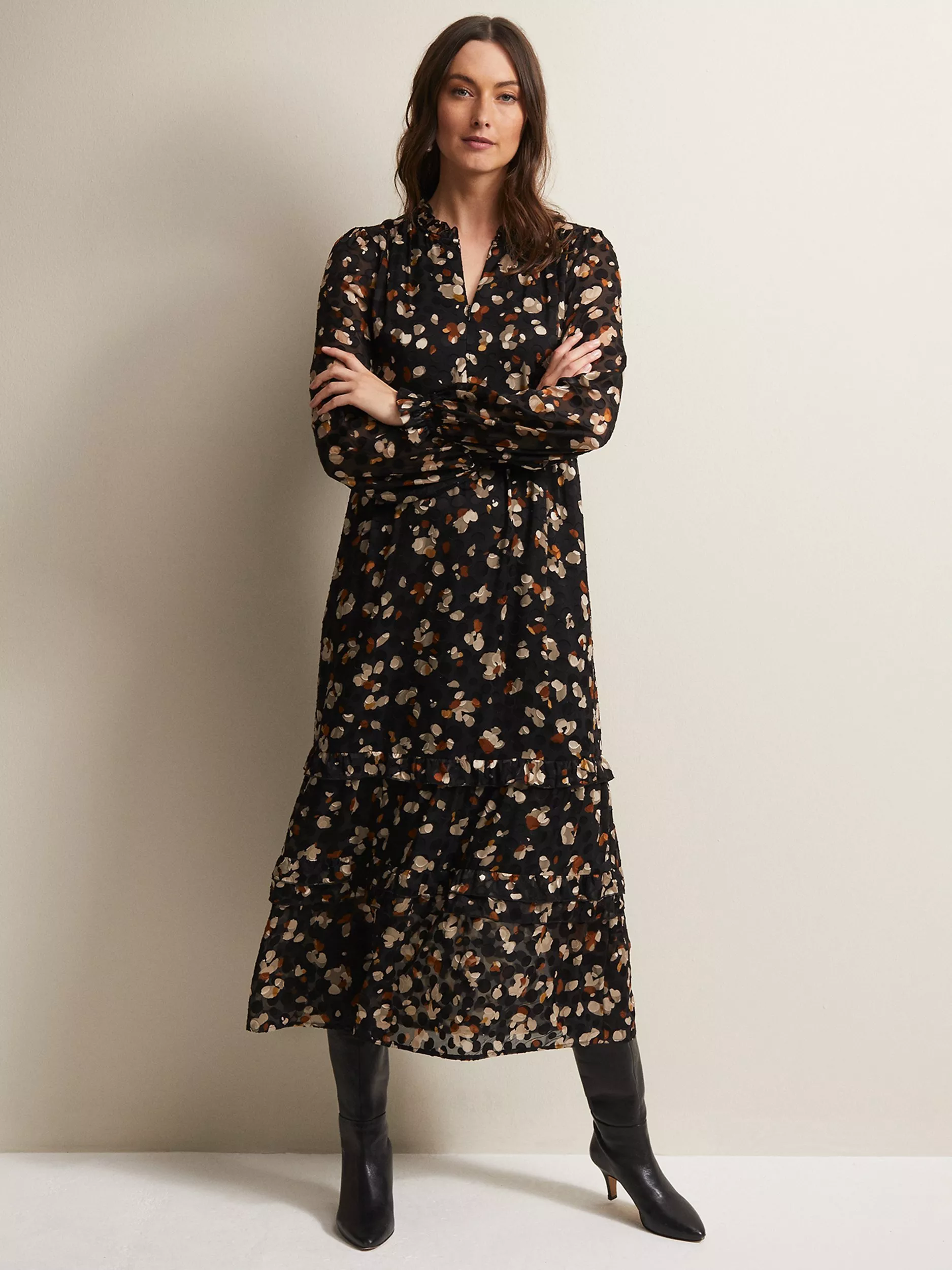 Creating a fluid feel in a tiered silhouette, this mid-length dress from Phase Eight is made from a whisper-weight viscose blend. With a universally flattering v-neckline and long sleeves, it makes a loud statement with its animal motif.