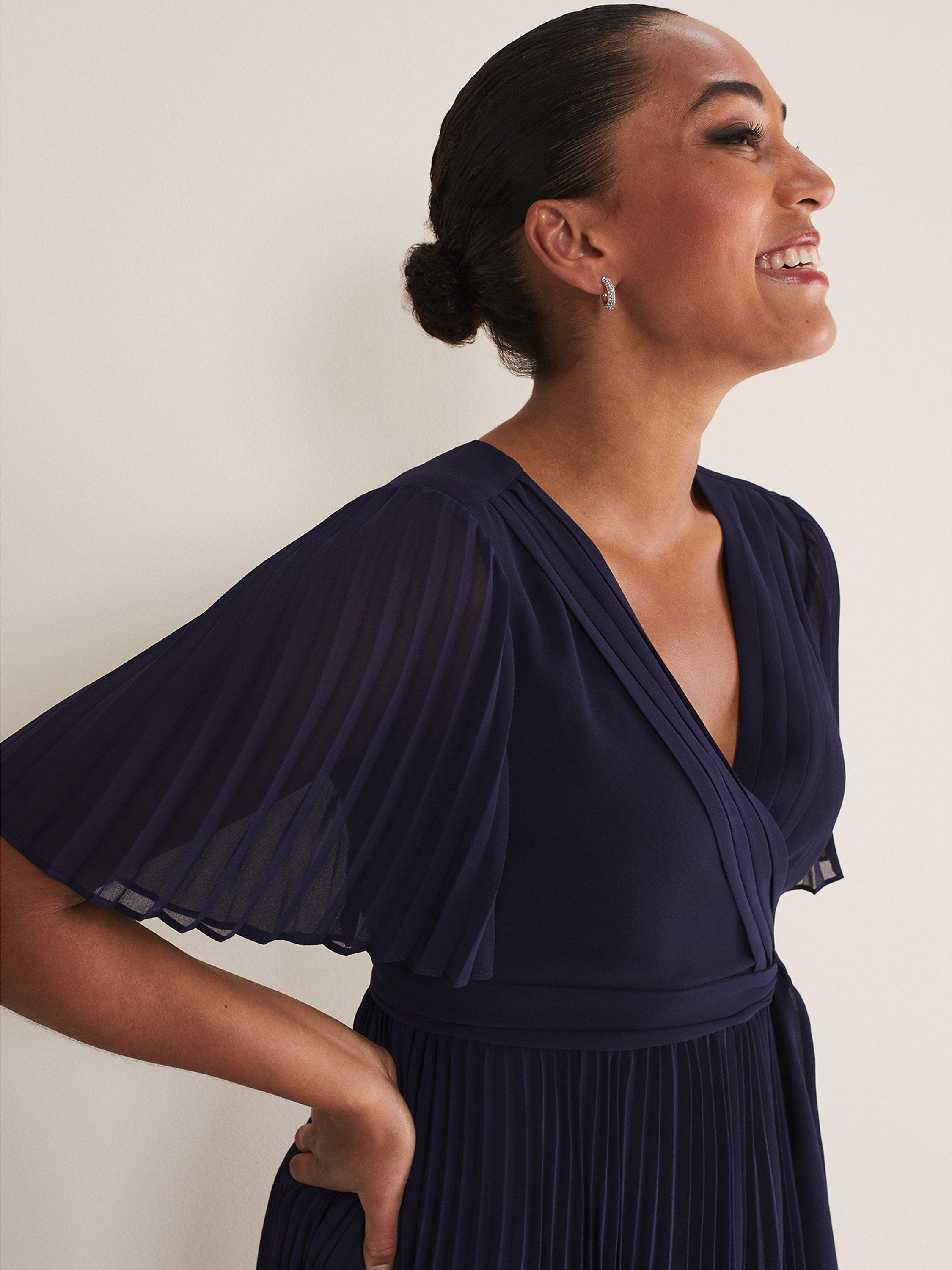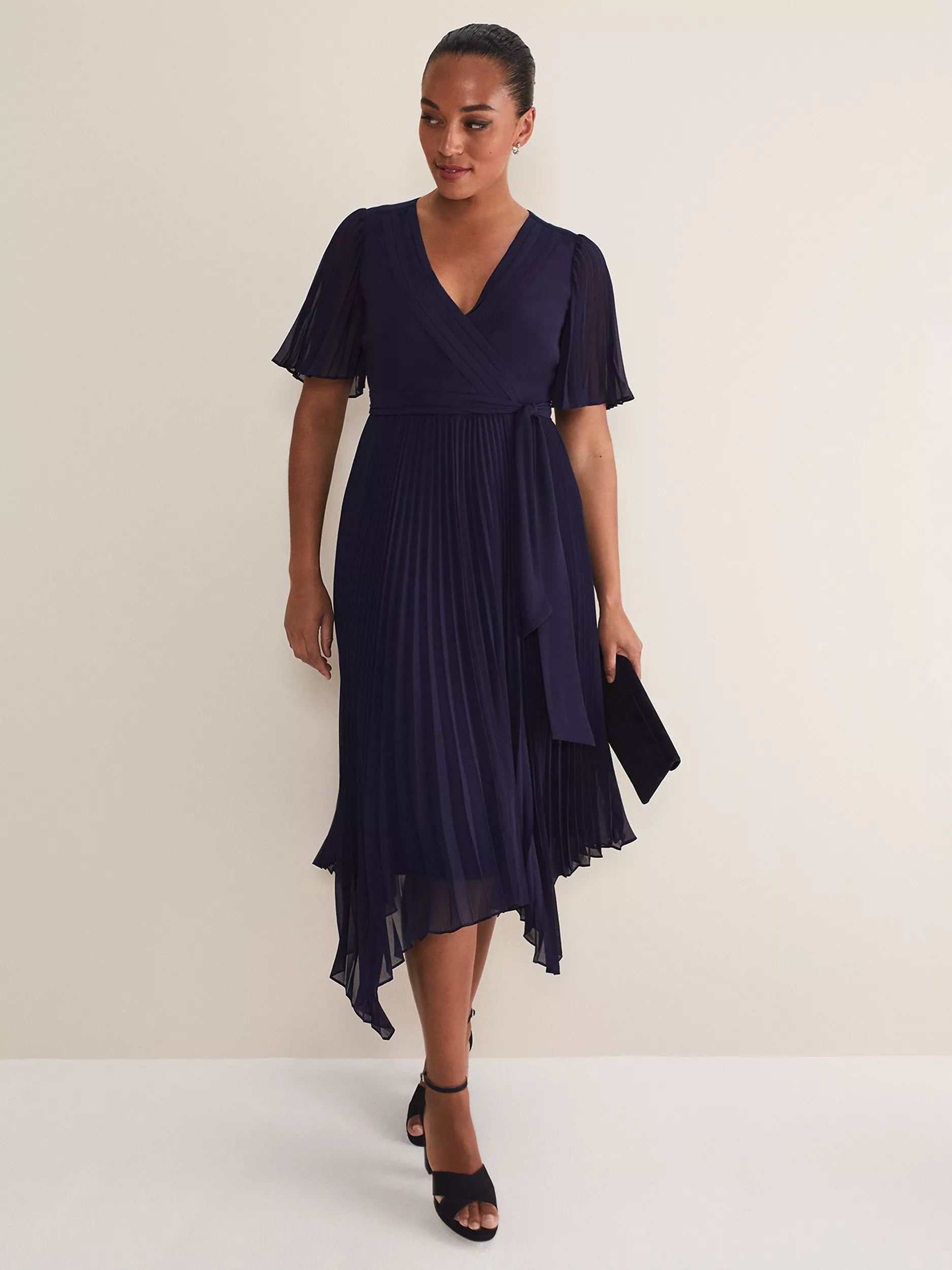 Featuring a fitted bodice and a full skirt, this midi dress from Phase Eight is made using a blend of fabrics. A feminine choice thanks to the wrap over neckline and short sleeves, it is free of unnecessary embellishments.