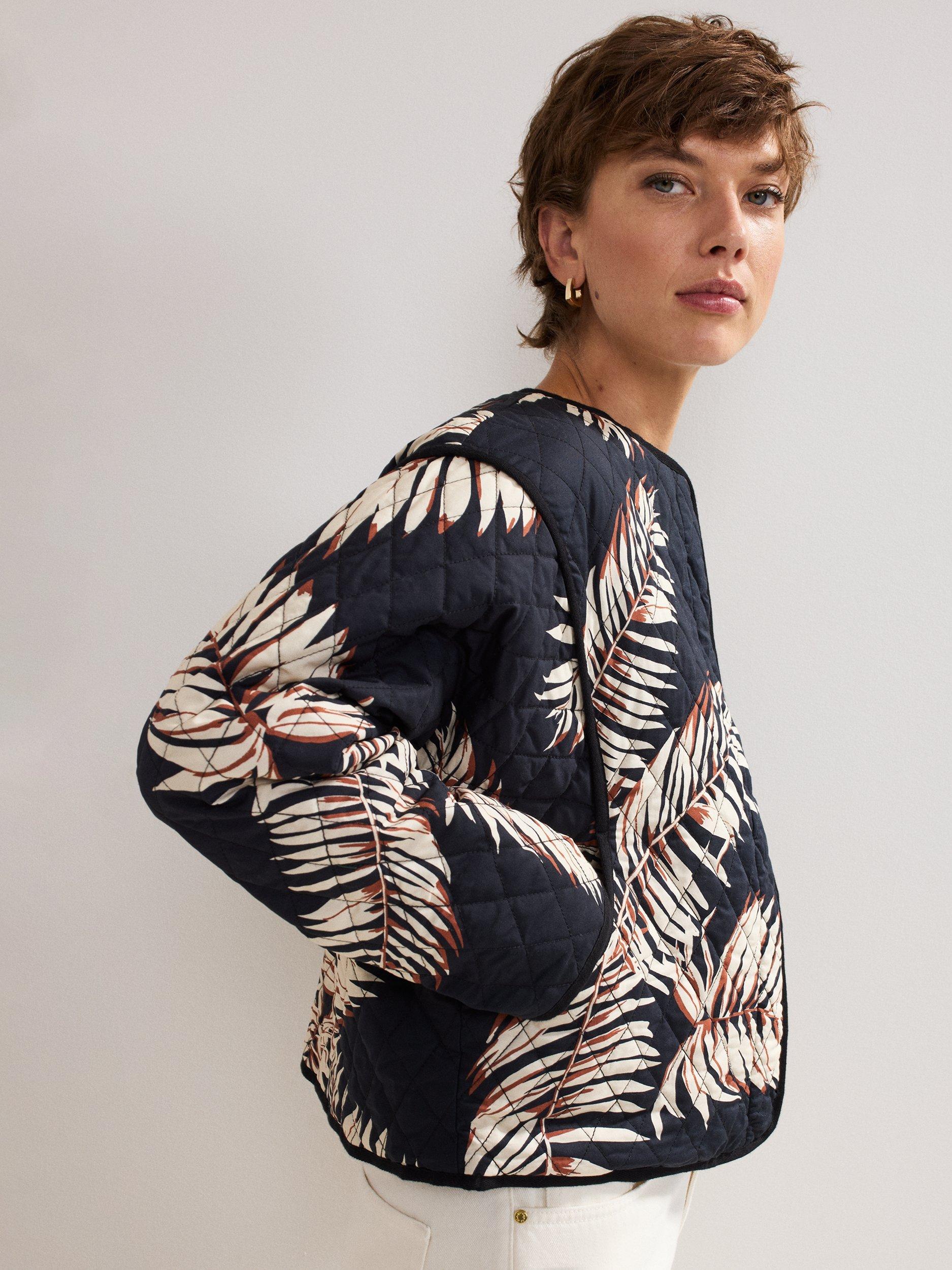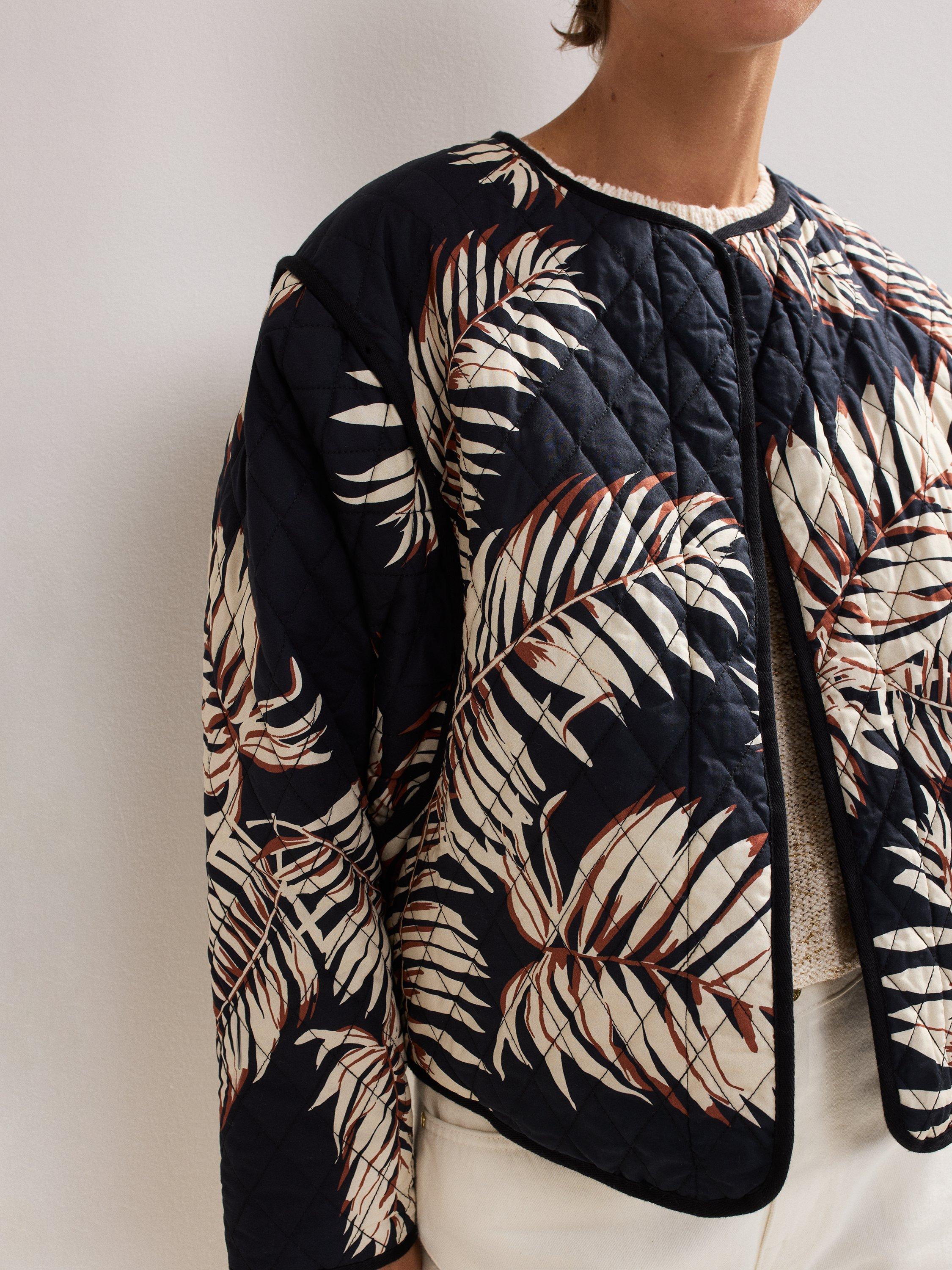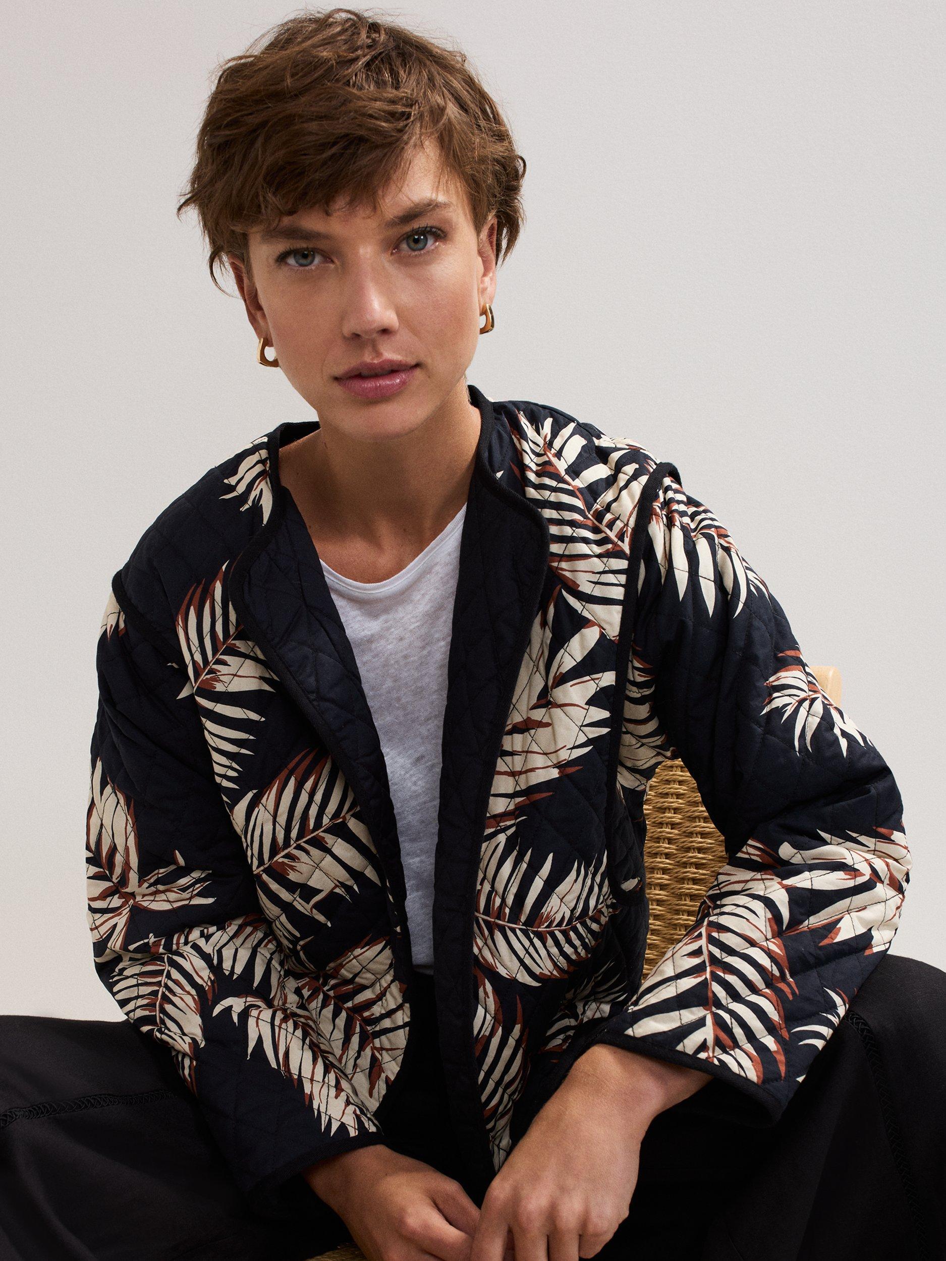 Ideal for transitional seasons, the Kharis jacket from phase Eight features an eye-catching palm print that adds a contemporary look and feel to a piece of clothing typically renowned for its practical qualities.