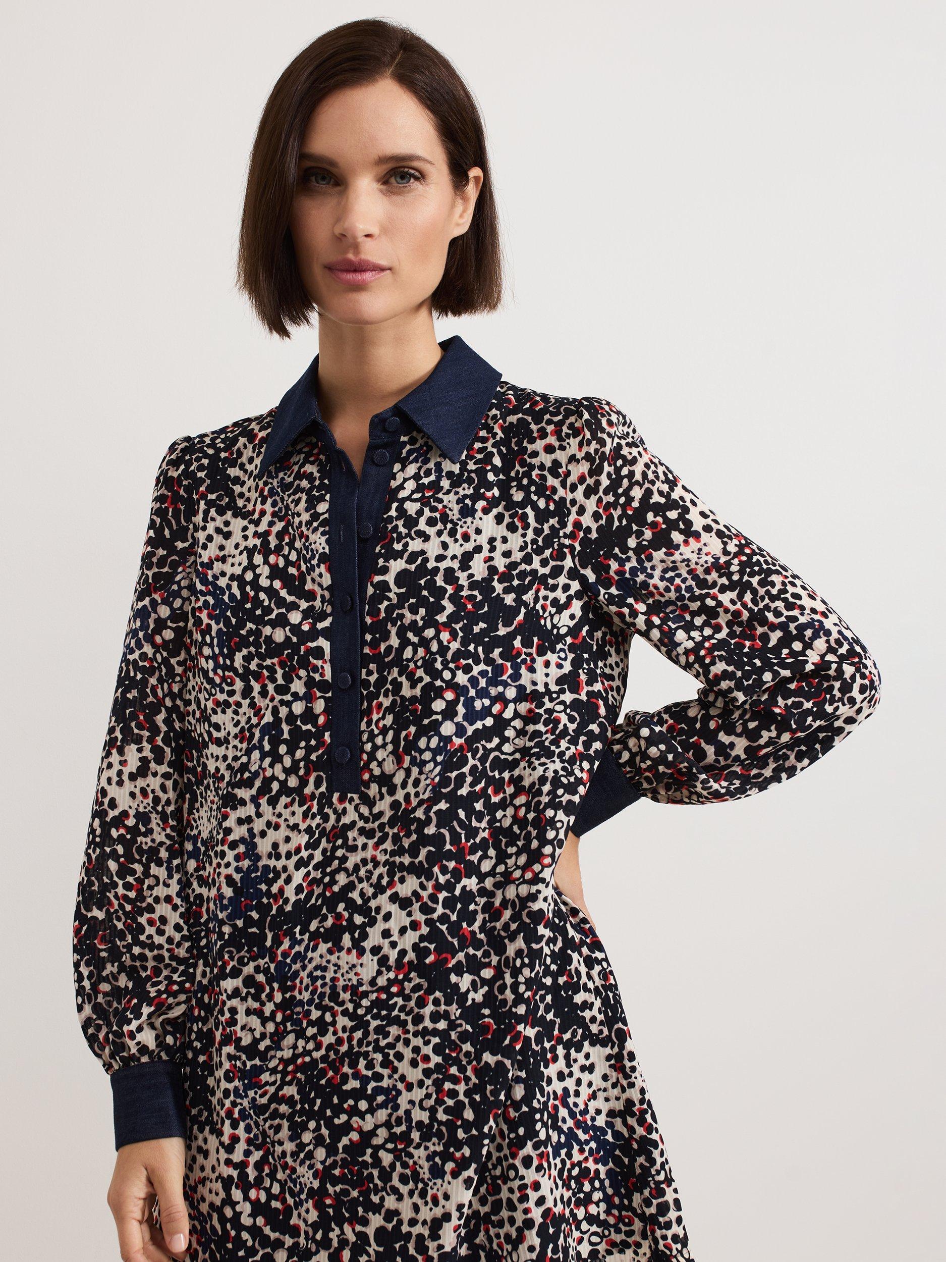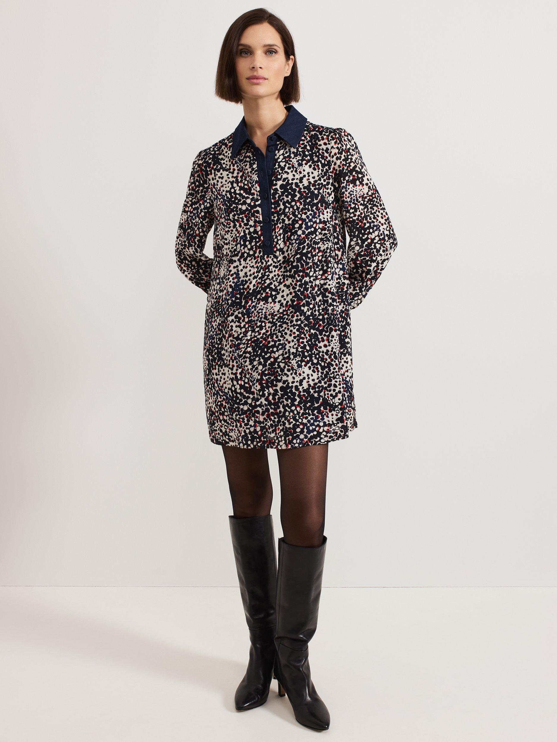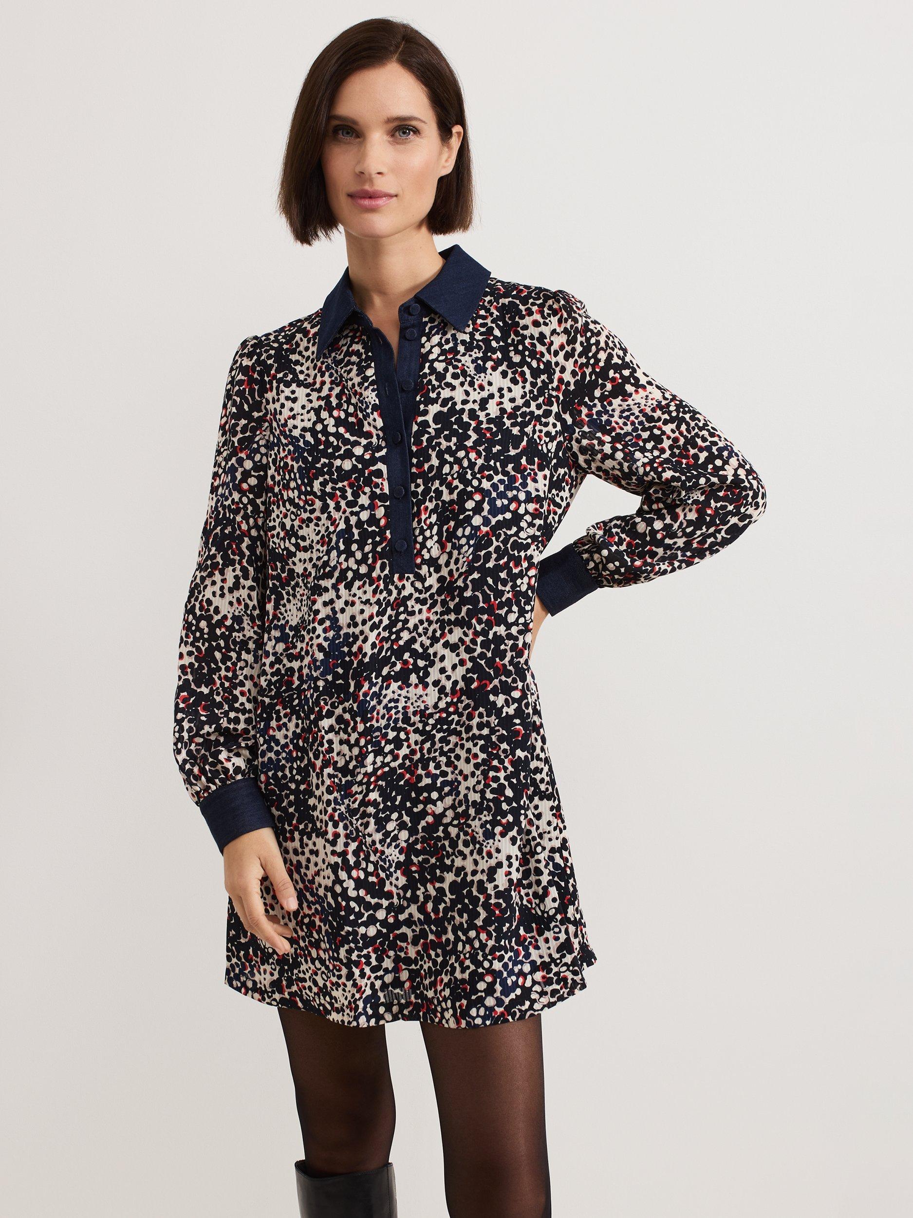 In a tunic shirt style, this mini dress from Phase Eight features a contrast collar neckline, long sleeves and is printed in swoon-worthy spots.