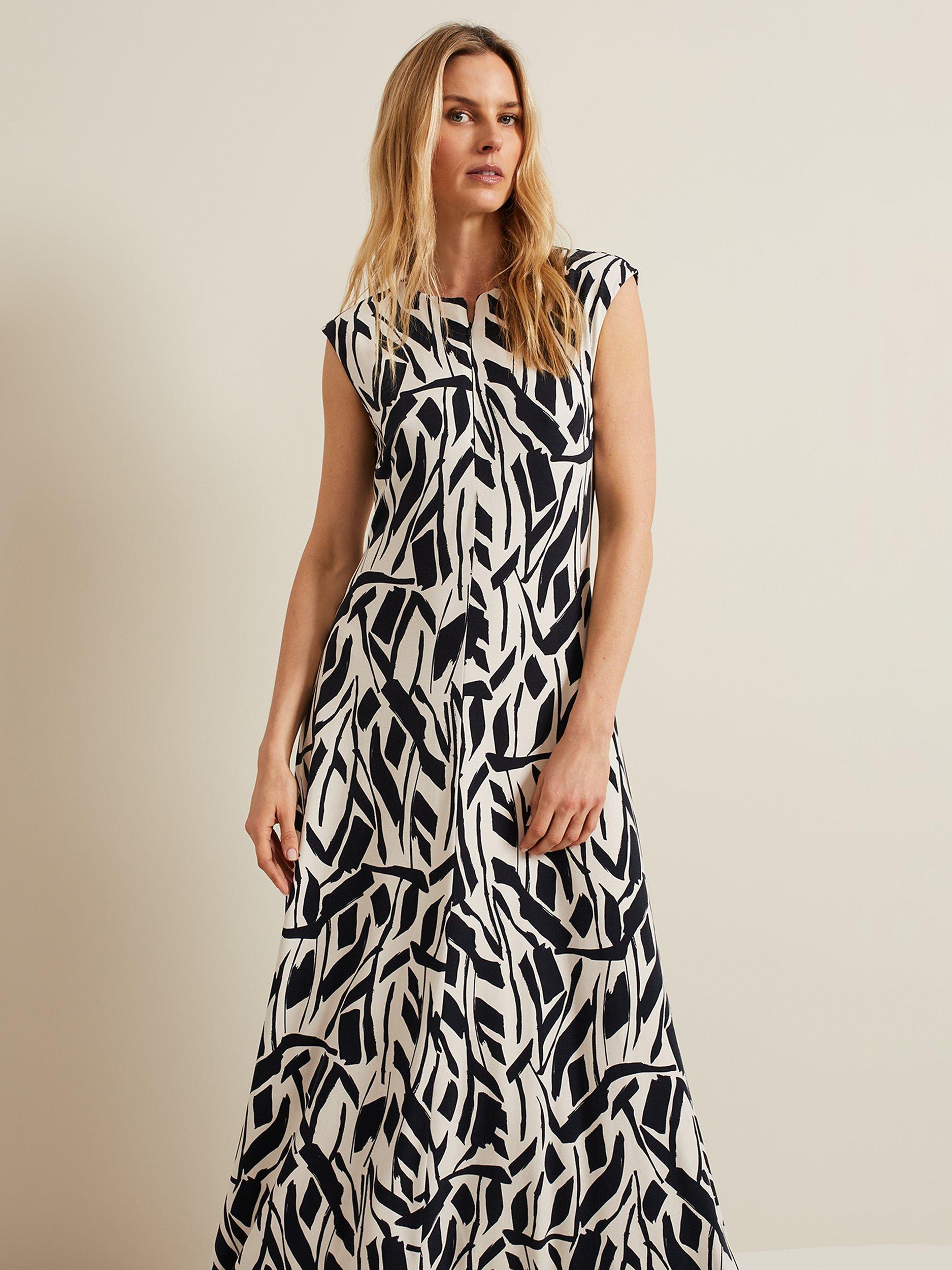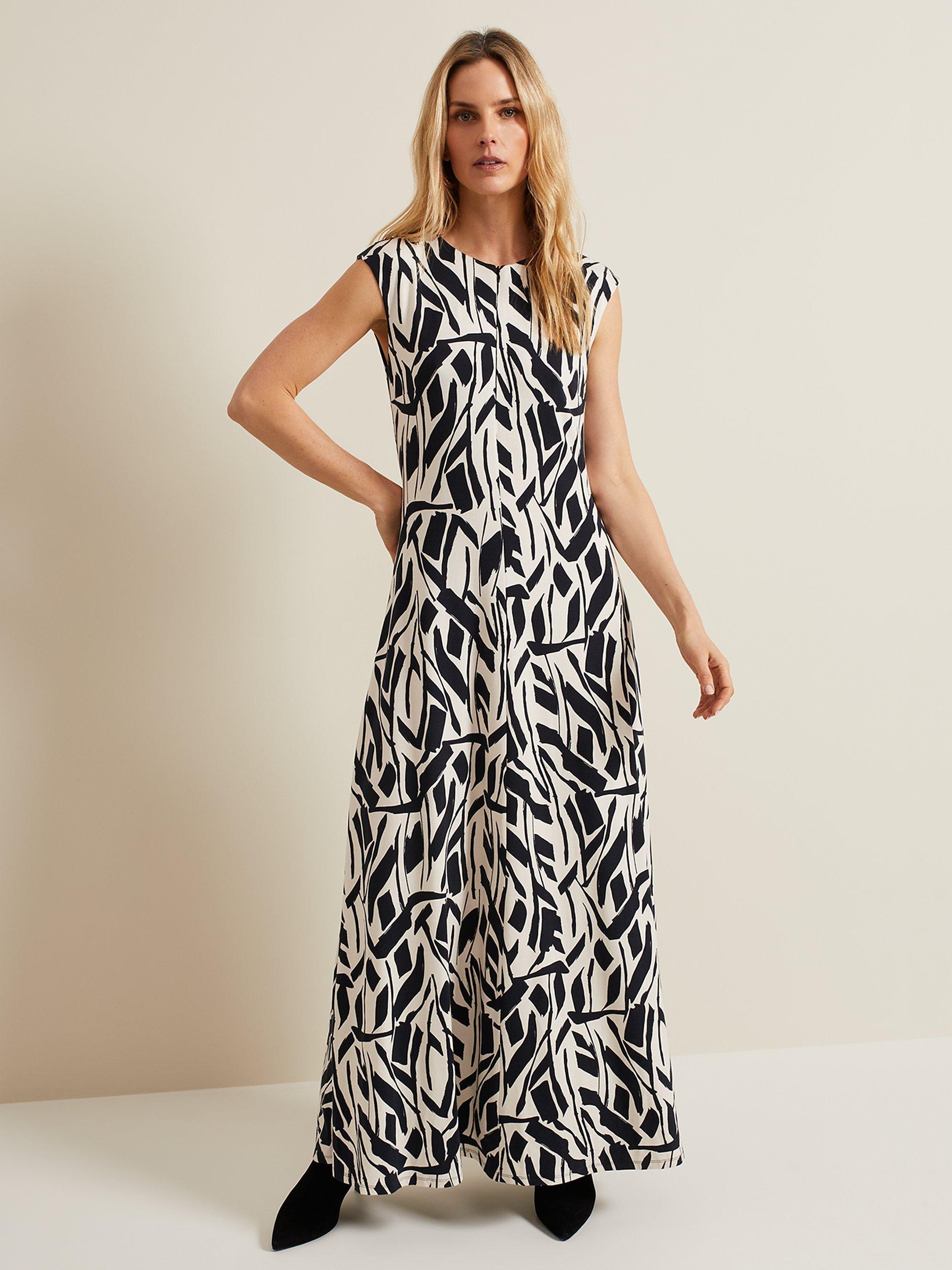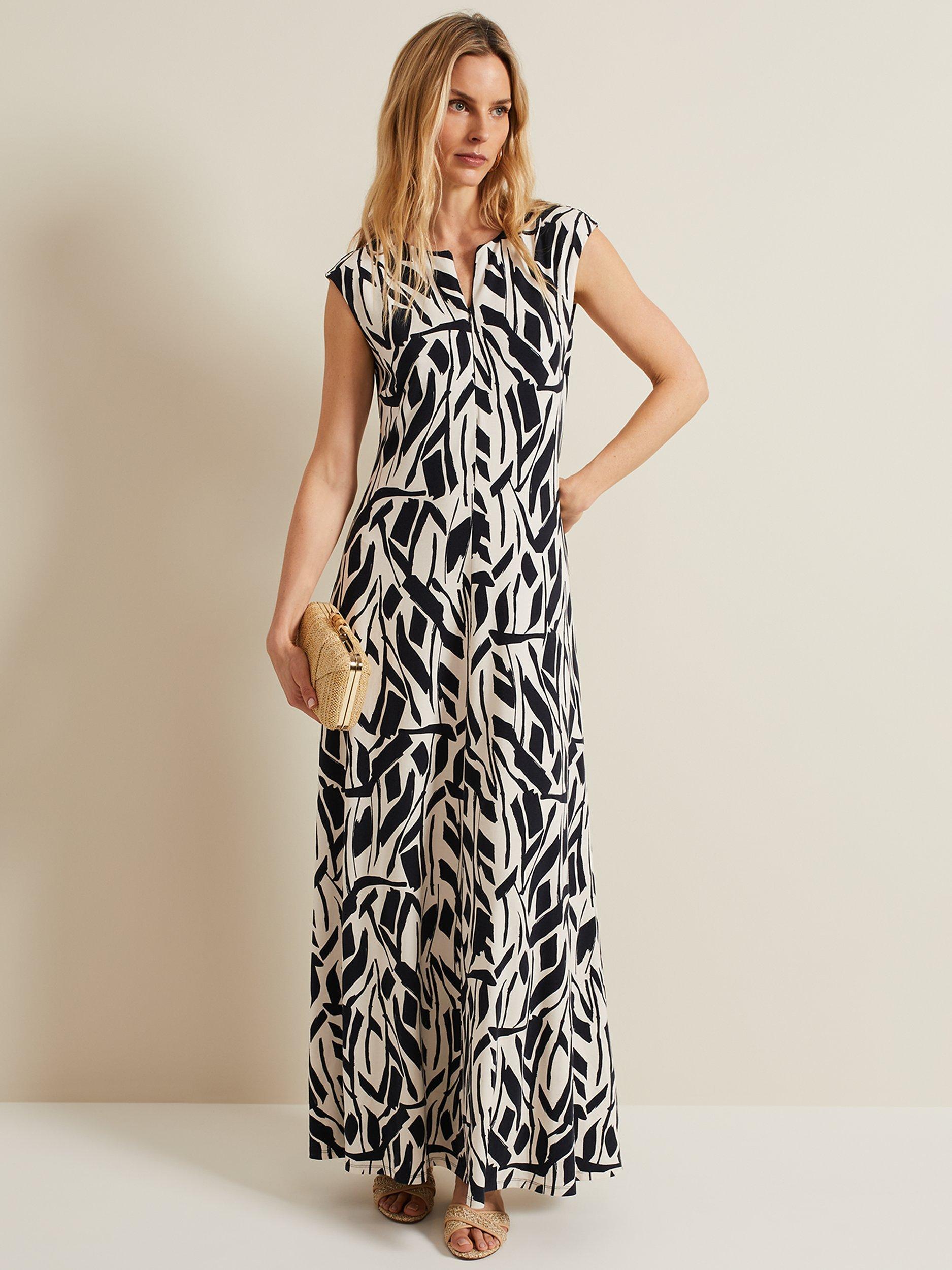 A new statement dress to add to your wardrobe. Designed in an on-trend geometric print, the Kirsty dress features zip up detailing at the neckline and falls to a flowing maxi dress. Dress up with heels and down with sandals.