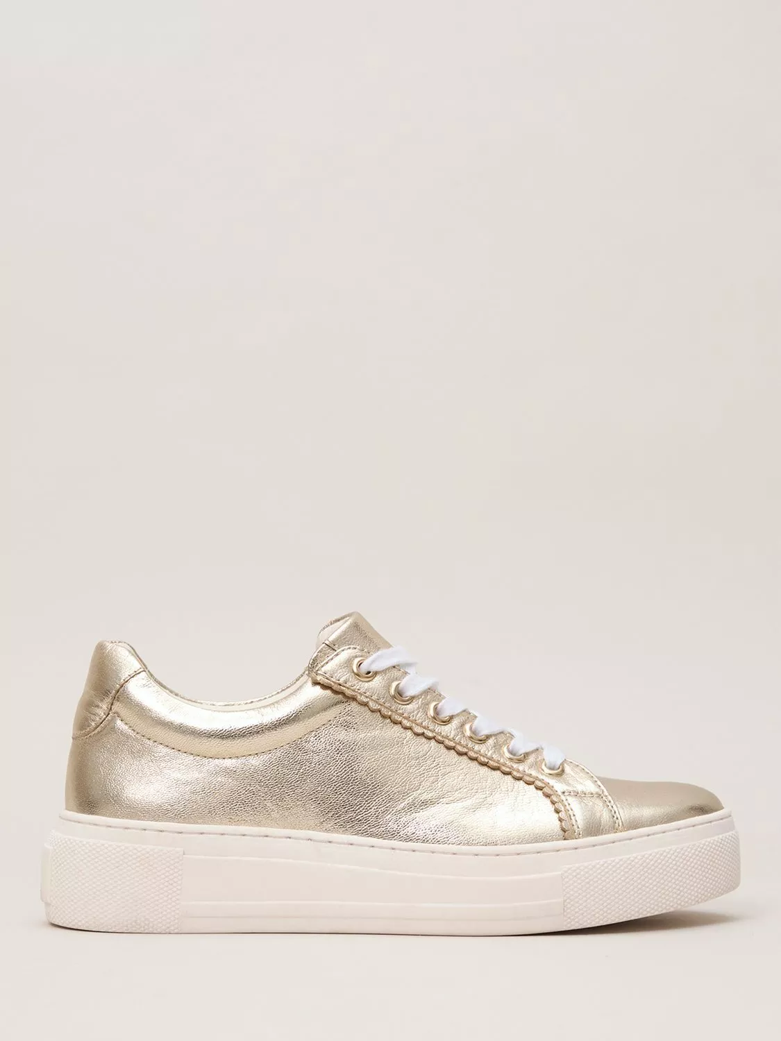 A fresh take on a wardrobe staple. These 100% leather trainers in gold metallic instantly ups your footwear game.