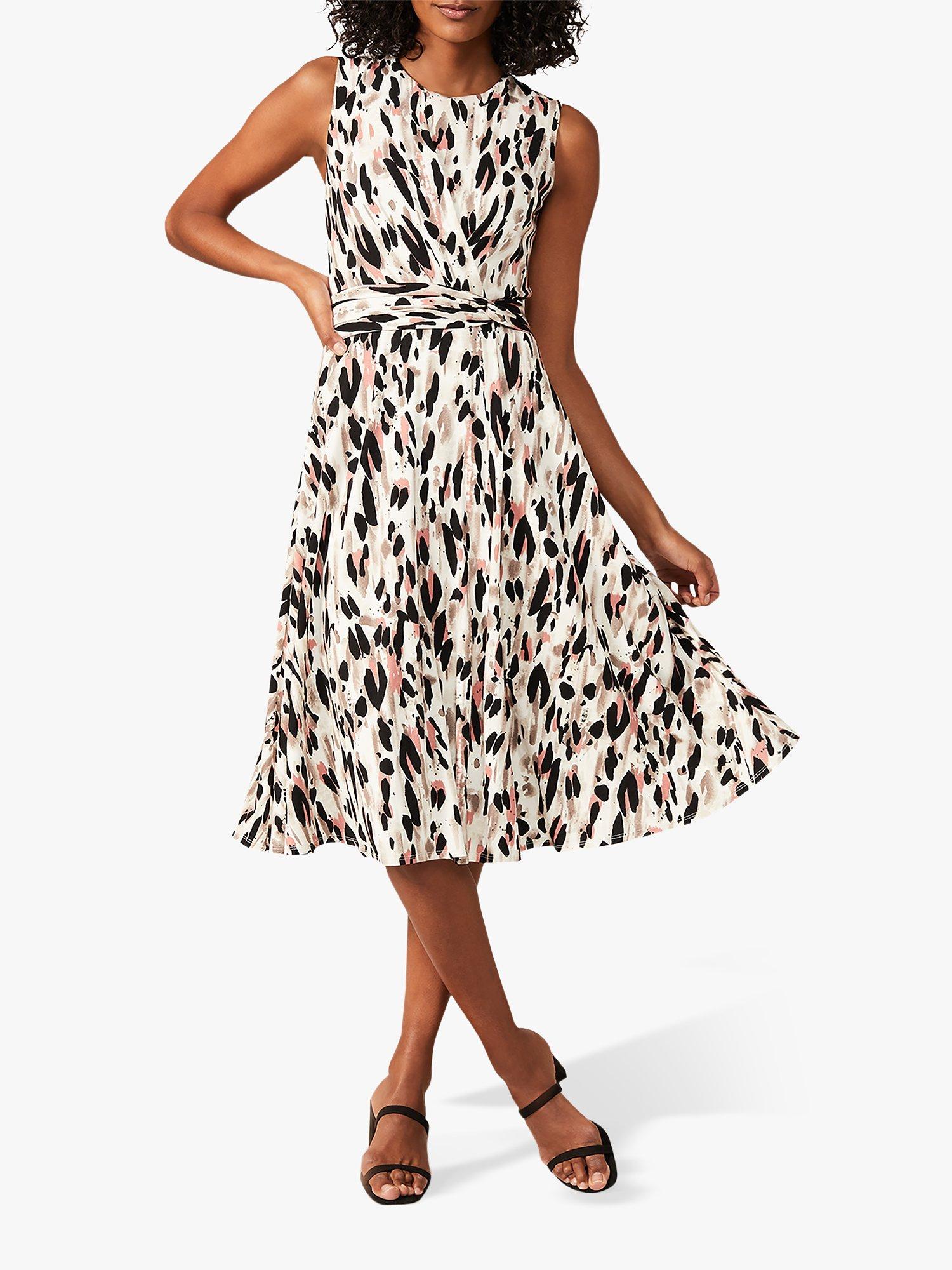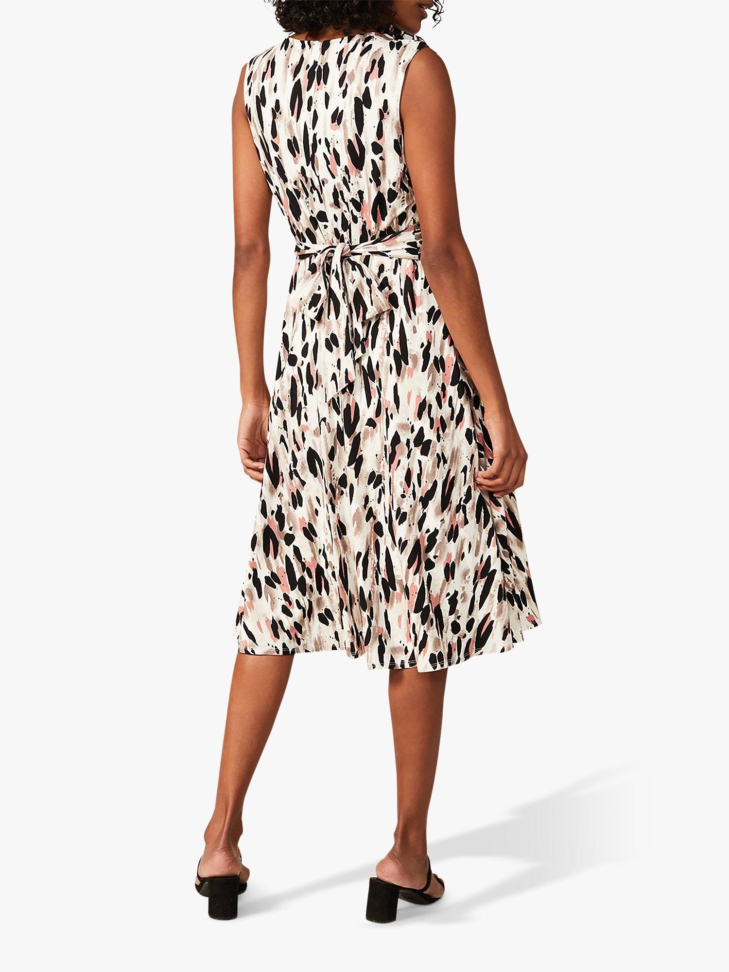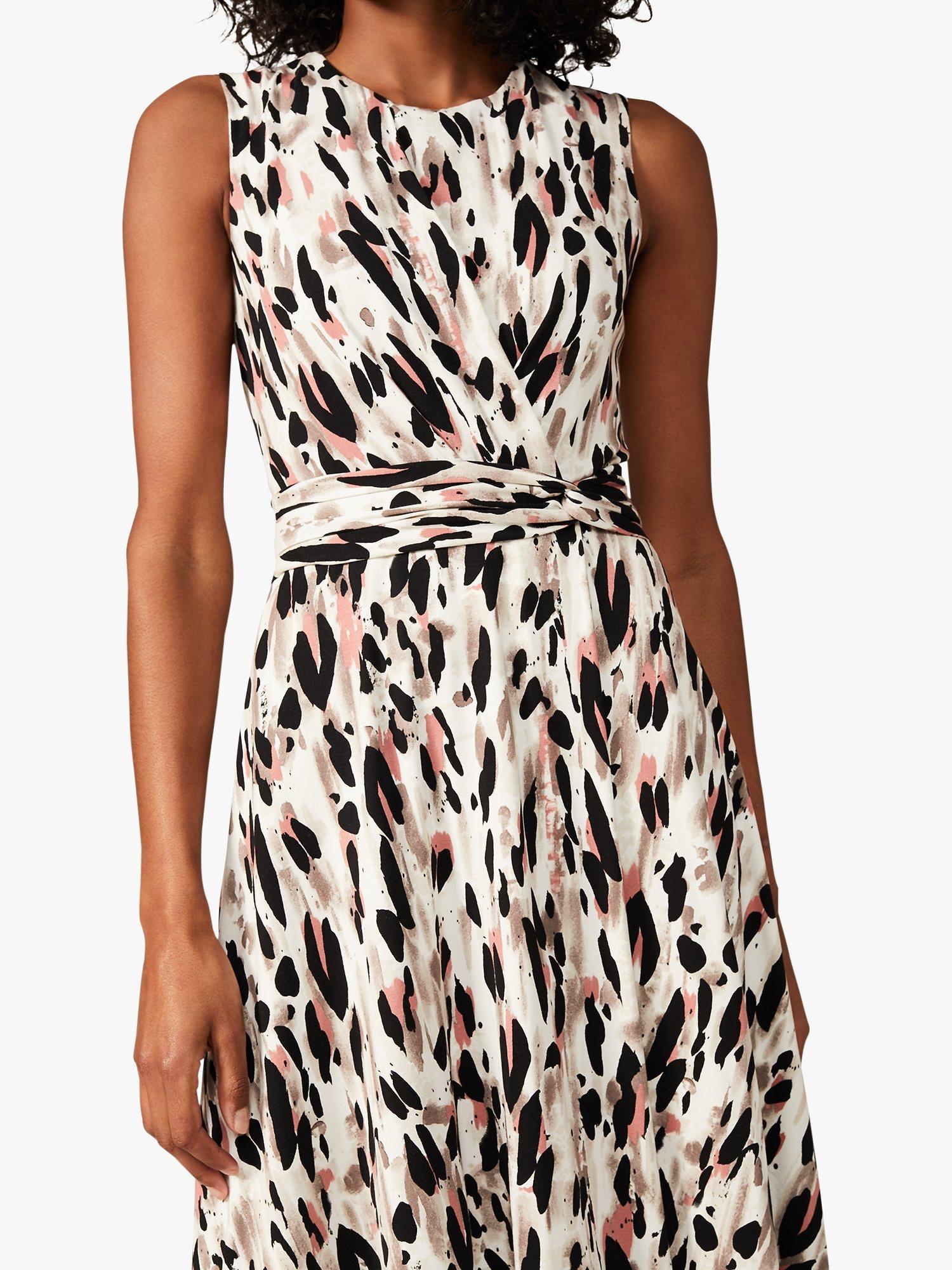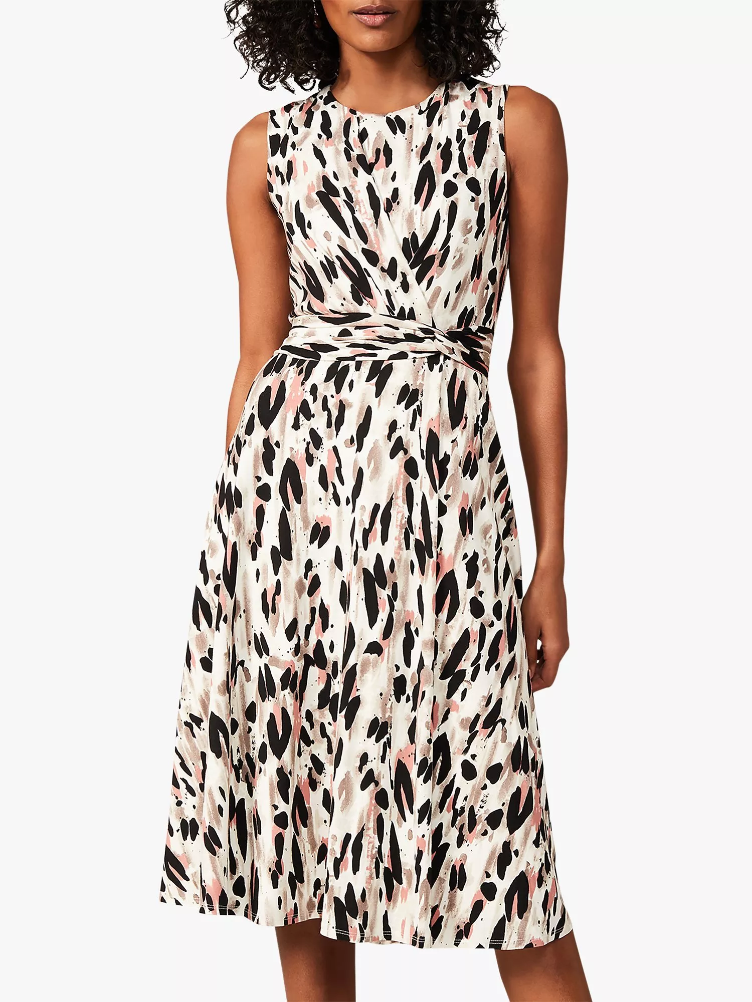 This easy day dress from Phase Eight is printed with an eye-catching abstract print to brighten your wardrobe. Made from soft jersey, it's designed with a ruched waistline to flatter and a floaty flared hem. Wear this sleeveless style on warmer days to the office or weekends away.